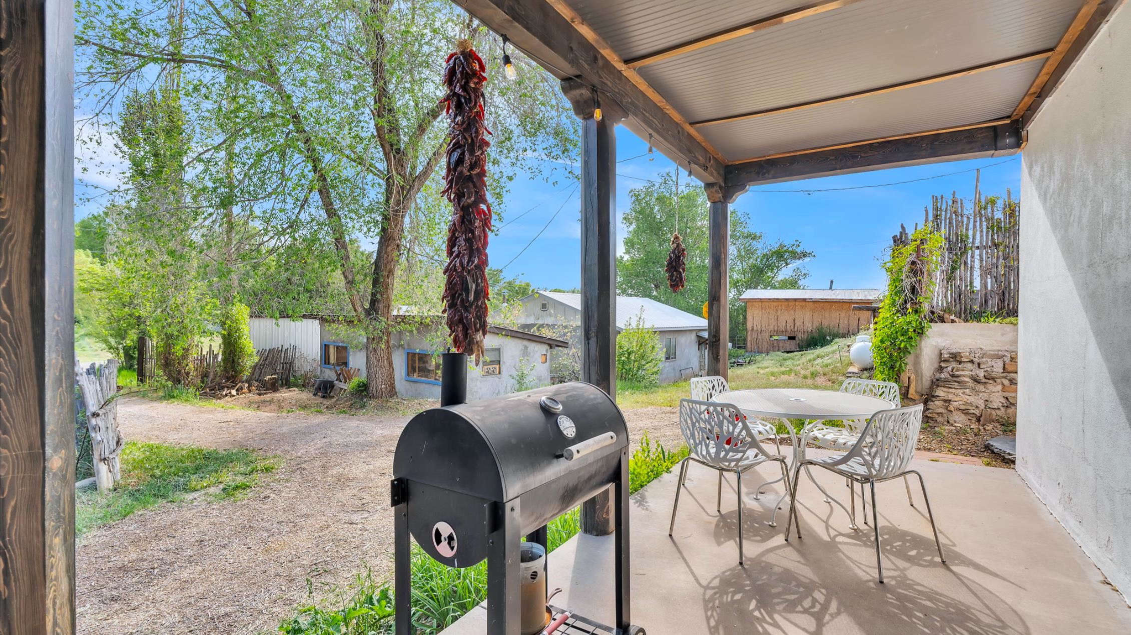 Live, Work, & Earn at this Magical Restored Compound with Commercial Frontage in Peñasco ~ 14197 NM-150 isn't just a home; it's the investment of a lifetime; two distinct residences that can be connected as one, with a road front gallery space ready to go for immediate income. The location offers the idyllic New Mexico lifestyle and the property has immediate built in income generating potential. The upstairs welcomes you into a charming 2,000+ sqft haven, containing a spacious living room with gleaming oak wood floors, a light-filled open-concept kitchen, and an inviting dining area, kept comfortable by recently installed mini splits that provide the perfect temperature (heating & cooling) all throughout the year. Two wood burning wood stoves and a sunroom provides additional warmth and coziness on cold winter days. For the aspiring artist, craftsperson, shop owner and so forth, the attached studio at the front of the residence near the famous highway could easily become your commercial space or art gallery, generating even more income. The residence is being listed well below a recent appraised value of $530k as of June 18th, 2025. Downstairs is an immaculate and generously sized 1400 sq ft two-bedroom apartment. This connected or self-contained unit boasts an open-concept kitchen with authentic Saltillo floors, a highly functional kitchen with custom cabinetry, and an open living room kept cozy by the stone fireplace. Each unit has its own private washer & dryer. With its proven track record as a highly-rated Airbnb and being offered fully furnished, the short-term or long-term rental possibilities are truly remarkable. The property even features a hot tub among poppies blooming in the springtime. The traditional root cellar for storing all your canned goods is a special feature of the property, as is the fully powered and highly functional detached workshop ready to go for a number of hobbies, extra storage, or yet another income stream. There is an established animal pen with a chicken coop out front and succession of perennials blooming throughout the warm season in the gardens. Nestled in the charming village of Peñasco, you’re steps away from local favorites like Sugar Nymphs restaurant and the Peñasco Performing Arts Theater. Outdoor adventures abound with Sipapu Ski Resort, Santa Barbara Campground, Dixon Cooperative Market, and renowned wineries like Chiripada and Vivac all nearby. This is truly a must-see opportunity to own a versatile, income-generating property in the heart of Northern New Mexico. Don't let this one slip through the cracks!