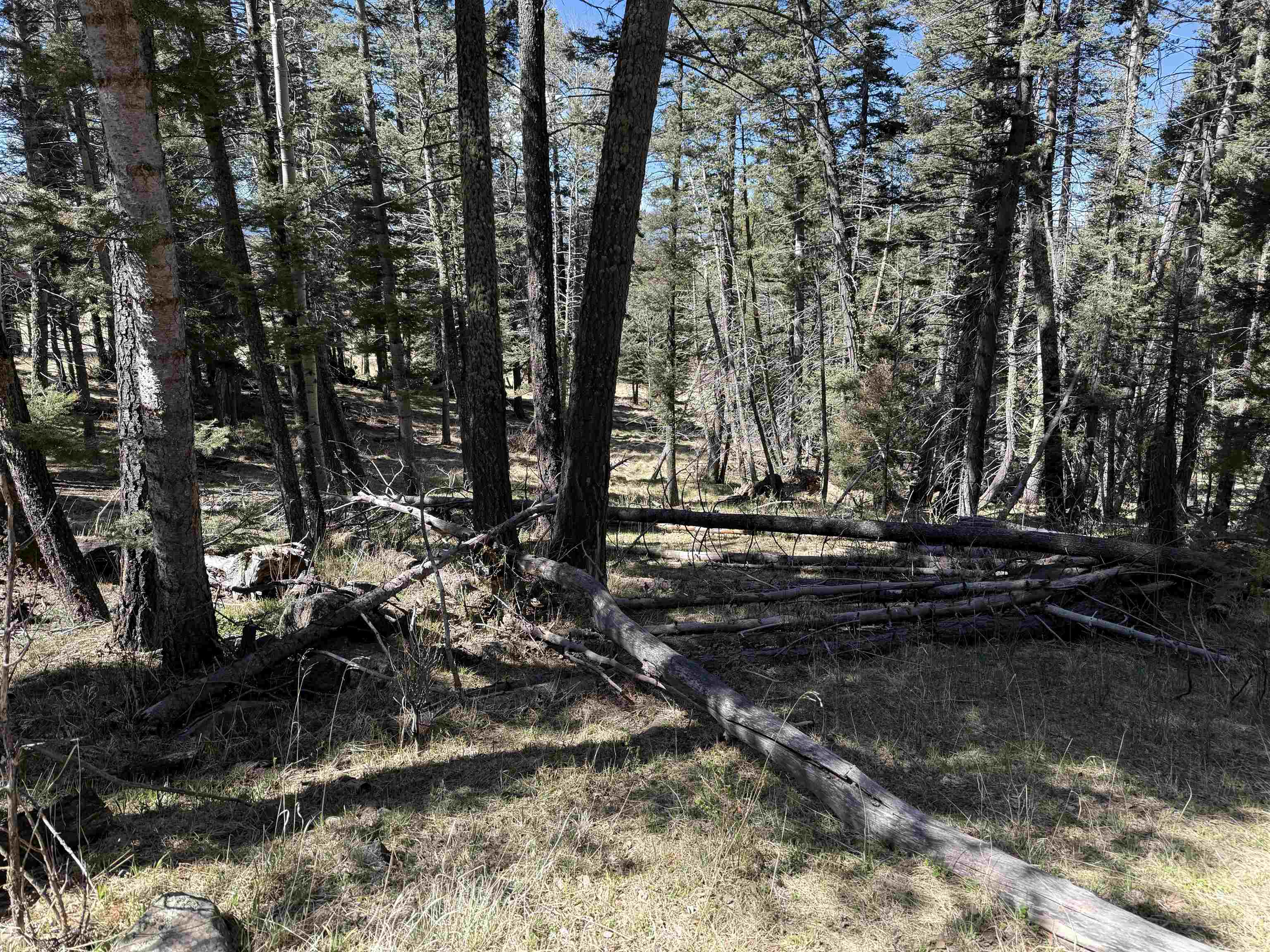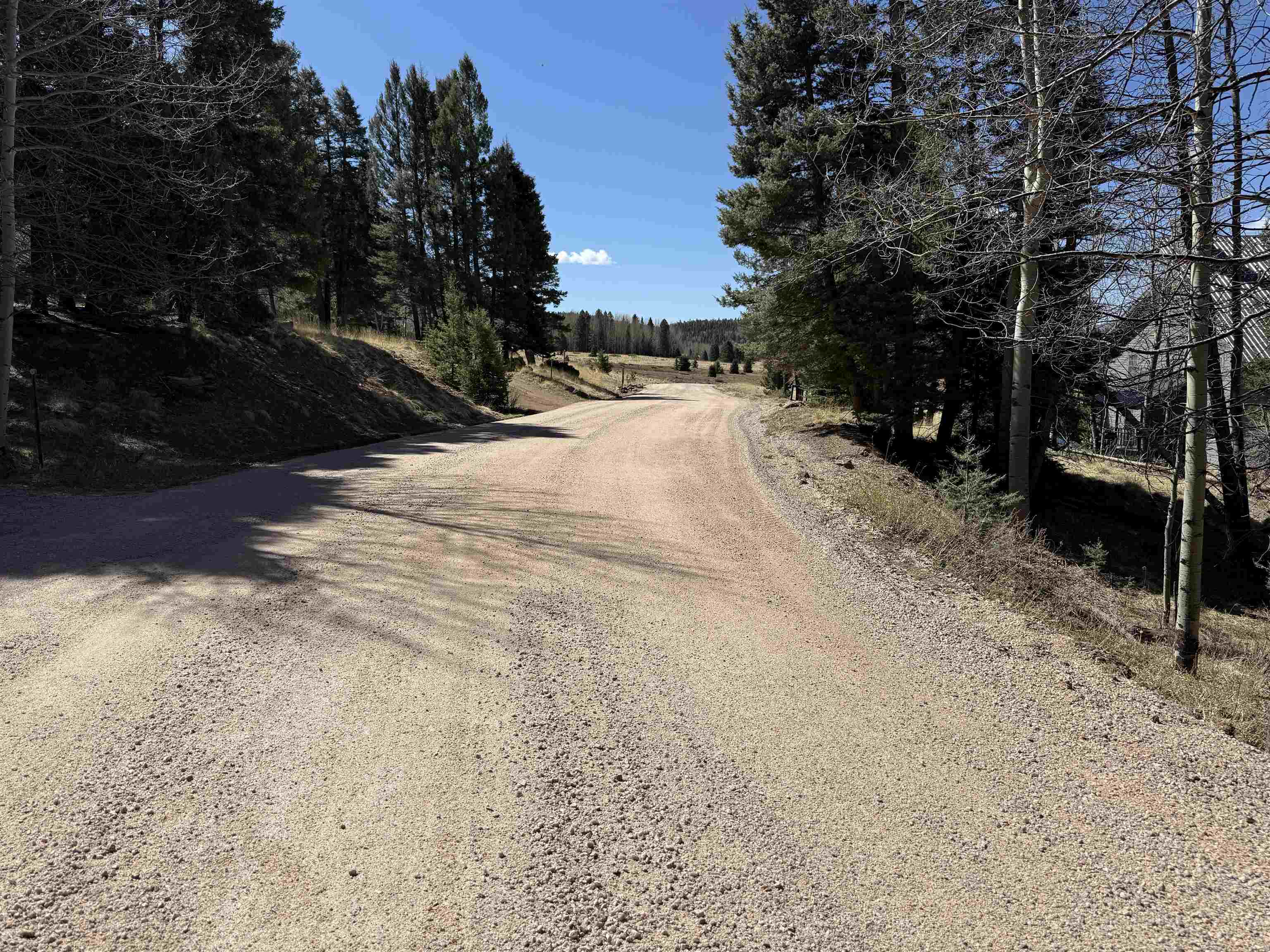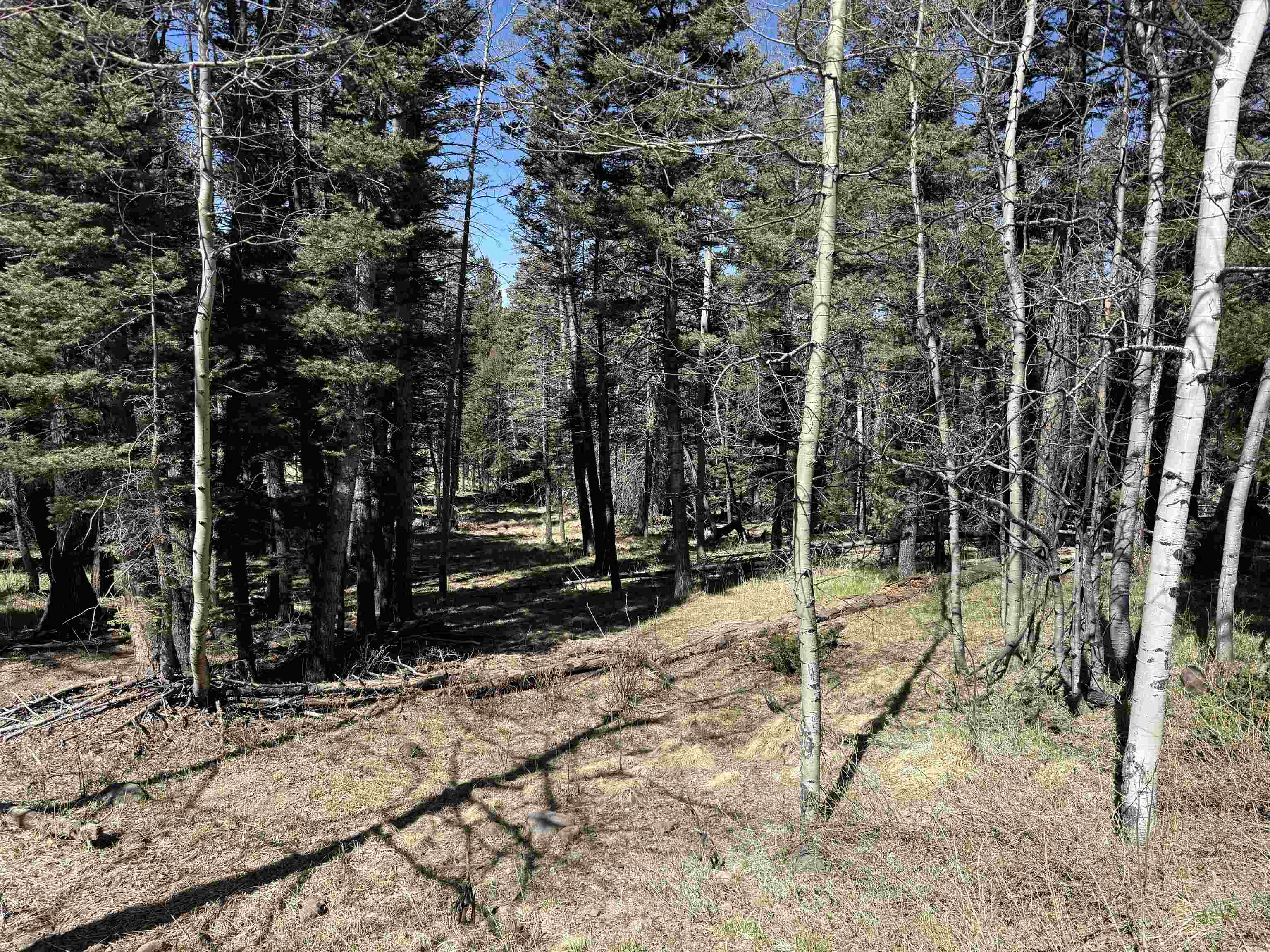 Sloped, wooded lot, with at least one area for a building pad. Easy access to phone line and power at the lot, water is in the road as evidenced by a meter on the lot across the road. There is a Kit Carson Fiber Optic pedestal at the lot. Appears to have been thinned. Distance to the Village and ski area is about 5 miles, there are multiple routes taking about 10 minutes. NOTE: The image of the water meter is on a property across the road.