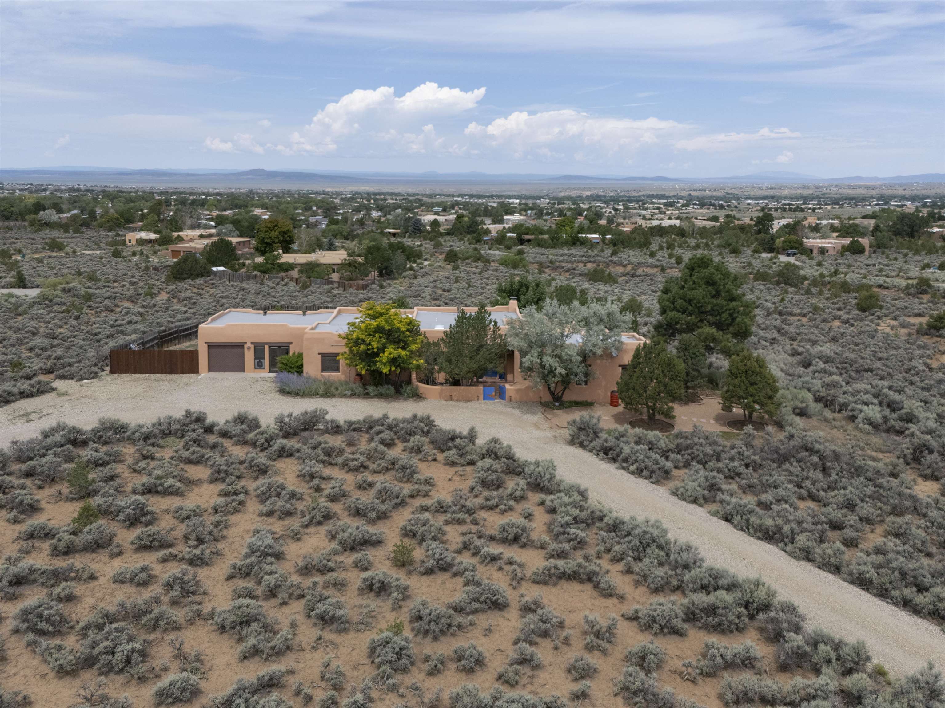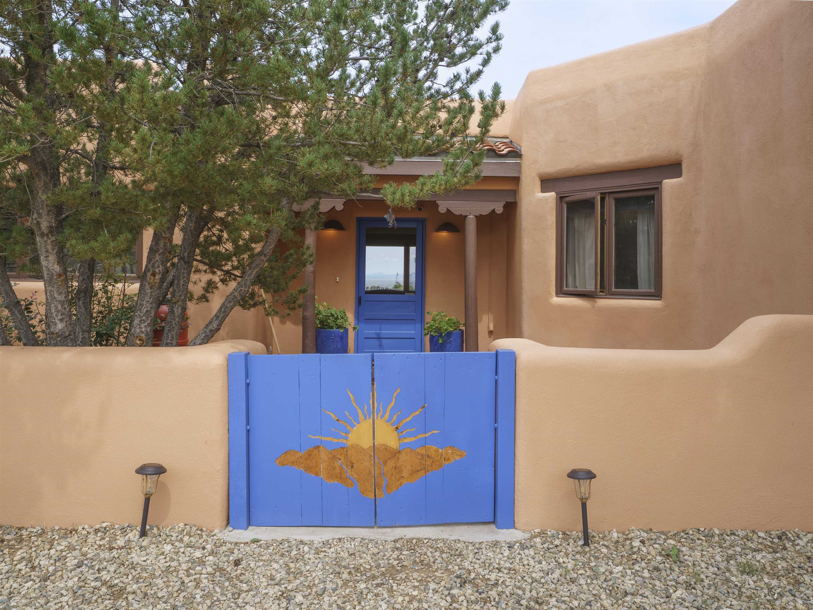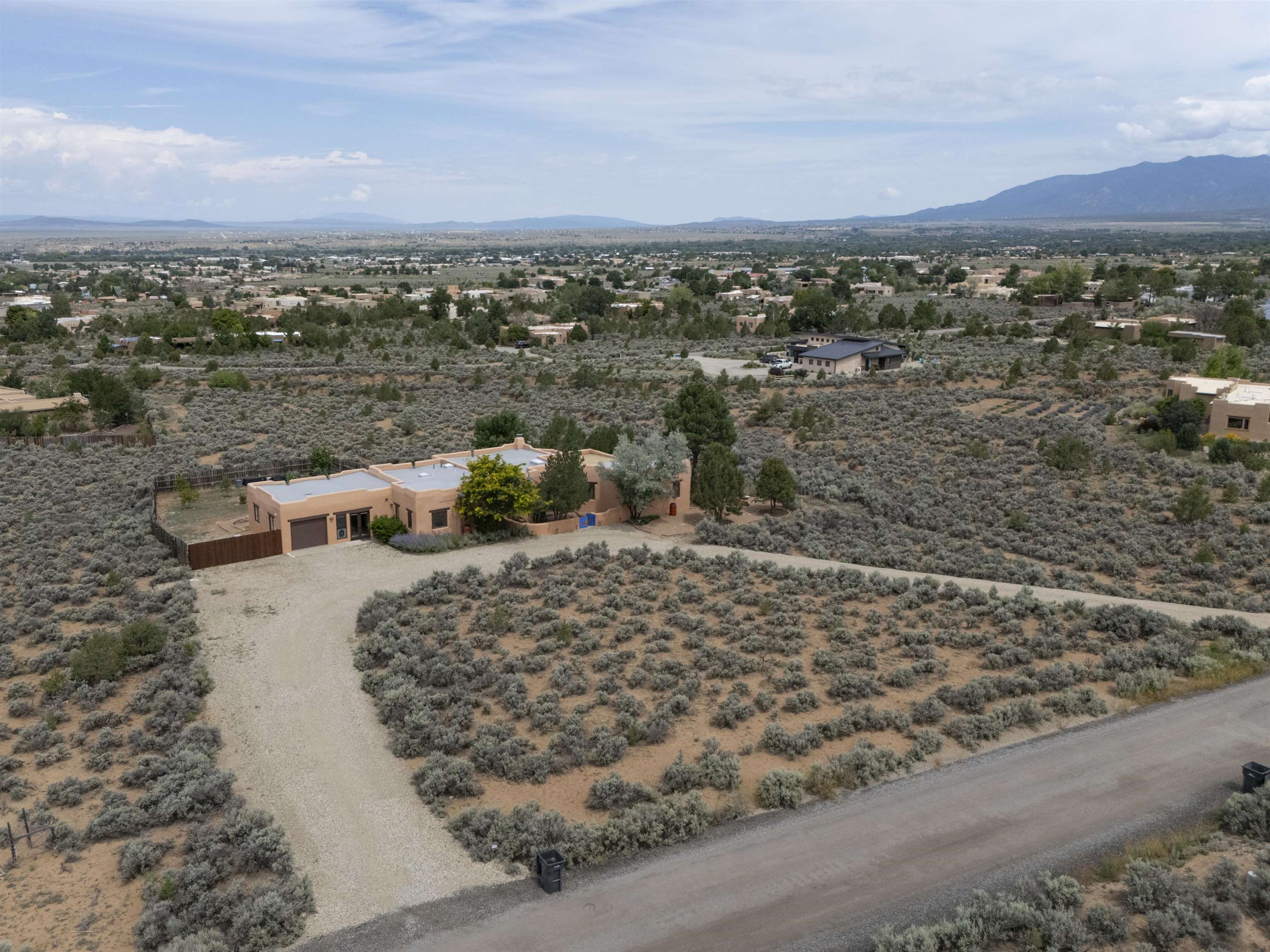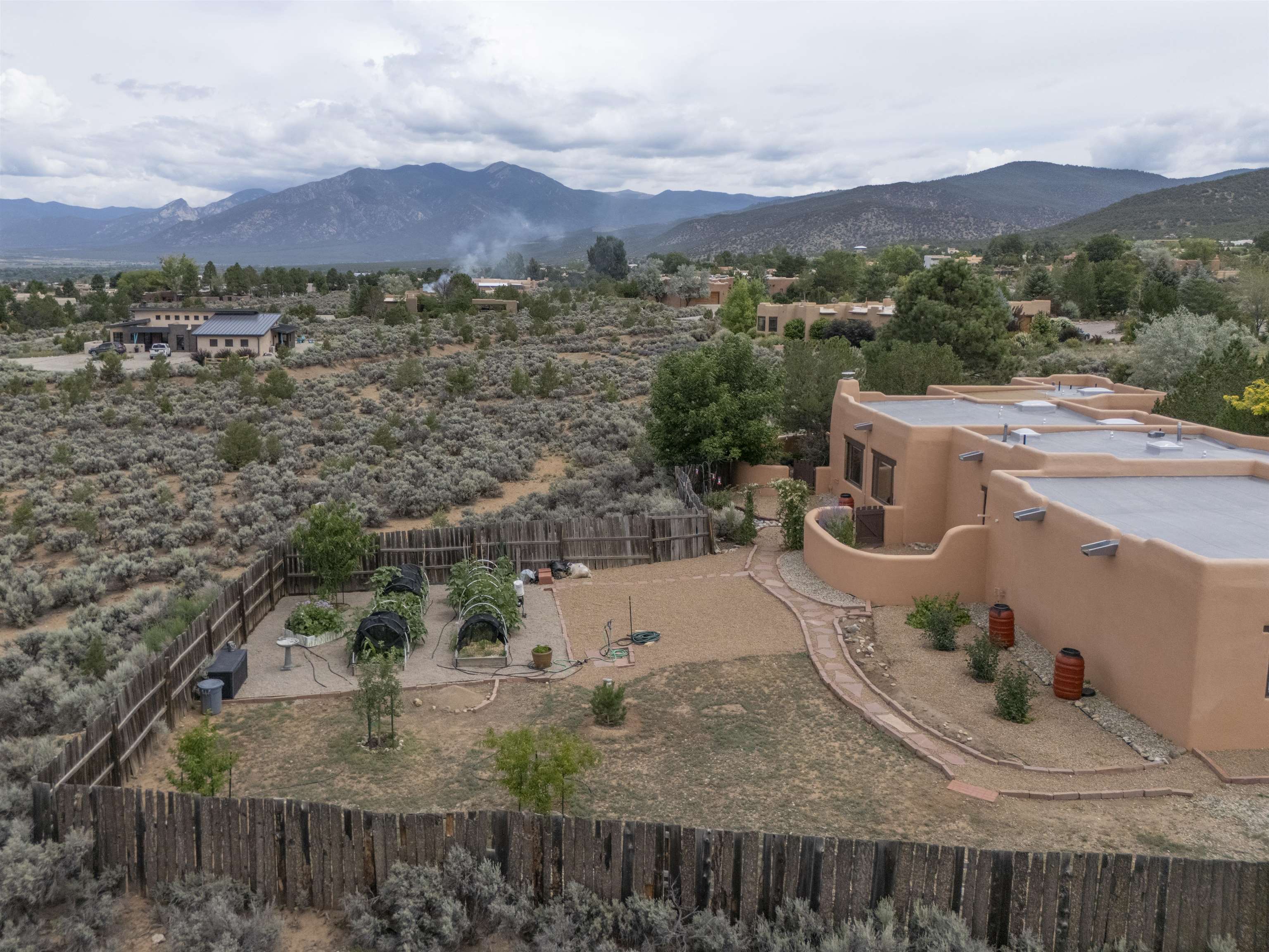 Gorgeous views just minutes from the Town of Taos. Located in the desirable Weimer neighborhood, this lovingly renovated adobe home has 2350 square feet of well thought out living space. The home is very private and has wonderful gardens, patios, trees, and sits on 1.27 acres. A very welcoming living/dining area faces west and offers wonderful sunset viewing. The kitchen has been fully renovated with new knotty cherry cabinets, new appliances (Bosch stove, dishwasher and refrigerator, new back splash, quartz countertops, new farm sink and under cabinet lighting. The primary bedroom is large and light. The bathroom and closet are spacious. The two guestrooms are good sized and share a sweet bathroom. One bay of the garage has been converted into a great media room/office/craft room which has a separate entrance. The one car garage has a level 2 Electric car charger. The exterior spaces add so much functional living space to an already generous sized house. Fruit trees and vegetable gardens are producing great home grown groceries. A new well pump, ceiling fans, yard hydrants and so many more improvements, make this home move-in ready. Escape city life with glorious starry night skies and close proximity to many outdoor adventures. Come and see this wonderful home . Close to town and yet so private.