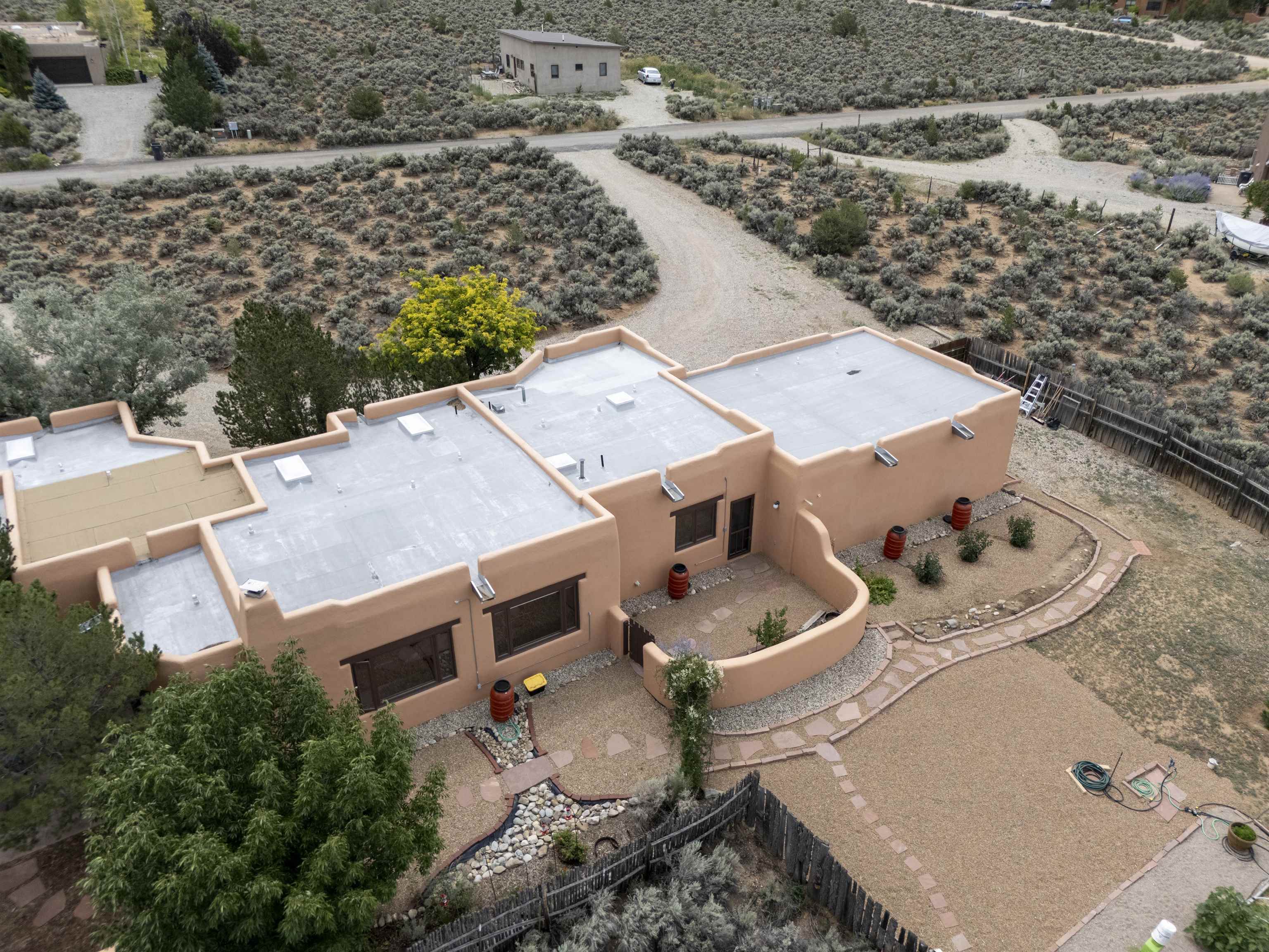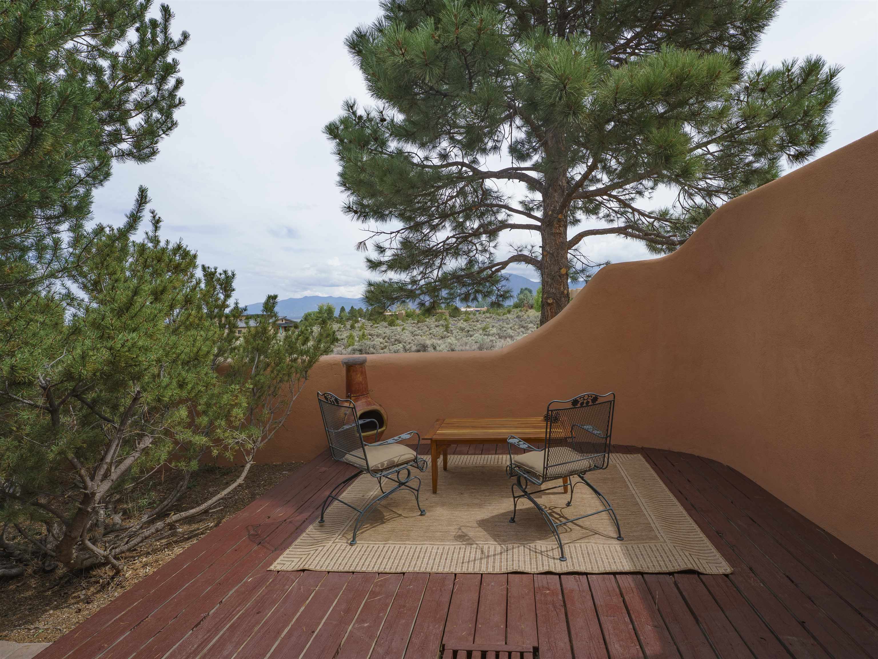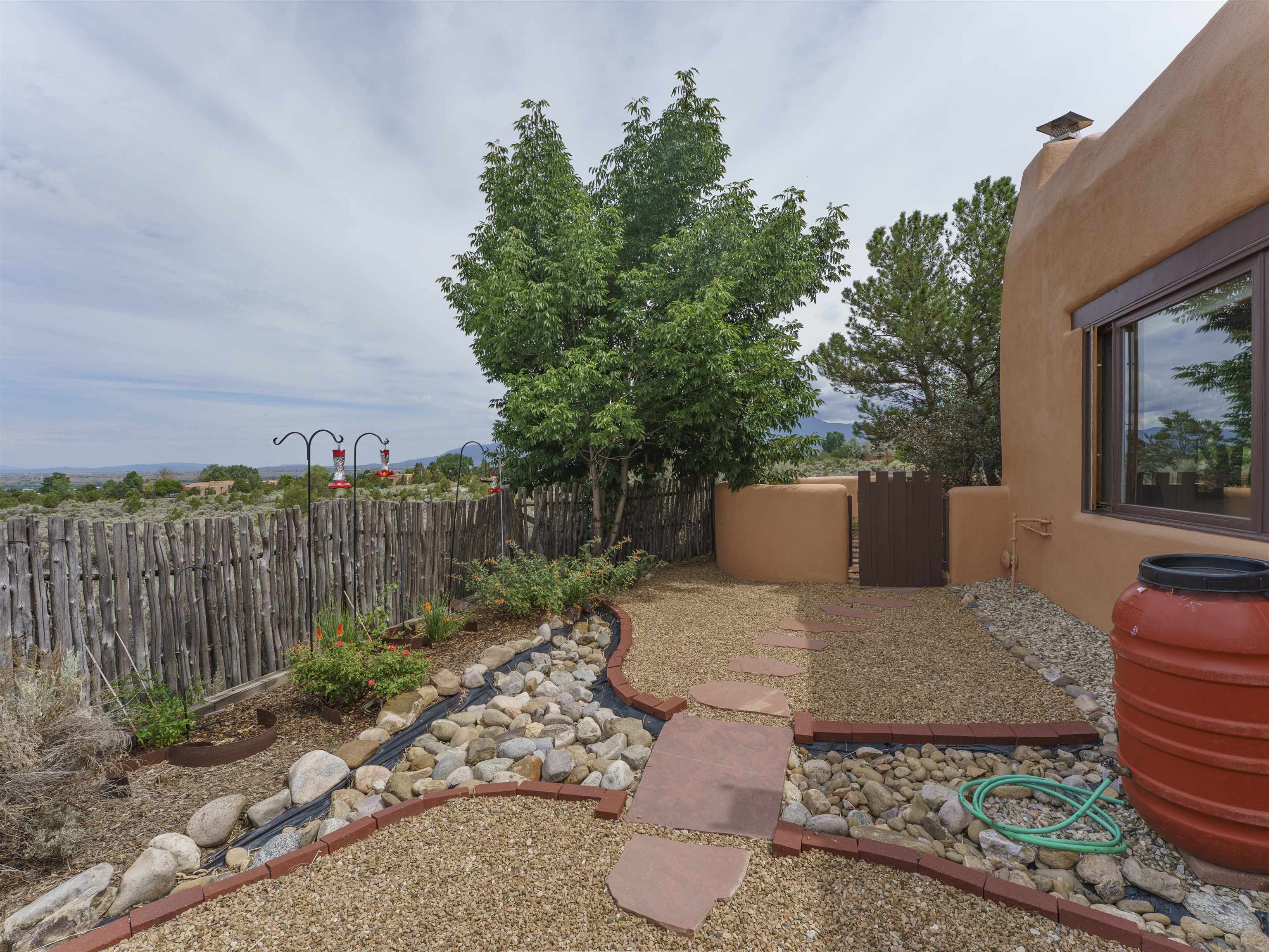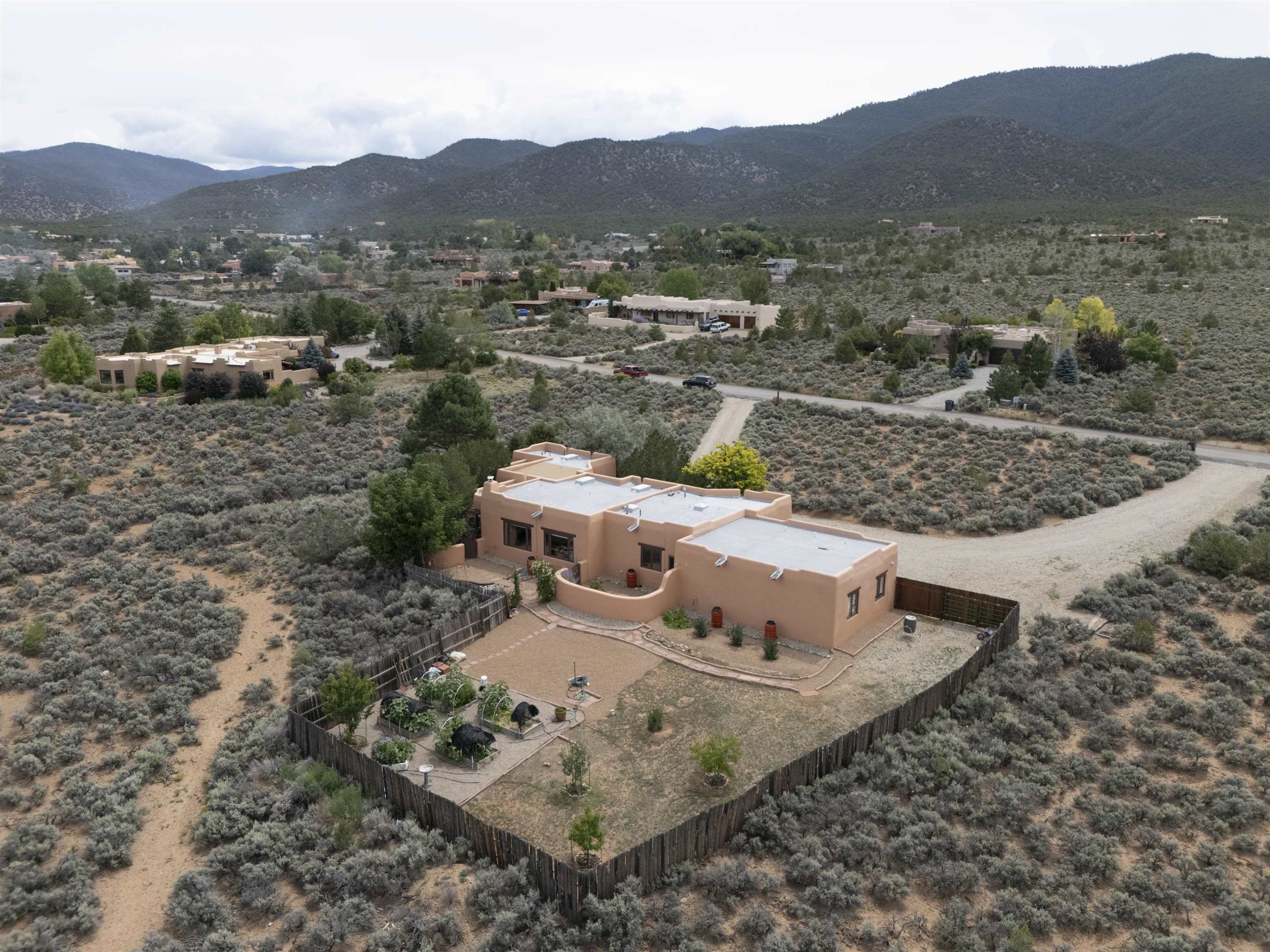 Gorgeous views just minutes from the Town of Taos. Located in the desirable Weimer neighborhood, this lovingly renovated adobe home has 2350 square feet of well thought out living space. The home is very private and has wonderful gardens, patios, trees, and sits on 1.27 acres. A very welcoming living/dining area faces west and offers wonderful sunset viewing. The kitchen has been fully renovated with new knotty cherry cabinets, new appliances (Bosch stove, dishwasher and refrigerator, new back splash, quartz countertops, new farm sink and under cabinet lighting. The primary bedroom is large and light. The bathroom and closet are spacious. The two guestrooms are good sized and share a sweet bathroom. One bay of the garage has been converted into a great media room/office/craft room which has a separate entrance. The one car garage has a level 2 Electric car charger. The exterior spaces add so much functional living space to an already generous sized house. Fruit trees and vegetable gardens are producing great home grown groceries. A new well pump, ceiling fans, yard hydrants and so many more improvements, make this home move-in ready. Escape city life with glorious starry night skies and close proximity to many outdoor adventures. Come and see this wonderful home . Close to town and yet so private.