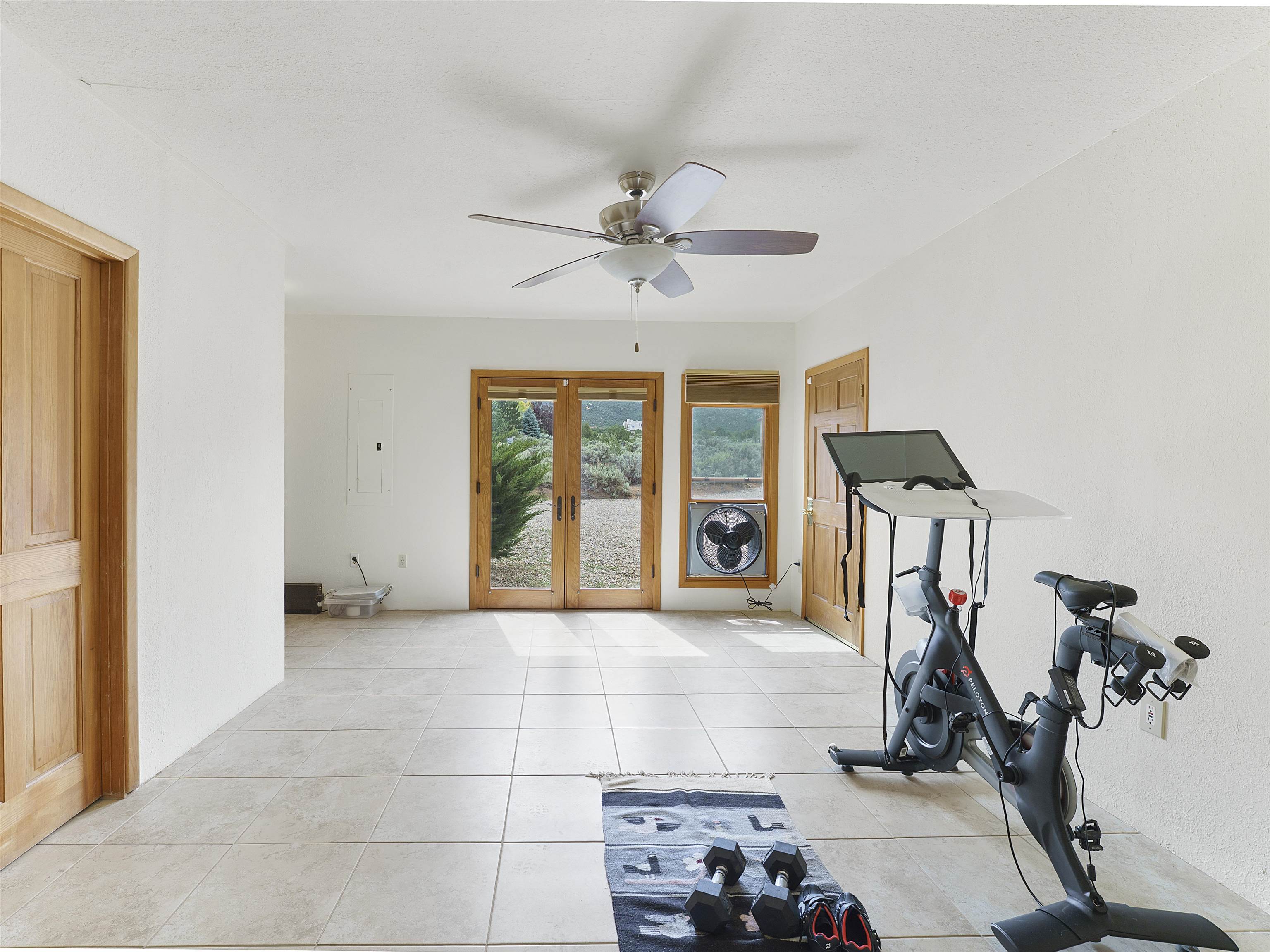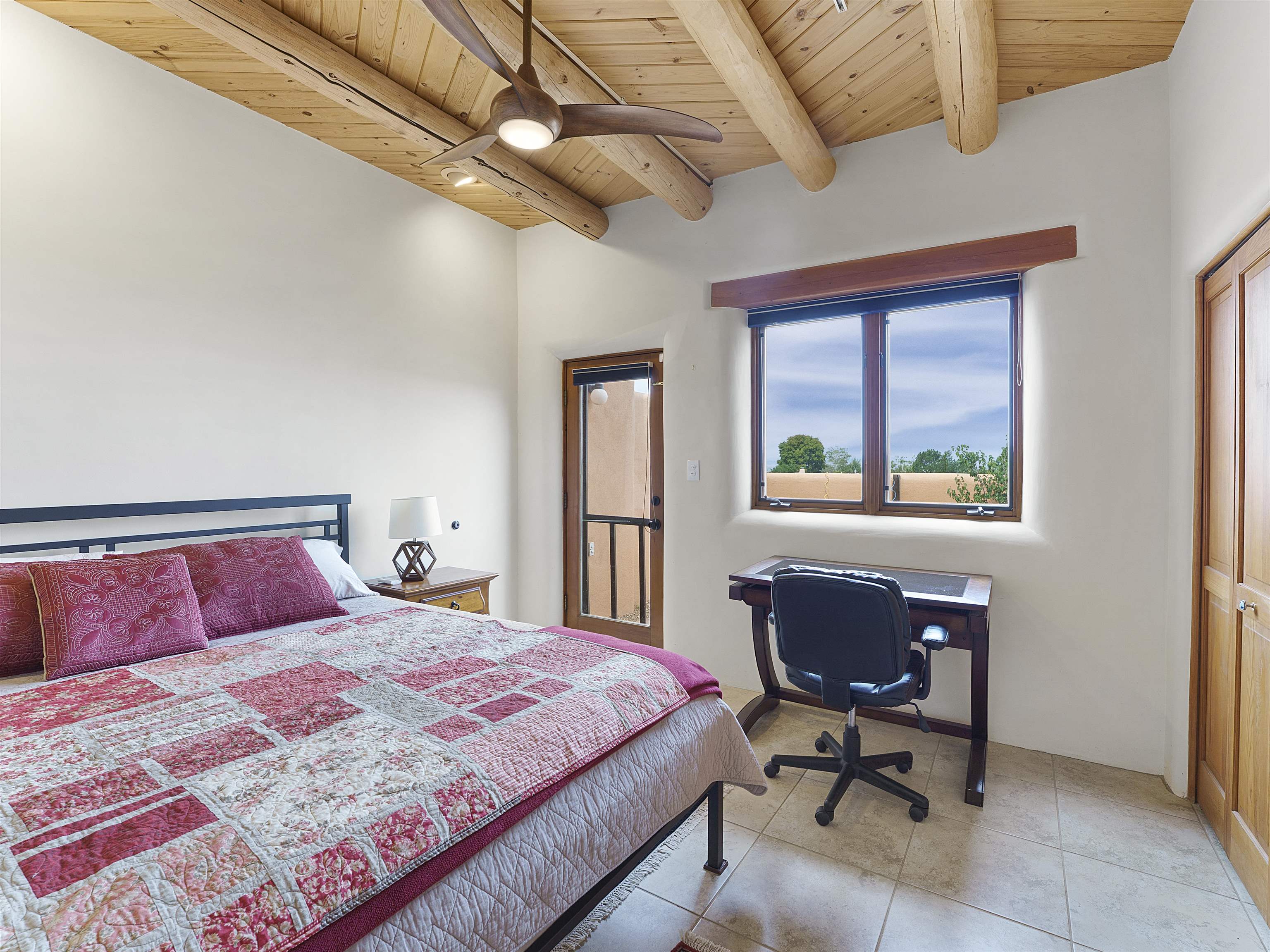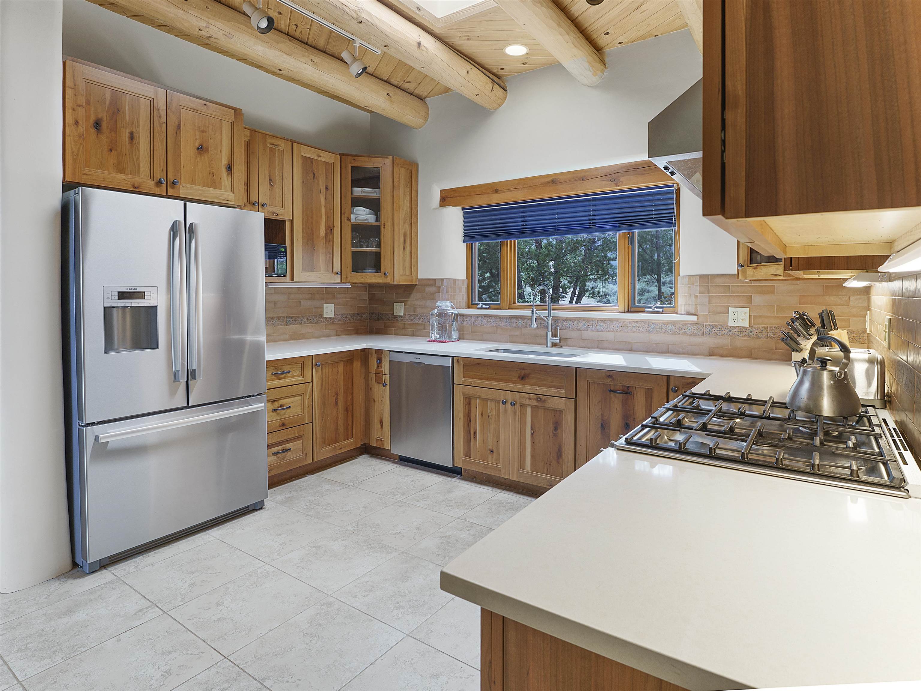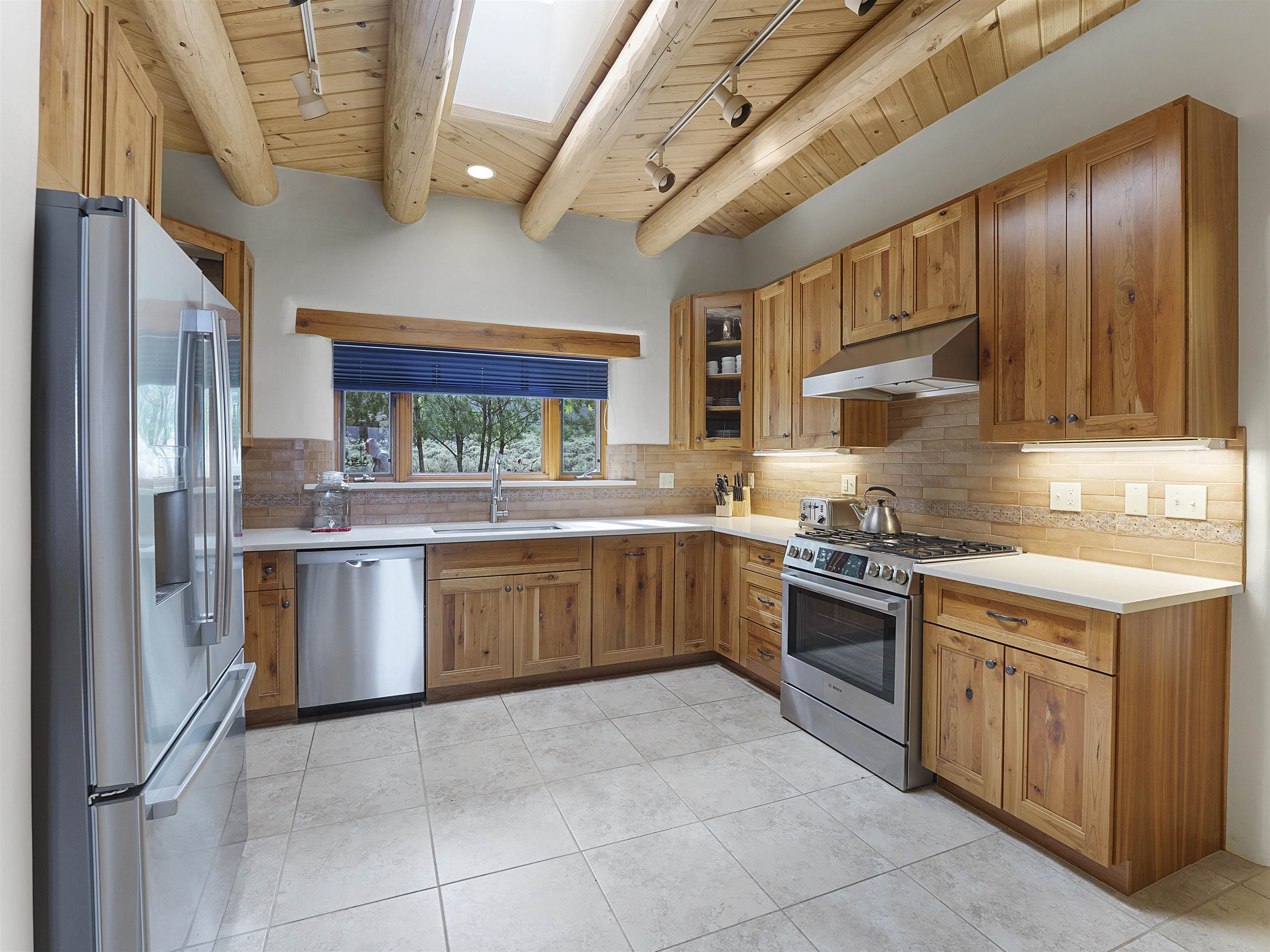 Gorgeous views just minutes from the Town of Taos. Located in the desirable Weimer neighborhood, this lovingly renovated adobe home has 2350 square feet of well thought out living space. The home is very private and has wonderful gardens, patios, trees, and sits on 1.27 acres. A very welcoming living/dining area faces west and offers wonderful sunset viewing. The kitchen has been fully renovated with new knotty cherry cabinets, new appliances (Bosch stove, dishwasher and refrigerator, new back splash, quartz countertops, new farm sink and under cabinet lighting. The primary bedroom is large and light. The bathroom and closet are spacious. The two guestrooms are good sized and share a sweet bathroom. One bay of the garage has been converted into a great media room/office/craft room which has a separate entrance. The one car garage has a level 2 Electric car charger. The exterior spaces add so much functional living space to an already generous sized house. Fruit trees and vegetable gardens are producing great home grown groceries. A new well pump, ceiling fans, yard hydrants and so many more improvements, make this home move-in ready. Escape city life with glorious starry night skies and close proximity to many outdoor adventures. Come and see this wonderful home . Close to town and yet so private.