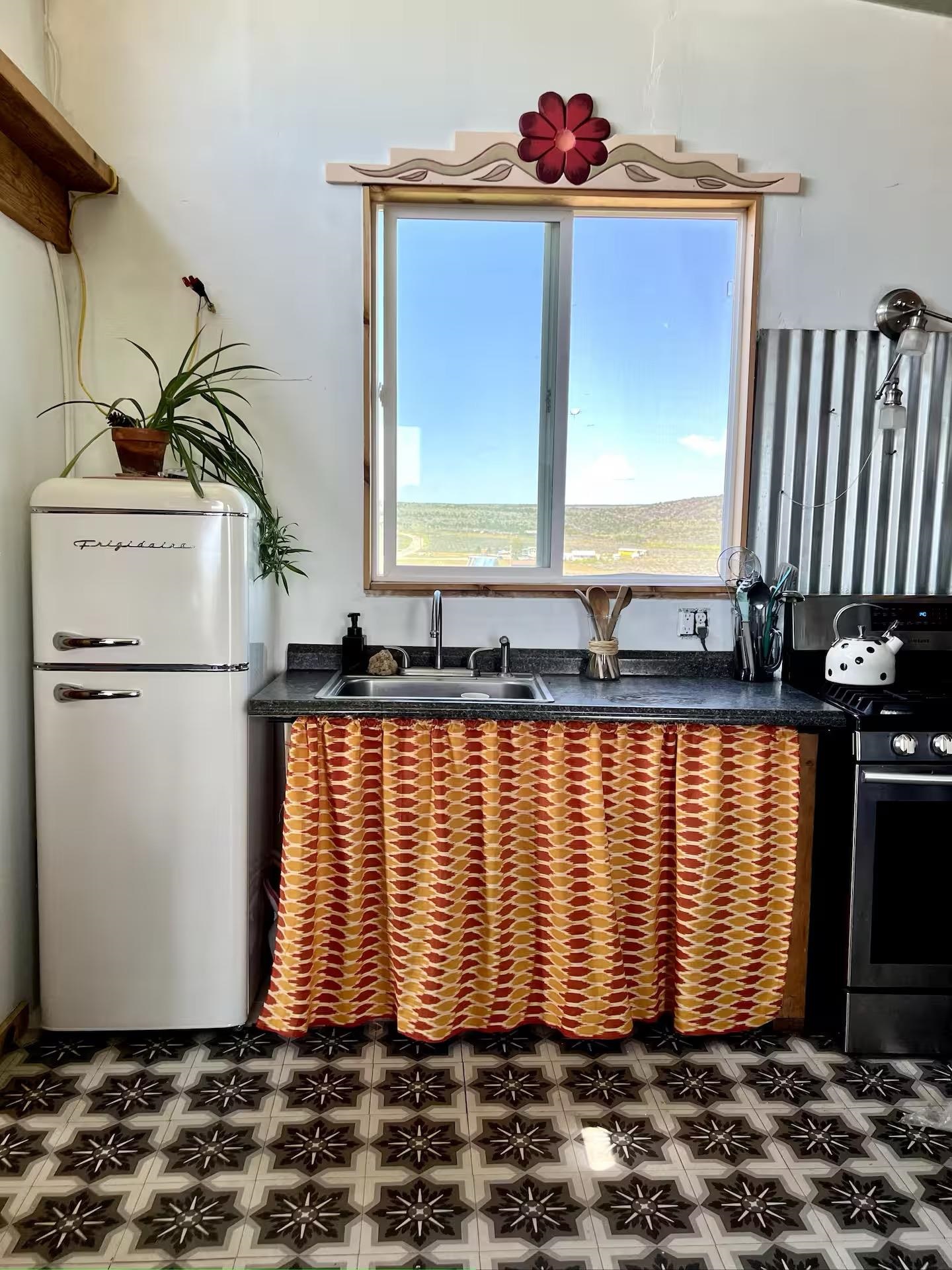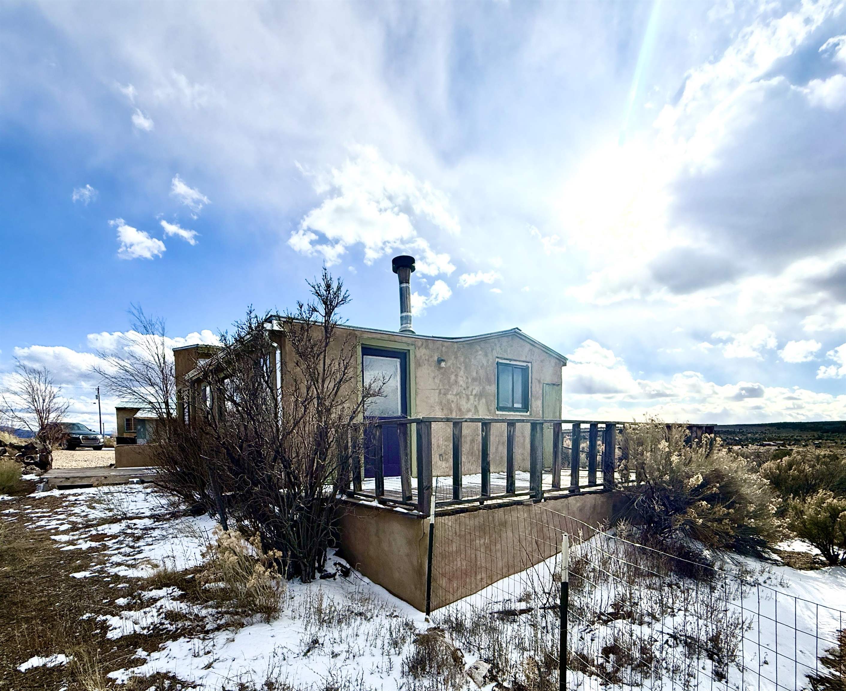 With such an approachable price this expansive 8.75 acre property offers a rare opportunity for a full-time residence, a private retreat, or an investment with vision. Equipped with High speed internet, the two-bedroom, one-bath main house is ready for its next chapter. Newer appliances include a Rinnai on-demand water heater, kitchen wall heater, range, refrigerator, and washer/dryer. The living room picture window frames ever-changing skies. A freestanding, insulated studio offers flexible potential for creative space, guest quarters, or a home office, with roughed-in plumbing and a glamping-style outdoor bath in place. Slow down and look up in the tiny, primitive off-grid A-frame. With windows framing expansive night skies, this cozy retreat invites unforgettable stargazing—where shooting stars become part of your nightly ritual. The property also features two additional sites suitable for a tiny home or RV (existing tiny home not included; site currently rented month-to-month). 15 miles to Ojo Caliente and 24 miles to Taos Plaza.