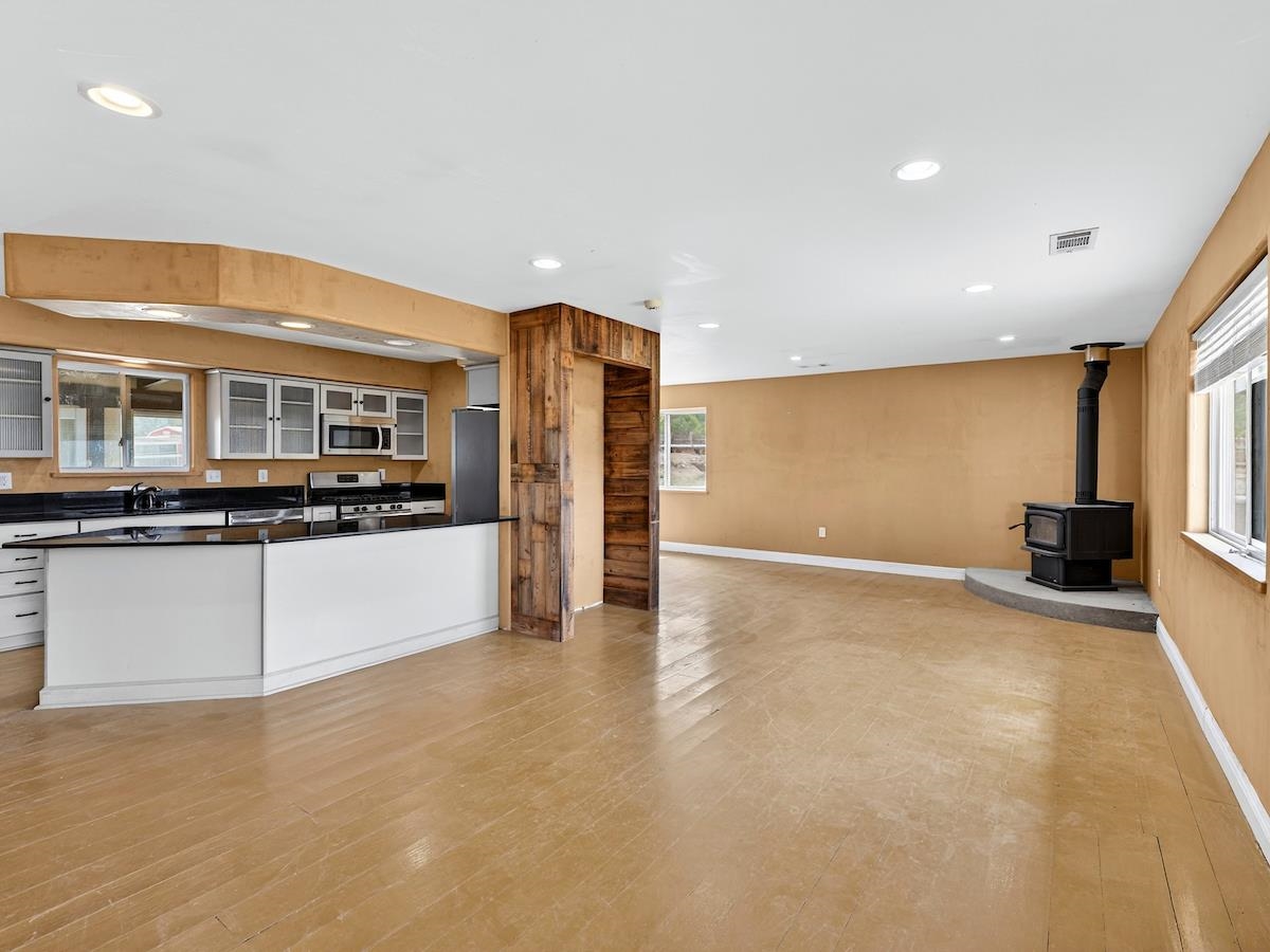 Northern New Mexico Haven, this 3+ acre Equestrian estate offers a quintessential Northern New Mexico lifestyle, blending rustic charm with modern efficiency. The property is fully fenced and turn-key for horse enthusiasts, featuring extensive animal facilities and a spacious, updated home. A 6-stall barn complete with a dedicated tack room for organized storage. Th property Includes chicken coop, and separate stall area with pole fencing for horses and a separate storage shed to keep feed fresh and dry. A versatile 4-bedroom, 2-bathroom layout. Modern climate control with a brand-new mini-split system in the 4th bedroom provides quiet, energy-efficient comfort and a large, customizable space featuring a classic Vermont Castings red wood stove. The fourth bedroom can be used as an office, extra bedroom or a separate bedroom suite. This is a great property very close to town that is set up for horse lovers. Come and see for yourself. Priced to sell.