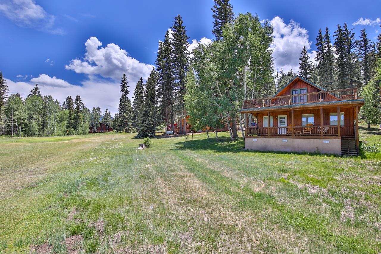 Welcome to your Mountain Getaway! A 2,293 square foot, 4 bedrooms / 2 full bathroom cabin located in the scenic valley of Valle Escondido right on a private golf course! Downstairs, you'll find a dedicated mudroom with tiled floors, a living room boasting views from all windows, an updated open kitchen with an island, two bedrooms, a full bathroom, and an additional living space currently used as a media room, which can easily be transformed into a game room, home office, gym, or anything else you desire. The primary suite features a bathroom with honeycomb-penny tiles and a walk-in shower, along with French doors that open to a spacious upstairs deck overlooking the Valle Escondido Valley, and a 9-hole high alpine golf course. Solid pine wood floors extend through the living room, kitchen, and upstairs bedrooms, providing a warm and comfortable ambiance. A cast iron gas stove adds to the living room decor, and just outside is a large (and I mean large!) recently redone covered deck. A second gas stove is located in the media room. Need internet? Fiber optic is connected to the home and provides lightning fast upload/download speeds. Annual dues of $2,000 include access to the golf course, clubhouse, pool, fishing in two stocked lakes, trash service, and snow removal. Tucked away in a quiet valley surrounded by the Carson National Forest, this cabin is perfectly located near multiple ski slopes, the culturally rich town of Taos, and the laid-back community of Angel Fire. With year round access to all desired amenities while maintaining serene seclusion, it strikes a good balance between comfort and outdoor living. Come see why this community remains a sought after place to live year after year.