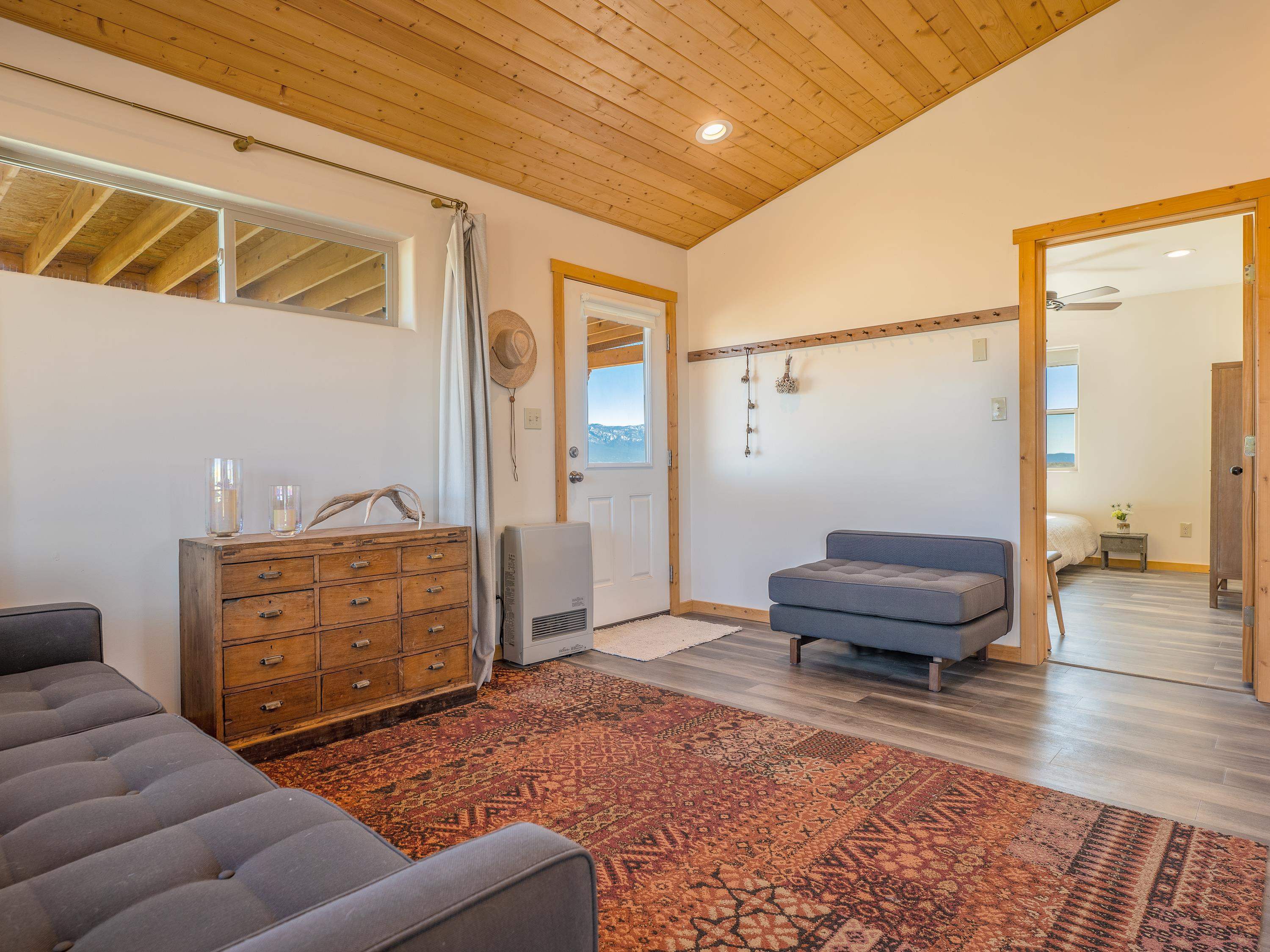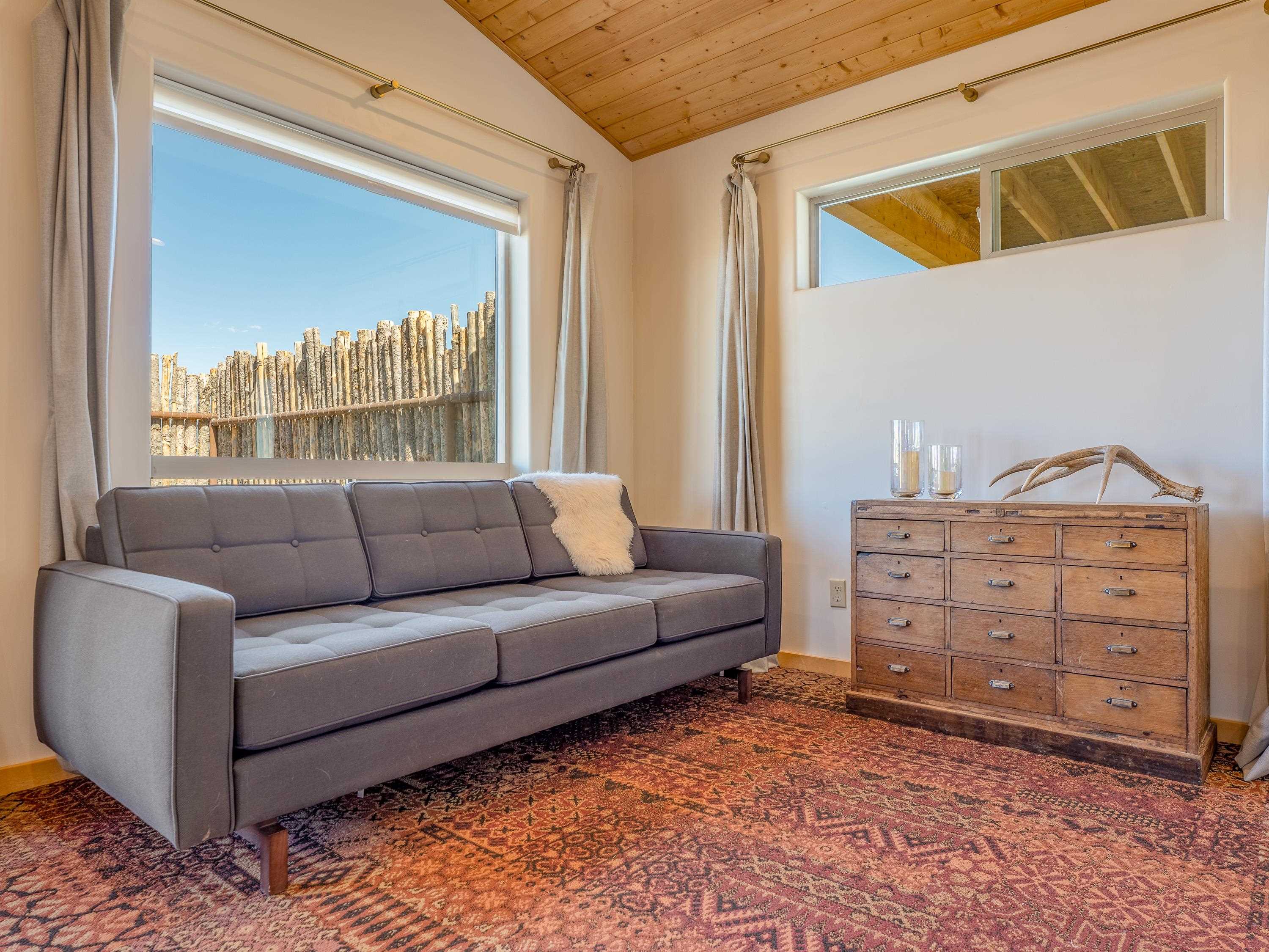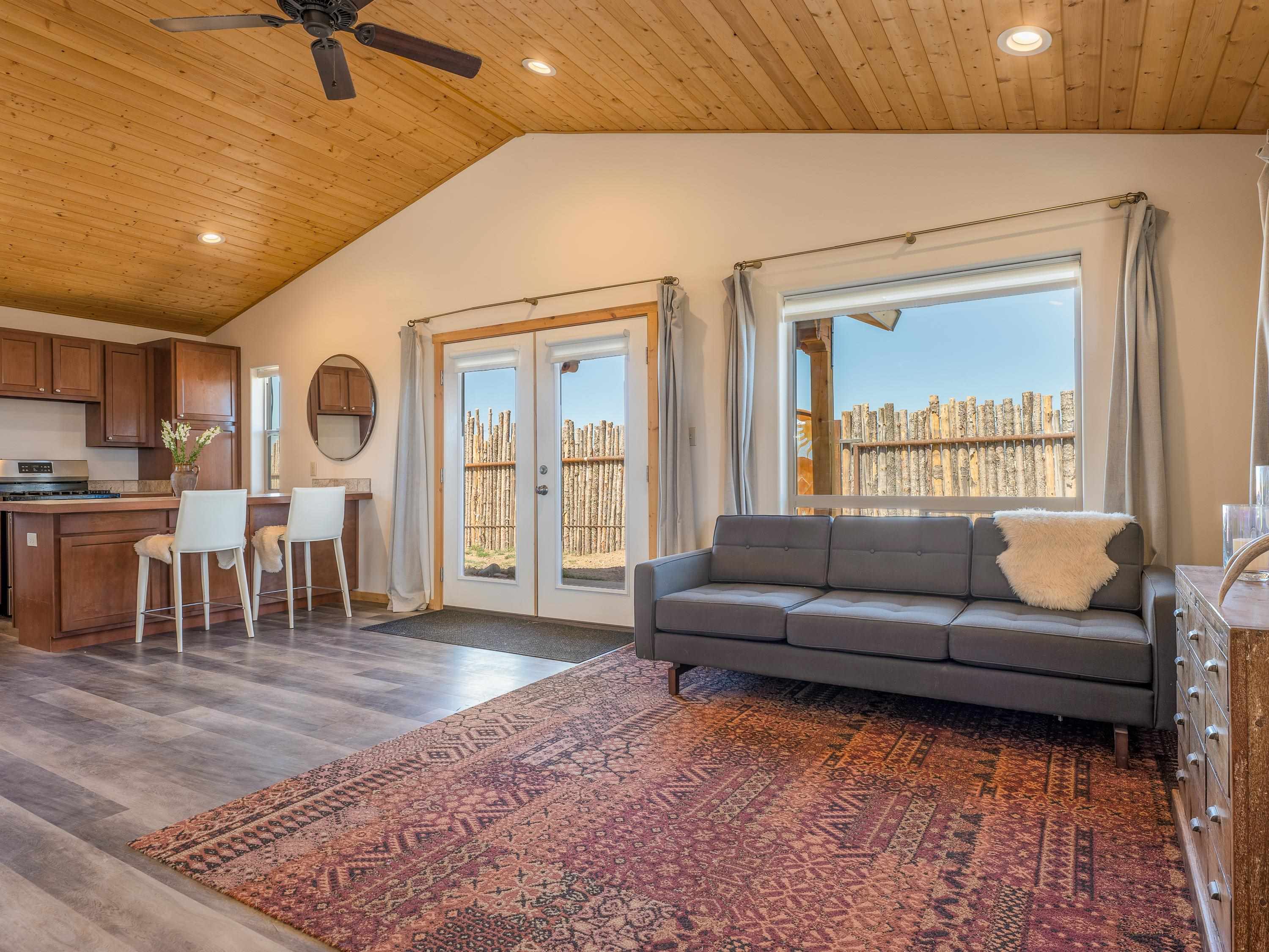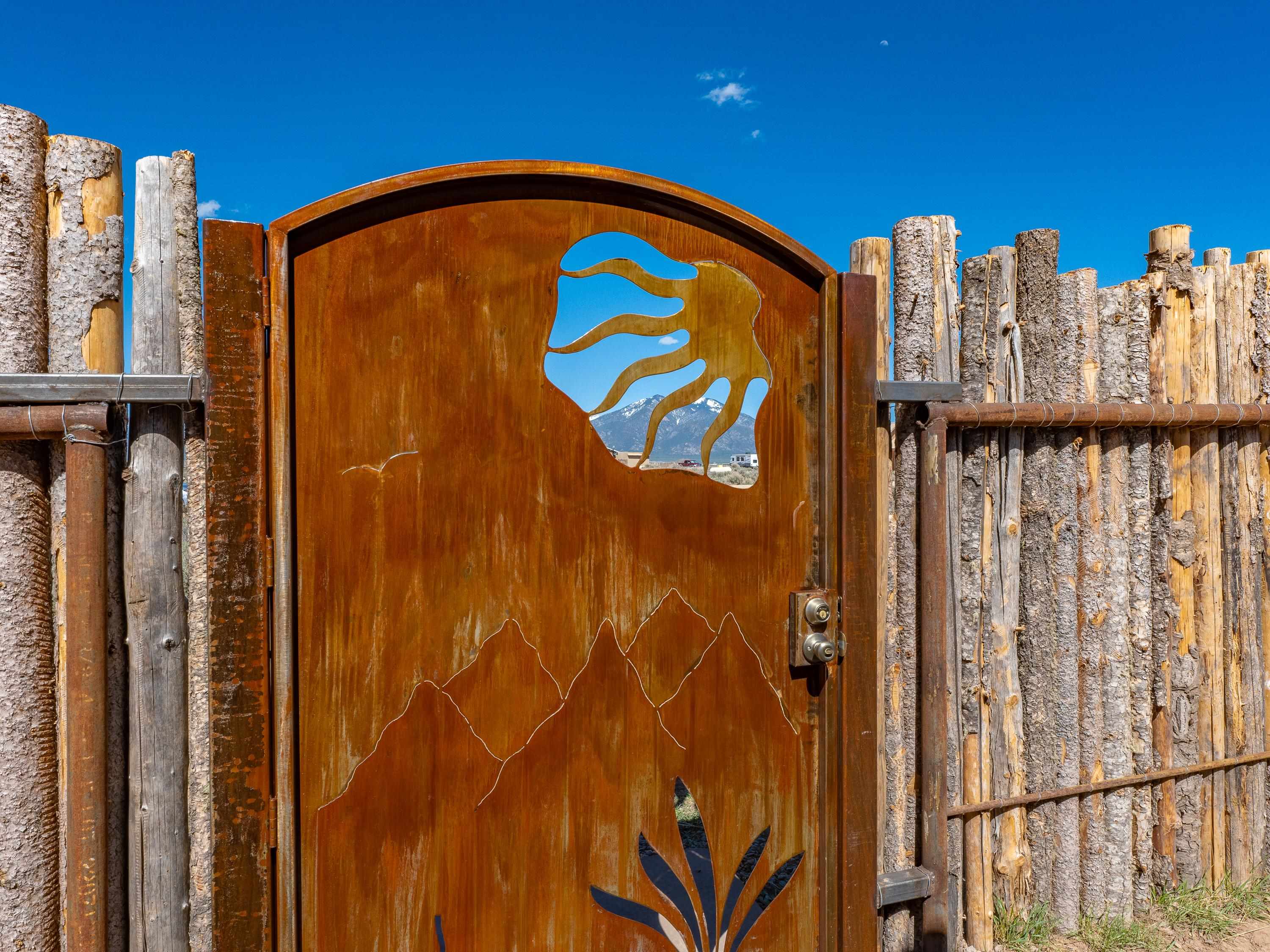 Tucked away at the end of a peaceful road, this recently-built 2 bedroom, 1 bathroom home is a cozy haven amidst nature's beauty. The neighborhood is situated adjacent to over 16,000 acres of Pueblo land. Surrounded by sagebrush and jaw-dropping mountain views, 15 Sacred Vista Road offers the serene ambience you’ve been craving. Step inside and be greeted by the open living and kitchen area with a vaulted ceiling and large windows with new custom shades from The Shade Store, letting in tons of natural light for a breezy feel. Outside, enjoy summer hangouts in the yard, with ample privacy from the large (250 linear feet), steel-framed latilla fence. The large corner lot provides ample room to expand your outdoor oasis, and an attached carport keeps you and your vehicle out of the elements. With recent upgrades like an eye-catching, handcrafted gate by artist Jose Varela and large storage shed on a concrete slab, this home has it all! Located only a quick 20-minute drive to the historic Taos Plaza, grocery stores, and shopping, 15 Sacred Vista Road epitomizes the perfect balance between tranquility and accessibility!