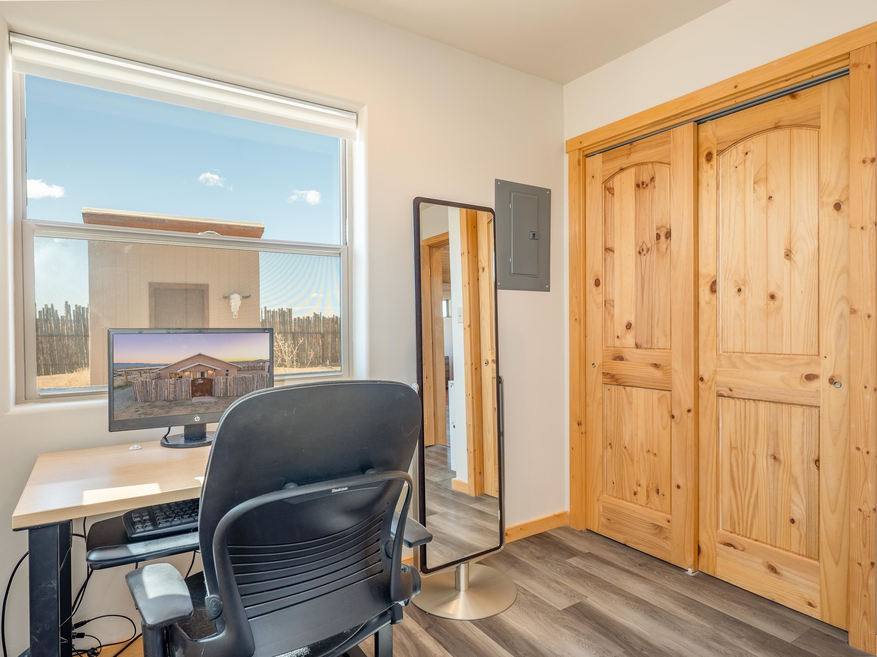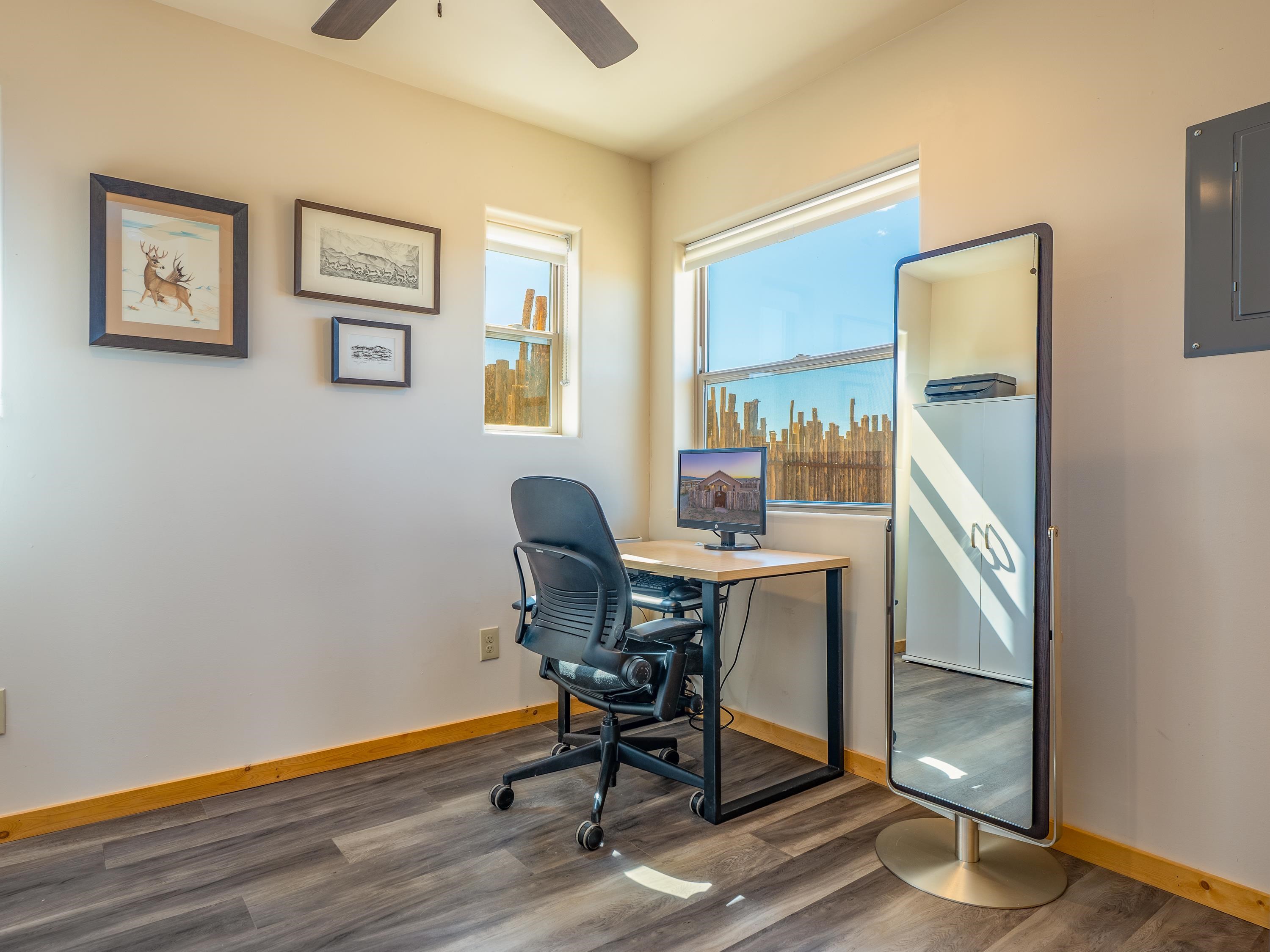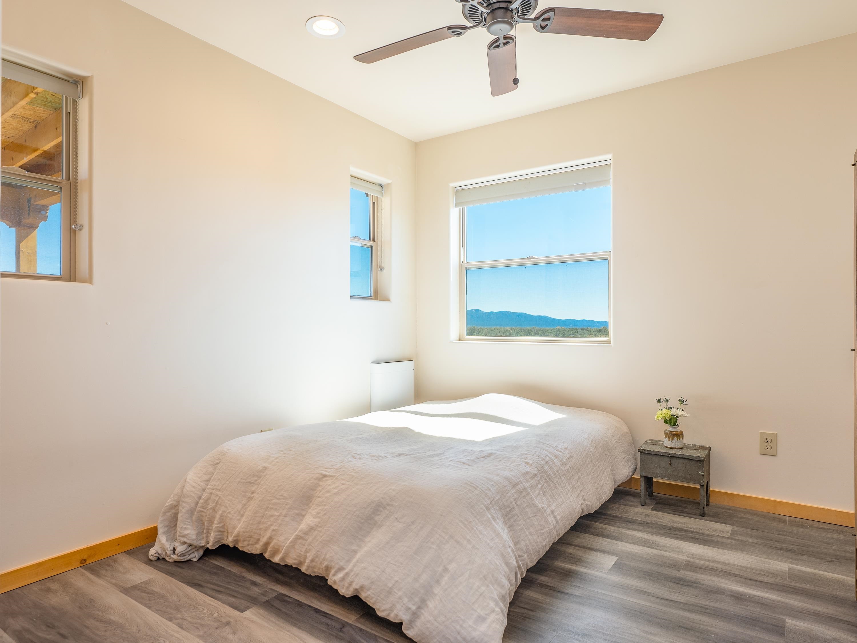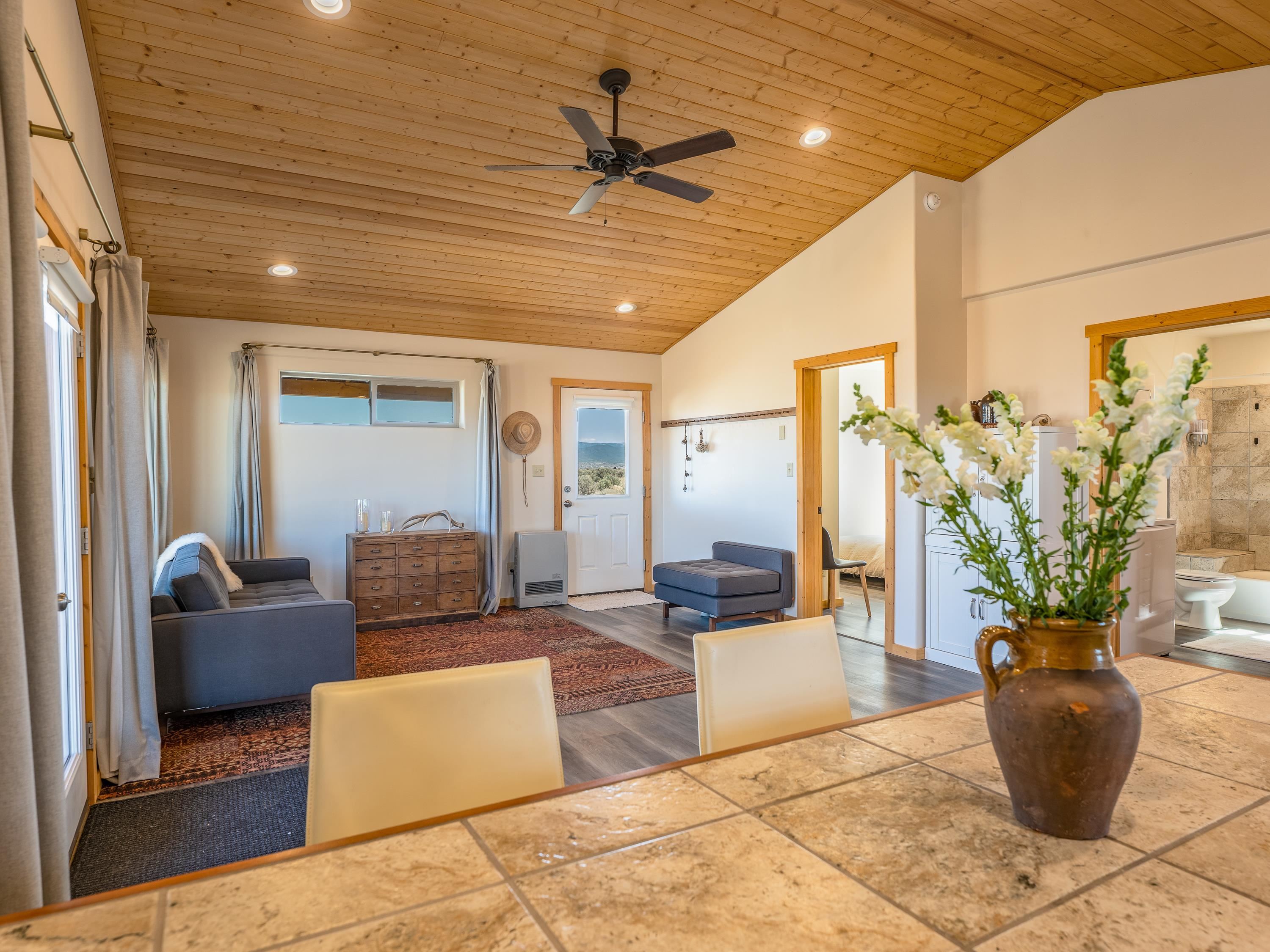 Tucked away at the end of a peaceful road, this recently-built 2 bedroom, 1 bathroom home is a cozy haven amidst nature's beauty. The neighborhood is situated adjacent to over 16,000 acres of Pueblo land. Surrounded by sagebrush and jaw-dropping mountain views, 15 Sacred Vista Road offers the serene ambience you’ve been craving. Step inside and be greeted by the open living and kitchen area with a vaulted ceiling and large windows with new custom shades from The Shade Store, letting in tons of natural light for a breezy feel. Outside, enjoy summer hangouts in the yard, with ample privacy from the large (250 linear feet), steel-framed latilla fence. The large corner lot provides ample room to expand your outdoor oasis, and an attached carport keeps you and your vehicle out of the elements. With recent upgrades like an eye-catching, handcrafted gate by artist Jose Varela and large storage shed on a concrete slab, this home has it all! Located only a quick 20-minute drive to the historic Taos Plaza, grocery stores, and shopping, 15 Sacred Vista Road epitomizes the perfect balance between tranquility and accessibility!