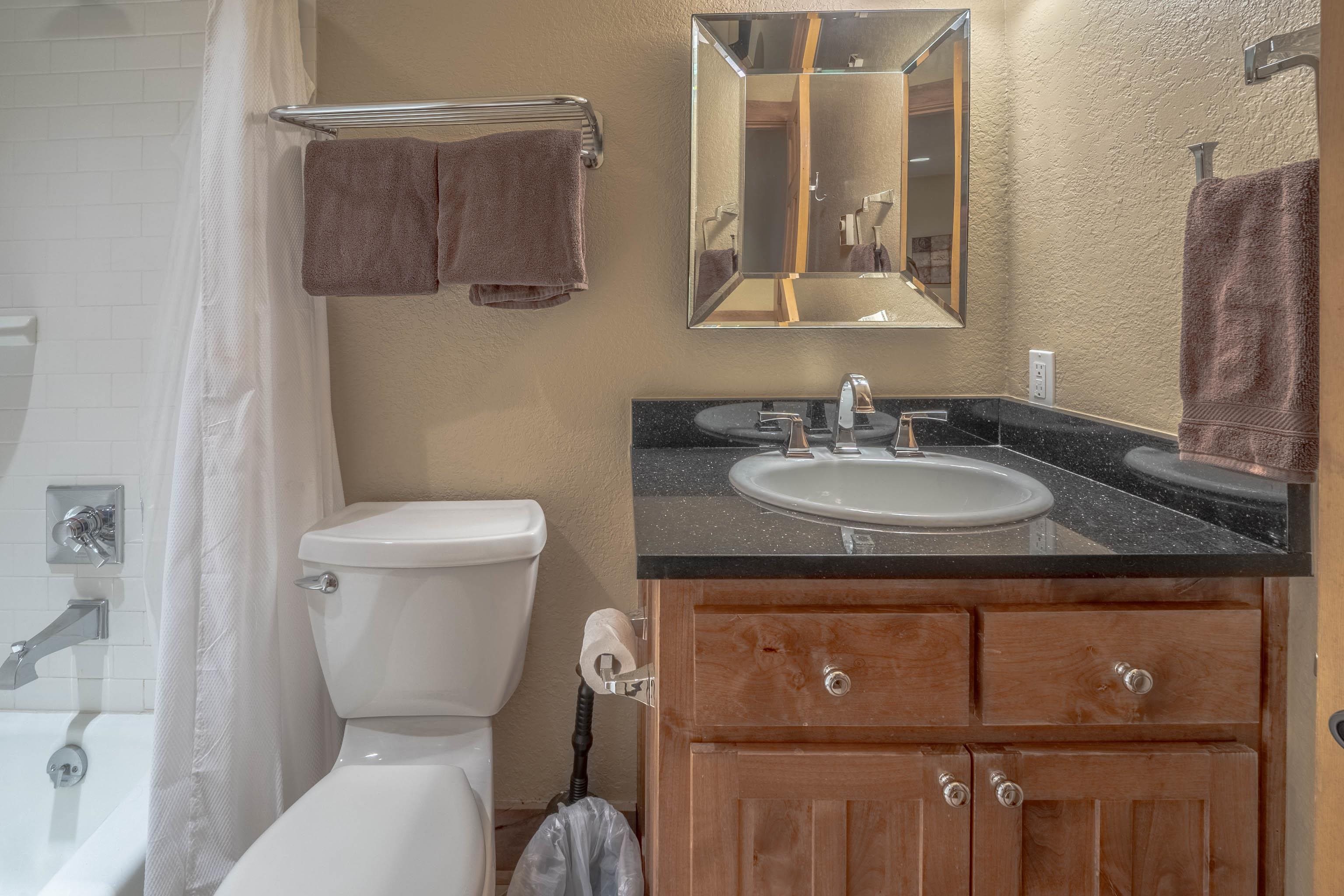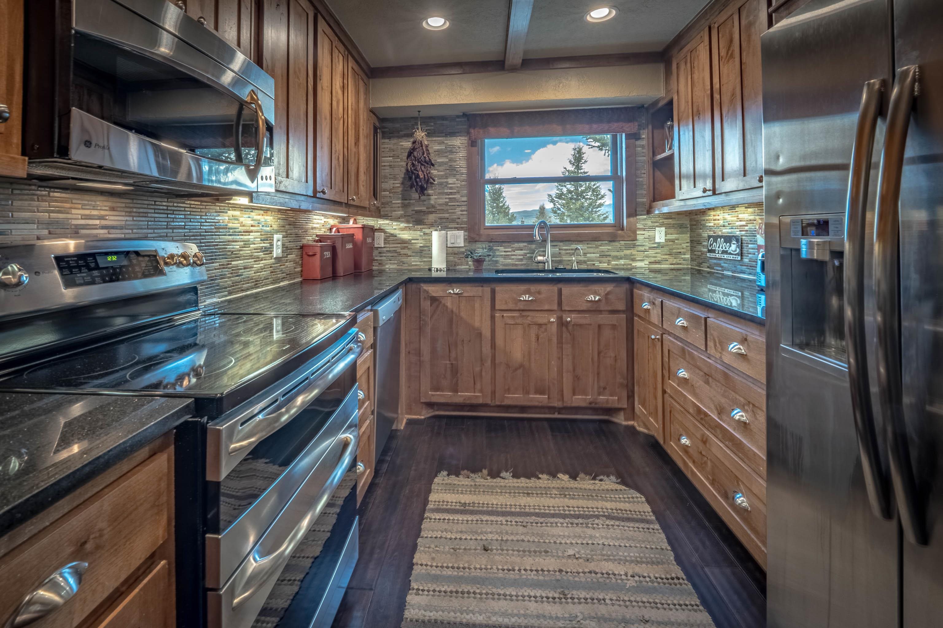 Beautifully remodeled, fully furnished condo near the slopes! This stunning home has 1,453 square feet, three-bedrooms, two-bathrooms, and is located just minutes from the ski and mountain biking resort. This home is modern, stylish, comfortable and located in a wonderful location in the resort. The open concept living area with hardwood flooring is ideal for entertaining, with high-end finishes, a contemporary kitchen, and cozy touches that make it feel like home. The stunning stacked-stone fireplace, with granite hearth, was converted to electric, creating a cozy yet upscale ambiance. The entire home is completely electric, so no gas expenses to calculate. The fully appointed kitchen features black galaxy granite countertops, knotty alder cabinets, custom tile backsplash with under-cabinet lighting, and stainless-steel appliances, perfect for cooking and entertaining. Each bedroom is spacious and inviting, with the third bedroom being a loft- style, non-conforming bedroom that currently has two queen beds, closets, skylights, and still room to add more sleeping options. Both bathrooms are finished with granite and tile, showcasing stylish fixtures and a clean, modern feel. The home is both elegant and inviting. This has been a successful short-term rental investment, ready to be turn-key or your next vacation getaway. There are no exclusions in this condo. Everything remains, and you just need to bring your toothbrush and get ready to enjoy year-round mountain adventures, or a hassle-free income producing property, or both. This one checks off ALL of the boxes!