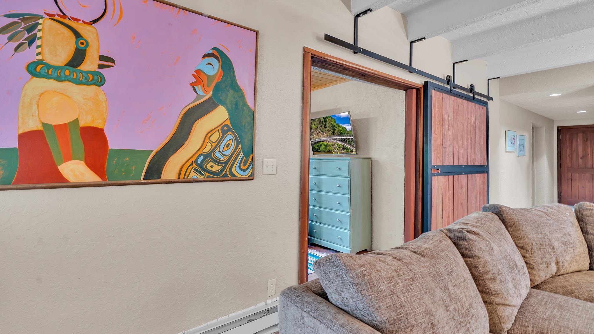 Rare Opportunity to Own at the Predock Near the Slopes of Taos Ski Valley ~ Located at the very beginning of Twining Road, a short walk from Lift 1 at world renowned TSV, you will discover this stunning 3-bedroom, 2-bath condo at the coveted Predock Condo Complex. The structure itself is masterpiece of modern architecture by the acclaimed Antoine Predock, a rare fusion of sturdy precast concrete design and natural beauty. Nestled on the sunny side of Taos Ski Valley, the condo offers breathtaking views of the village and Fraser Creek from expansive western-facing windows that flood the living room, solarium, and second added bedroom with New Mexico sunshine. High ceilings and a cozy living area create an inviting atmosphere, complemented by an updated kitchen, dining room, plenty of storage, and a convenient in-unit laundry area. Step out onto the private deck from the third bedroom to enjoy picturesque views of Al's Run and the "Front Side." Beyond its appeal as a luxurious mountain retreat, this property also has exceptional investment potential with complete rental management freedom, at a prime location on the Mountain. As an owner, you'll also benefit from an HOA-covered ski locker in the village, making it easy to hit the slopes whenever you please. Cozy up around the Southwestern adobe inspired wood stove with a traditional bancito after a long day on the slopes, or head out to experience world-class hiking at Williams Lake, elk & deer hunting on Gold Hill, fly fishing in the Rio Hondo, mountain biking and rock climbing on the "Back Side," near the Bavarian Restaurant, or hit the Apres scene a short trek from your front door. Don't miss this incredible opportunity to own a piece of Taos Ski Valley, at the highly sought after Predock Condo complex at a steal of a deal!