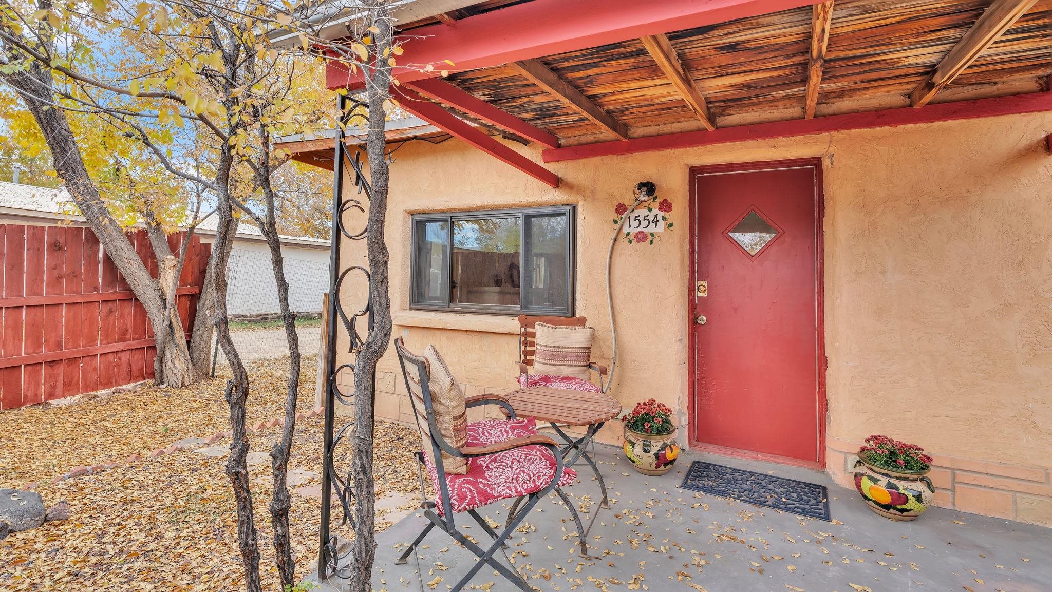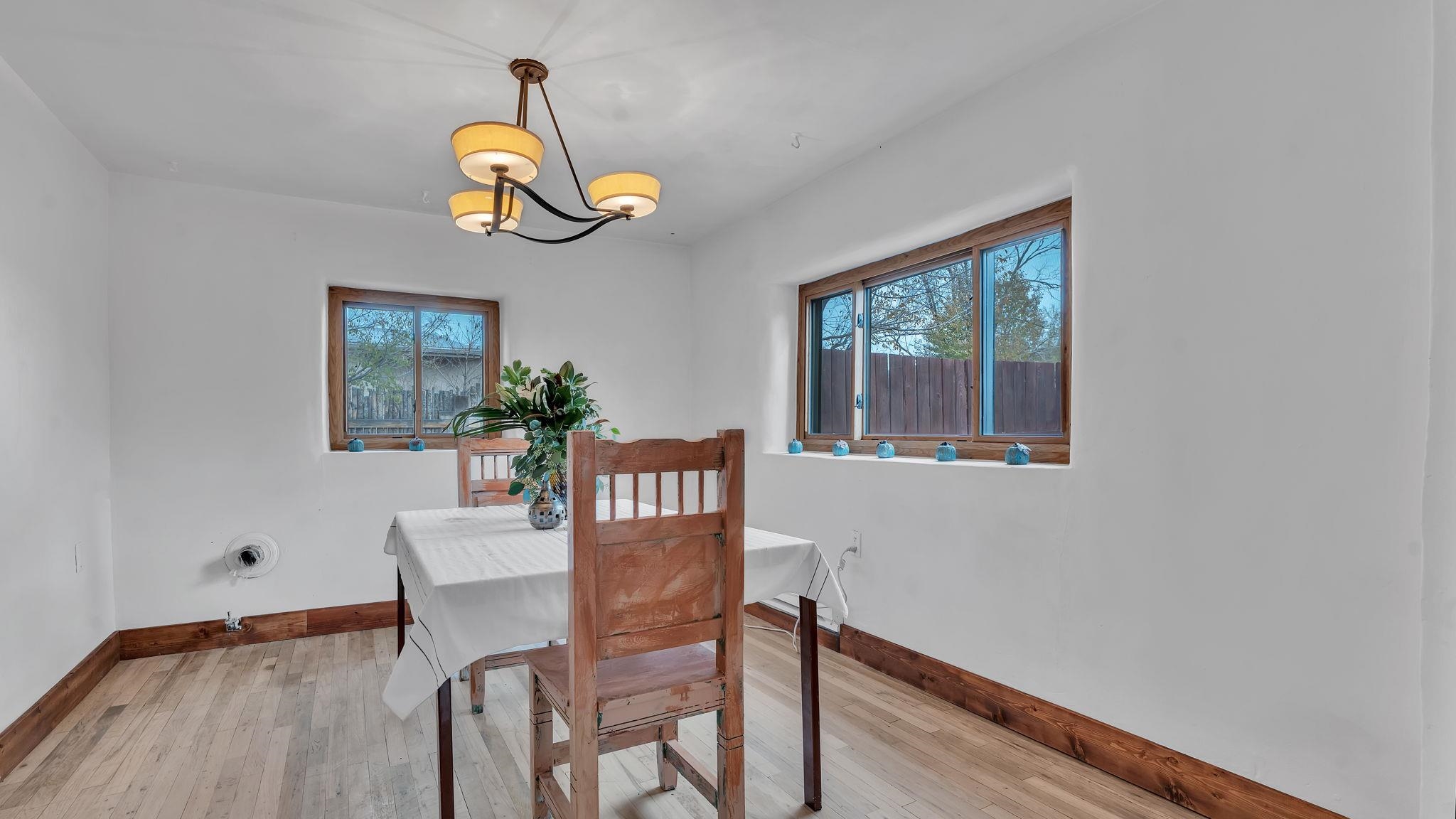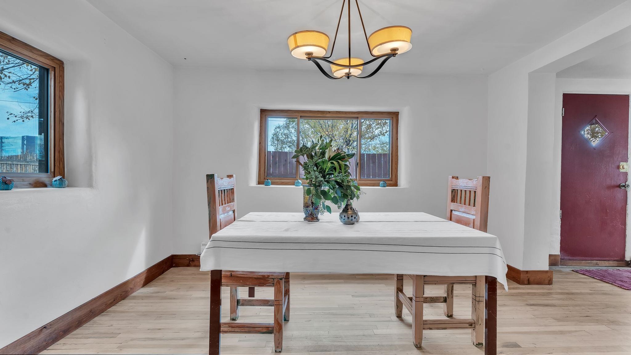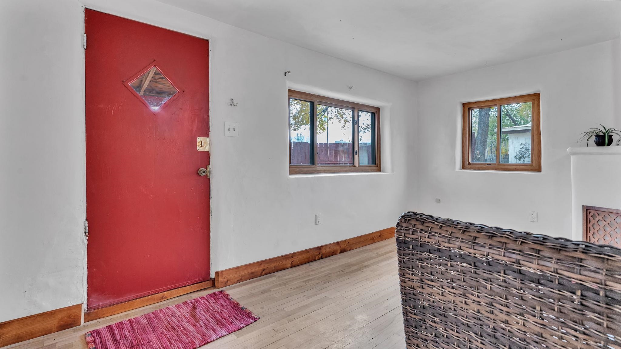Traditional Taos Adobe with all the Modern Comforts in Ranchos de Taos ~ Tucked privately behind mature trees just off the main road, this beautifully renovated Taos adobe and block home offers a unique blend of timeless Southwestern character and modern convenience, priced to sell. Upon stepping in the home, you'll immediately appreciate the bright, comfortable atmosphere created by abundant natural light and stunning, newly refinished hardwood floors. The 2 bed home has been meticulously updated with brand new windows, contemporary fixtures, and a updated bathroom featuring beautiful, traditional tile work. The kitchen comes fully equipped with nice stainless steel appliances and includes a full-size washer and dryer. Outside, a spacious front yard provides a peaceful buffer from the road, leading to a large backyard perfect for entertaining, which includes a smaller, enclosed area ideal for pets or play. A fantastic bonus studio/storage room provides flexible space and houses a dedicated full-size washer and dryer room, complemented by an attached one-car garage. This is the full package, priced to sell, in lovely Ranchos de Taos, New Mexico.