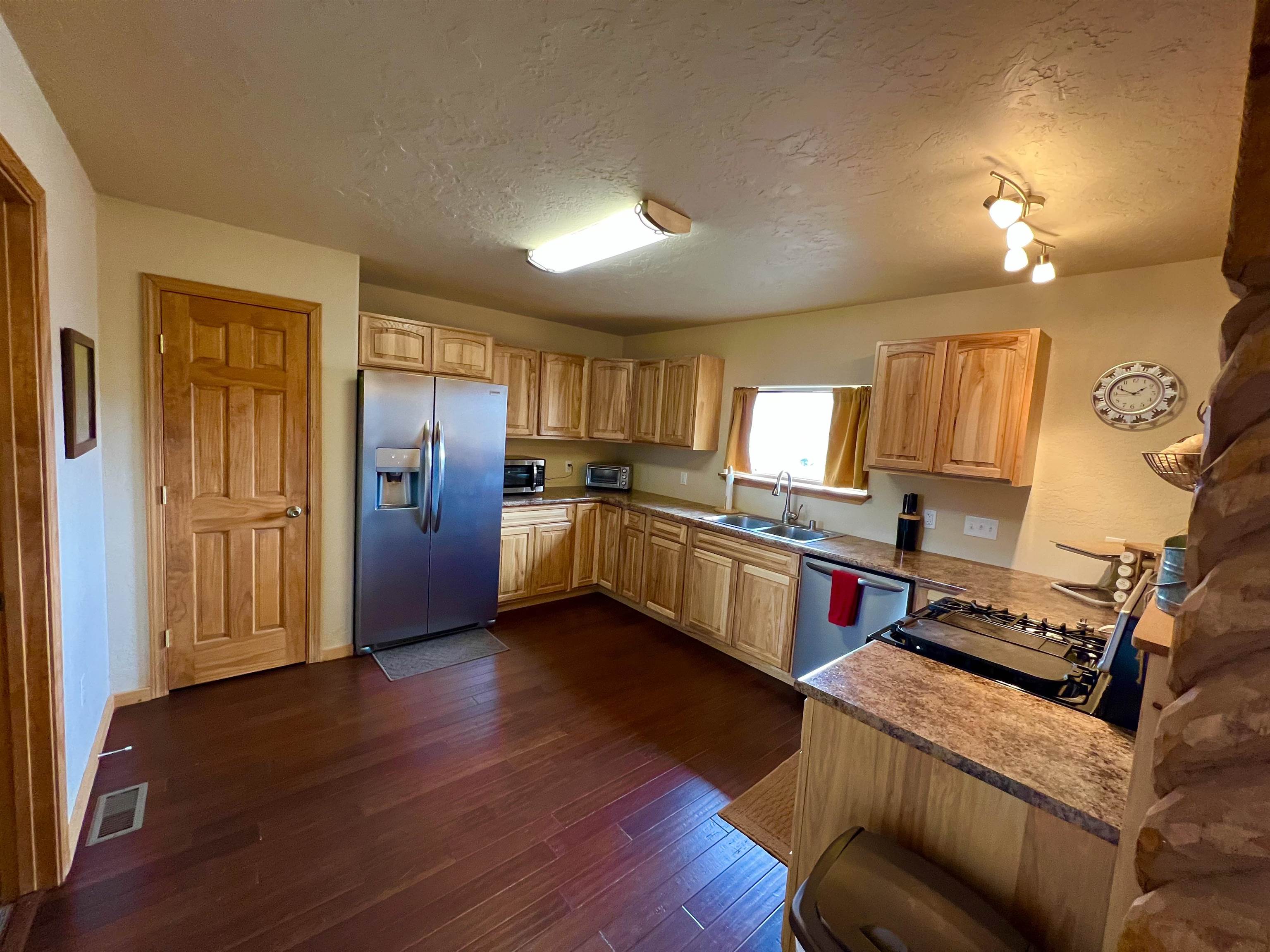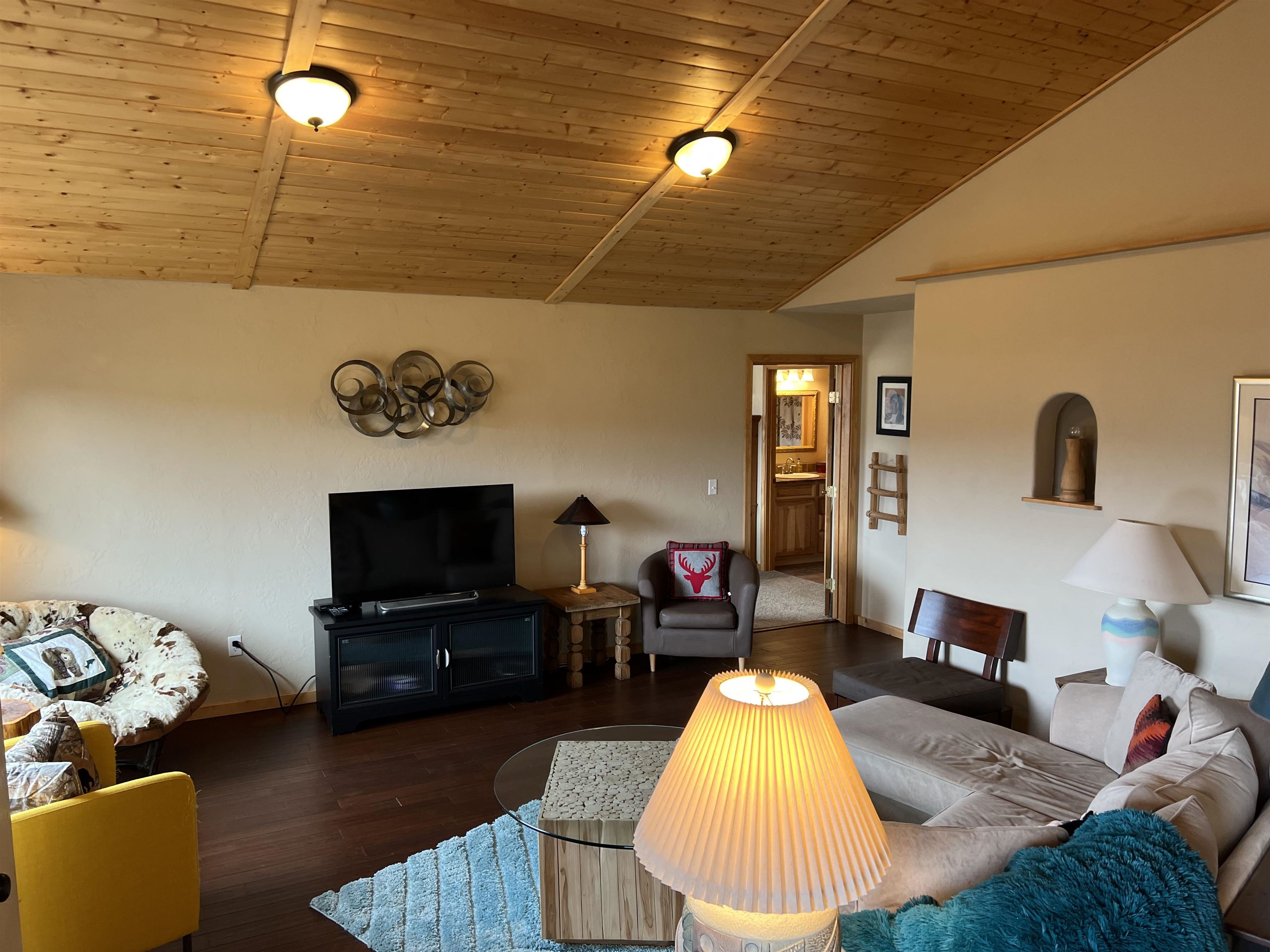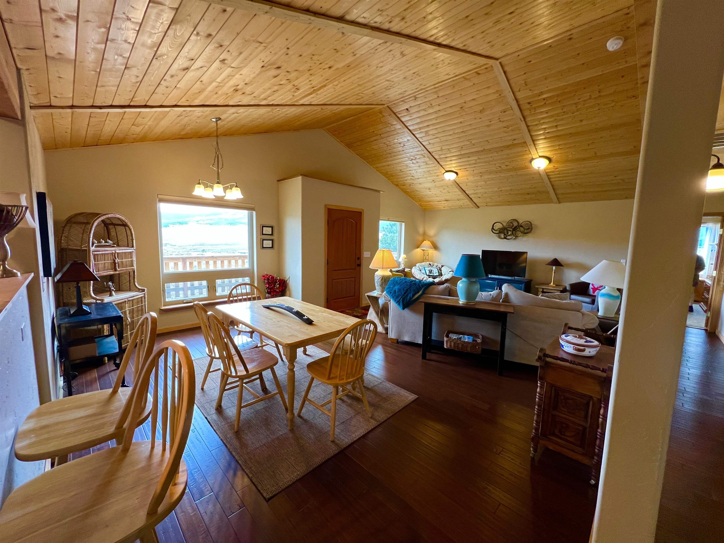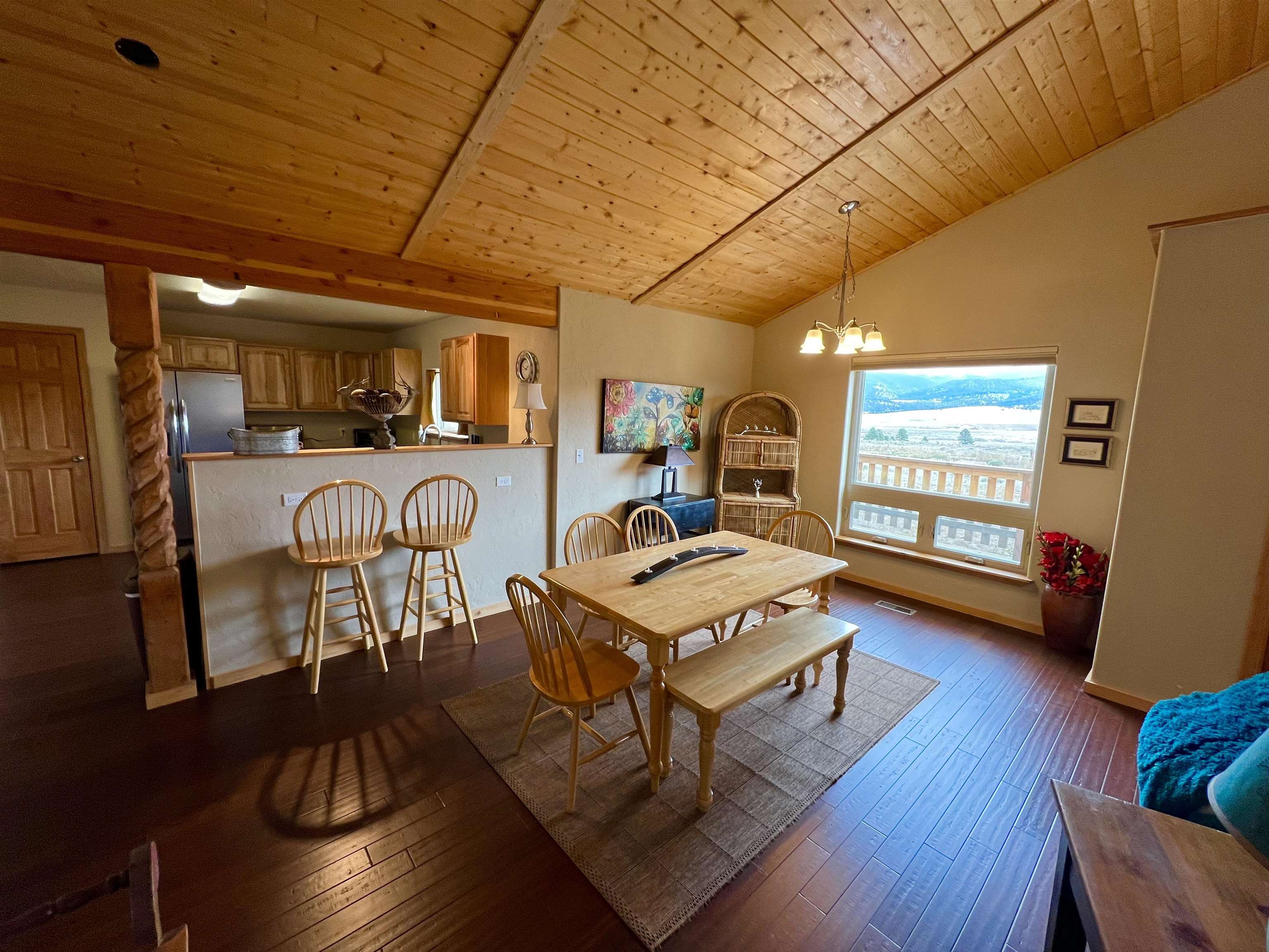 VIEWS, VIEWS! This Ranch style home sits on a hillside with 360deg views of he Moreno Valley, Angel Fire Ski Mountain and Eagle Nest Lake. Only 6 years old, this well built stucco home has an attractive floor plan with open space kitchen, dining and living room. The master boasts a large walk-in closet, private deck and walk in shower. The ample size kitchen has a pantry and stainless appliances with lots of counterspace! The 2.5 acre lot is ready for your special landscaping trees and gardens for outdoor enjoyment! Relax on the large front deck overlooking the Sangre de Christo Mountain Range where you will witness Elk Herds, and many other wildlife neighbors!