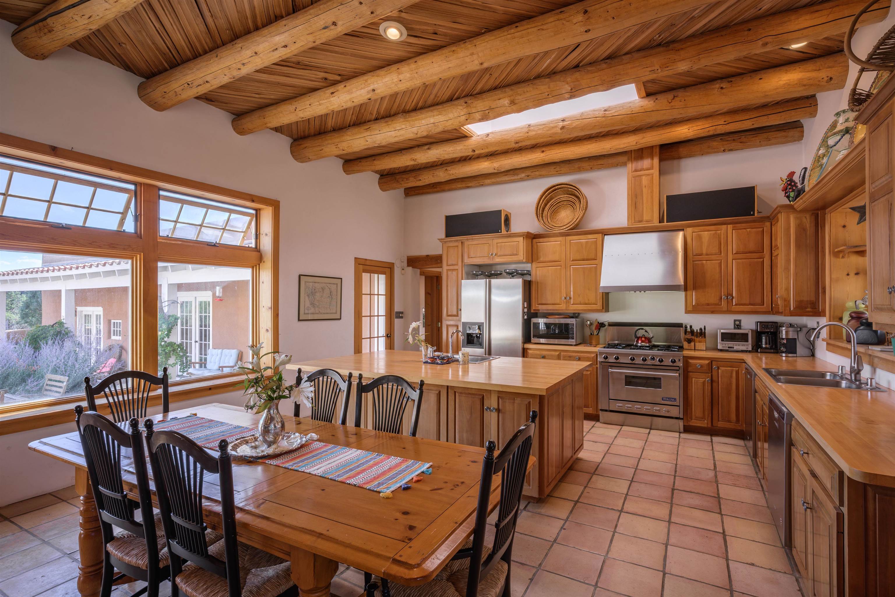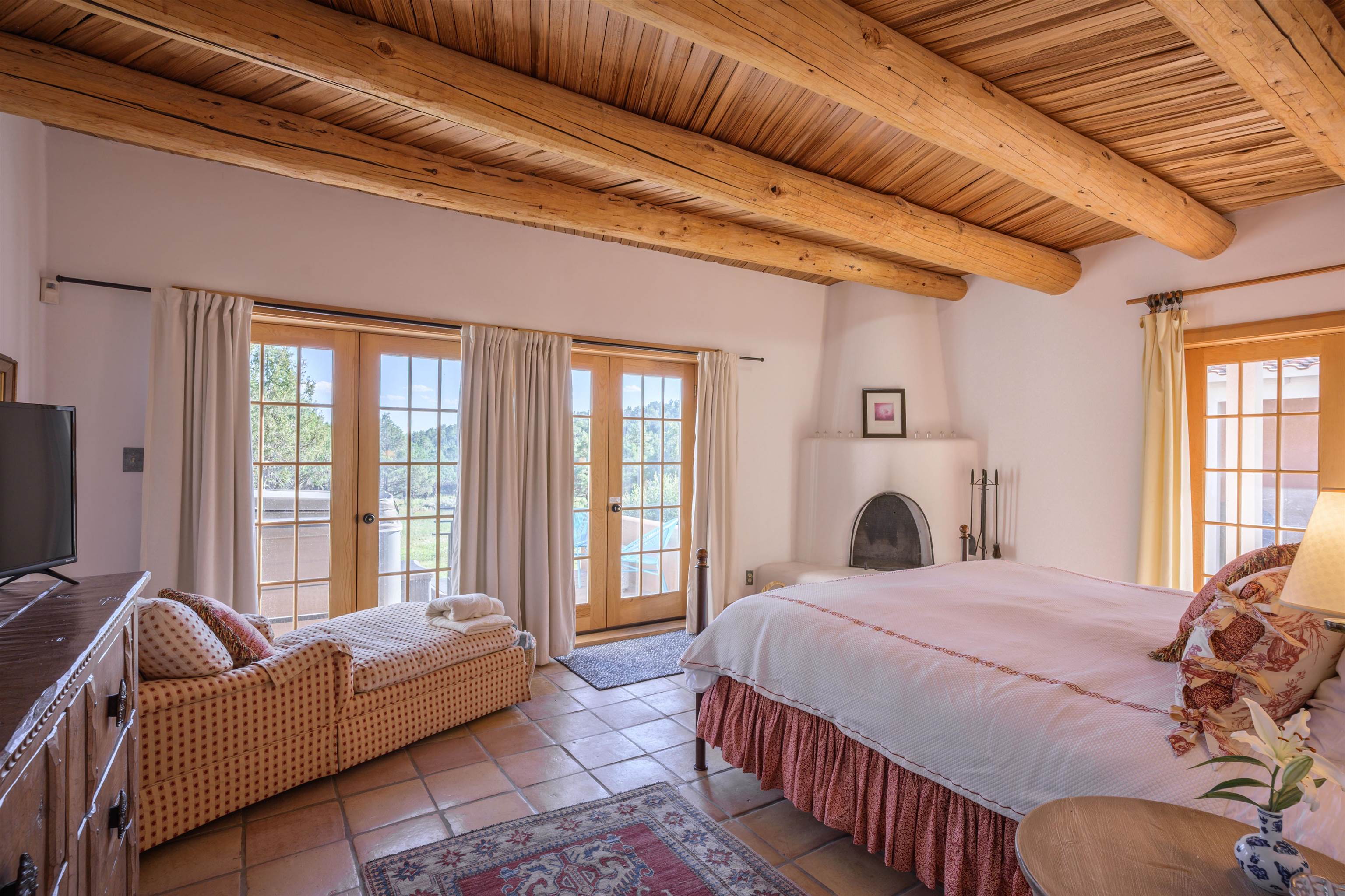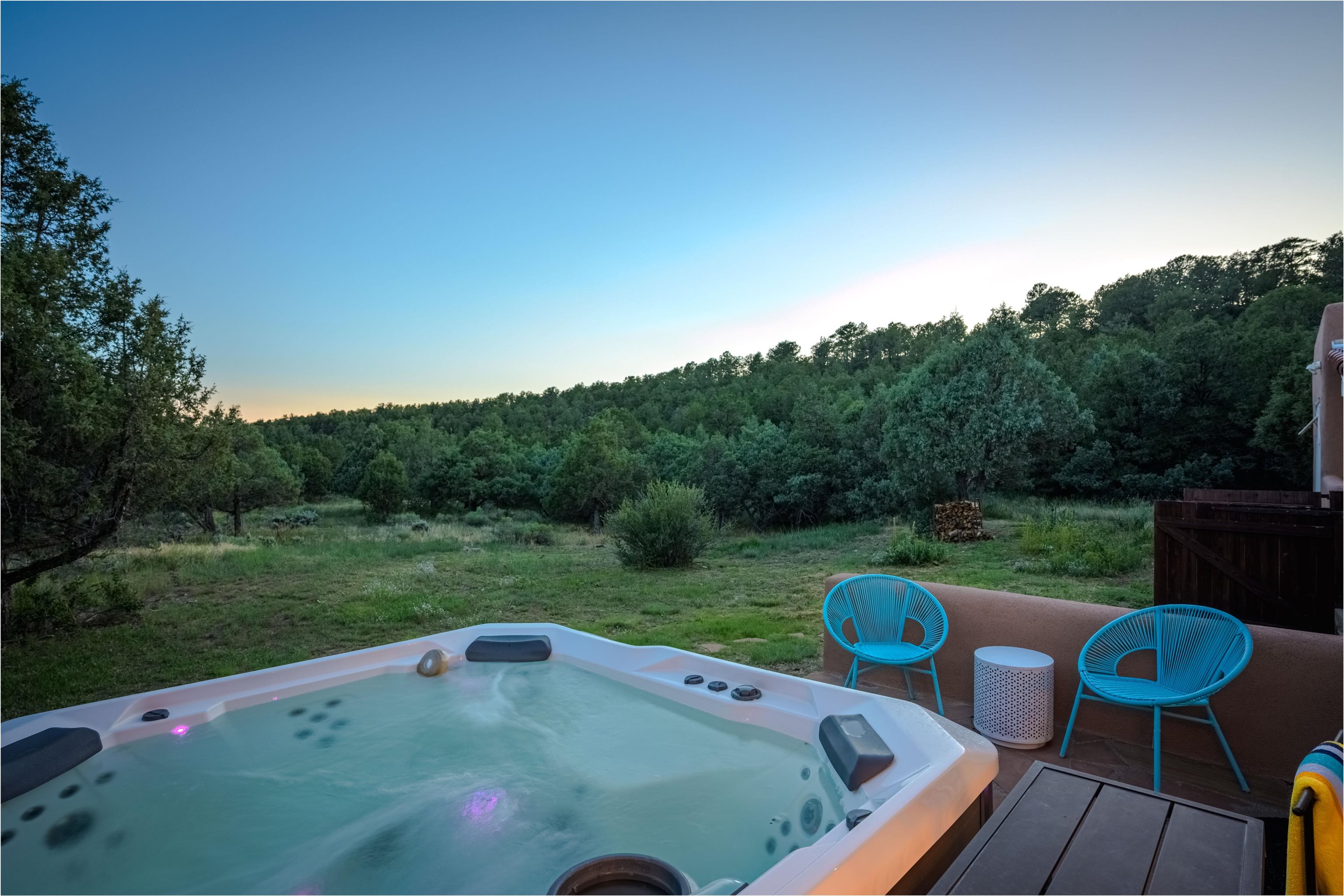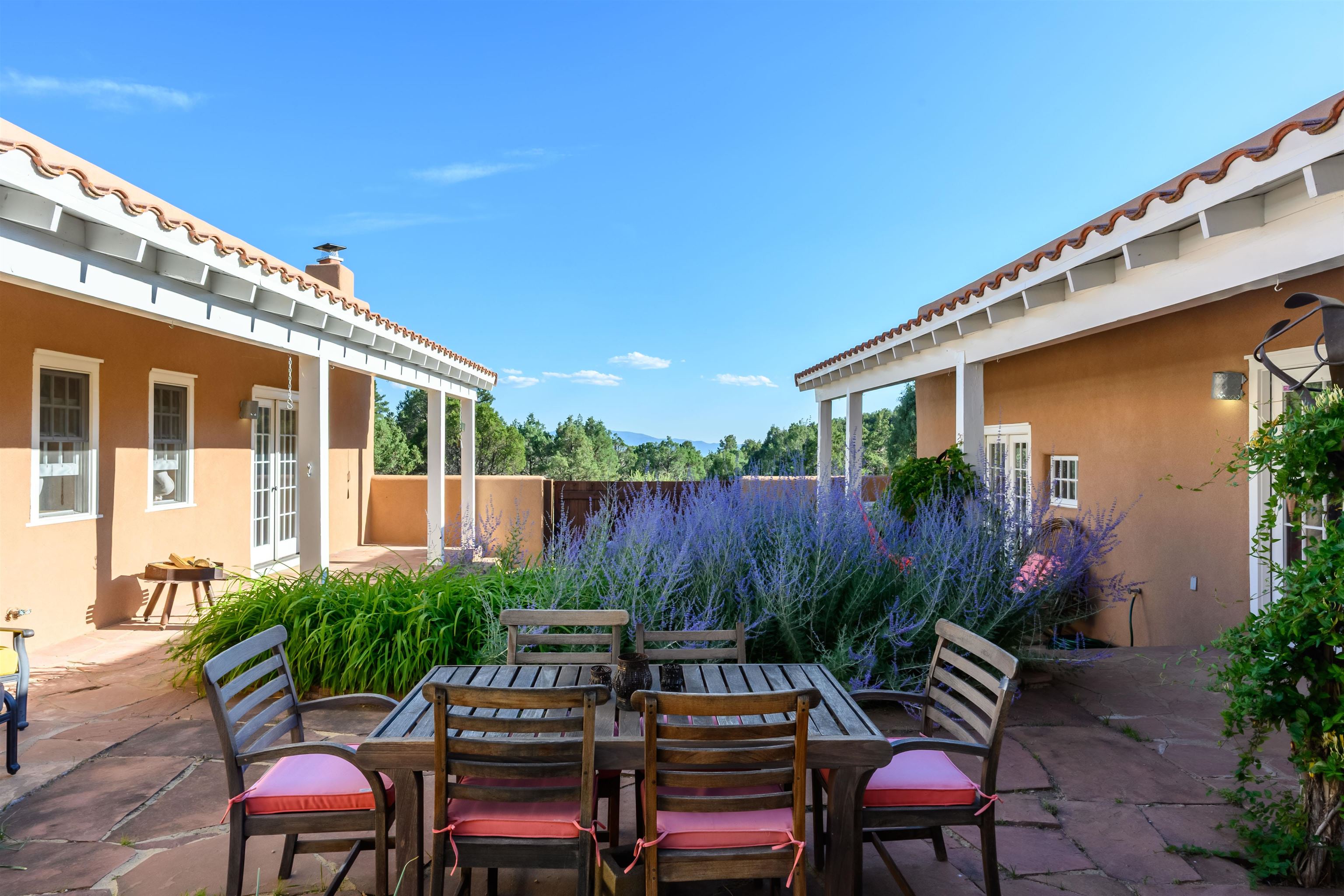 Exquisite Adobe Hacienda Nestled in the Taos Foothills ~ Escape to this exquisite 3,360-square-foot Hacienda sanctuary, with a Barn and Tack Room, set in the lush foothills of Taos. Here, you will encounter a seamless blend of traditional Pueblo-style Adobe architecture and contemporary luxury. As you enter through the perfectly manicured yard and inviting mudroom with built-in bancitos that is flooded with natural sunlight, you will be greeted by of the warmest interior spaces in New Mexico. Classic Southwestern charm fills the residence, highlighted by Saltillo tile floors, viga and cedar shake ceilings, exposed beams, and smooth diamond finish plaster walls. The home's U-shaped design, inspired by traditional haciendas, centers around a tranquil and enclosed zen courtyard. An open-concept living, dining, and gourmet kitchen area is ideal for entertaining in a chef's kitchen with a 6-burner Viking cooktop, dual sinks, double dishwashers, and custom made cabinetry. Three handcrafted Kiva fireplaces offer a cozy place to relax after a long day of skiing or snowboarding and world renowned Taos Ski Valley located right down the road. The home's thoughtful layout separates living spaces into two wings: one hosts the luxurious primary suite with a spa-like soaking tub, a private HotSpring tub out the french doors, along with a spacious guest bedroom featuring its own ensuite. The second wing includes a third bedroom, bathroom, and a large family room complete with a wet bar, and bunkbeds. Practical features of the home include a large laundry center, a detached three-car garage, a Nest powered security system, high-speed internet, and a 1,000-gallon propane tank. Equestrian enthusiasts will appreciate the two-stall barn with a tack room, turnout, and riding arena, along with direct private access to Carson National Forest for endless riding or hiking. Watching wildlife like elk, deer, birds, etc…with magical sunsets and sunrises. Being part of a fire-wise community, this residence benefits from gated access and main road maintenance covered by the Turley Mill HOA. Do not miss the rare opportunity to own this top quality, timeless, and deeply loved estate in the lush foothills of Taos, New Mexico with proven income potential.