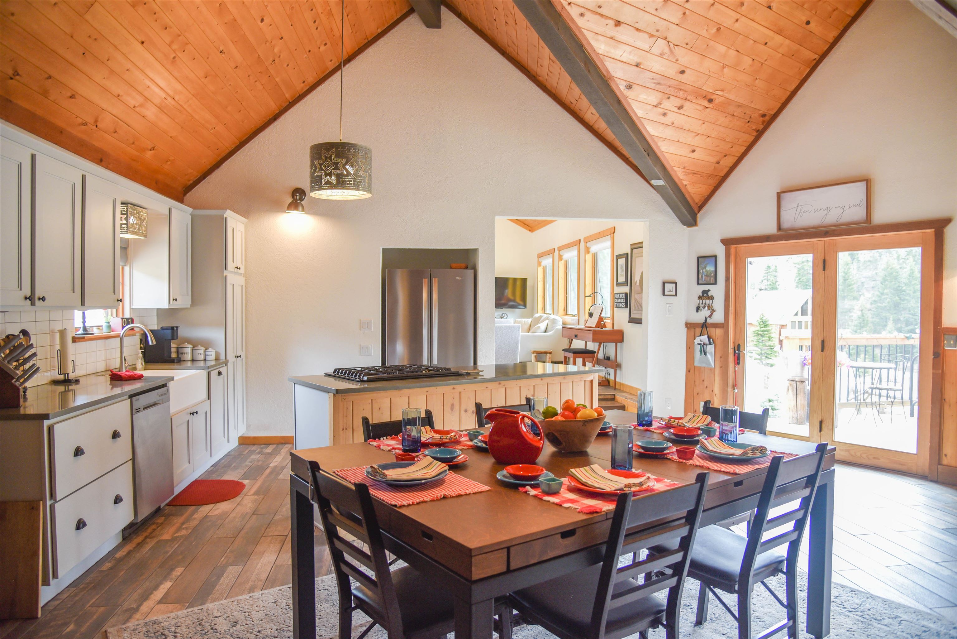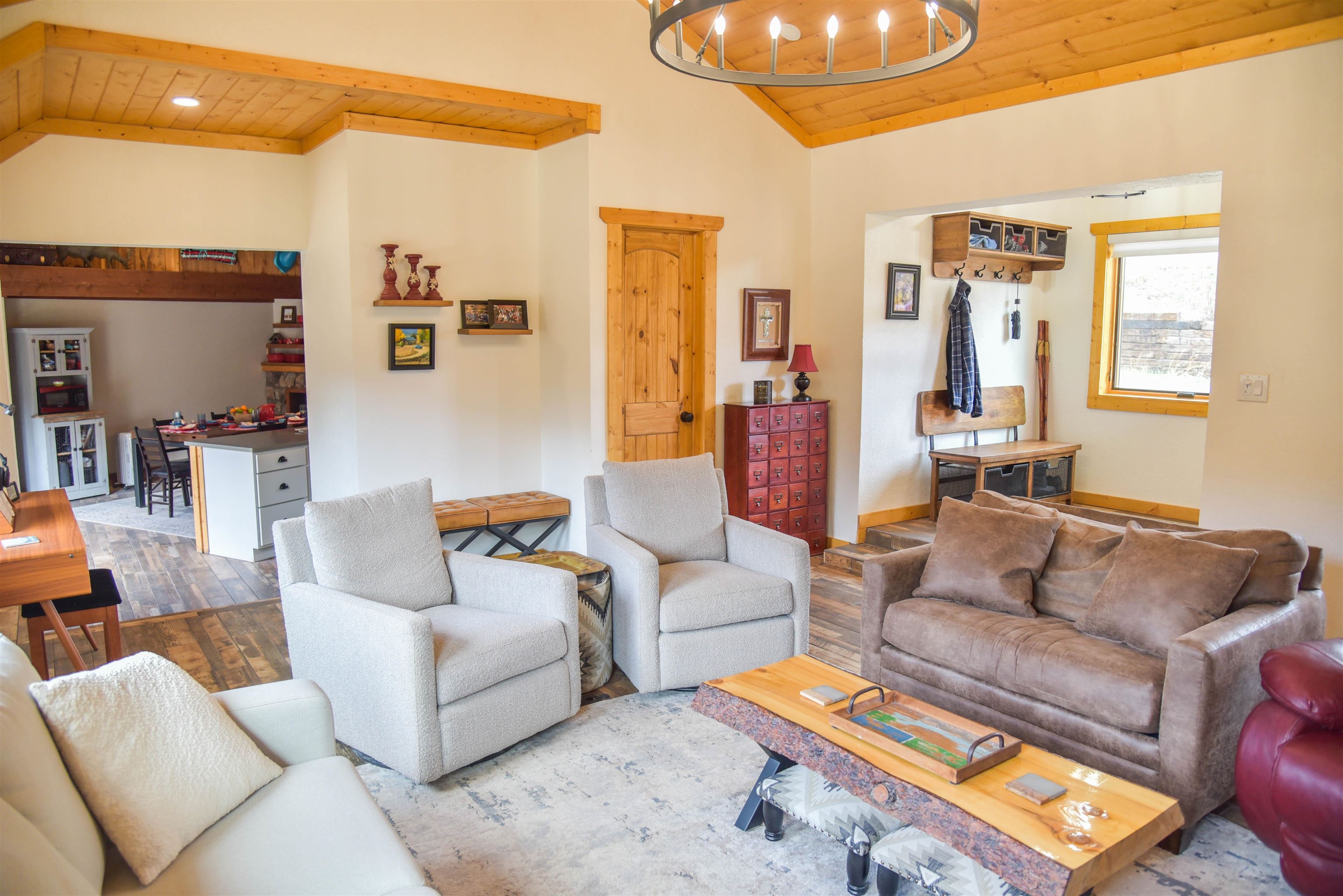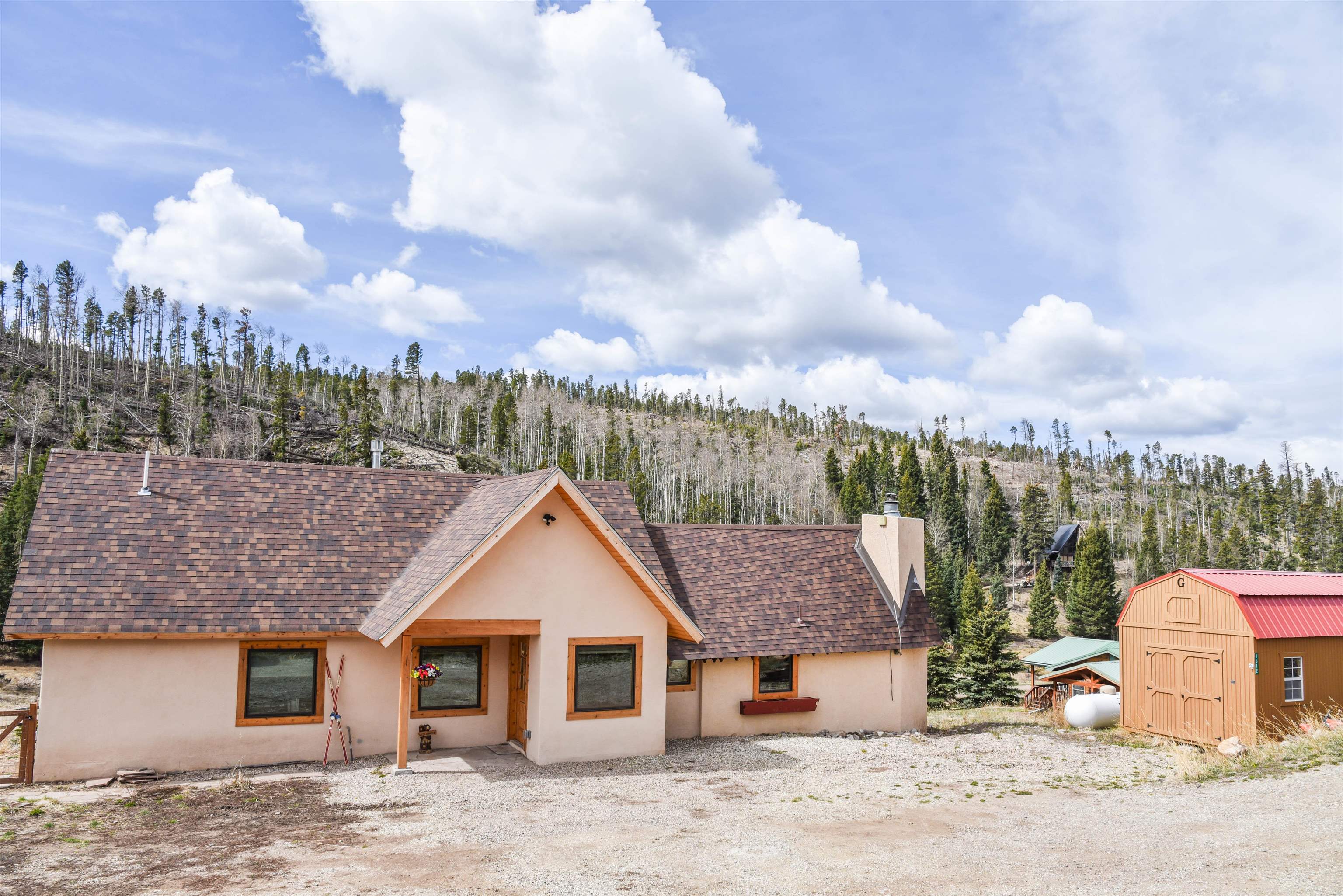 This fantastic mountain home is a perfect spot for enjoying the great indoors and outdoors! The original cabin was built in 1995. The current owner added on a gorgeous living room, guest room and a bath and a half bath. The original part of the house has also been partially renovated. This home is tastefully decorated, with all new appliances and porcelain tile flooring. There's a cozy little ladder-up loft with a queen size bed for additional sleeping. The home sits on a little over an acre and has views and hiking possibilities. The roof was replaced in 2022. There's also a storage building on the property and the well has a new pump. An extra bonus: there's a natural spring that runs on the property year 'round.
