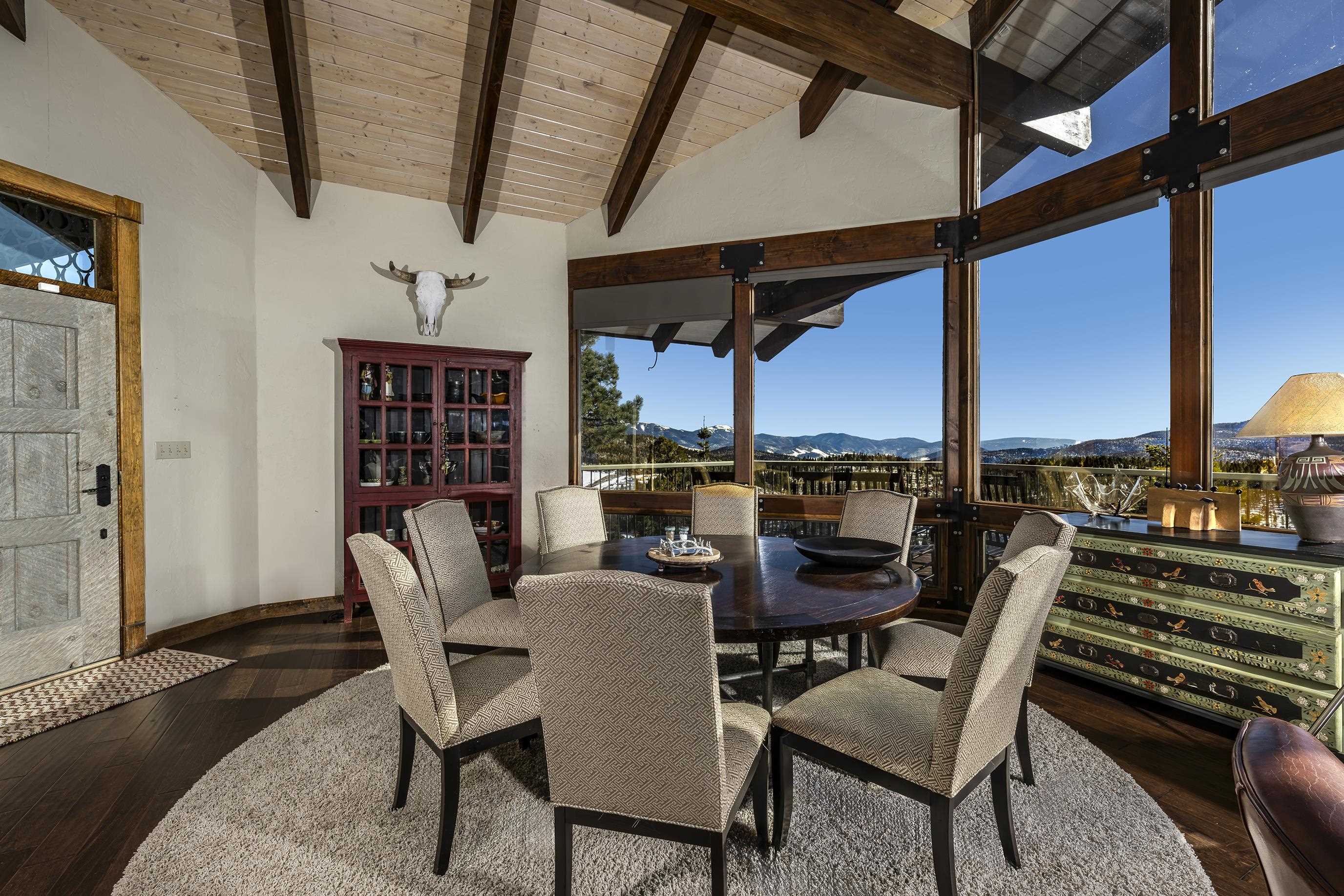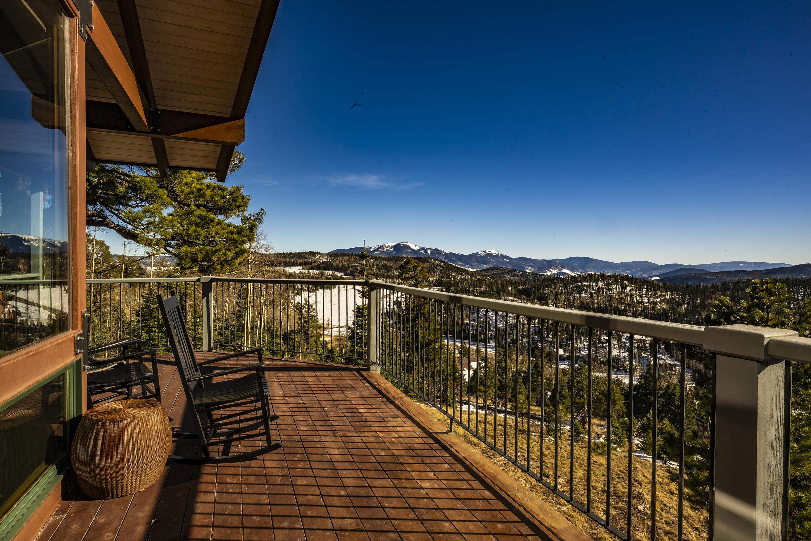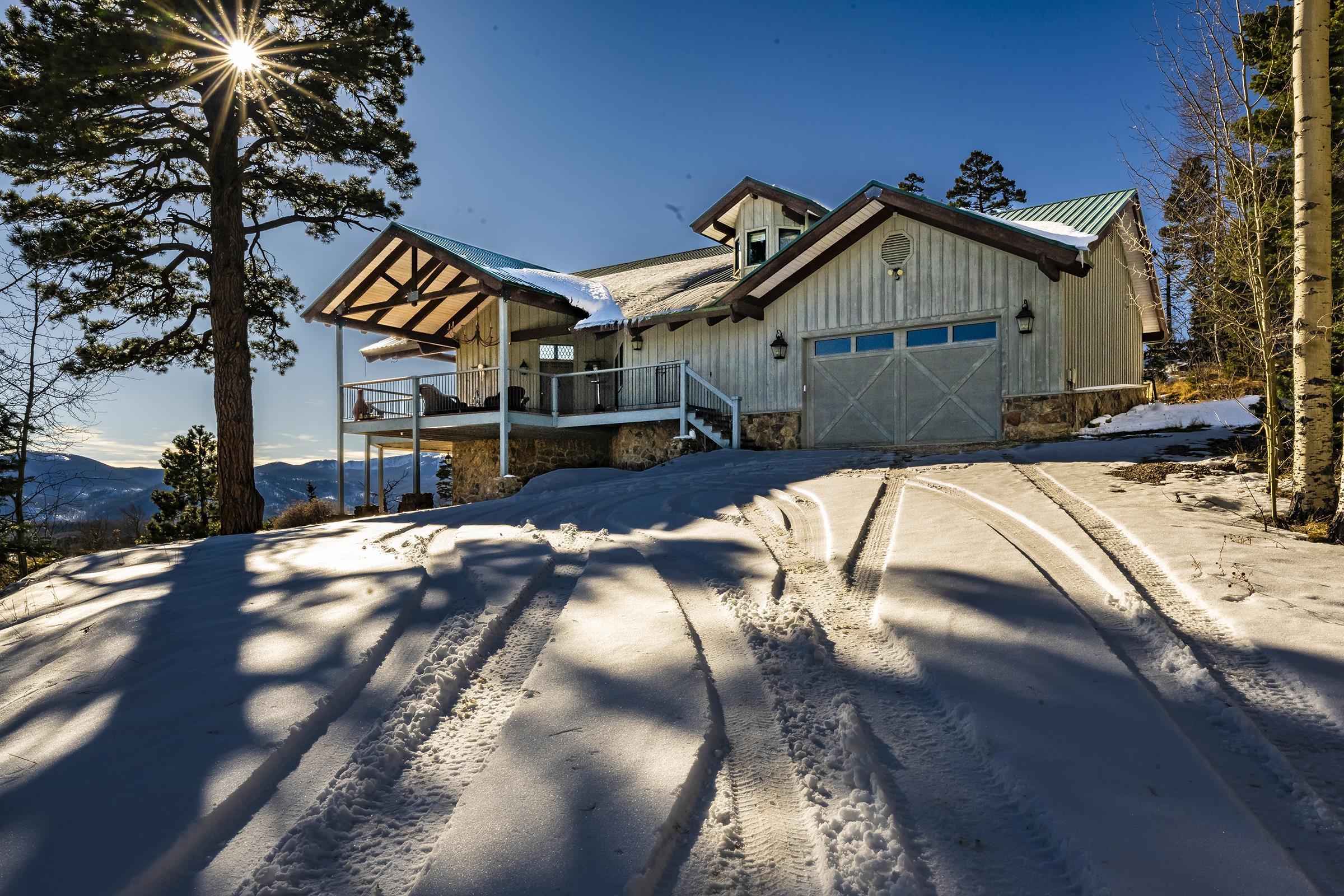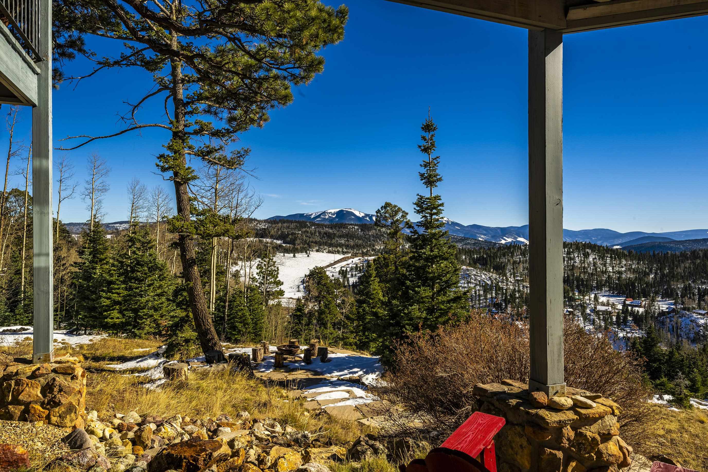 Set on nearly 5 acres of pristine mountain land, this exceptional luxury home offers breathtaking panoramic views of Wheeler Peak and Baldy Mountain. Just 5 minutes from Red River, this expansive residence seamlessly blends superior craftsmanship with the natural beauty of its surroundings, presenting a rare opportunity for the ultimate mountain lifestyle. The open-concept great room features soaring ceilings, a striking wet bar, and large windows that showcase the stunning views. The gourmet kitchen, with its sleek quartz countertops, flows effortlessly into the living area. Radiant floor heating ensures year-round comfort, while southern exposure allows for passive solar gain, flooding the home with natural light. The home offers two luxurious primary suites, each with oversized ensuite bathrooms and walk-in closets. One suite opens to a private hot tub, providing a peaceful retreat with sweeping mountain views. Additionally, a bunk room and a spacious loft offer plenty of room for family and guests. Outside, enjoy a private fire pit and expansive outdoor living areas—ideal for entertaining or unwinding under the stars. A studio guest house with an attached 4-car garage adds privacy for visitors or extended family. Fully furnished and ready to enjoy, this extraordinary mountain retreat combines privacy, luxury, and natural beauty—a perfect sanctuary for those seeking the finest in mountain living.