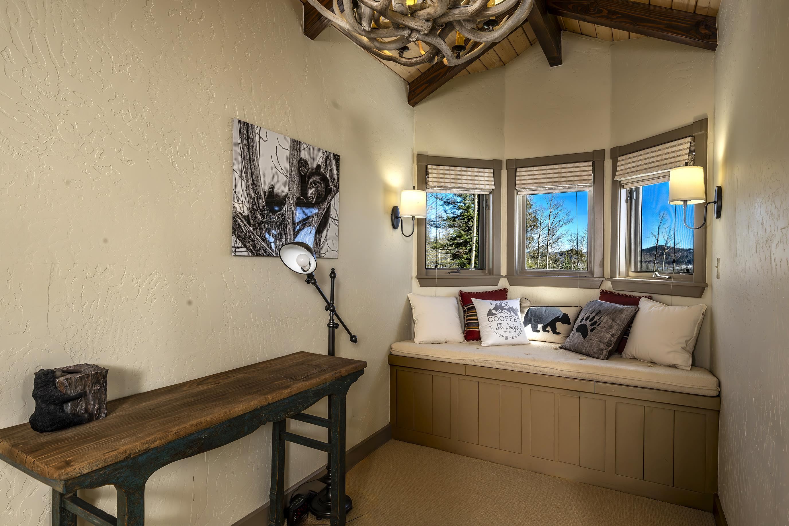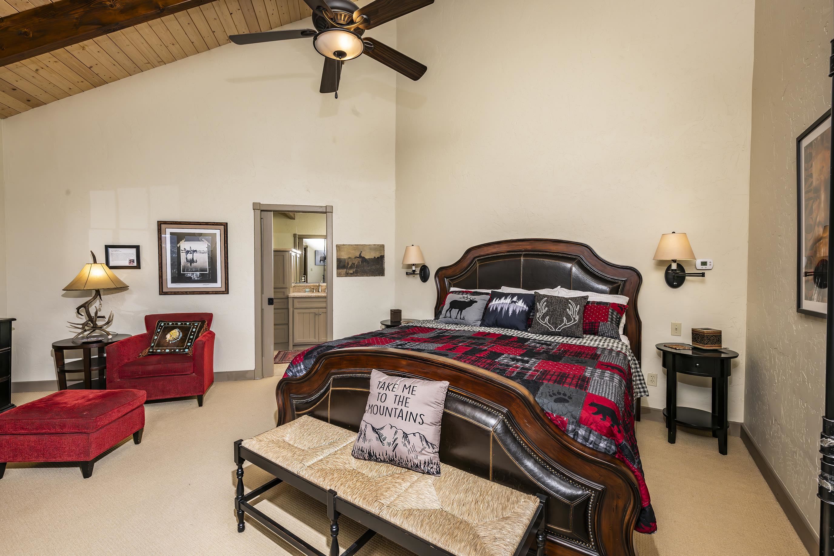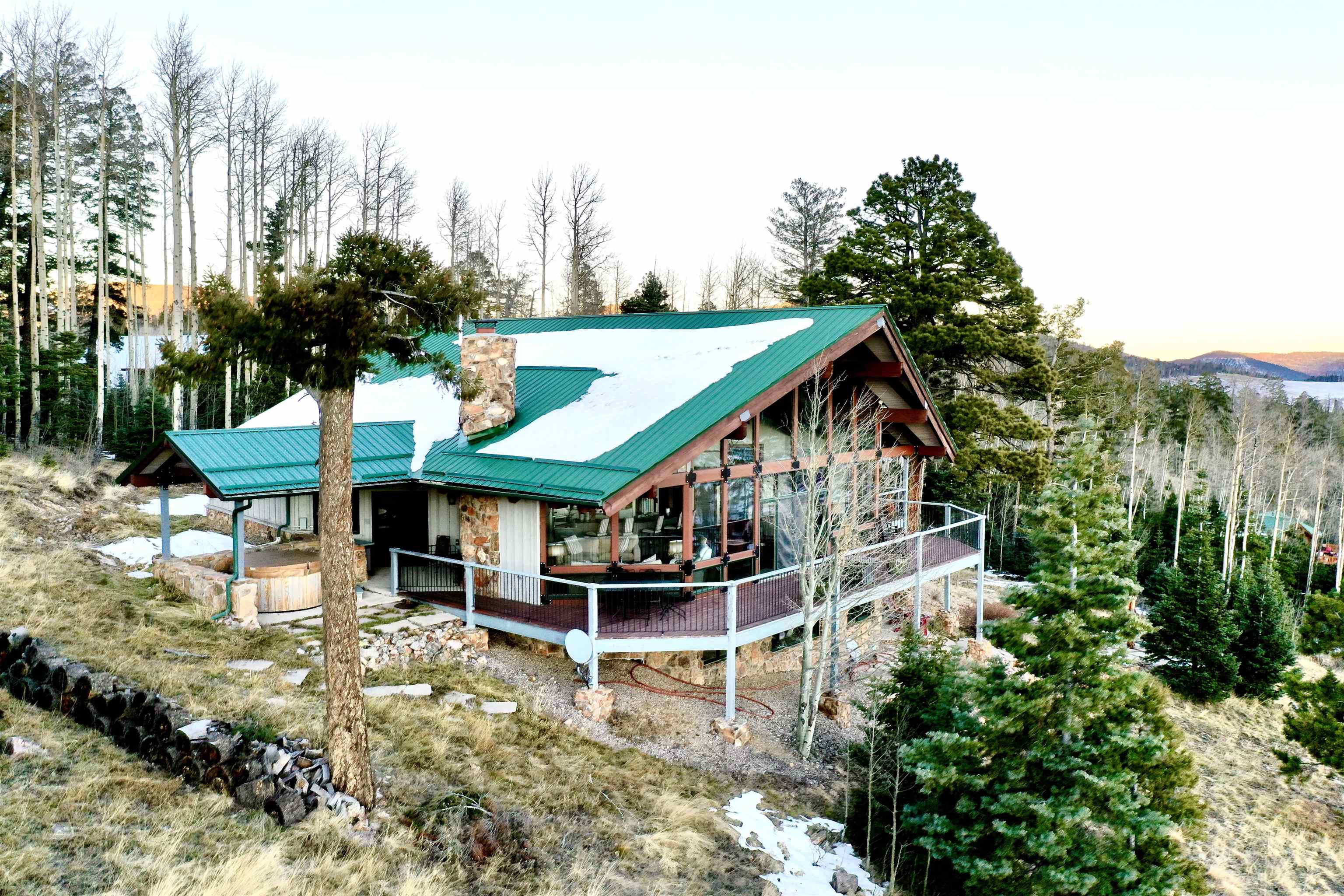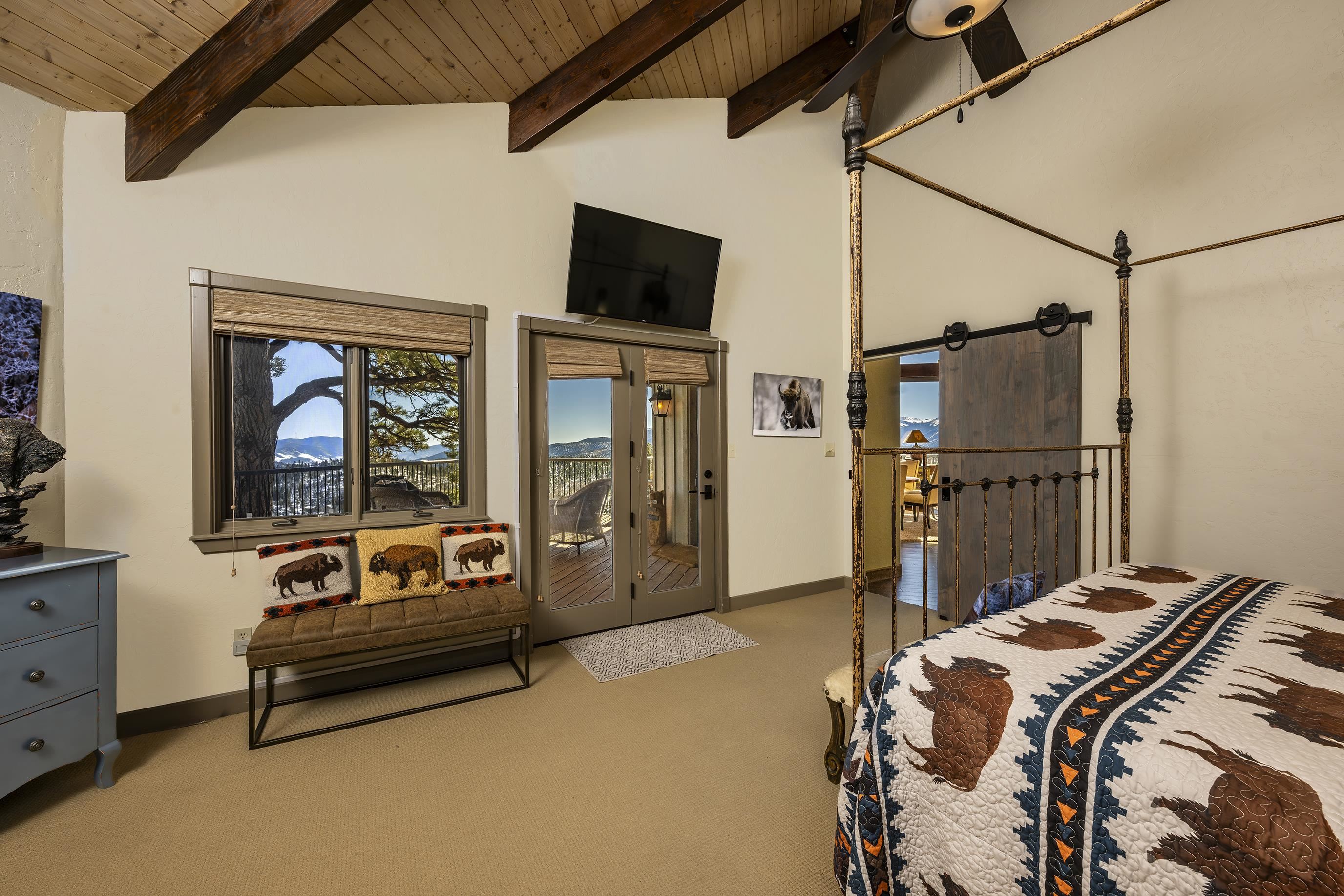 Set on nearly 5 acres of pristine mountain land, this exceptional luxury home offers breathtaking panoramic views of Wheeler Peak and Baldy Mountain. Just 5 minutes from Red River, this expansive residence seamlessly blends superior craftsmanship with the natural beauty of its surroundings, presenting a rare opportunity for the ultimate mountain lifestyle. The open-concept great room features soaring ceilings, a striking wet bar, and large windows that showcase the stunning views. The gourmet kitchen, with its sleek quartz countertops, flows effortlessly into the living area. Radiant floor heating ensures year-round comfort, while southern exposure allows for passive solar gain, flooding the home with natural light. The home offers two luxurious primary suites, each with oversized ensuite bathrooms and walk-in closets. One suite opens to a private hot tub, providing a peaceful retreat with sweeping mountain views. Additionally, a bunk room and a spacious loft offer plenty of room for family and guests. Outside, enjoy a private fire pit and expansive outdoor living areas—ideal for entertaining or unwinding under the stars. A studio guest house with an attached 4-car garage adds privacy for visitors or extended family. Fully furnished and ready to enjoy, this extraordinary mountain retreat combines privacy, luxury, and natural beauty—a perfect sanctuary for those seeking the finest in mountain living.