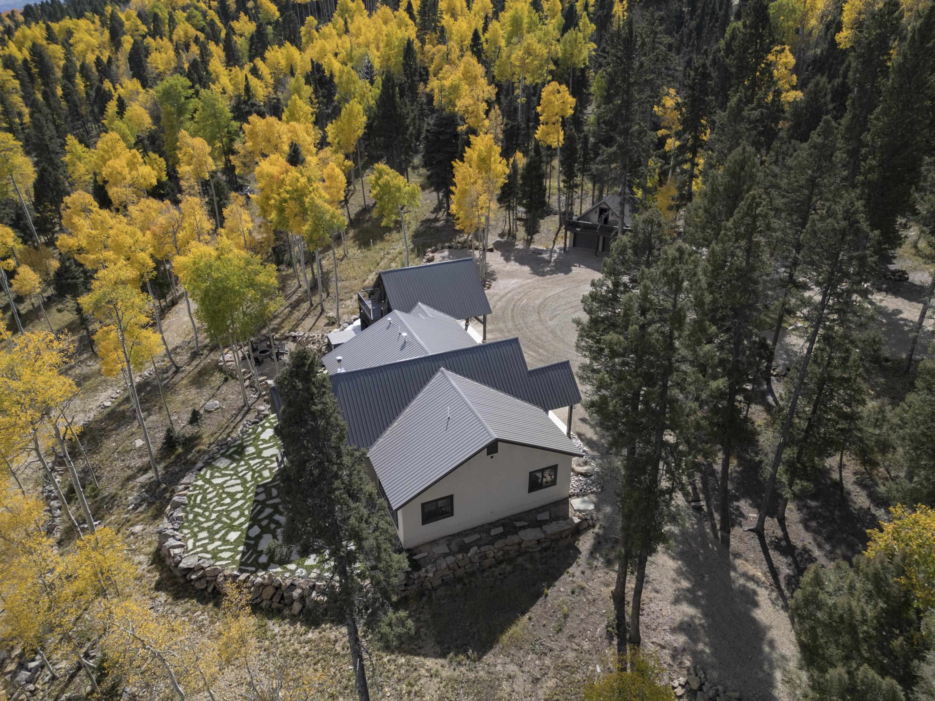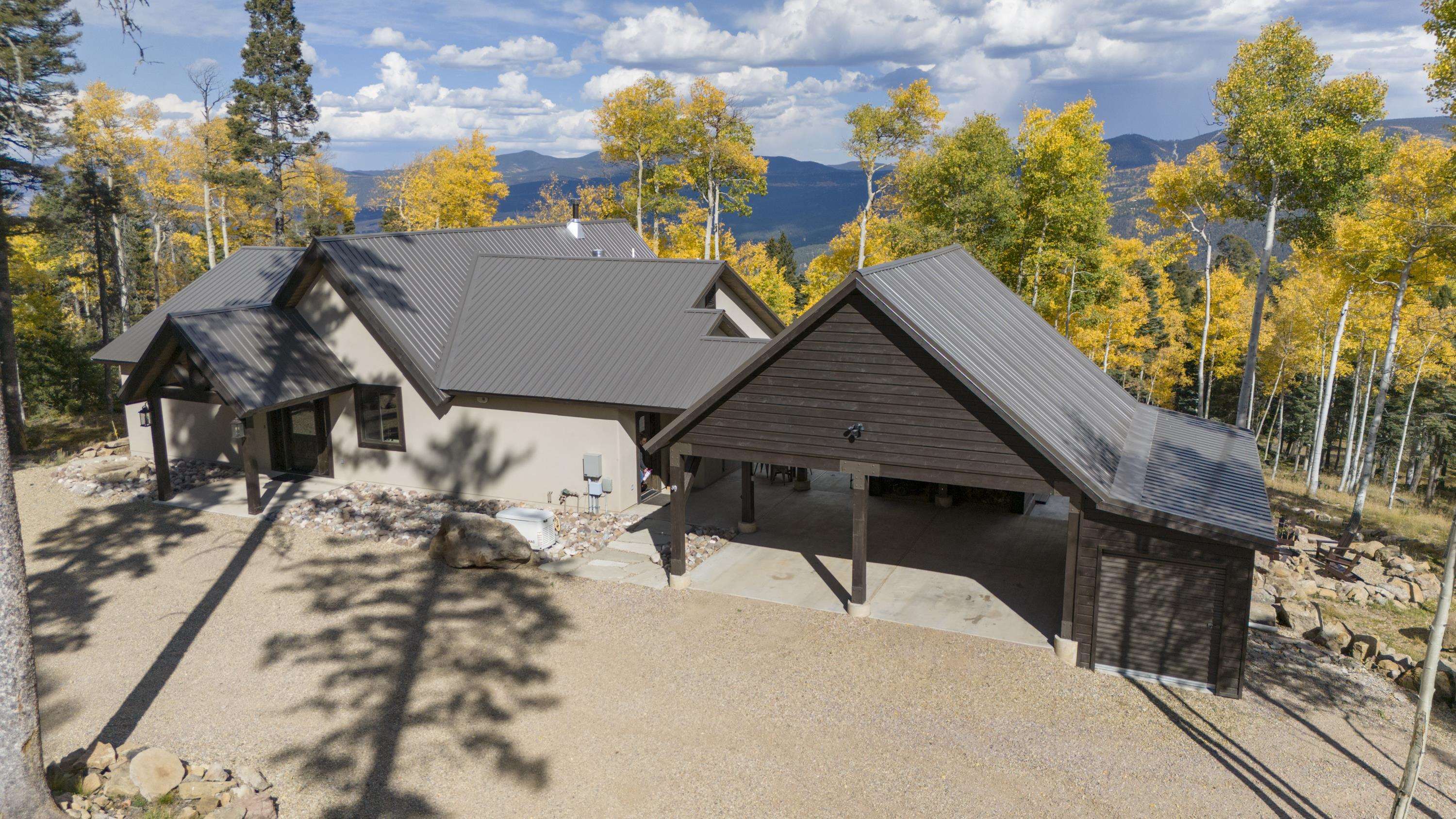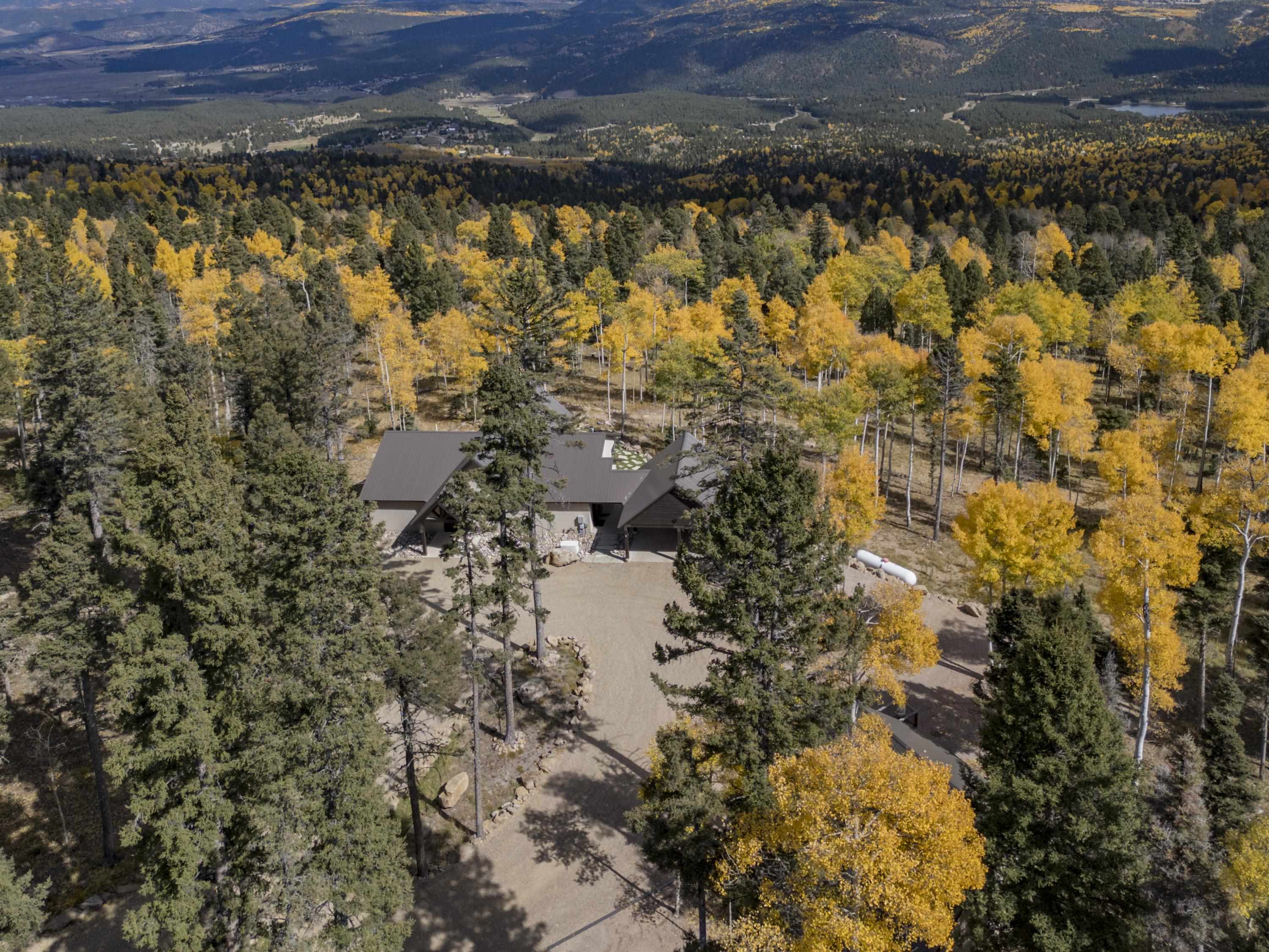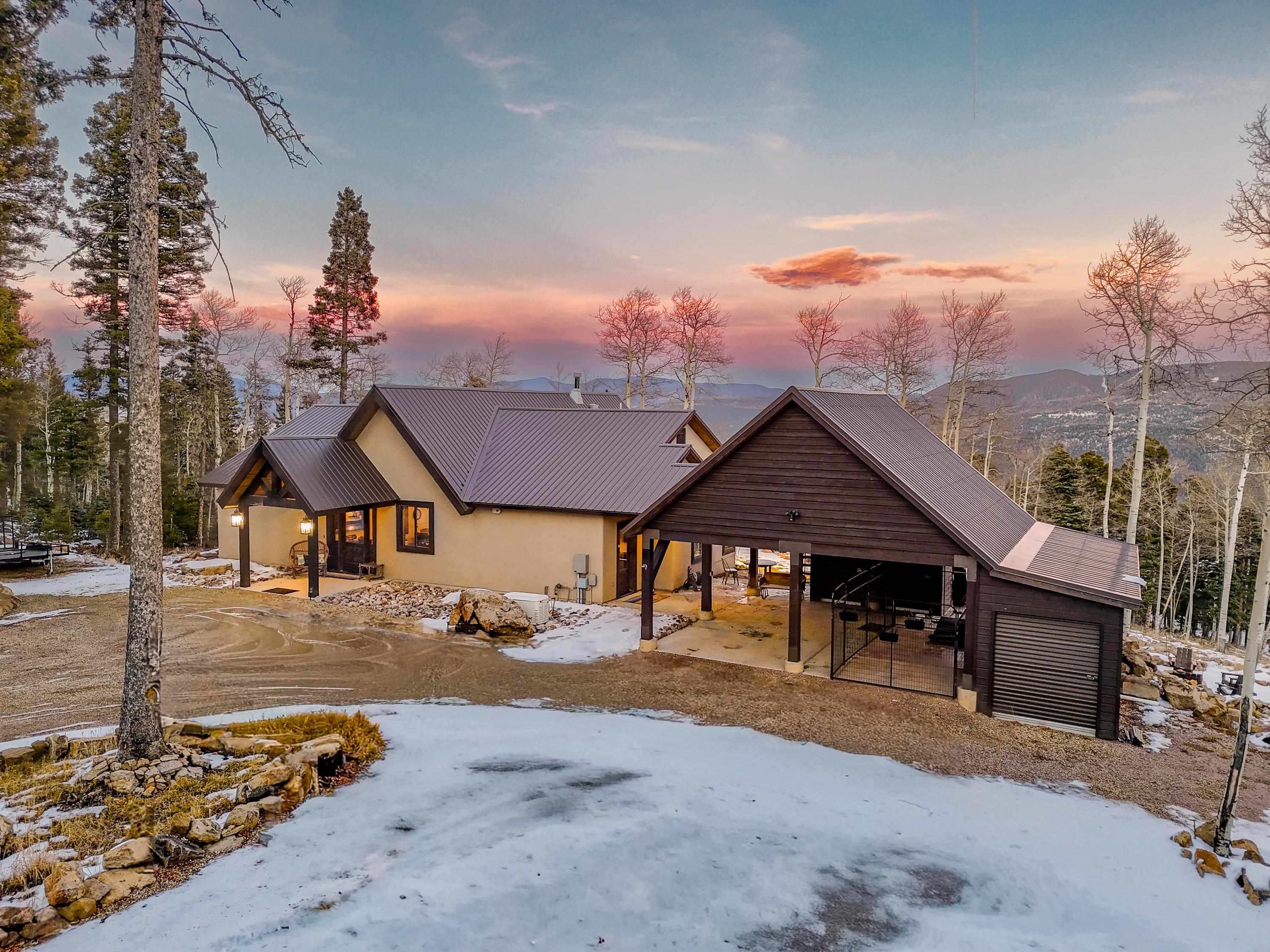 Welcome to 165 Via De Maria, where the world quiets down, and the mountains take over. This fully furnished property is the kind of place you escape to, not from, five+ acres of pines and aspens wrapping around you like the world’s most beautiful “Do Not Disturb” sign. From the moment you wind up the private drive, you feel it, the calm, the space, the fresh high-country air that somehow makes your shoulders drop three inches. Life gets simpler here, softer, slower. And yes, comfier. This is mountain living without the roughing-it part. Step inside the main home, and the views immediately steal the show. Sunlight pours through the vaulted great room, reaching across warm textures and a layout built for lingering. Mornings feel different here, coffee tastes better when you’re watching the aspens flicker, just saying. Evenings? They practically beg for a slow-cooked meal, a glass of wine, and stories that wander long into the night. In winter, radiant-floor warmth keeps every corner cozy, even when the snow falls in that magical Angel Fire way. In summer, the mountains invite you out to hike, bike, and wander into the Carson National Forest (it’s literally down the street, so yes, bring the 4x4). And when the day winds down, the hot tub becomes your nightly ritual under a sky full of stars. What makes this property truly special is how it welcomes everyone. The kids have their own hideaway above the carport, a media room that feels like a treehouse. Guests get their own studio retreat above the garage, complete with a private deck for morning coffee and “I may never leave” vibes. Everyone has space, everyone has independence, and no one is sleeping on a pullout. The circular drive makes year-round access effortless, and the whole-house generator means you’re ready for whatever mountain weather decides to do. You’re tucked away, but never out of reach, the perfect balance of wild and comfortable. This is more than a getaway. It’s a reset, a refuge, a place where time stretches and you finally remember what breathing deeply feels like. If you’ve been waiting for a home that lets you unplug from the world and plug into nature (with all the comforts that make it easy), this is where your Angel Fire story begins. Let’s go walk the property together. You’ll see exactly what I mean.