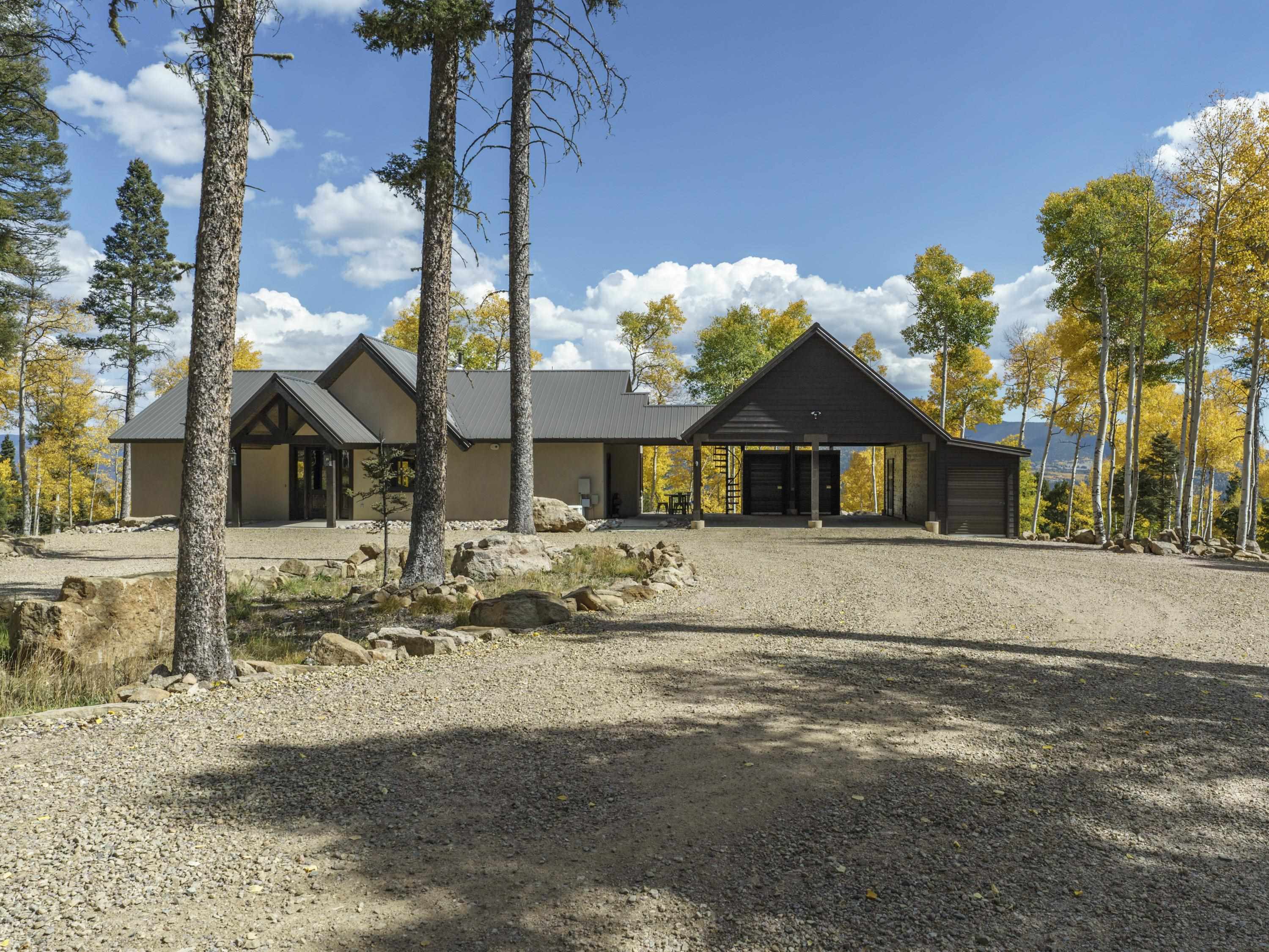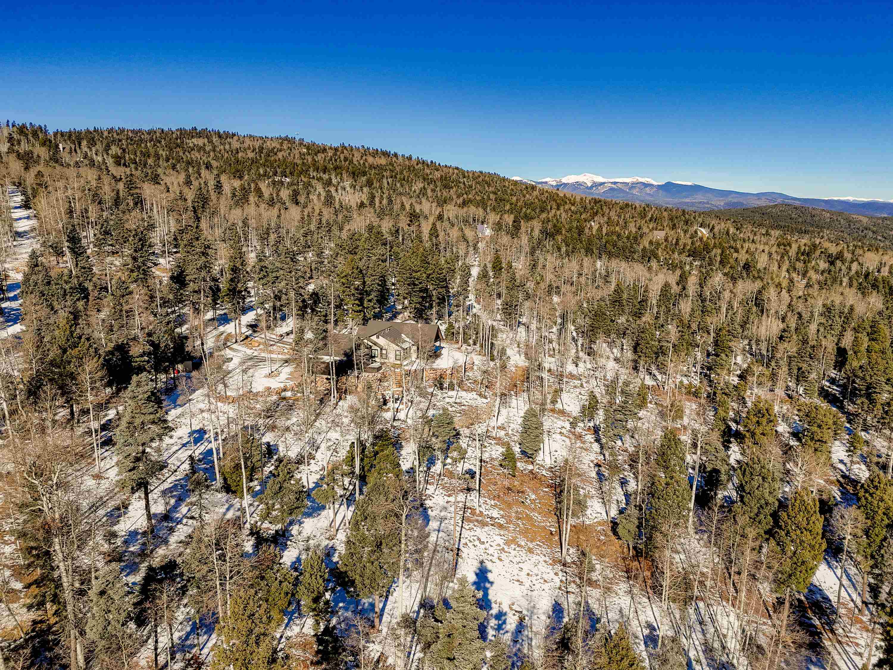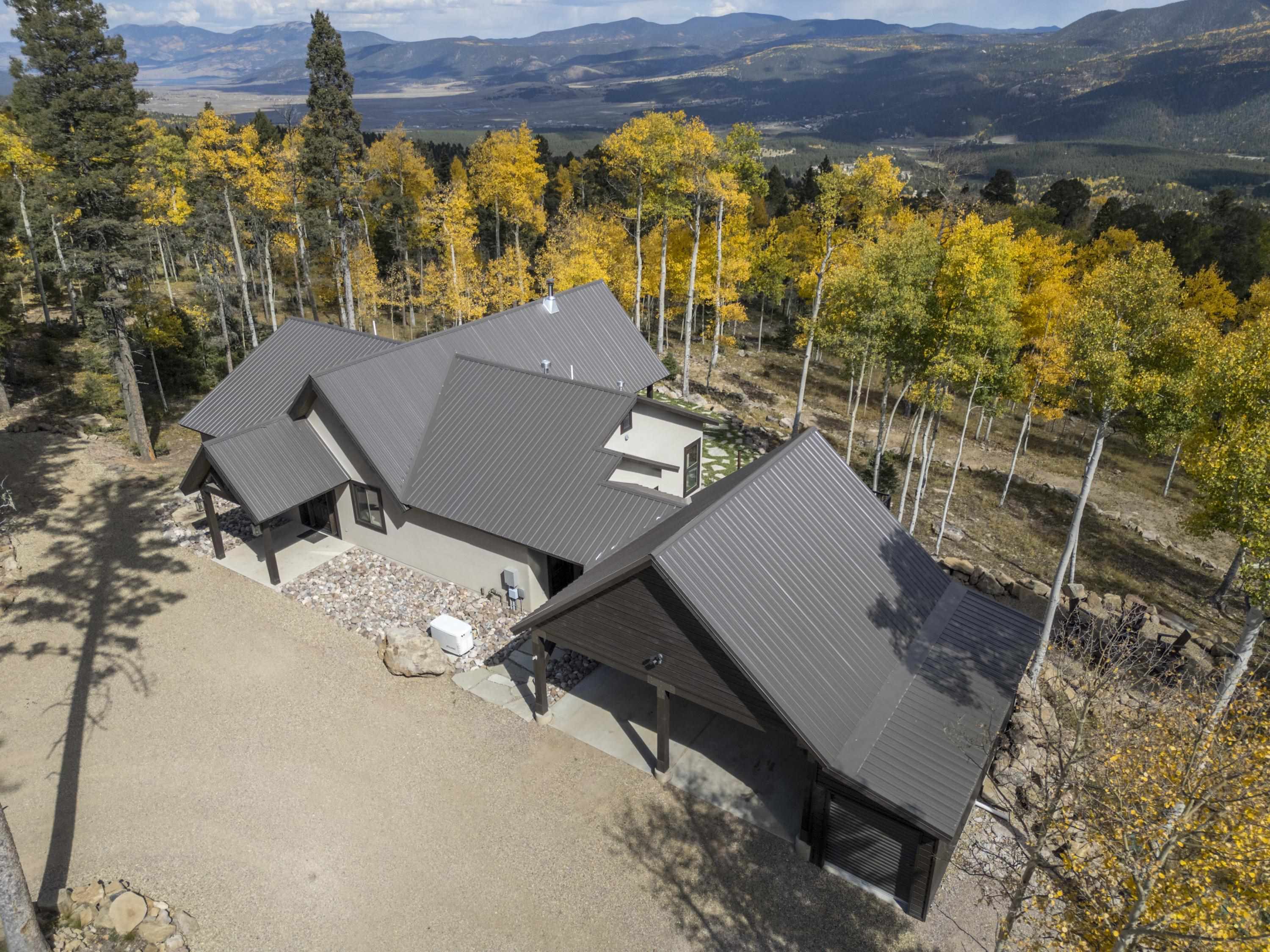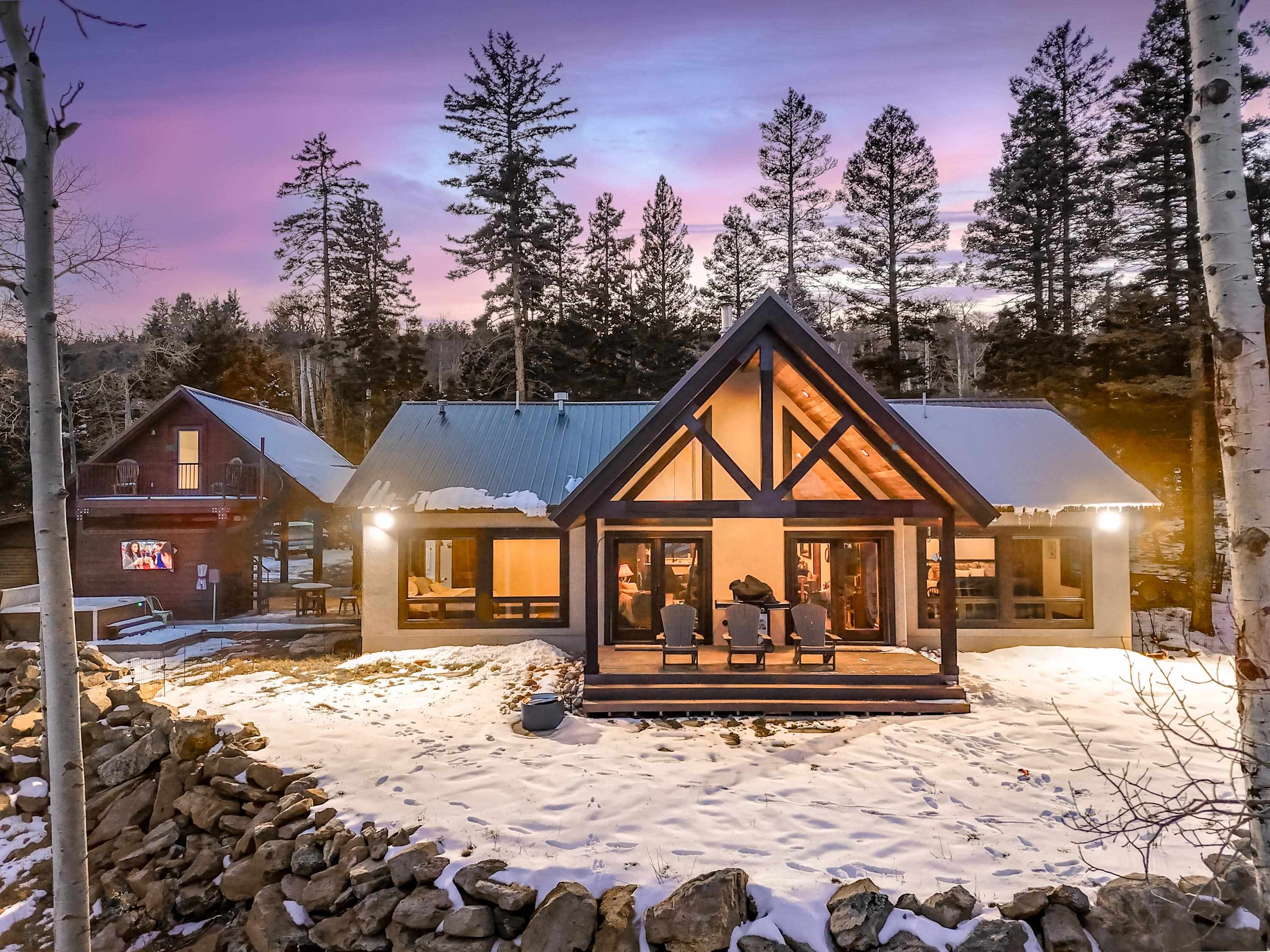 Welcome to 165 Via De Maria, where the world quiets down, and the mountains take over. This fully furnished property is the kind of place you escape to, not from, five+ acres of pines and aspens wrapping around you like the world’s most beautiful “Do Not Disturb” sign. From the moment you wind up the private drive, you feel it, the calm, the space, the fresh high-country air that somehow makes your shoulders drop three inches. Life gets simpler here, softer, slower. And yes, comfier. This is mountain living without the roughing-it part. Step inside the main home, and the views immediately steal the show. Sunlight pours through the vaulted great room, reaching across warm textures and a layout built for lingering. Mornings feel different here, coffee tastes better when you’re watching the aspens flicker, just saying. Evenings? They practically beg for a slow-cooked meal, a glass of wine, and stories that wander long into the night. In winter, radiant-floor warmth keeps every corner cozy, even when the snow falls in that magical Angel Fire way. In summer, the mountains invite you out to hike, bike, and wander into the Carson National Forest (it’s literally down the street, so yes, bring the 4x4). And when the day winds down, the hot tub becomes your nightly ritual under a sky full of stars. What makes this property truly special is how it welcomes everyone. The kids have their own hideaway above the carport, a media room that feels like a treehouse. Guests get their own studio retreat above the garage, complete with a private deck for morning coffee and “I may never leave” vibes. Everyone has space, everyone has independence, and no one is sleeping on a pullout. The circular drive makes year-round access effortless, and the whole-house generator means you’re ready for whatever mountain weather decides to do. You’re tucked away, but never out of reach, the perfect balance of wild and comfortable. This is more than a getaway. It’s a reset, a refuge, a place where time stretches and you finally remember what breathing deeply feels like. If you’ve been waiting for a home that lets you unplug from the world and plug into nature (with all the comforts that make it easy), this is where your Angel Fire story begins. Let’s go walk the property together. You’ll see exactly what I mean.
