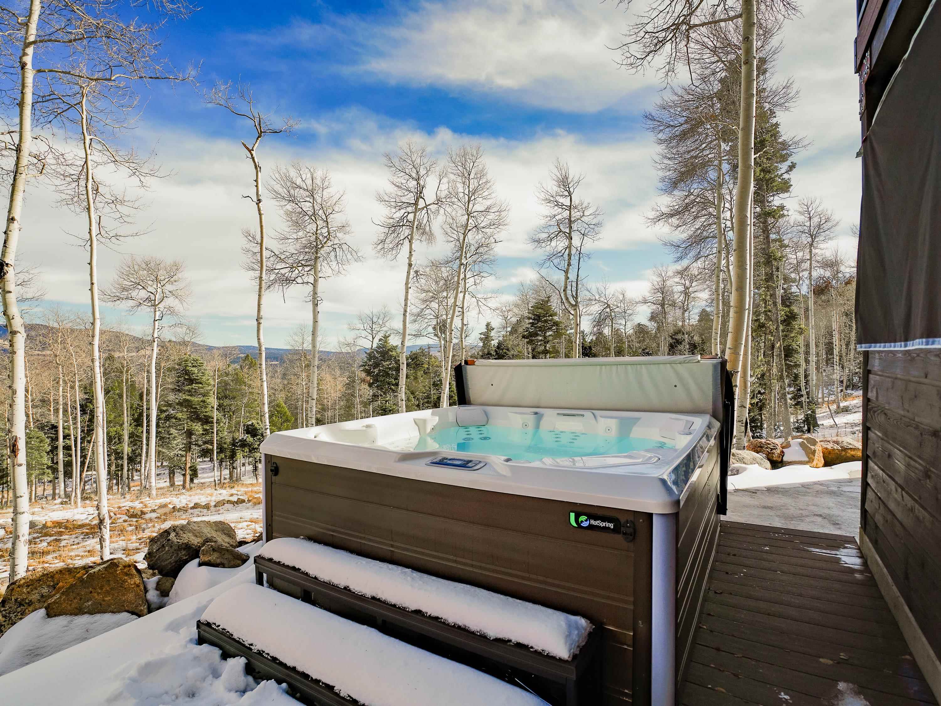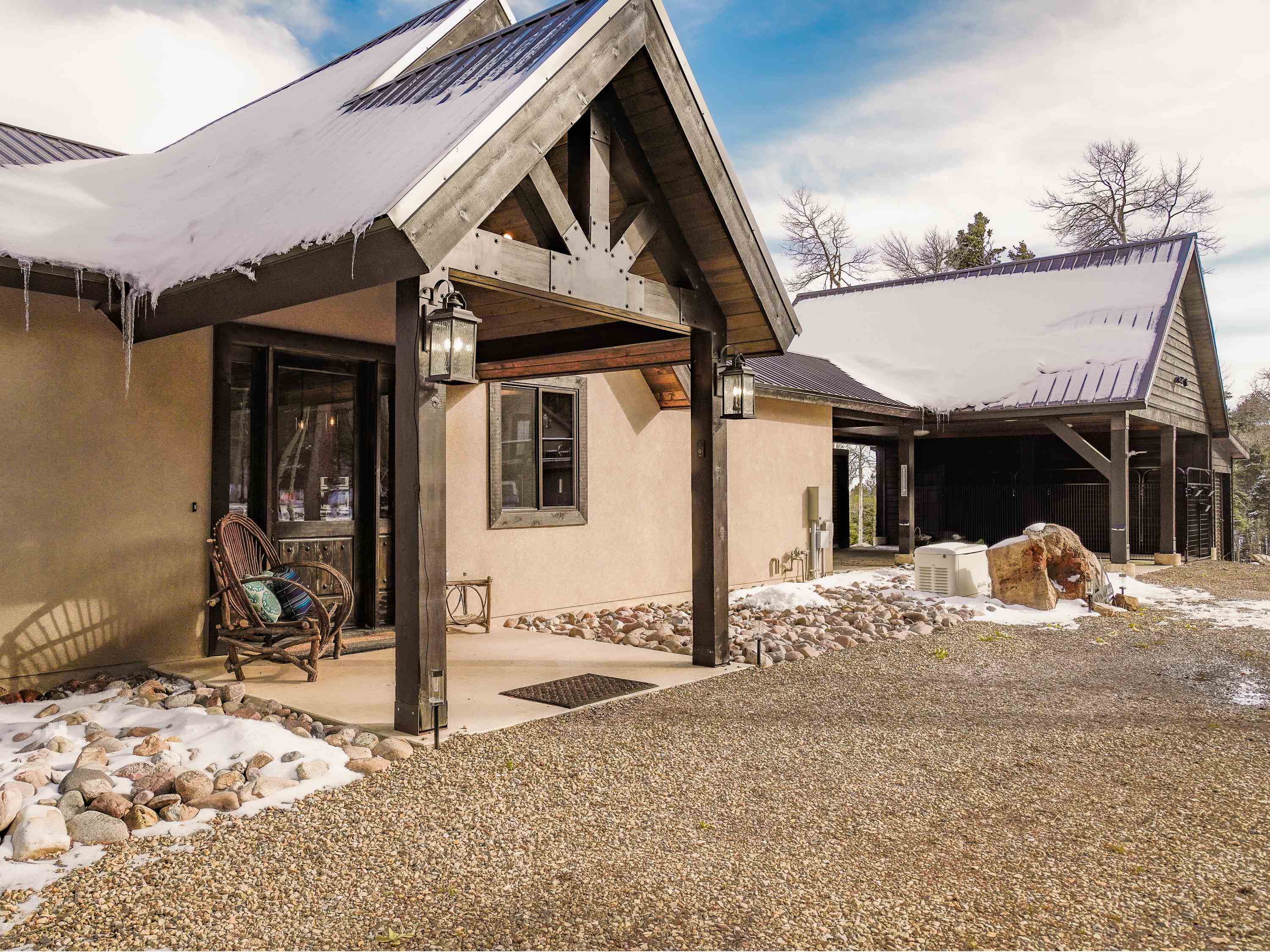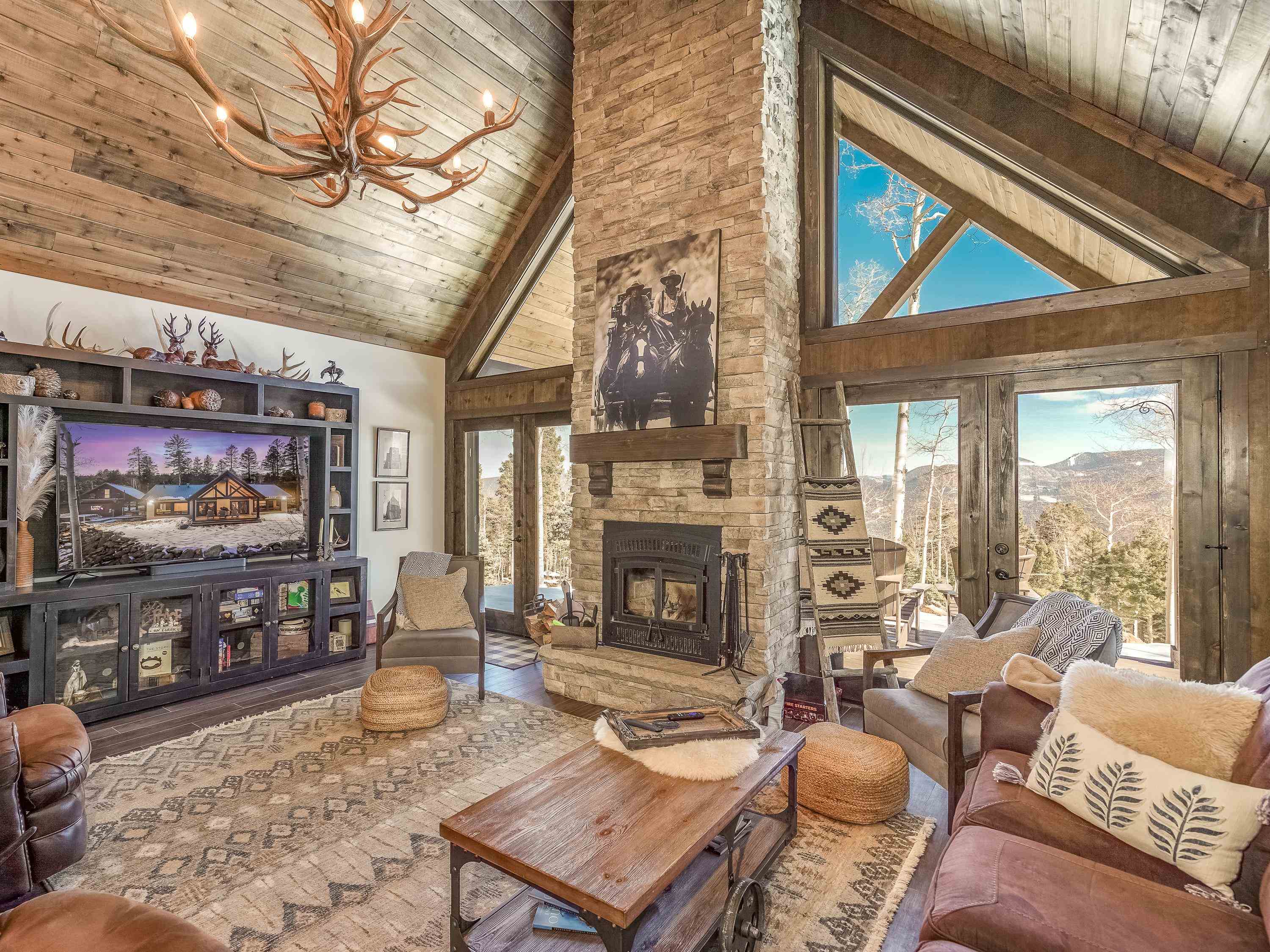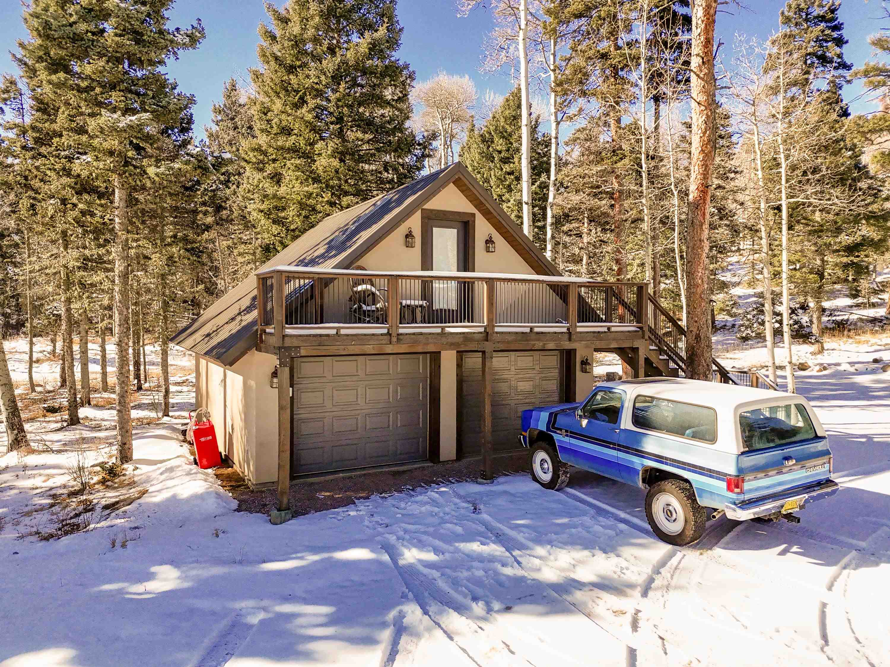 Welcome to 165 Via De Maria, where the world quiets down, and the mountains take over. This fully furnished property is the kind of place you escape to, not from, five+ acres of pines and aspens wrapping around you like the world’s most beautiful “Do Not Disturb” sign. From the moment you wind up the private drive, you feel it, the calm, the space, the fresh high-country air that somehow makes your shoulders drop three inches. Life gets simpler here, softer, slower. And yes, comfier. This is mountain living without the roughing-it part. Step inside the main home, and the views immediately steal the show. Sunlight pours through the vaulted great room, reaching across warm textures and a layout built for lingering. Mornings feel different here, coffee tastes better when you’re watching the aspens flicker, just saying. Evenings? They practically beg for a slow-cooked meal, a glass of wine, and stories that wander long into the night. In winter, radiant-floor warmth keeps every corner cozy, even when the snow falls in that magical Angel Fire way. In summer, the mountains invite you out to hike, bike, and wander into the Carson National Forest (it’s literally down the street, so yes, bring the 4x4). And when the day winds down, the hot tub becomes your nightly ritual under a sky full of stars. What makes this property truly special is how it welcomes everyone. The kids have their own hideaway above the carport, a media room that feels like a treehouse. Guests get their own studio retreat above the garage, complete with a private deck for morning coffee and “I may never leave” vibes. Everyone has space, everyone has independence, and no one is sleeping on a pullout. The circular drive makes year-round access effortless, and the whole-house generator means you’re ready for whatever mountain weather decides to do. You’re tucked away, but never out of reach, the perfect balance of wild and comfortable. This is more than a getaway. It’s a reset, a refuge, a place where time stretches and you finally remember what breathing deeply feels like. If you’ve been waiting for a home that lets you unplug from the world and plug into nature (with all the comforts that make it easy), this is where your Angel Fire story begins. Let’s go walk the property together. You’ll see exactly what I mean.