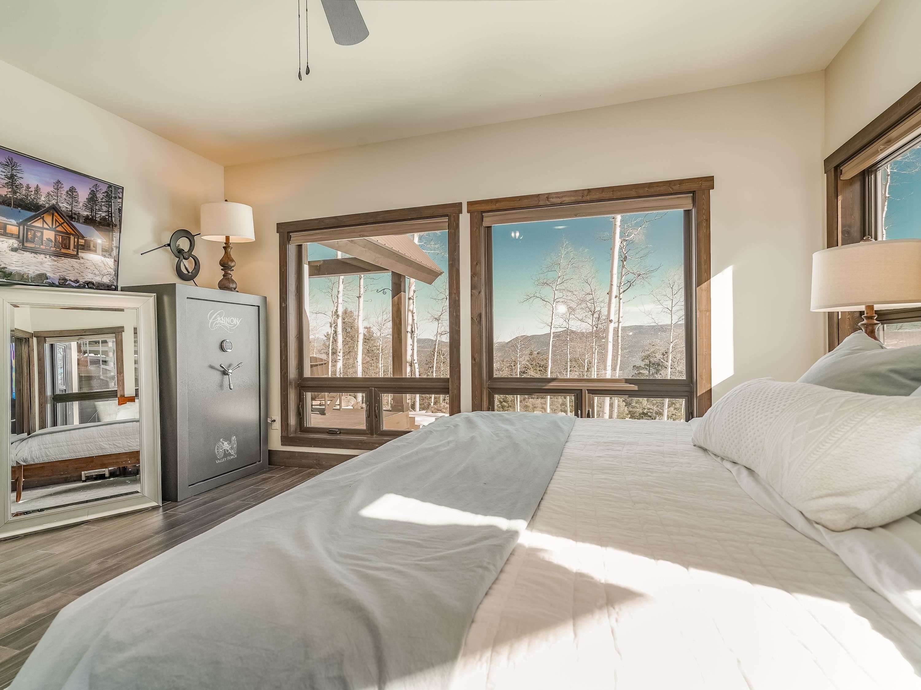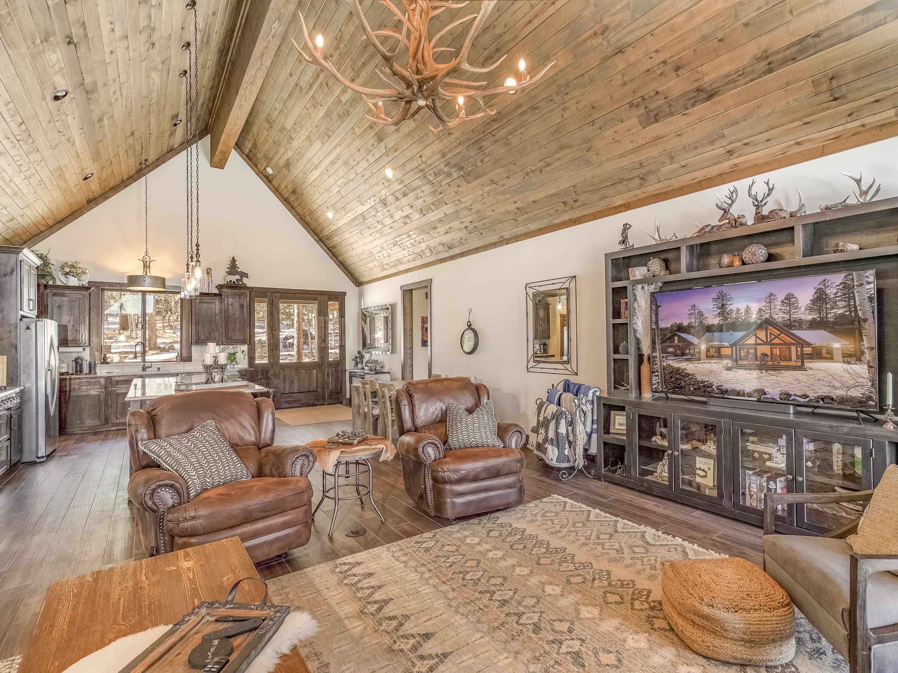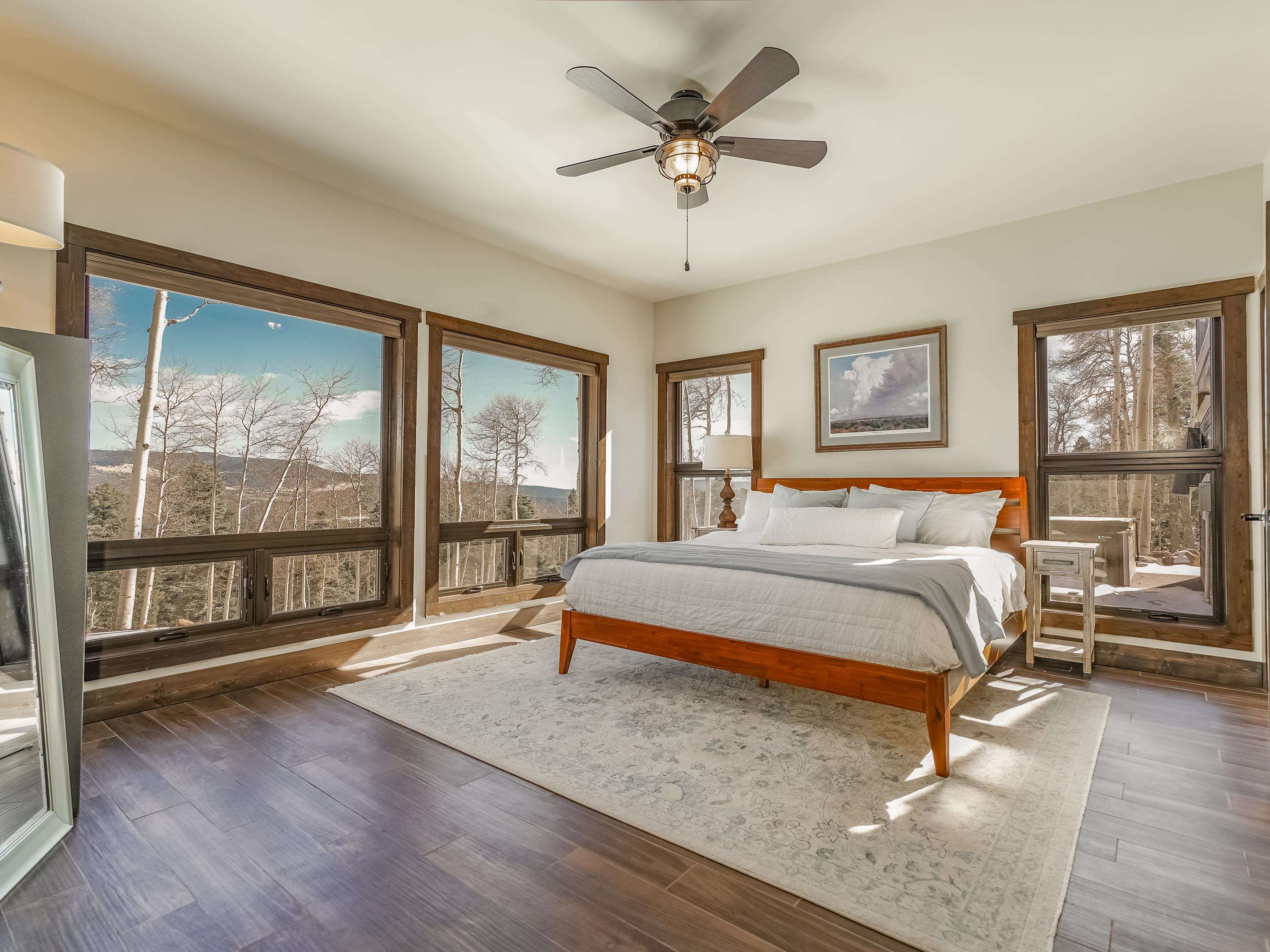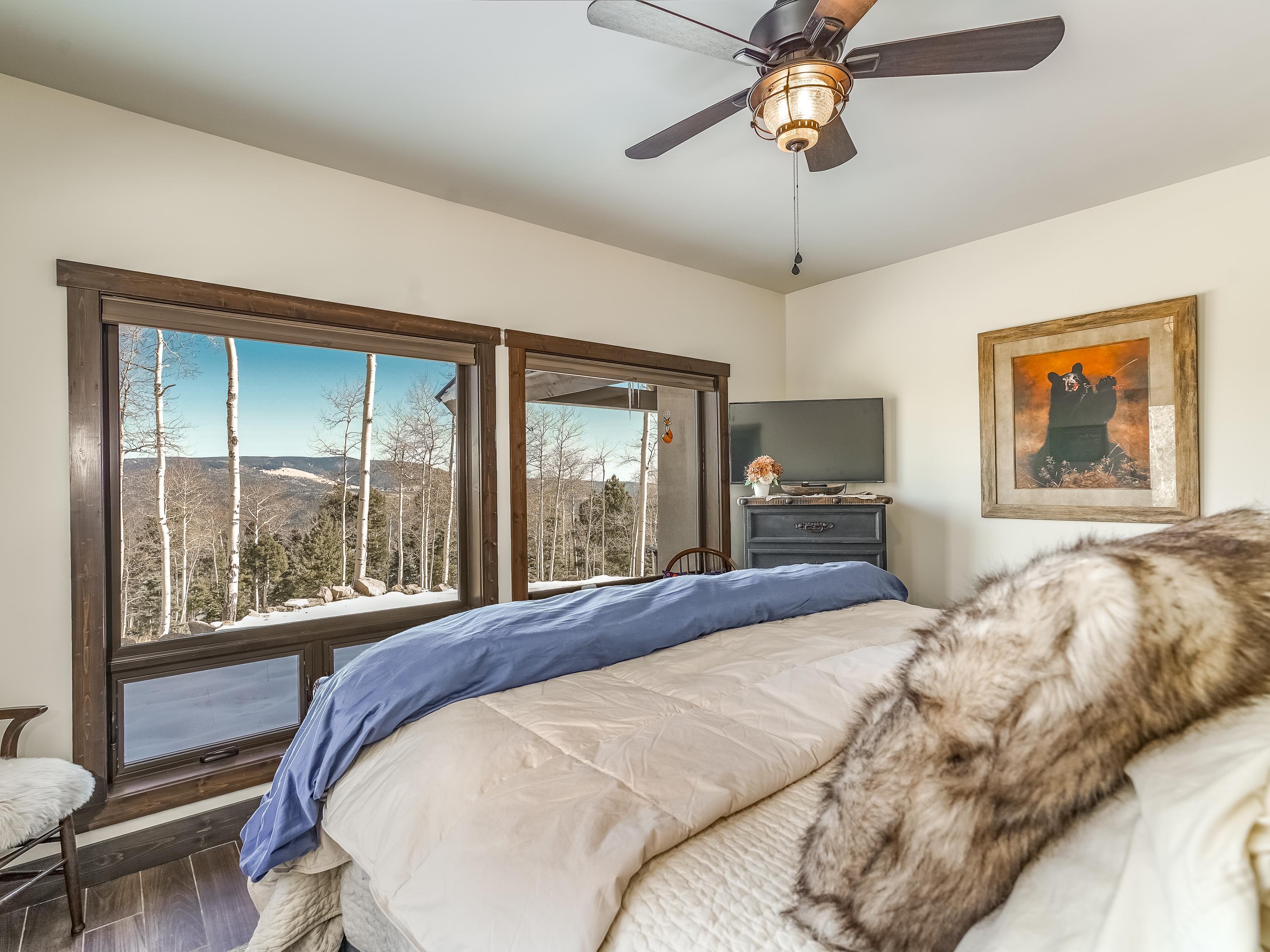 Welcome to 165 Via De Maria, where the world quiets down, and the mountains take over. This fully furnished property is the kind of place you escape to, not from, five+ acres of pines and aspens wrapping around you like the world’s most beautiful “Do Not Disturb” sign. From the moment you wind up the private drive, you feel it, the calm, the space, the fresh high-country air that somehow makes your shoulders drop three inches. Life gets simpler here, softer, slower. And yes, comfier. This is mountain living without the roughing-it part. Step inside the main home, and the views immediately steal the show. Sunlight pours through the vaulted great room, reaching across warm textures and a layout built for lingering. Mornings feel different here, coffee tastes better when you’re watching the aspens flicker, just saying. Evenings? They practically beg for a slow-cooked meal, a glass of wine, and stories that wander long into the night. In winter, radiant-floor warmth keeps every corner cozy, even when the snow falls in that magical Angel Fire way. In summer, the mountains invite you out to hike, bike, and wander into the Carson National Forest (it’s literally down the street, so yes, bring the 4x4). And when the day winds down, the hot tub becomes your nightly ritual under a sky full of stars. What makes this property truly special is how it welcomes everyone. The kids have their own hideaway above the carport, a media room that feels like a treehouse. Guests get their own studio retreat above the garage, complete with a private deck for morning coffee and “I may never leave” vibes. Everyone has space, everyone has independence, and no one is sleeping on a pullout. The circular drive makes year-round access effortless, and the whole-house generator means you’re ready for whatever mountain weather decides to do. You’re tucked away, but never out of reach, the perfect balance of wild and comfortable. This is more than a getaway. It’s a reset, a refuge, a place where time stretches and you finally remember what breathing deeply feels like. If you’ve been waiting for a home that lets you unplug from the world and plug into nature (with all the comforts that make it easy), this is where your Angel Fire story begins. Let’s go walk the property together. You’ll see exactly what I mean.