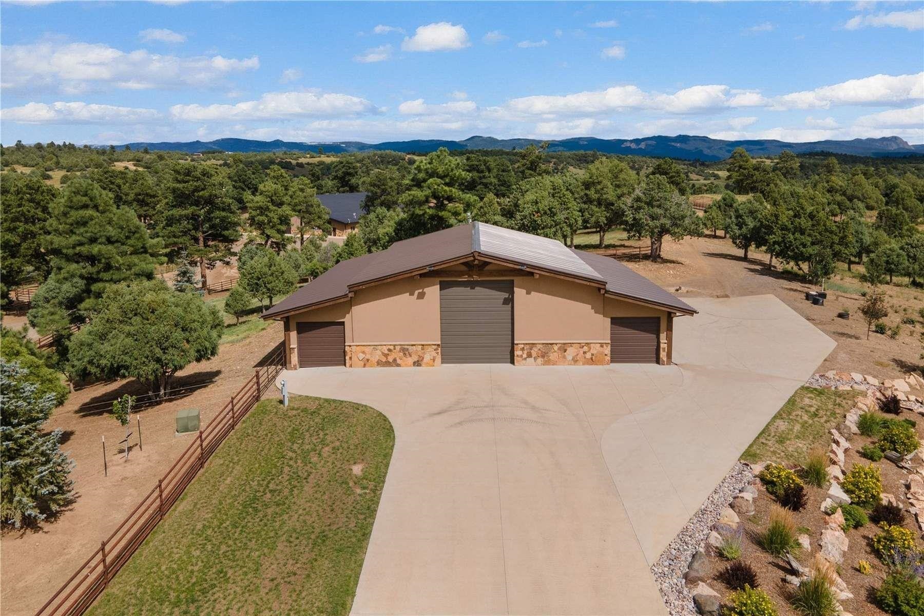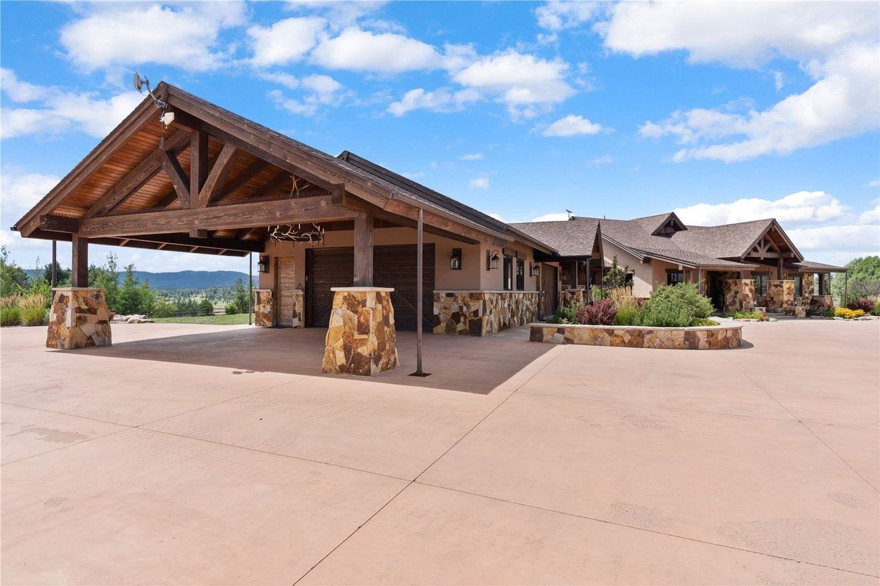 Price Reduction!Welcome to Palomino Pines Ranch Estate luxury equestrian paradise set in the serene Southern Rockies. Encompassing 400 acres of enclosed, private land at over 8,000 feet, this custom-built estate offers breathtaking 360-degree views and a perfect blend of elegance and craftsmanship.The 3,400-square-foot living space plus garages is a masterpiece, featuring riverbed stone accents, antlered lighting, high wood beams, and chestnut floors. The gourmet kitchen is equipped with custom cabinets, granite countertops, and stainless steel appliances. Spacious living areas include a wine cooler, abundant storage, and outdoor walkways and gazebos that enhance the home's charm. A large, oversized, fully finished heated garage is perfect for your vehicles and side-by-sides. For the passionate/professional equestrian, this estate is an unparalleled dream. Bring your Quarter horses, Palominos, Thoroughbreds, Arabians, Morgans, and even bison to this state-of-the-art facility. The property features a 13k-square-foot heated domed indoor arena with 9 stalls and caretakers' quarters, ensuring the utmost protection for your animals and safety for riders. Additionally, the estate boasts an Olympic-style outdoor training arena, 7 outdoor stables, a 150’ x 350' riding area, and multiple steel-fenced pastures. With 5 RV spots equipped with full hookups, ponds, and water tanks, the estate is as functional as it is beautiful. This property isn't just for horses—it's also a haven for all your pets. A ½ acre pet hotel, complete with fencing, a large dog house, and a spacious run, ensures every family member, whether two-legged or four-legged, has a luxurious place to call home. Built as a "forever home," no expense was spared in crafting this one-of-a-kind sanctuary. The Estate represents a rare and extraordinary opportunity. It’s the life you’ve always dreamed of. Additional living space of 1000 sq ft in a separate garage. Bonus! 330 acres added! Now 400 acres!