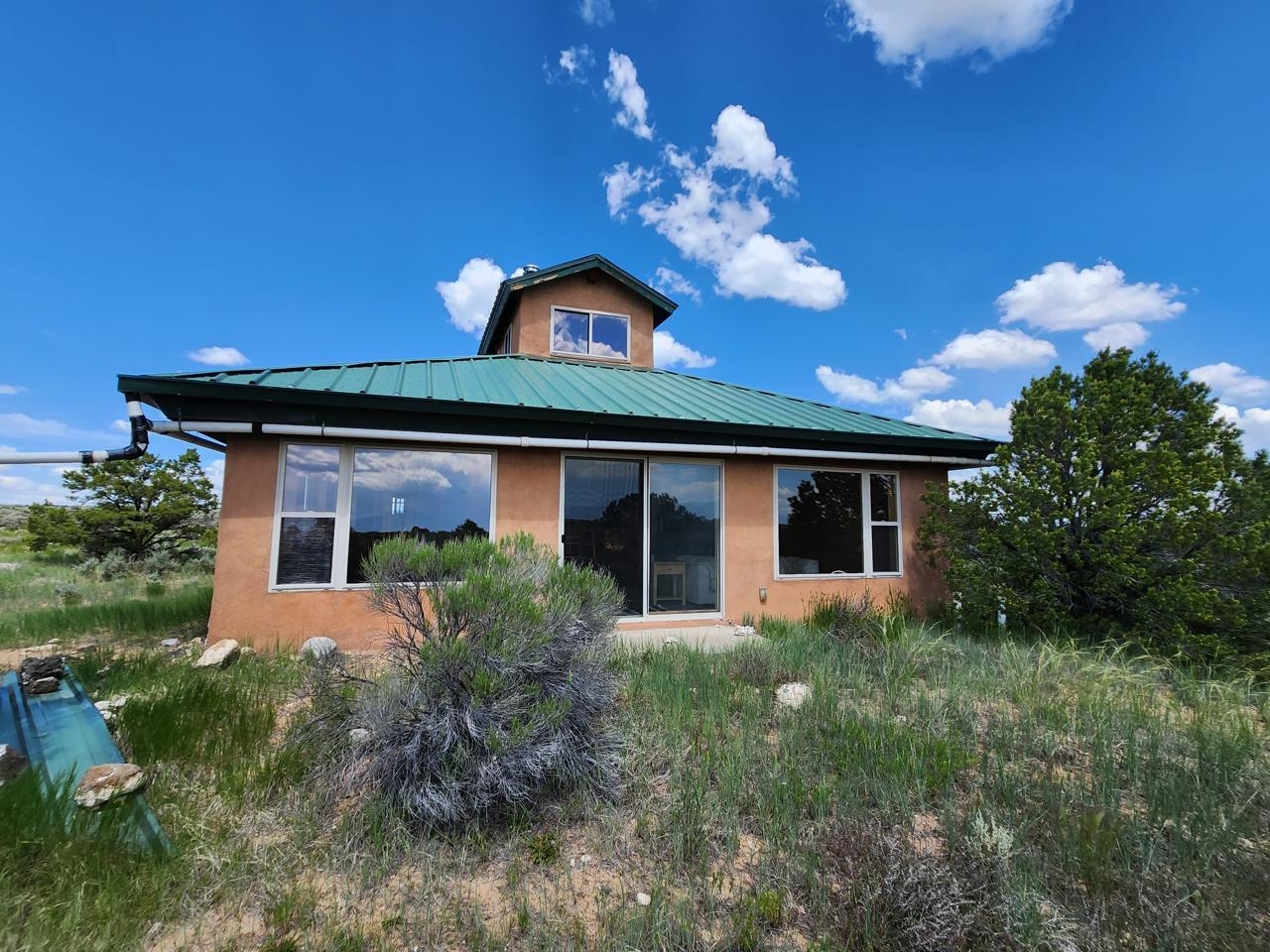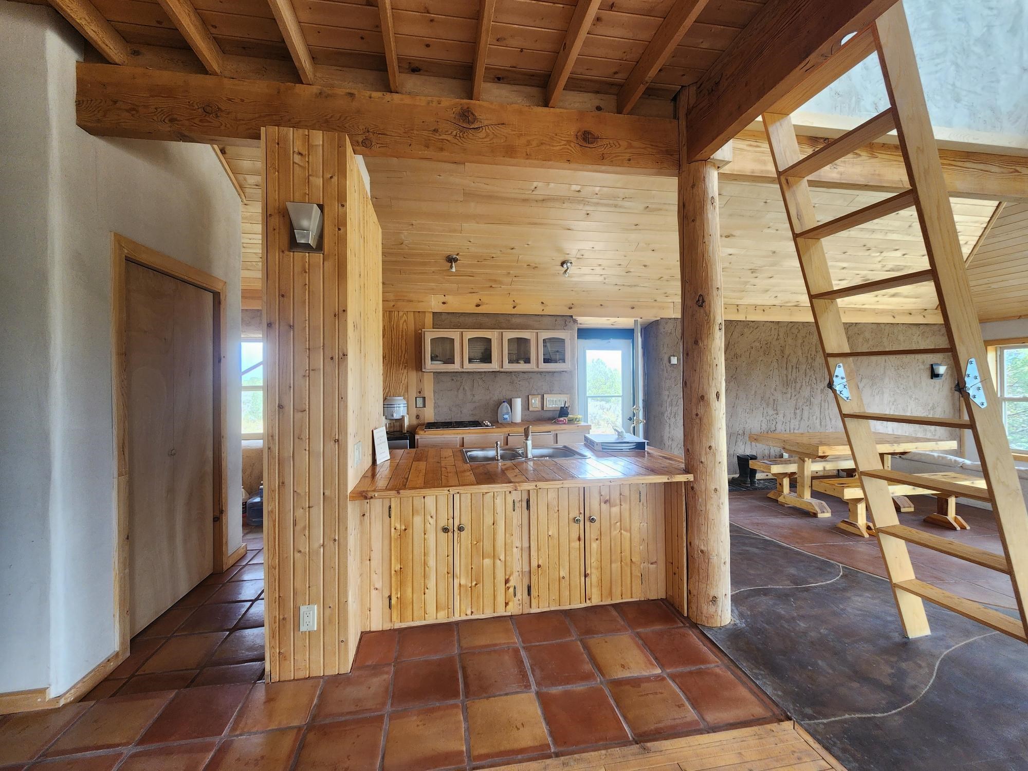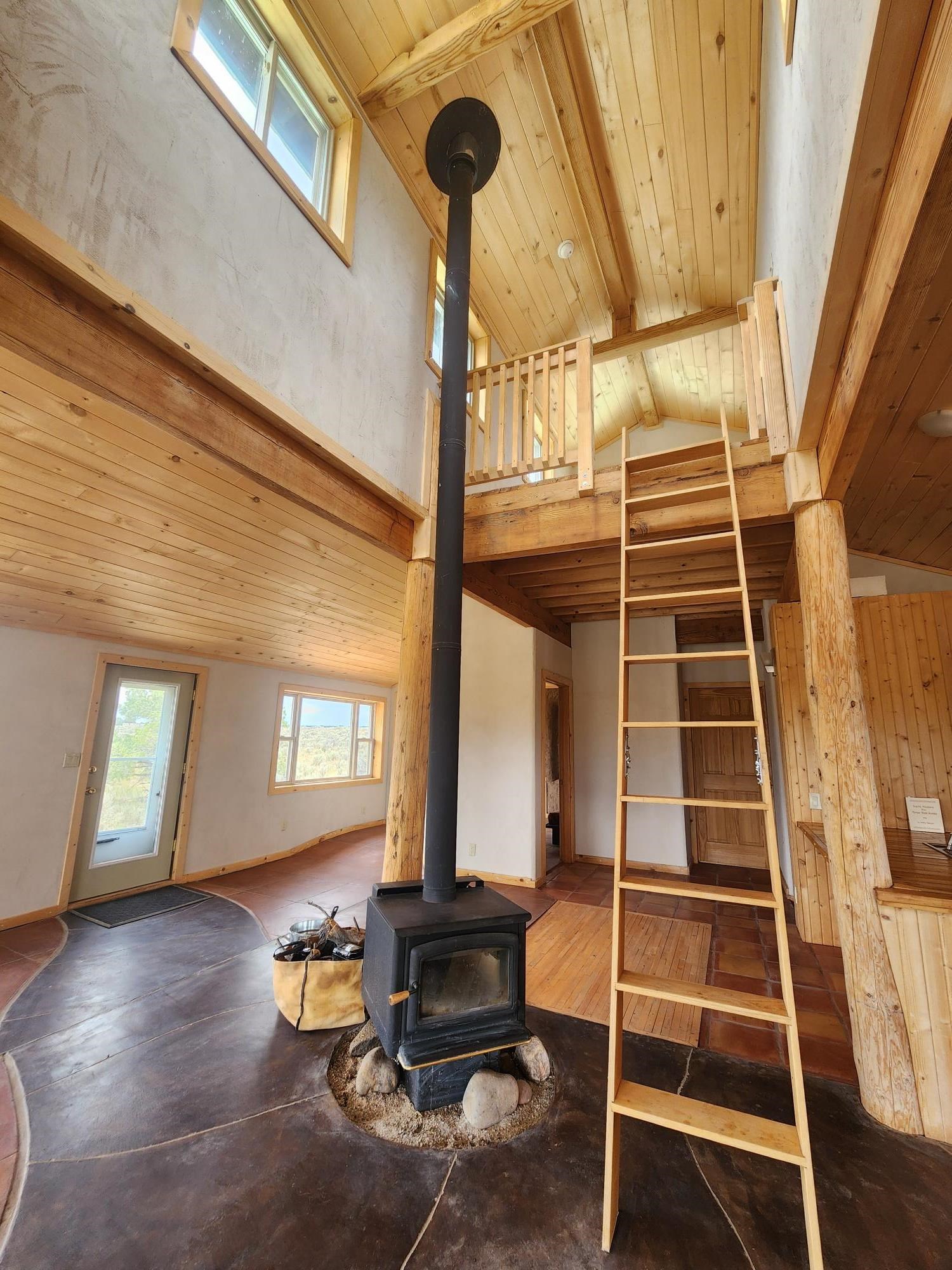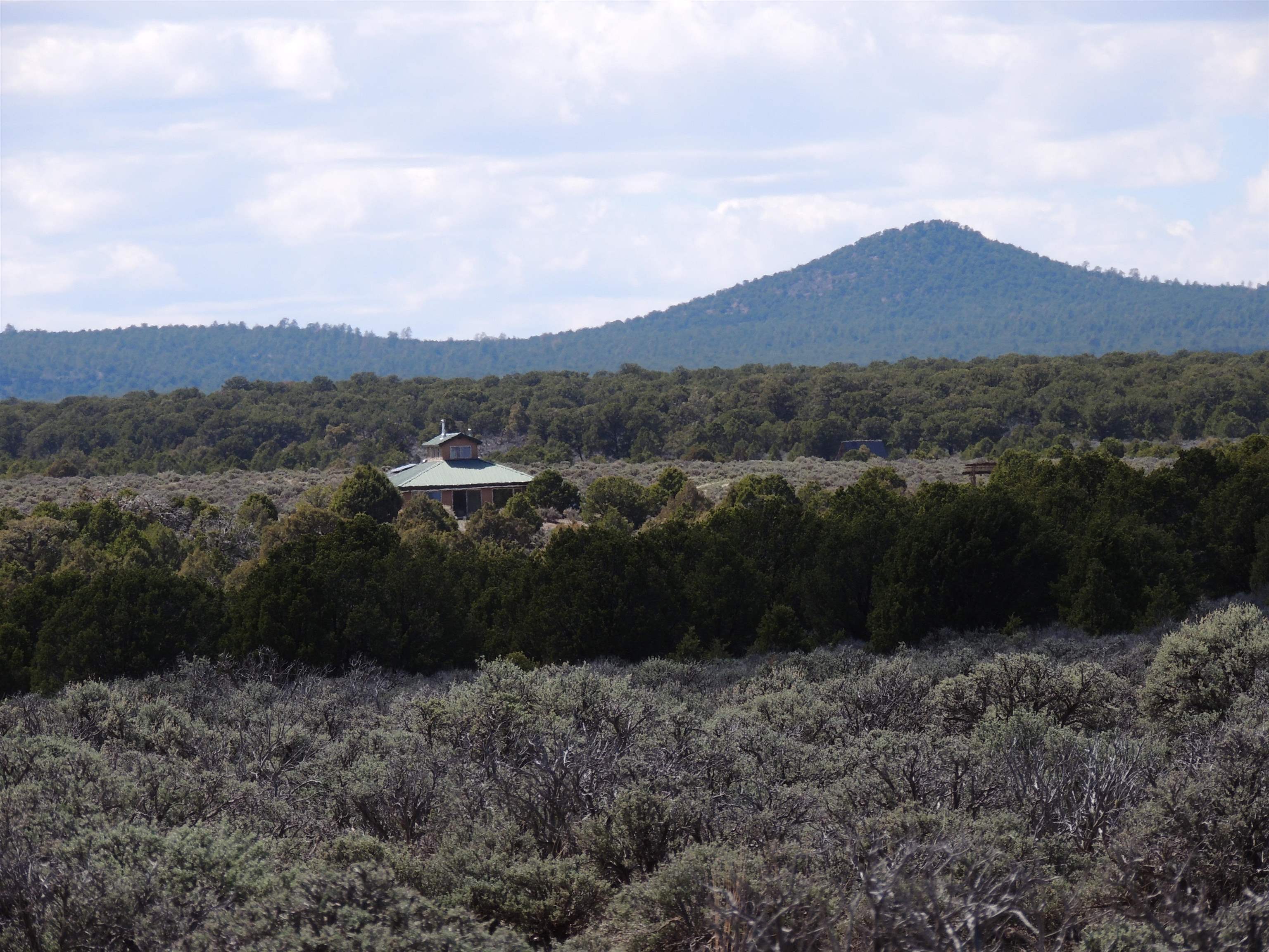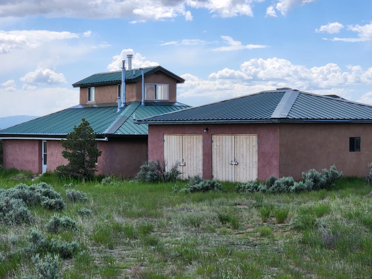 This efficient custom designed solar home will offer room to roam along with inspiring sunrises, sunsets and starry night skies. Enjoy spacious, secluded, off-grid living near Taos, NM. Straw bale/frame/stucco constructed home is on 38.9 acres that borders Carson National Forest in a private gated community. Stunning pinon framed views of the Sangre de Cristo Range extend from Santa Fe to Colorado. The home is cozy and inviting, featuring an open floor plan for ease of movement and views. Stylish earth and artisanal natural plaster walls along with attention to wooden design create an earthy and grounded environment in this passive and active solar-powered home. Green utilities include a self-supplied water catchment/cistern system and an efficient solar energy system. Make this a permanent home, artist’s or writer’s retreat just enough off the beaten path, yet an easy scenic ride will take you to colorful Taos for entertainment, skiing and great food. Abundant hiking, biking, scenery and wildlife are at your front door awaiting your adventures. Rio Grande del Norte National Monument, Wheeler Peak Wilderness and Carson Nation Forest are only a partial list of nearby public lands to enjoy.