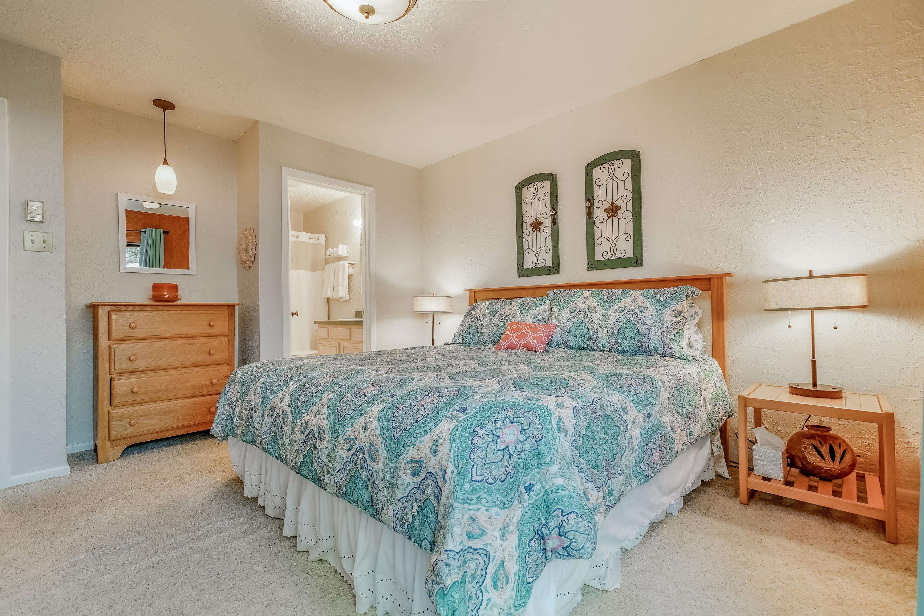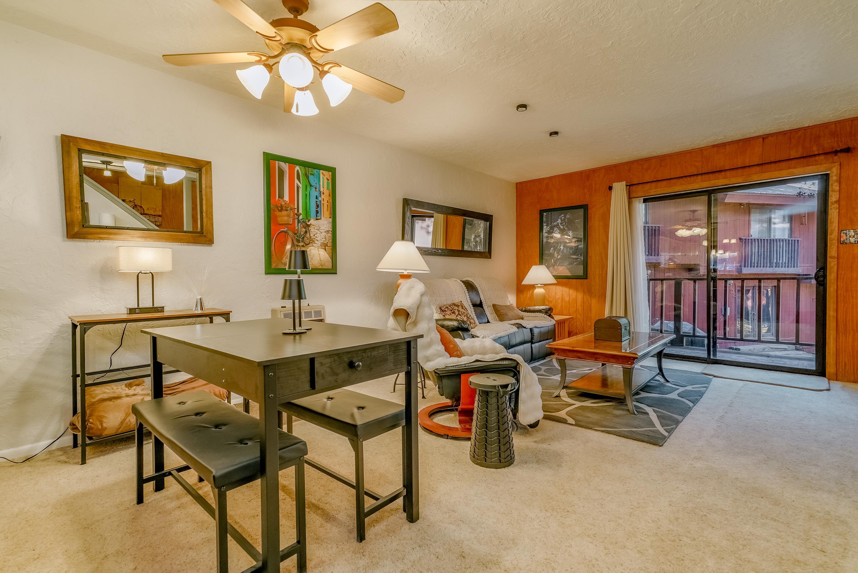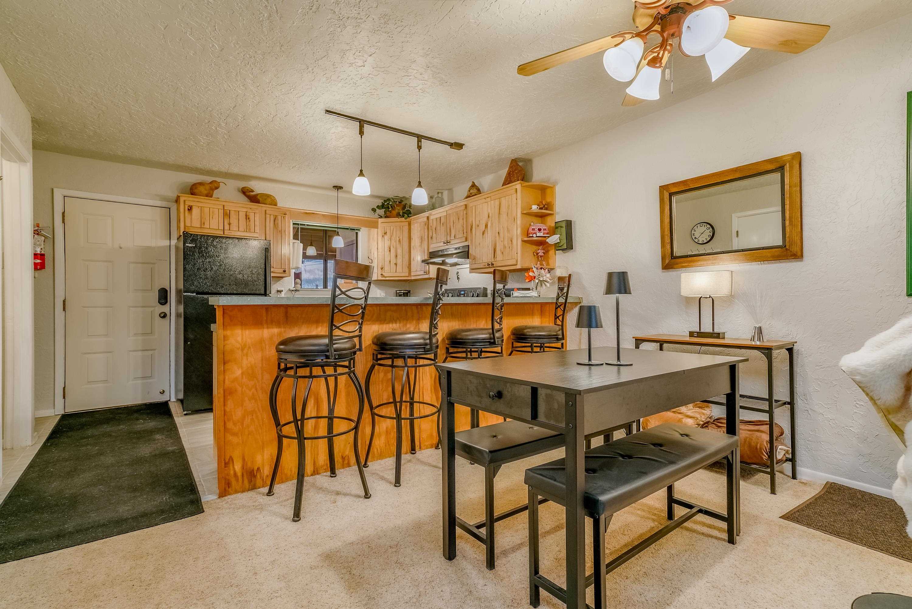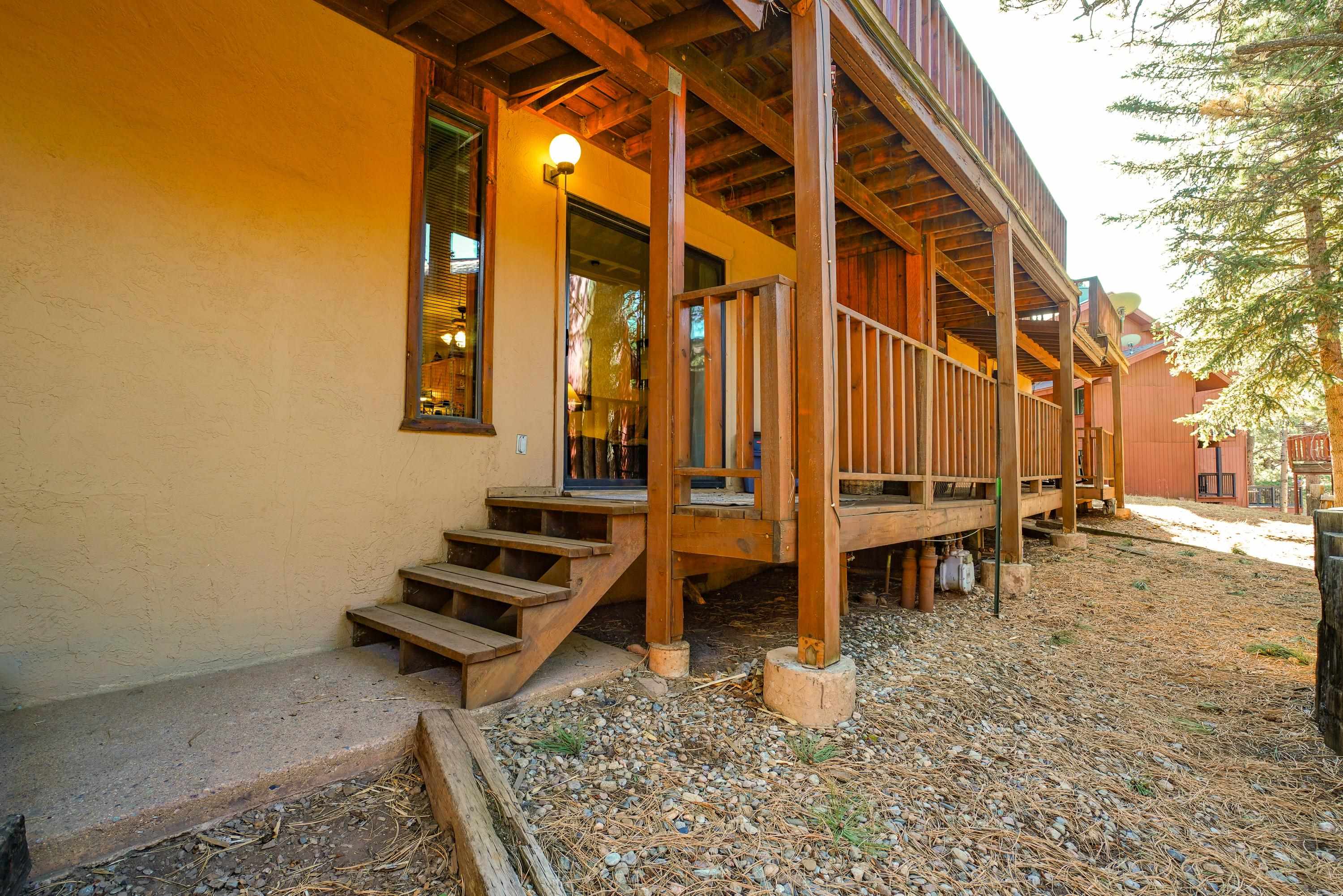 Located within Angel Fire Resort, this townhome-style condominium offers a rare ground-floor private entrance and is situated approximately 260 yards (about a 5-minute walk) from the ski lift, making it ideal for year-round mountain enjoyment. The main level features a full-size kitchen, dining area, living room with a wood-burning fireplace, vaulted ceilings, abundant natural light, and a convenient half bath. The upper level includes two en-suite bedrooms, each with a full bath, creating a functional and private layout. Outdoor living spaces include a balcony off the primary bedroom, along with front and rear covered porches, providing multiple options to enjoy the mountain setting. Additional features include in-unit laundry, ample parking, and a well-designed floor plan that separates living and sleeping areas. Angel Fire Resort offers affordable winter skiing, championship-rated golf, and world-class downhill mountain biking in the summer. With summer temperatures averaging 76 degrees, this property delivers an appealing combination of comfort, recreation, and mountain lifestyle in all seasons.