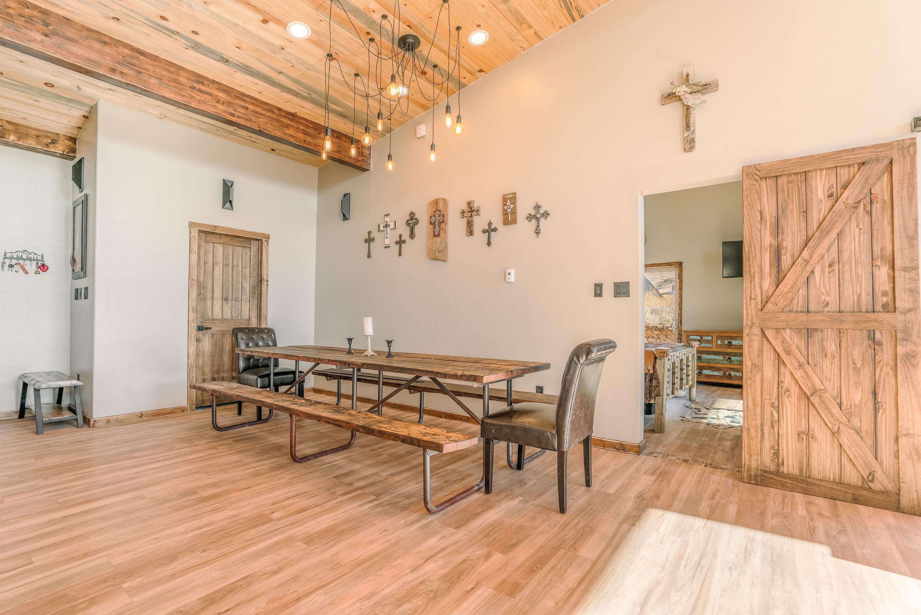 REDUCED PRICE!!! ACT QUICKLY!! Nestled on 20 pristine acres just 2 minutes from the charming Village of Eagle Nest, this custom 2024 mountain home combines modern comfort with a true off-grid lifestyle. Designed for easy, one-level living, the 4-bedroom, 2-bath retreat offers abundant natural light, passive solar heating, and stunning views of the surrounding mountains, Eagle Nest Lake, Angel Fire Ski runs and wild life. The property is fully self-sufficient with owned solar power, a private well, septic system, 1,000-gallon propane tank (owned, not leased), and a backup generator. Starlink internet provides reliable high-speed connectivity, while the home’s durable metal roof and low-maintenance siding ensure long-lasting performance and protection in every season. This home is fully approved for horses, allowing up to four total (zoned at two horses per 10 acres). It also features a convenient RV hookup and an installed sewer connection, giving you flexibility for guests, travel setups, or future expansion. The spacious carport sits right at the entrance, providing covered parking for two vehicles. Inside, you’ll find in-floor radiant heating, tasteful furnishings included, and a modern yet warm mountain ambiance. The on-site shed that houses the solar equipment and battery system also offers ample additional storage. The expansive acreage provides plenty of room to build a shop, barn, or other structures to suit your needs and vision. Perfect for recreation lovers, the home is nestled between Angel Fire Resort and Red River Ski & Summer Resort just 20 minutes away. Eagle Nest Lake and the Cimarron River—famous for award-winning fly fishing—are minutes away. Mild summers, breathtaking views, and endless outdoor adventure make this a year-round haven.