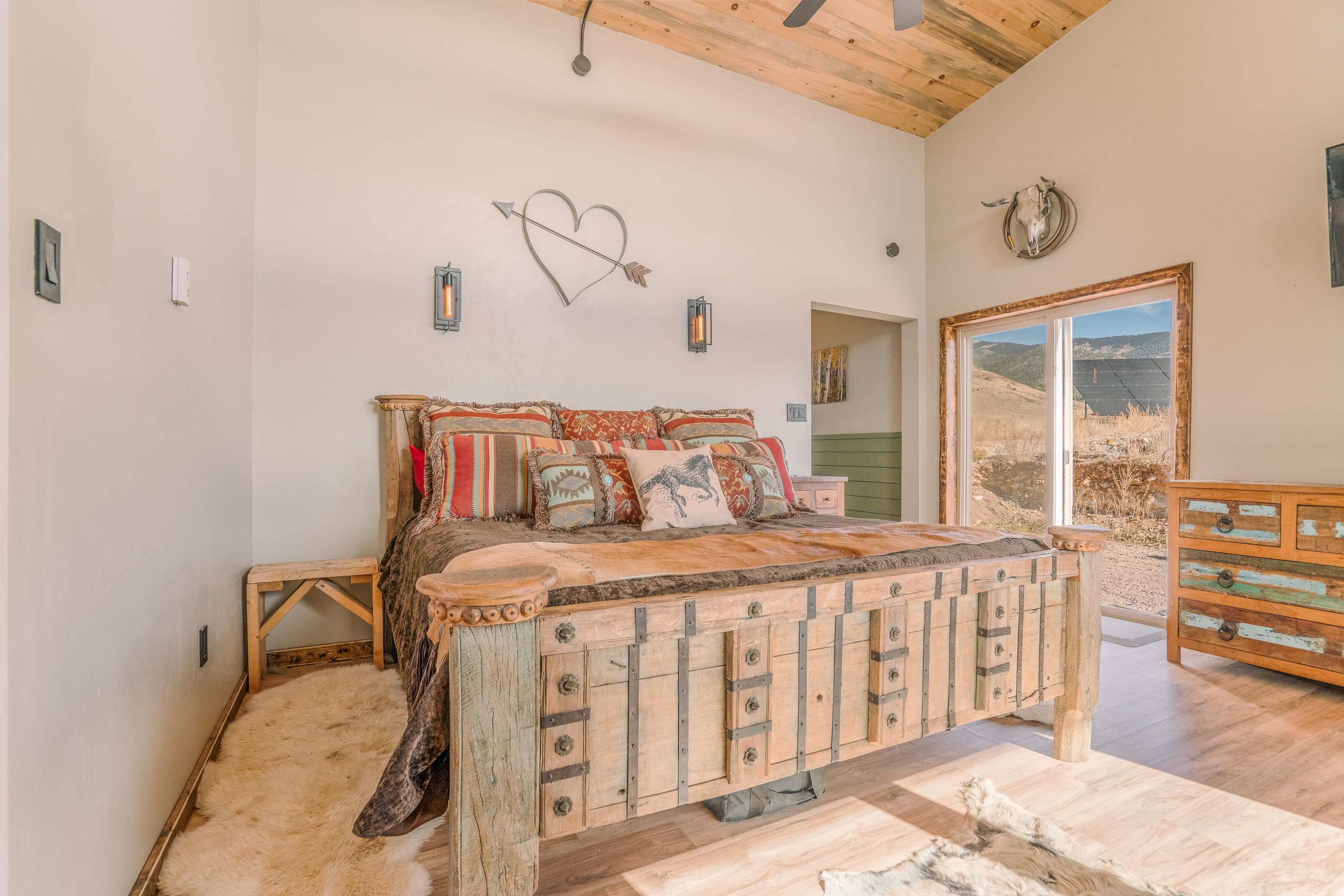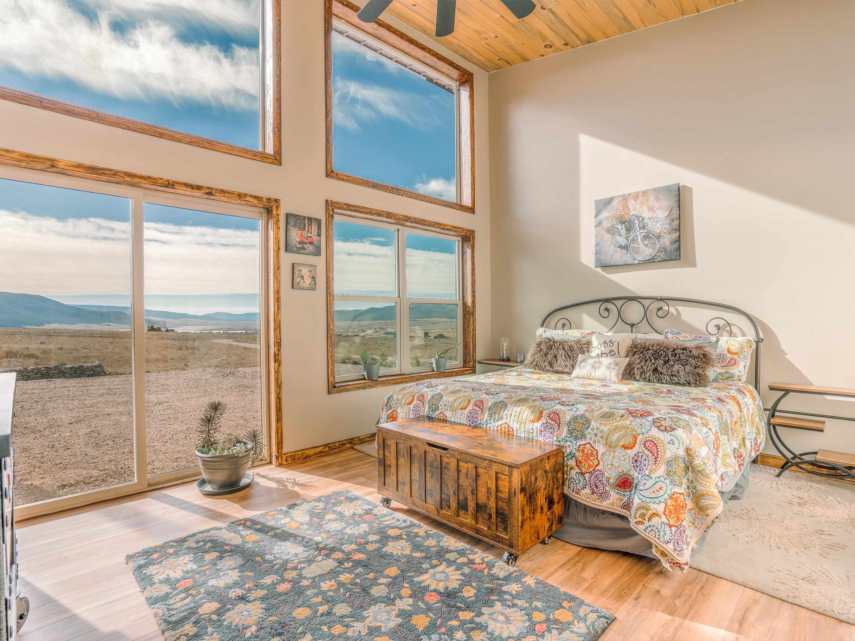 Nestled on 20 pristine acres just 2 minutes from the charming Village of Eagle Nest, this custom 2024 mountain home combines modern comfort with a true off-grid lifestyle. Designed for easy, one-level living, the 4-bedroom, 2-bath retreat offers abundant natural light, passive solar heating, and stunning views of the surrounding mountains, Eagle Nest Lake, Angel Fire Ski runs and wild life. The property is fully self-sufficient with owned solar power, a private well, septic system, 1,000-gallon propane tank (owned, not leased), and a backup generator. Starlink internet provides reliable high-speed connectivity, while the home’s durable metal roof and low-maintenance siding ensure long-lasting performance and protection in every season. This home is fully approved for horses, allowing up to four total (zoned at two horses per 10 acres). It also features a convenient RV hookup and an installed sewer connection, giving you flexibility for guests, travel setups, or future expansion. The shed houses batteries, and a spacious carport sits right at the entrance, providing covered parking for two vehicles. Inside, you’ll find in-floor radiant heating, tasteful furnishings included, and a modern yet warm mountain ambiance. Perfect for recreation lovers, the home is nestled between Angel Fire Resort and Red River Ski & Summer Resort just 20 minutes away. Eagle Nest Lake and the Cimarron River—famous for award-winning fly fishing—are minutes away. Mild summers, breathtaking views, and endless outdoor adventure make this a year-round haven.
