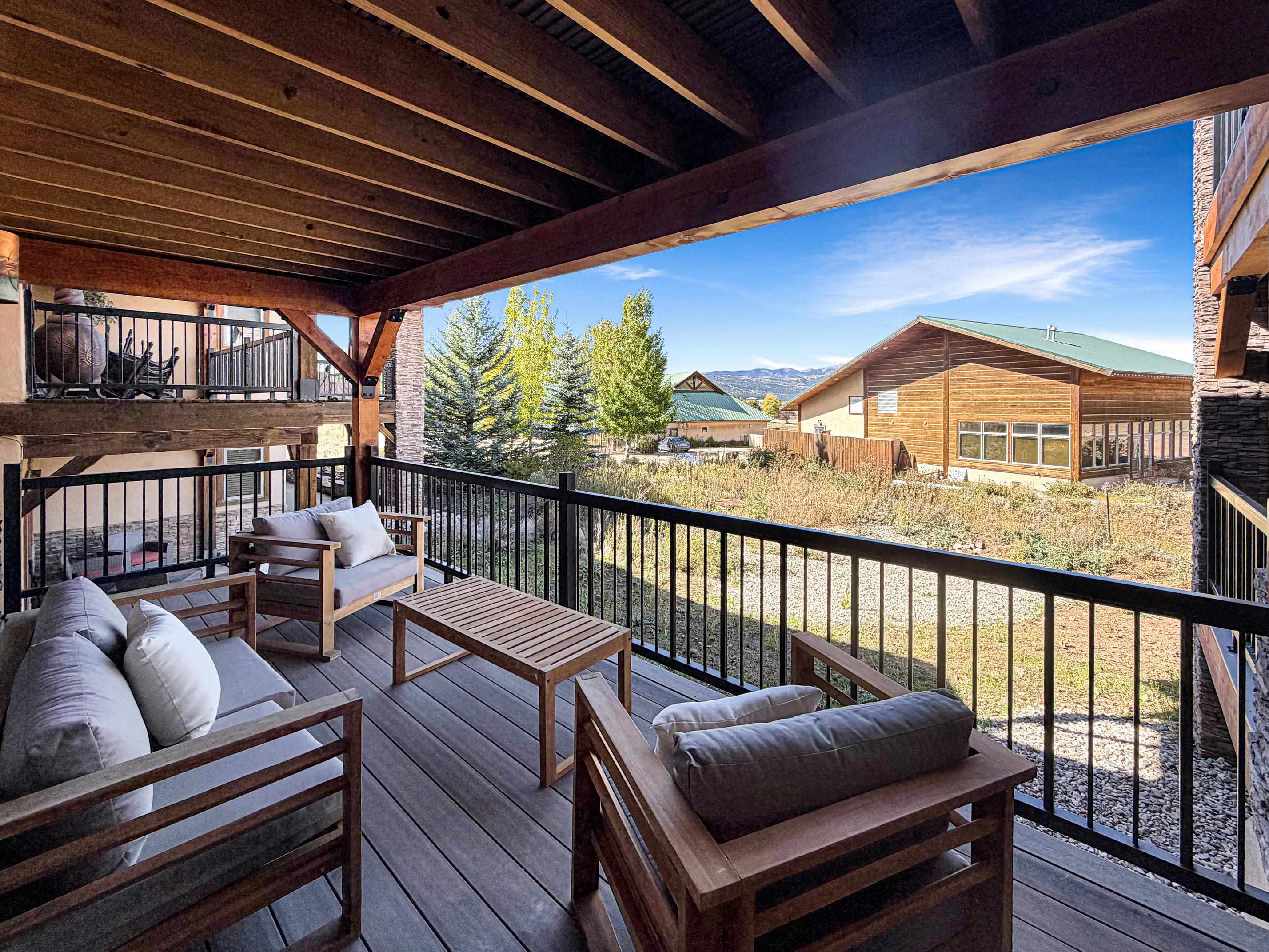 Newly built with a view, beautifully designed with a mountain modern aesthetic, combining stucco and stone finished exterior with a cozy interior for the perfect blend and comfort is ready to be yours! Enjoy the breathtaking surrounding mountains while sipping your hot cocoa next to the gas fireplace or outside on the covered porch. One-Story layouts make these condos accessible and convenient, catering to those looking for easy, low-maintenance living. These spacious 3 bedroom, 2 bath, with a soaking tub in the primary bath are a rare find in this condo market, so get yours today! Centrally located in the heart of Angel Fire, this condo gives you fast and easy access to all the amenities and activities Angel Fire has to offer.