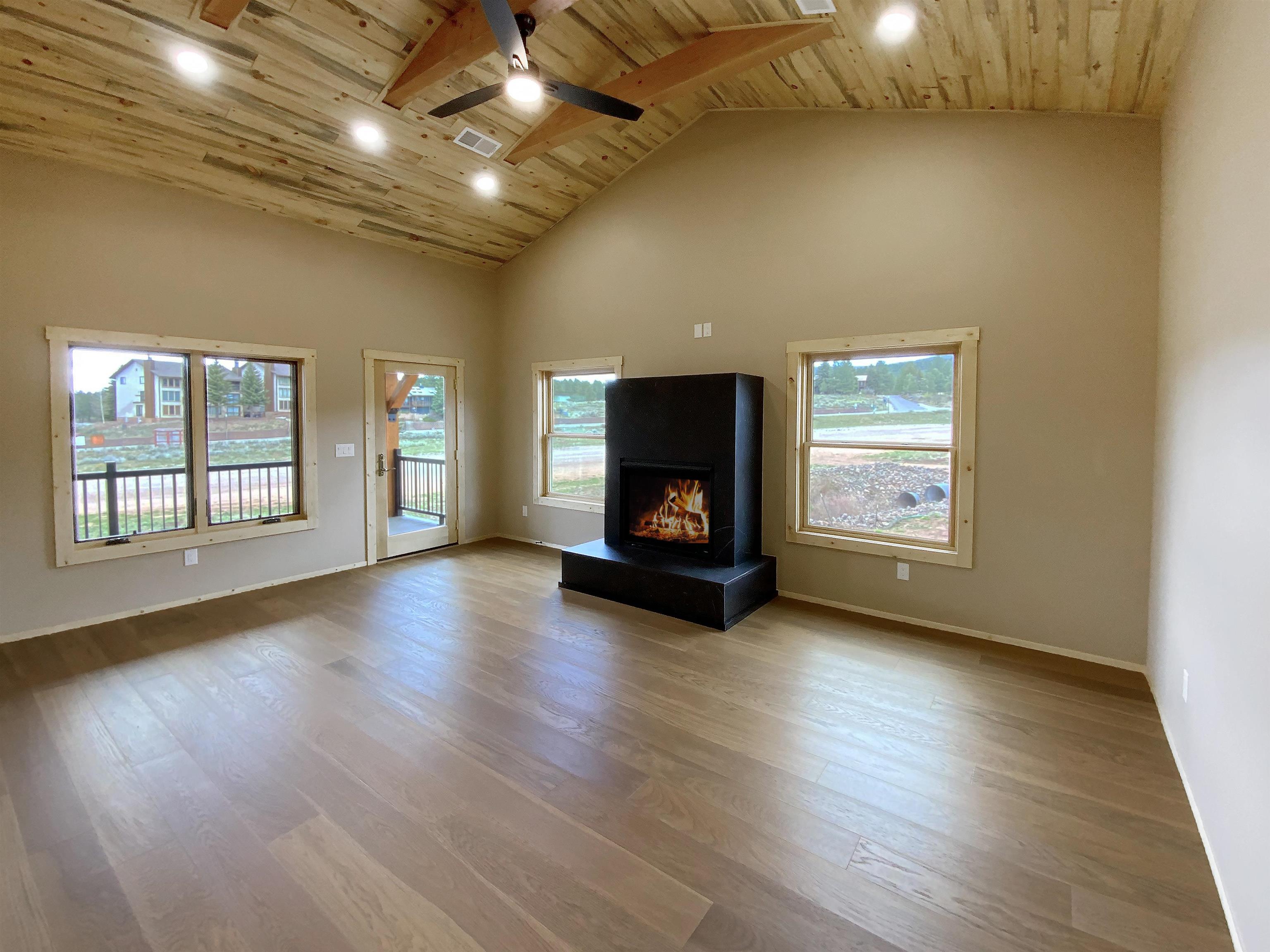 Newly built, beautifully designed with a mountain modern aesthetic, combining stucco and stone finished exterior with a cozy interior for the perfect blend and comfort is ready to be yours! Enjoy the breathtaking surrounding mountains while sipping your hot cocoa next to the gas fireplace or outside on the covered porch. One-Story layouts make these condos accessible and convenient, catering to those looking for easy, low-maintenance living. These spacious 3 bedroom, 2 bath, with a soaking tub in the primary bath are a rare find in this condo market, so get yours today! Centrally located in the heart of Angel Fire, this condo gives you fast and easy access to all the amenities and activities Angel Fire has to offer.