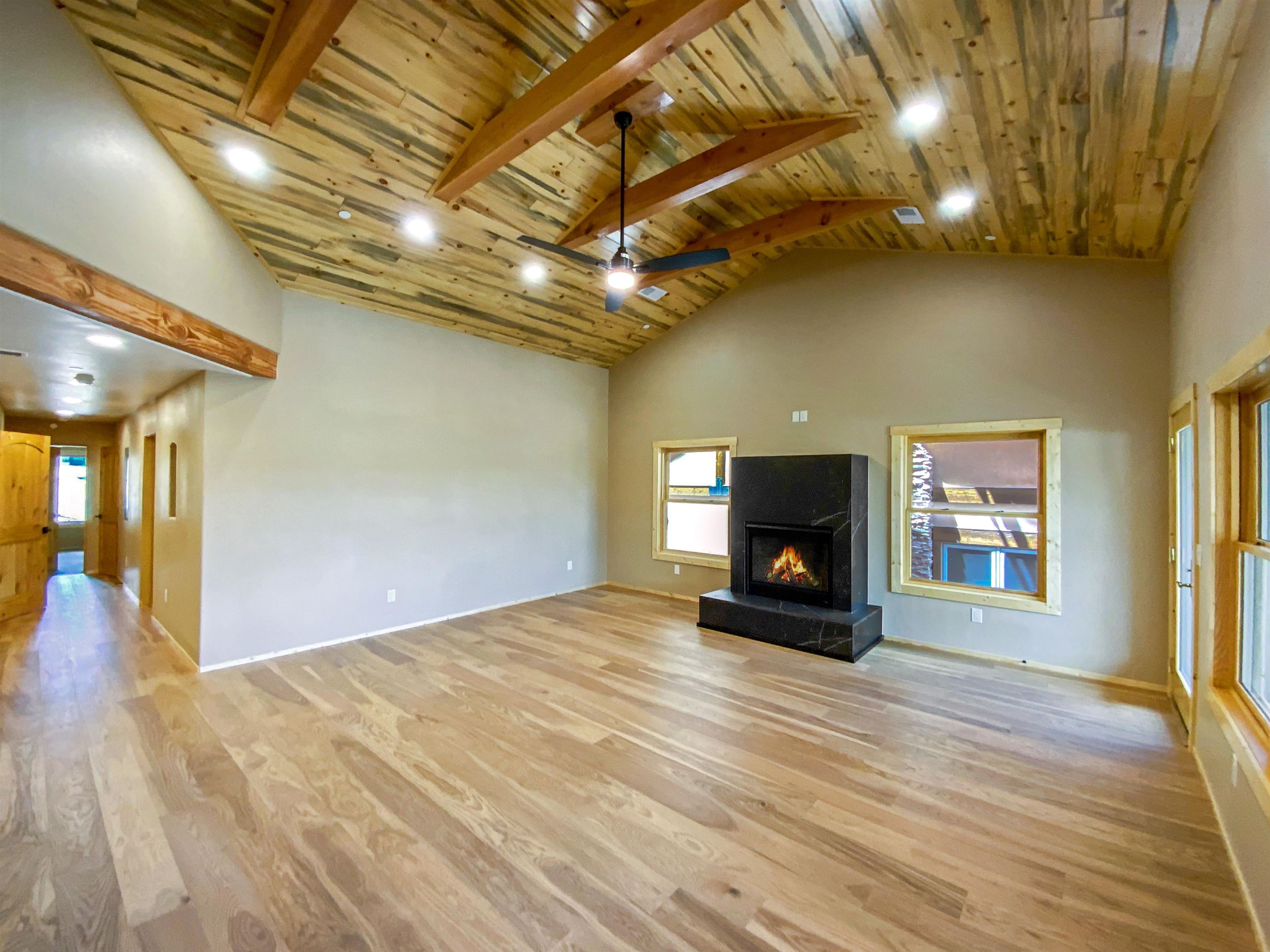 Newly built with a great view, beautifully designed with a mountain modern aesthetic, combining stucco and stone finished exterior with a cozy interior for the perfect blend and comfort is ready to be yours! Enjoy the breathtaking surrounding mountains while sipping your hot cocoa next to the gas fireplace or outside on the covered porch. One-Story layouts make these condos accessible and convenient, catering to those looking for easy, low-maintenance living. Featuring a beautiful high vaulted ceiling in the living room, this spacious 3 bedroom, 2 bath, with a soaking tub in the primary bath are a rare find in this condo market, so get yours today! Centrally located in the heart of Angel Fire, this condo gives you fast and easy access to all the amenities and activities Angel Fire has to offer.