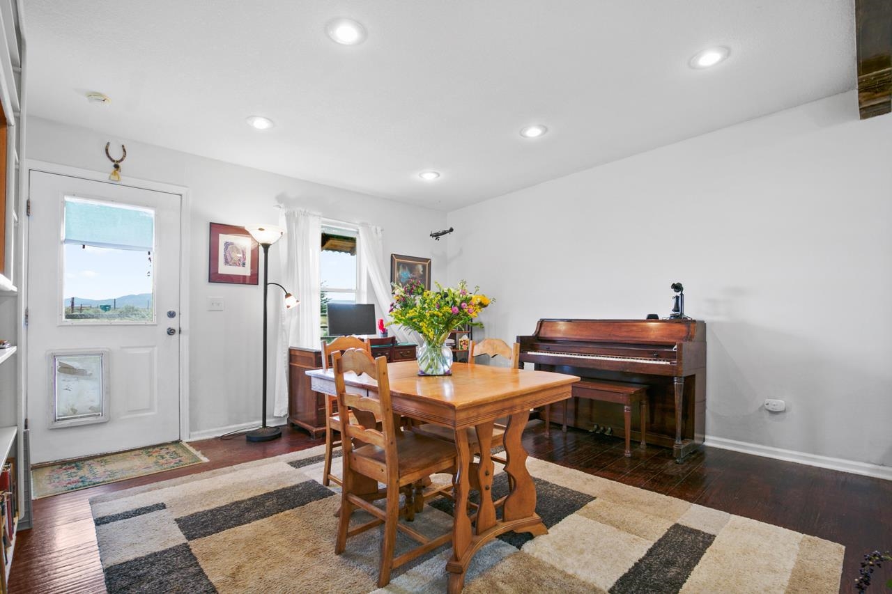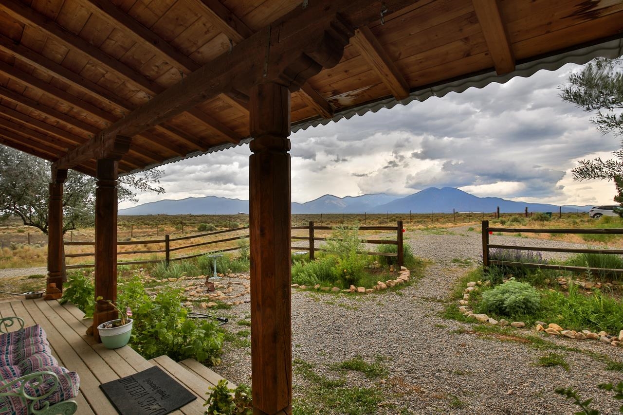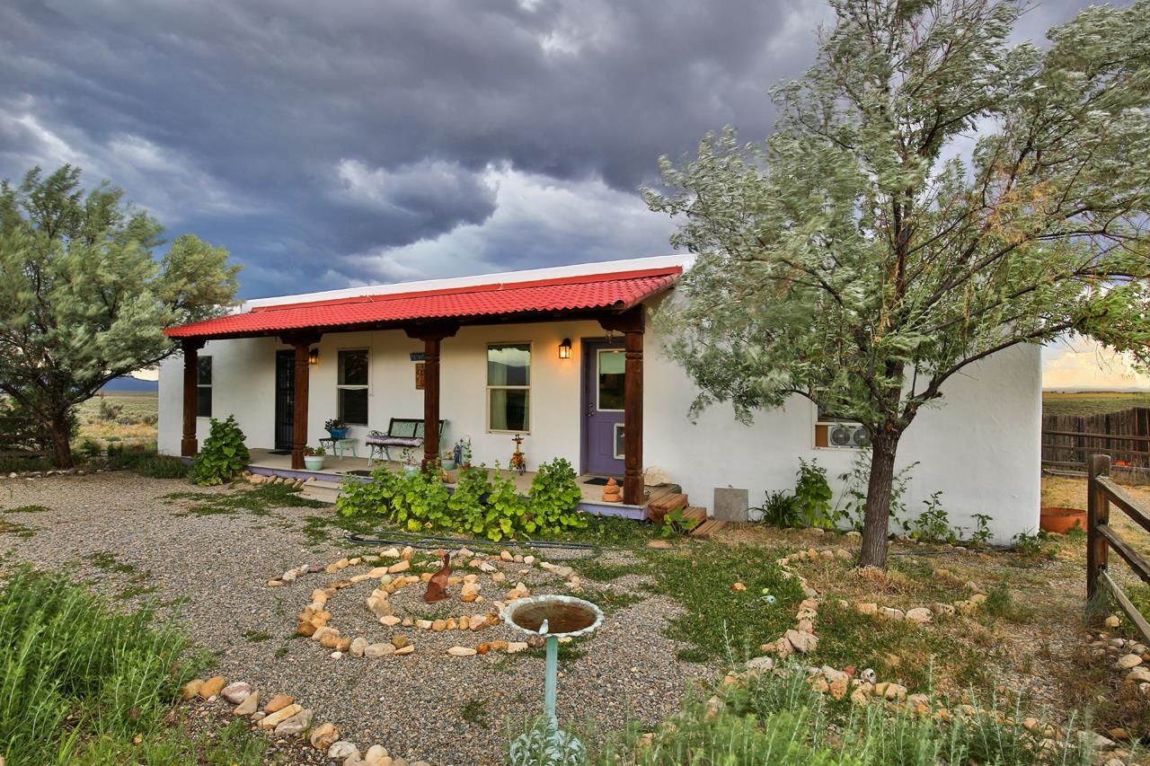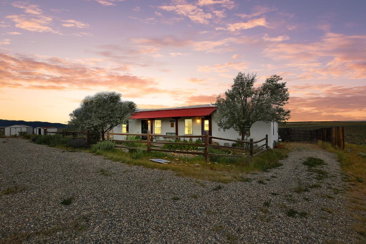 Cozy 2bed/1bath DUPLEX (975 sq ft each side) in the Camino Tortuga area on a 1.5 acre lot with faraway views of big sunsets and big sunrises over Taos Mountain. With tile and wood floors, landscaped yard and mature trees this is a home that is move in ready, or it could be an easy income producer or a home with an in-law unit. Come make home where you have dark skies, quiet and the serenity of the sage sea landscape. Each Unit comes with a full sized stove/range and a washer dryer. And there are two storage sheds in the full fenced yard. The property is on the side of a ridge on the northern edge of the property leaving you lots more land for other projects.