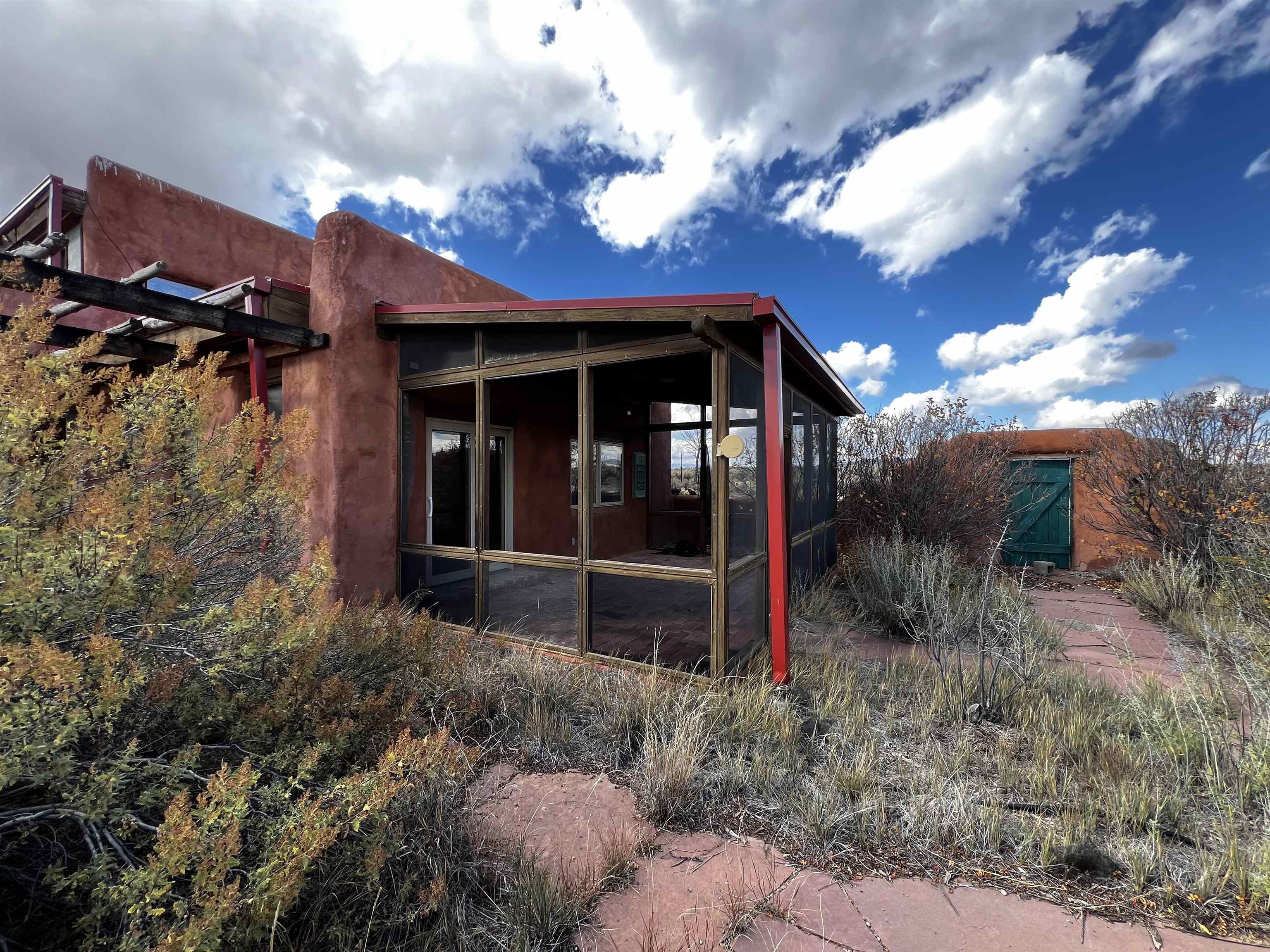 Sustainable living at its finest. There's no place like THIS home! Call this absolute stunner of a 2002 Charlie McGarity Post and Beam Strawbale home yours! 170 Two Hawks Trail is situated on a generous 20 acre parcel in the Cielito Lindo HOA protected off-grid subdivision just 30 easy minutes to the Town of Taos. Trade traffic jams for big views and organic architectural details. Decorative nichos are set throughout the residence in the natural plastered walls and large south facing picture windows warm the home with its passive solar design. Decorative railings by local artisan frame the second story loft while the bridge spanning the first floor leads to a deck with some of the biggest views in the valley. Water is provided via community well in addition to generous catchment system. Propane range in chefs kitchen. In floor propane powered radiant heat. It really does not get better. Priced to sell as is after sitting unattended and unmaintained for several years. Requires solar system replacement and other deferred maintenance work on the exterior at buyers expense.