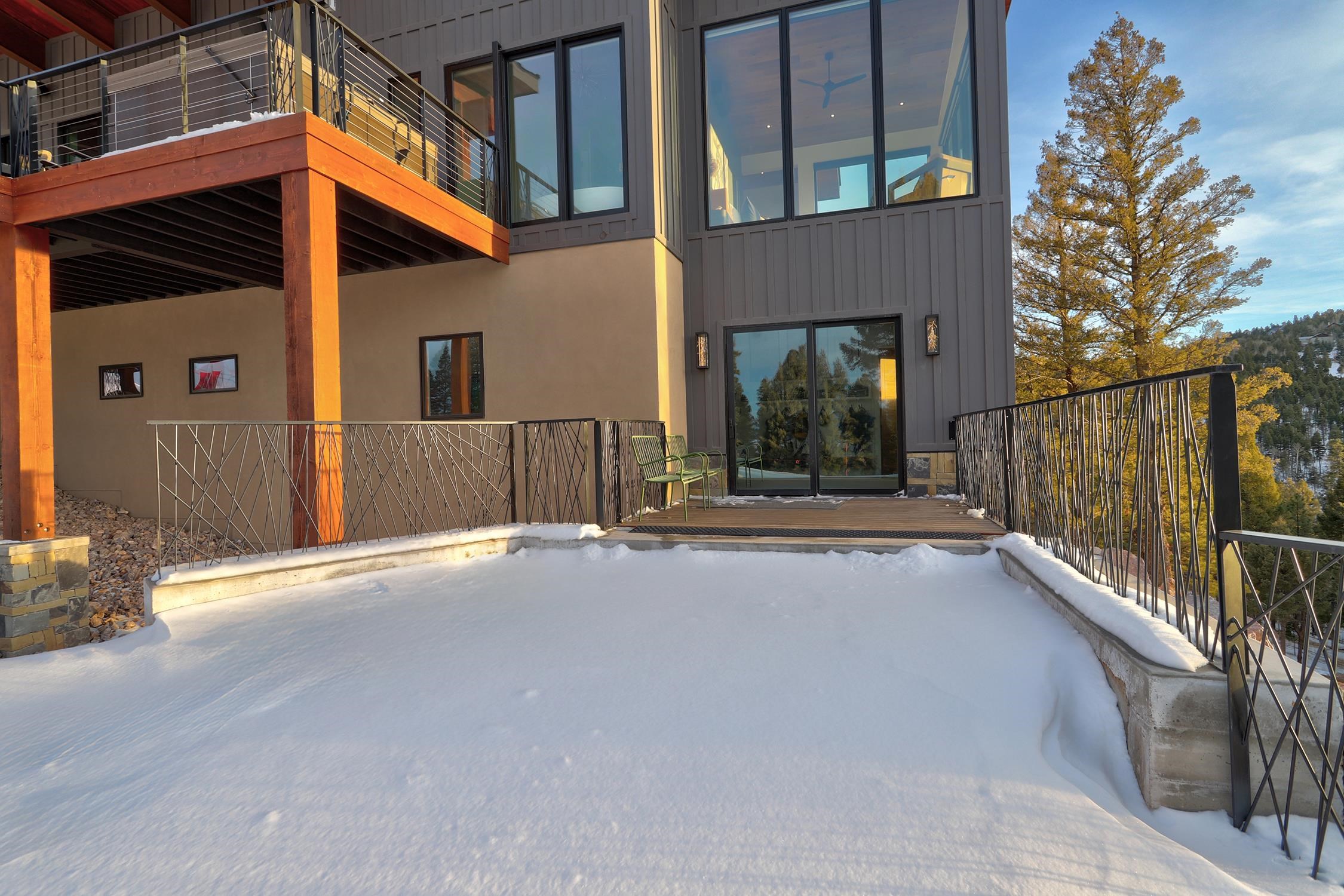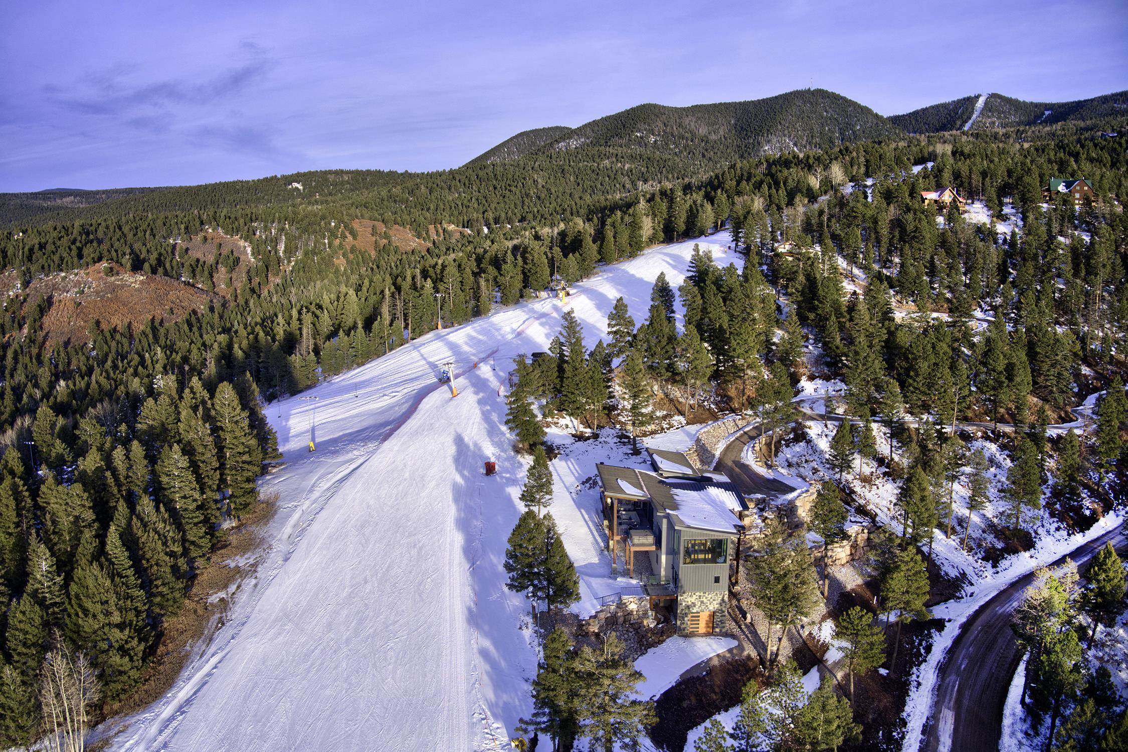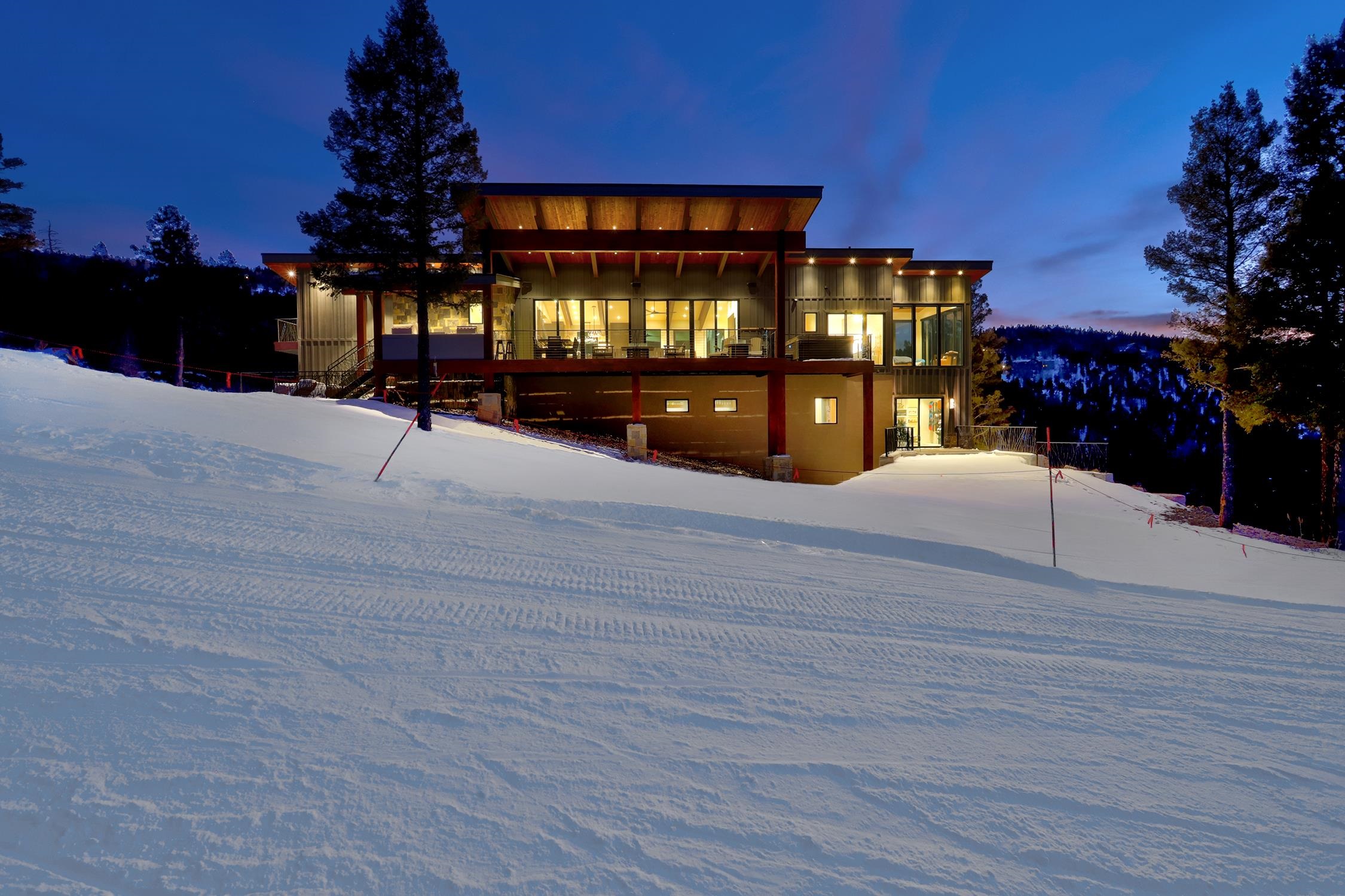 Welcome to 171 El Camino Real, an extraordinary ski-in/ski-out masterpiece and quite simply the finest slope-side home Angel Fire has ever seen. Completed in 2025 by Lindsey Custom Builders, this architectural showpiece was meticulously positioned to capture unmatched day and night ski access and breathtaking panoramic views of Wheeler Peak and the Ridge Run ski slope. Spanning 4,604 square feet, this luxury mountain retreat offers 3 bedrooms plus a bonus room ideal for an office or flex space, 4 full bathrooms, and 2 half baths, with every bedroom featuring a private ensuite—a must-have in today’s premier custom homes. Two expansive living areas provide the perfect balance of comfort and flexibility, making this an exceptional full-time residence or high-end vacation home. Designed for both adventure and elegance, the home features a 2-car garage plus a dedicated toy garage for all your mountain gear. A thoughtfully designed ski room with half bath, complete with ski boot warmers and floor drains, ensures effortless transitions from slope to home. The heart of the home is the stunning open-concept kitchen, living, and dining space, highlighted by two sets of bi-parting glass doors that blur the line between indoors and out. The chef’s kitchen boasts a walk-in pantry, built-in coffee maker, wine fridge, dual sinks, and a large island seating six, perfect for entertaining after a day on the mountain. The primary suite is a true sanctuary, featuring wall-to-wall, floor-to-ceiling windows that frame unforgettable mountain and ski slope views. The spa-inspired primary bath includes a huge tiled steam shower with multiple shower heads, an extra-long vanity, and a luxurious soaking tub. Outdoor living is equally impressive, with wraparound decks featuring custom metal railings, fire pits, an outdoor kitchen, and a hot tub—all designed to take full advantage of the alpine setting. Inside and out, the home showcases stylish lighting that blends modern sophistication with mountain warmth, while striking structural elements—exposed metal beams extending from interior to exterior and substantial timber supports—create bold architectural character. The exterior’s blend of stone, cedar siding, and stucco delivers timeless mountain curb appeal. This is more than a home—it’s a statement property, offering unparalleled design, comfort, and access in the heart of Angel Fire’s ski terrain. Opportunities like this are exceptionally rare.