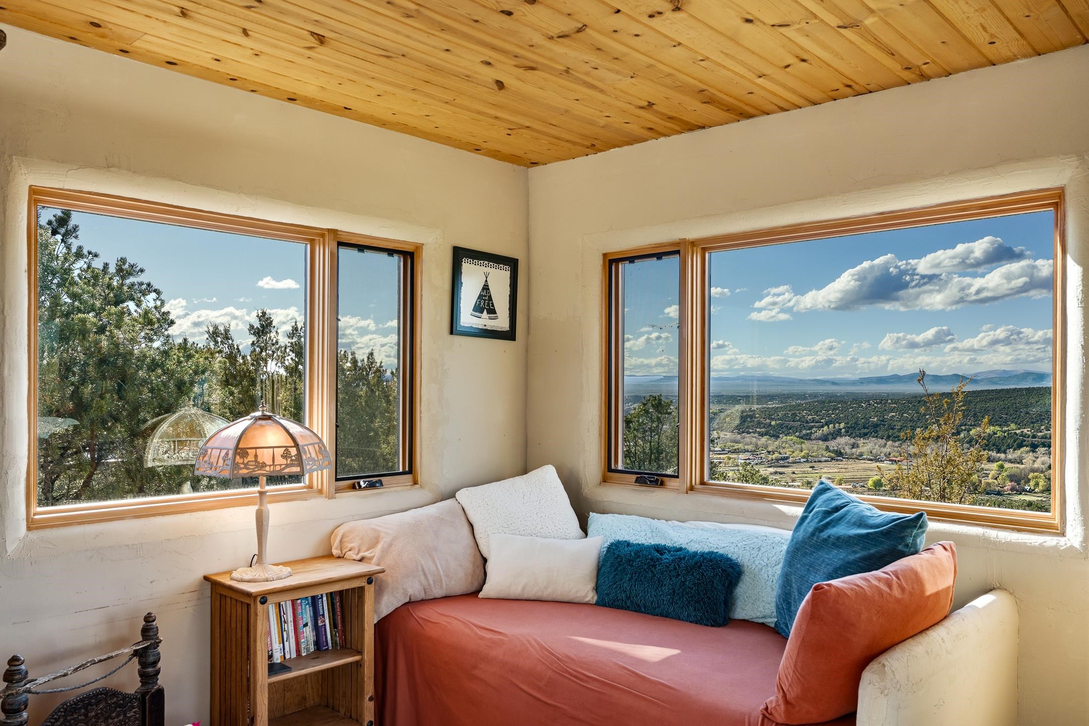Perched on a breathtaking ridgetop in a highly sought-after area off Hondo Seco Road in Arroyo Hondo, this exceptional property captures sweeping, unobstructed views of the Sangre de Cristo Mountains and embodies the ultimate Taos lifestyle. Offering a combined total of 4,391 square feet of living space between the main residence and a detached casita, the property provides both scale and flexibility for refined living, guest accommodations, or creative use. Surrounded by natural beauty and privacy, yet just minutes from Taos Ski Valley, the Historic Taos Plaza, Taos Pueblo, and endless outdoor recreation, this is a rare opportunity in one of Northern New Mexico’s most coveted settings. The main residence features 2 bedrooms and 2 bathrooms, blending authentic Southwestern character with comfortable, flexible living. Rich plaster walls, exposed wood beams, and a striking kiva fireplace create a warm and inviting atmosphere. Multiple living areas provide space to gather, unwind, and entertain, with seamless access to outdoor patios that enhance the indoor-outdoor flow. A standout feature is the dedicated entertainment lounge, designed for both relaxation and hosting. This inviting space features a custom bar, a lounge area, a fireplace, and space for recreation—ideal for game nights, movie nights, or casual entertaining. Adjacent to the game room is an additional flex space, perfectly suited for a home office, creative studio, fitness area, or overflow guest accommodations, along with a nearby guest bathroom for added convenience. The expansive second-story retreat is flooded with natural light and framed by panoramic mountain views. Currently used as a creative studio and lounge, this inspiring space offers incredible versatility—ideal for an art studio, yoga space, or additional guest quarters. The detached casita is equally compelling—full of charm, privacy, and its own unforgettable views. With a strong short-term rental history, it presents an excellent income-producing opportunity or a perfect guest retreat. Outdoor living is where this property truly shines. Expansive brick patios wrap around the home, offering multiple seating and entertaining areas designed to capture sunrise, sunset, and everything in between. Enjoy evenings under the stars in the private hot tub, gather around the outdoor kiva fireplace, or dine al fresco while taking in the sweeping high-desert landscape.