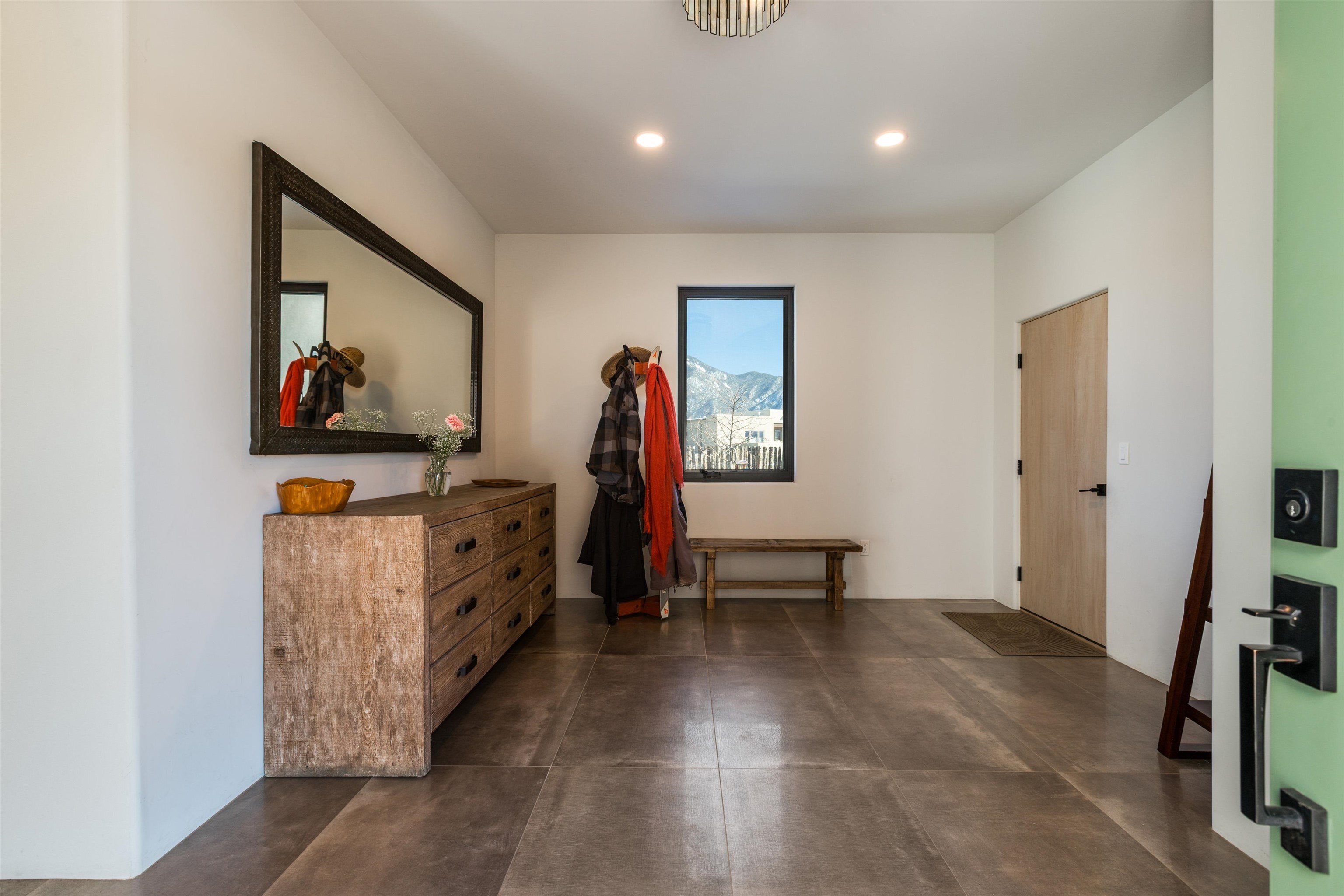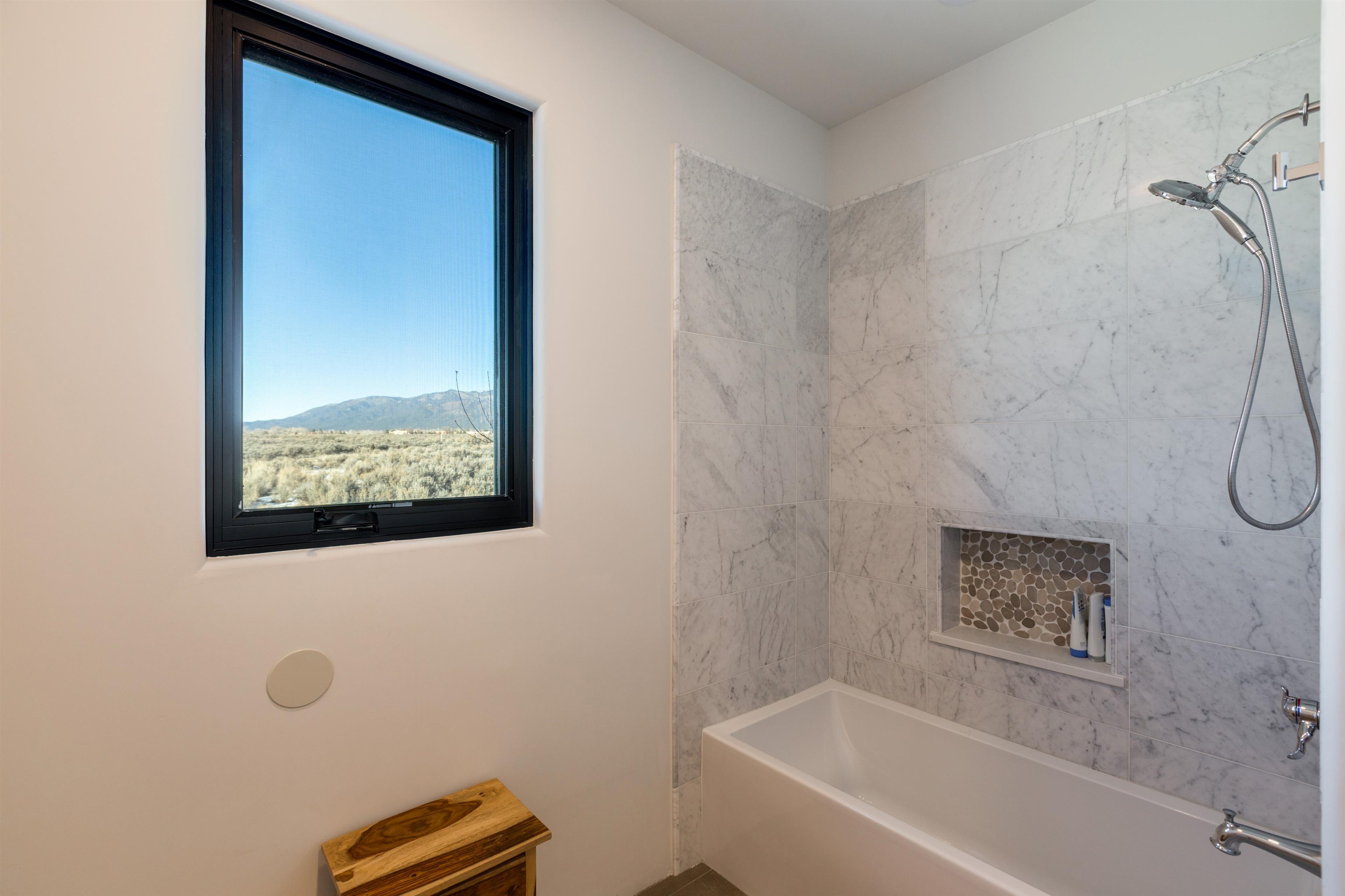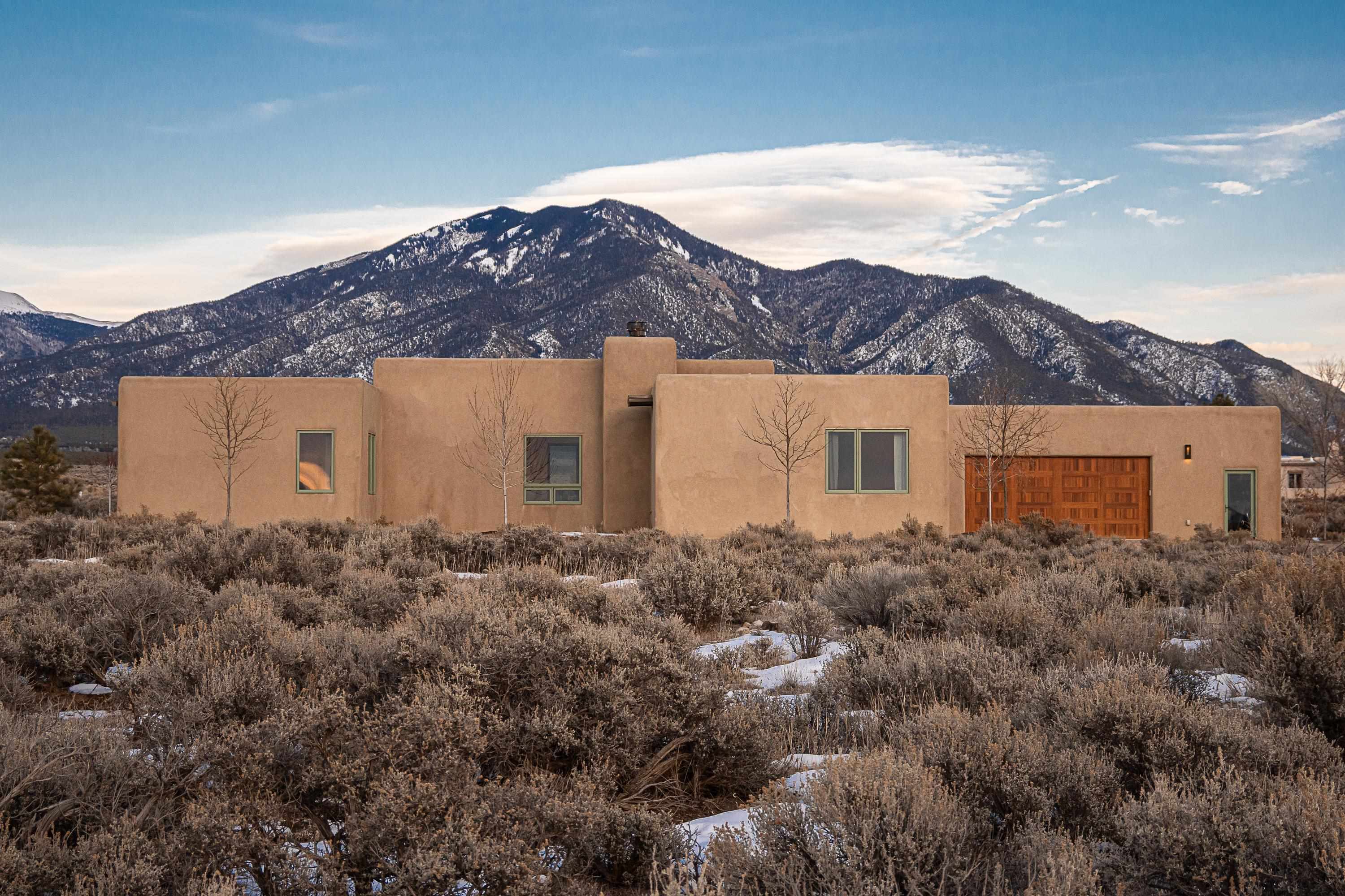 Set in a coveted northside location with expansive views of Taos Mountain, this beautifully crafted contemporary Southwestern home by Edelman Enterprises offers an effortless blend of comfort, quality, and style. Thoughtfully designed with wonderful natural light throughout, the home features three bedrooms and three baths with a spacious, flowing layout ideal for both everyday living and entertaining. The open great room and kitchen serve as the heart of the home, seamlessly connecting to a covered portal that opens onto a lush grassy lawn—perfect for morning coffee, evening gatherings, or simply taking in the mountain air. Clean architectural lines and warm Southwestern finishes create an inviting yet refined atmosphere. A gigantic oversized heated, attached two-car garage (equipped with EV Charging) provides abundant space for vehicles, storage, or gear for all your Taos adventures. With its sought-after northside setting, quality construction, and easy indoor-outdoor living, this property offers a rare opportunity to enjoy the very best of Taos living.