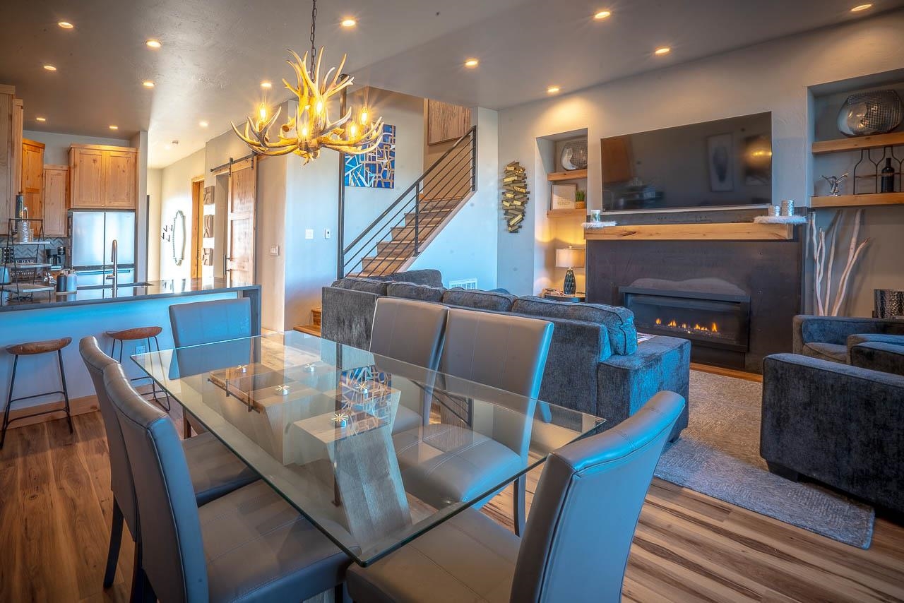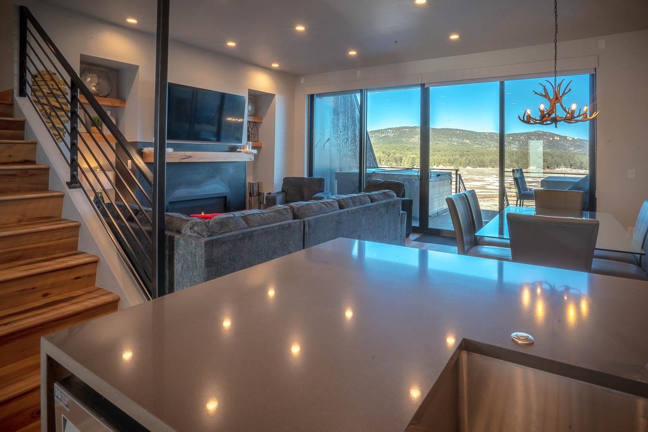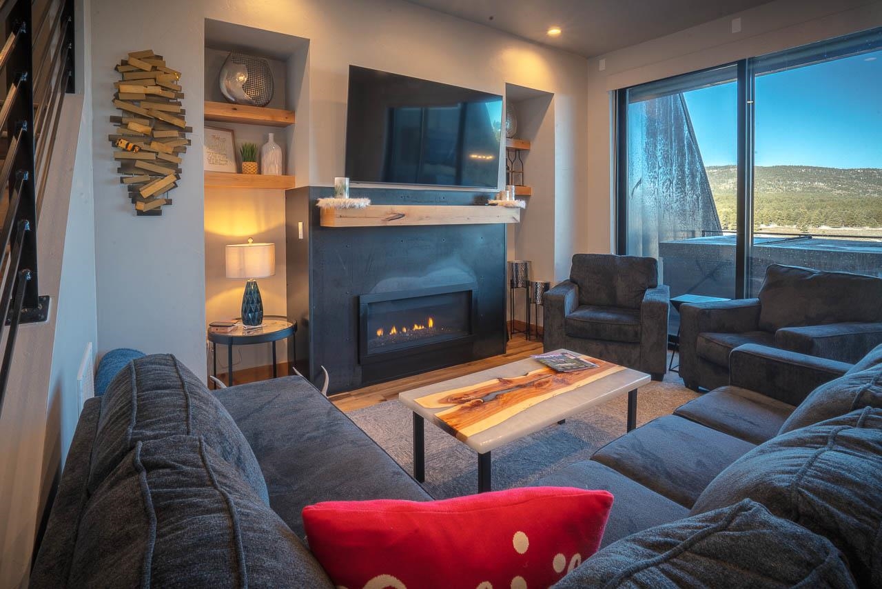 NEW, MODERN, UPSCALE, STUNNING! Welcome to Valley View Villas, Angel Fire’s newest townhome community, completed in 2023, and this home was finished with no expenses spared. This is IT! Four bedrooms, four and a half bathrooms, 2,208 square feet, open concept kitchen, living room and dining room, with several outdoor spaces and direct views of the majestic Wheeler Peak. Two of the bedrooms have en suite bathrooms. The third level bedroom is extremely large allowing for multiple sleep areas, a games center, and a media area. The kitchen is a chef’s dream; upgraded stainless steel appliances, expanded counter space, abundant cabinets and storage, and an extra-large pantry, all flowing into the dining and living room areas. The interior is loaded with high-end features throughout, air conditioning for those warmer months, large windows, gas fireplace, and high-end furnishings. There is also a one-car attached garage with large owner’s closet, hot tub, two outdoor balconies, barbeque grill, an outdoor television to watch your favorite shows and games and still enjoy the incredible views, an outside bar area, a fenced yard, and a large storage area on the first level under the home for your mountain bikes and more. Location, location, location. This home is located a few blocks from the ski and mountain biking lifts! This is definitely your vacation fantasy come-true. This home is currently a very successful rental bringing in $800 - $1500 per night. Angel Fire Resort is an internationally renowned Resort Mountain with a mountain bike terrain park in the warmer months, a ski resort with 80+ runs in the winter, a PGA-rated 18-hole golf course, $15 million Country Club with indoor pool and restaurants, tennis courts, sledding-hill, cross-country skiing and snowshoeing, and trout-stocked Monte Verde Lake. Fly to Angel Fire Airport in your private aircraft just minutes away from this condo. Angel Fire is about twenty minutes to Eagle Nest State Park with great fishing and boating, about thirty minutes to the Town of Red River, about forty-five minutes to the Town of Taos, two hours from Santa Fe and three hours from Albuquerque. This is truly the Land of Enchantment with numerous outdoor activities and four beautiful weather seasons. When it is 100+ degrees elsewhere, the average summer temperature in Angel Fire is 76 degrees with extremely low humidity and no mosquitoes. HOA dues include water, sewer, driveway maintenance and snow removal. This listing has a property website with 3D interior video tour, exterior drone video, more photos and property documents. This home is being sold fully furnished, and it is definitely a must-see! Just bring your clothes and toothbrush and enjoy the finest in mountain living.