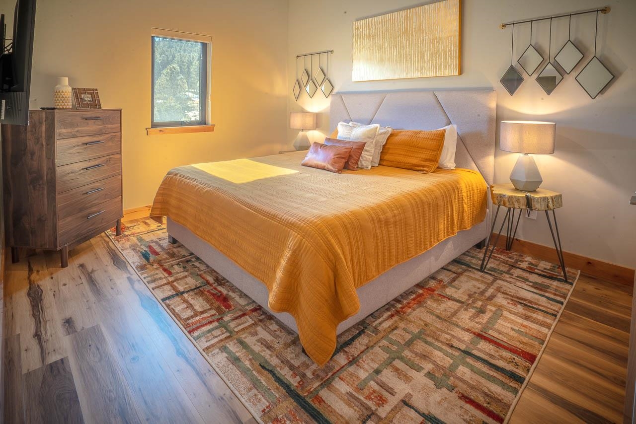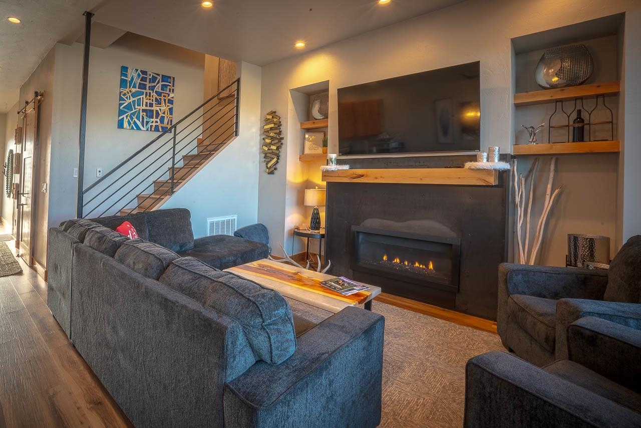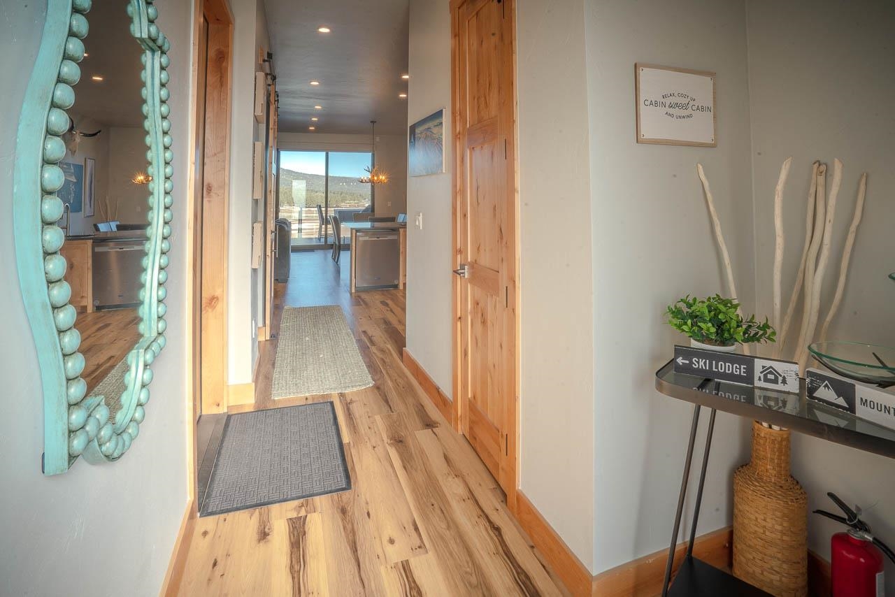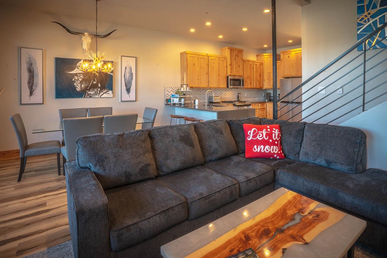 NEW, MODERN, UPSCALE, STUNNING! Welcome to Valley View Villas, Angel Fire’s newest townhome community, completed in 2023, and this home was finished with no expenses spared. This is IT! Four bedrooms, four and a half bathrooms, 2,208 square feet, open concept kitchen, living room and dining room, with several outdoor spaces and direct views of the majestic Wheeler Peak. Two of the bedrooms have en suite bathrooms. The third level bedroom is extremely large allowing for multiple sleep areas, a games center, and a media area. The kitchen is a chef’s dream; upgraded stainless steel appliances, expanded counter space, abundant cabinets and storage, and an extra-large pantry, all flowing into the dining and living room areas. The interior is loaded with high-end features throughout, air conditioning for those warmer months, large windows, gas fireplace, and high-end furnishings. There is also a one-car attached garage with large owner’s closet, hot tub, two outdoor balconies, barbeque grill, an outdoor television to watch your favorite shows and games and still enjoy the incredible views, an outside bar area, a fenced yard, and a large storage area on the first level under the home for your mountain bikes and more. Location, location, location. This home is located a few blocks from the ski and mountain biking lifts! This is definitely your vacation fantasy come-true. This home is currently a very successful rental bringing in $800 - $1500 per night. Angel Fire Resort is an internationally renowned Resort Mountain with a mountain bike terrain park in the warmer months, a ski resort with 80+ runs in the winter, a PGA-rated 18-hole golf course, $15 million Country Club with indoor pool and restaurants, tennis courts, sledding-hill, cross-country skiing and snowshoeing, and trout-stocked Monte Verde Lake. Fly to Angel Fire Airport in your private aircraft just minutes away from this condo. Angel Fire is about twenty minutes to Eagle Nest State Park with great fishing and boating, about thirty minutes to the Town of Red River, about forty-five minutes to the Town of Taos, two hours from Santa Fe and three hours from Albuquerque. This is truly the Land of Enchantment with numerous outdoor activities and four beautiful weather seasons. When it is 100+ degrees elsewhere, the average summer temperature in Angel Fire is 76 degrees with extremely low humidity and no mosquitoes. HOA dues include water, sewer, driveway maintenance and snow removal. This listing has a property website with 3D interior video tour, exterior drone video, more photos and property documents. This home is being sold fully furnished, and it is definitely a must-see! Just bring your clothes and toothbrush and enjoy the finest in mountain living.