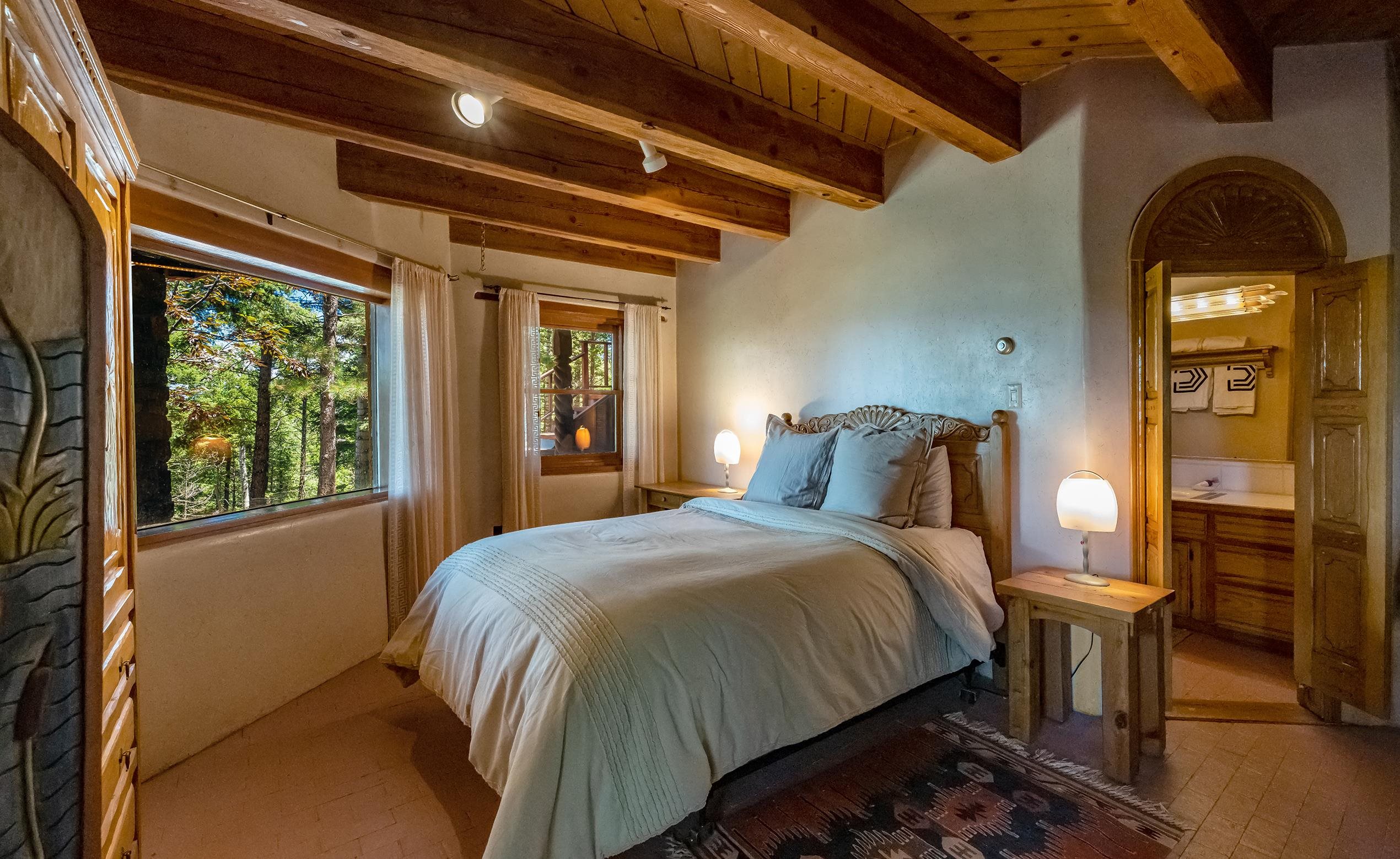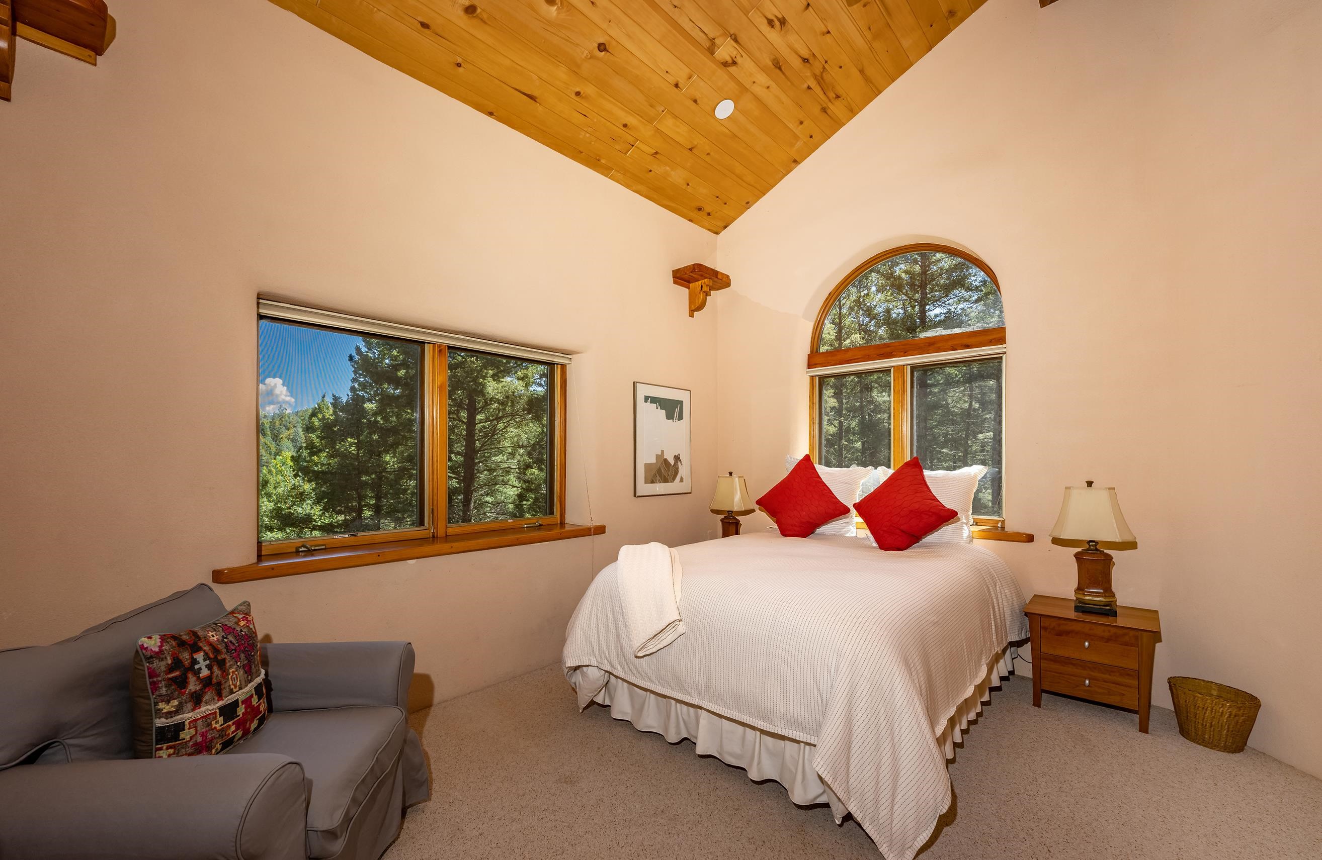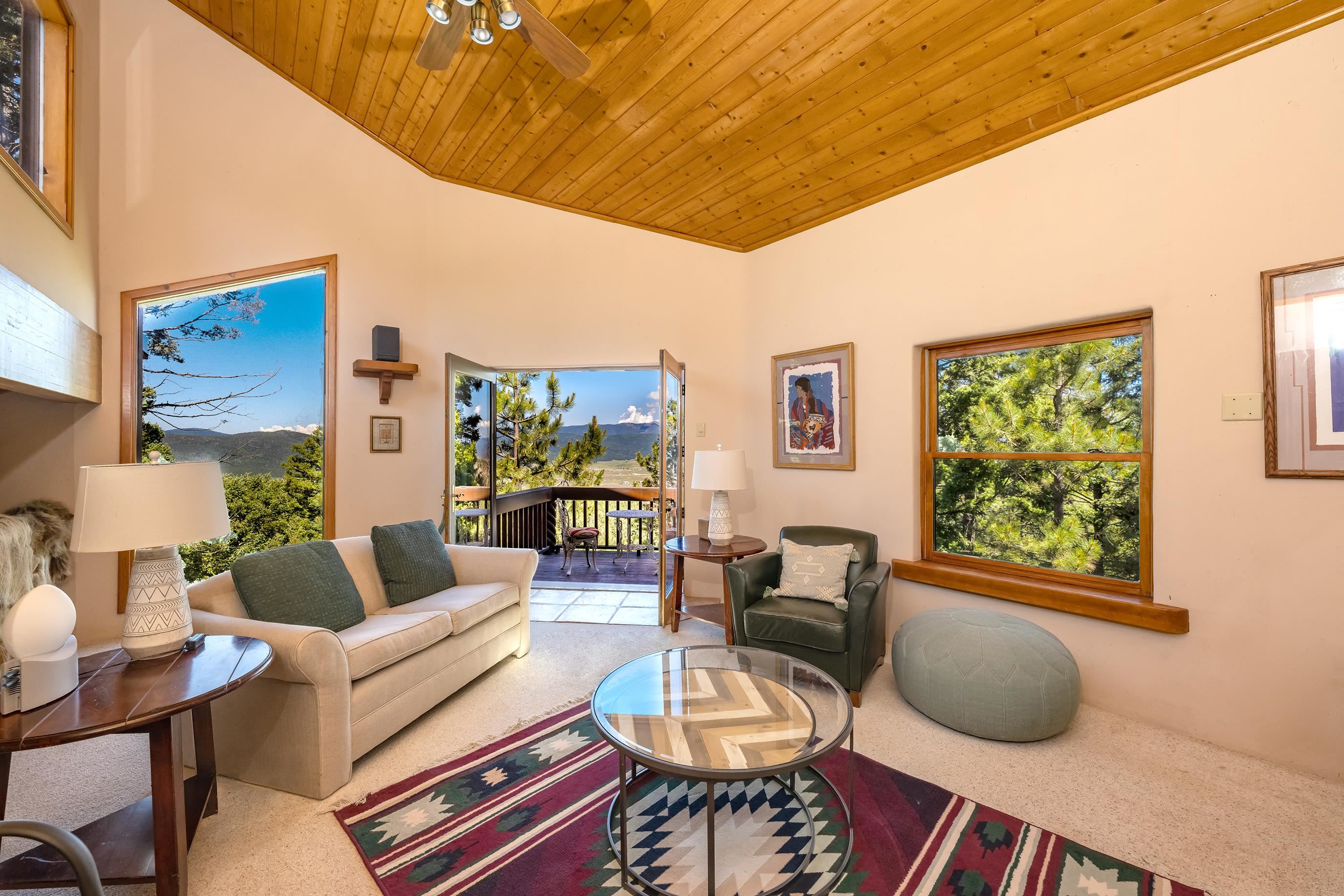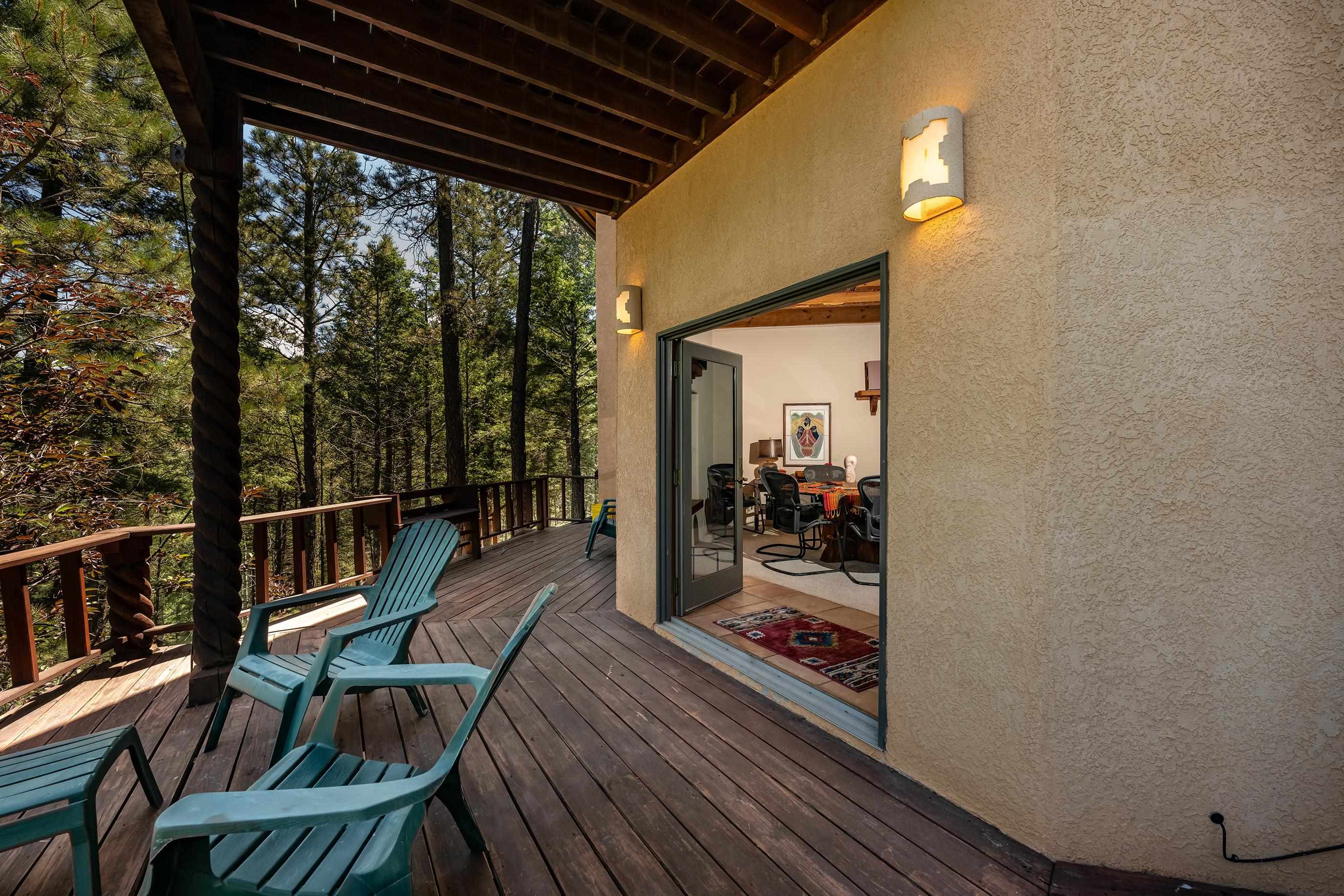 A Sustainable Estate in the southern Rocky Mountains of northern New Mexico can be yours.This Eco-Masterpiece is on 45 acres of native forest and wildlife habitat situated within Angel Fire Resort. An emerging destination, this family ski resort has 86 ski trails and mountain biking mid-May to mid-October. The Resort has an 18-hole PGA Golf Course, tennis and pickleball courts, and a country club with pool, fitness center and fine dining. Angel Fire Airport, a 10-minute drive to its jet-capable runway, serves private aircraft as well as Advance Air's 5 roundtrips a week from Albuquerque. Privacy and seclusion are secured on all sides with the north boundary being the 130,000-acre historic CS Ranch. A seasonal creek runs through a private 6-acre meadow. This legacy home is built to last with many green and sustainable features. It will continue to provide privacy, security, energy, food and enjoyment as a nurturing retreat for years to come. Beautiful - Indoors and Out, Practical, Resilient. This modern home is designed with the vision to survive the challenges of the future. With panoramic, forever views of the Wheeler range, this mighty three-story 8,074 sq ft Eco-block home, with 12 and 24-inch thick walls, is built to endure the elements and last for generations.There are 6,784 sq. ft of heated, move-in ready dramatic living space with two interior greenhouses created by carefully selected local craftsmen. The first floor features an authentic adobe Casita with its own full kitchen, custom cabinetry, furniture and a private entrance. The Casita has been in a successful short-term rental program, with numerous five-star reviews. Adjacent to the Casita on the first floor are 575 sq ft of utility and mechanical rooms, extensive working storage, and a 715 sq ft space designed as a separate apartment with its own entrance ready for you to complete to your liking. The overall floor plan is in the Photo Gallery of this listing. Outdoors there are 2,500 sq ft of tiered, organic gardens in the walled area south of the patio. In addition, two food and flower-producing greenhouses are inside - one in the Atrium hot tub room, and a larger one off the main kitchen for easy access to fresh food year-round. The spacious light-filled kitchen has been fully upgraded with high quality appliances, special granite countertops, a large working island and walk-in pantry. The modern passive solar architecture sets this solar sanctuary apart. This intelligent home has many solar and high-tech features - solar electricity and whole-house radiant floor heating, as well as passive solar features enabled by the homes’ perfect solar alignment. The whole home is a green design, built from the ground up with many sustainable, non-toxic features (see list in the Photo Gallery) that provide energy efficiency, comfort, strength, and durability. Modern solar panel tracking racks with updated batteries cut utility bills. Solar Thermal panels quietly supply the primary heat day and night. The local utility, Kit Carson Electric Coop, operates a major 6MW solar farm microgrid with 6MW/hr battery backup, providing double-back up to the home’s solar system, focused on the resilience of the home office. There is ultra high-speed fiber-optic internet/Wi-Fi throughout, enabling full-time working from home. You must see this special property to truly appreciate the craftsmanship in every room - from the vaulted ceilings, beautiful local beams and vigas, to the stunning floor-to-ceiling rock wall fireplace in the living room, leading out to the pristine forest that wraps around the home. Private, secure parking for 5 cars: 2 in garage (EV-charging ready) and 3 in parking area. Taos is 24 miles away, offering eclectic shopping, art galleries, restaurants, museums, world-class Taos Ski Valley, and a modern hospital. Historic Santa Fe is just a 2-hour drive. Make an appointment to see this Eco-Masterpiece.