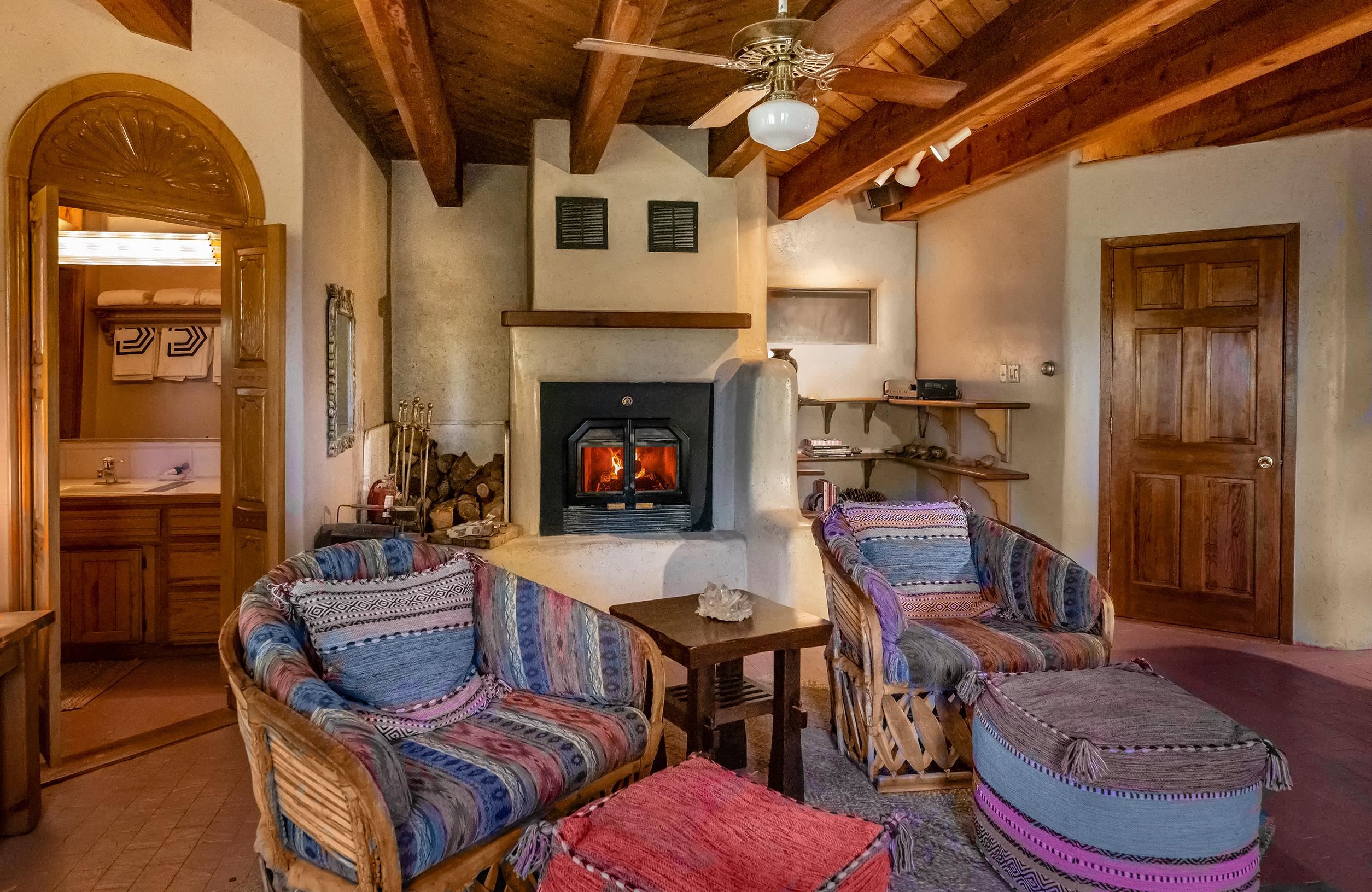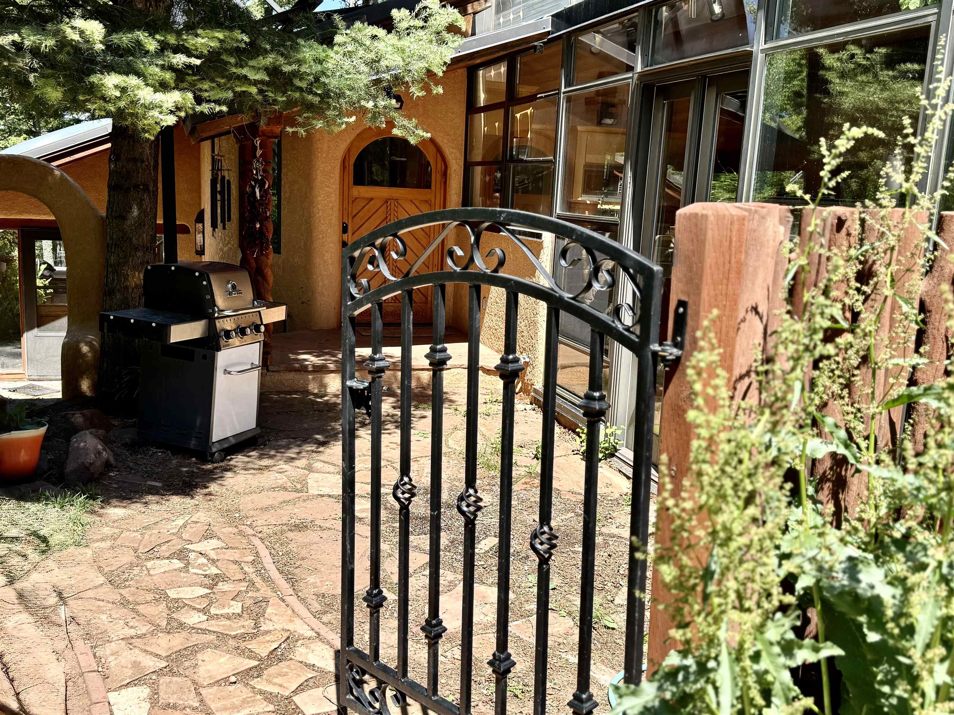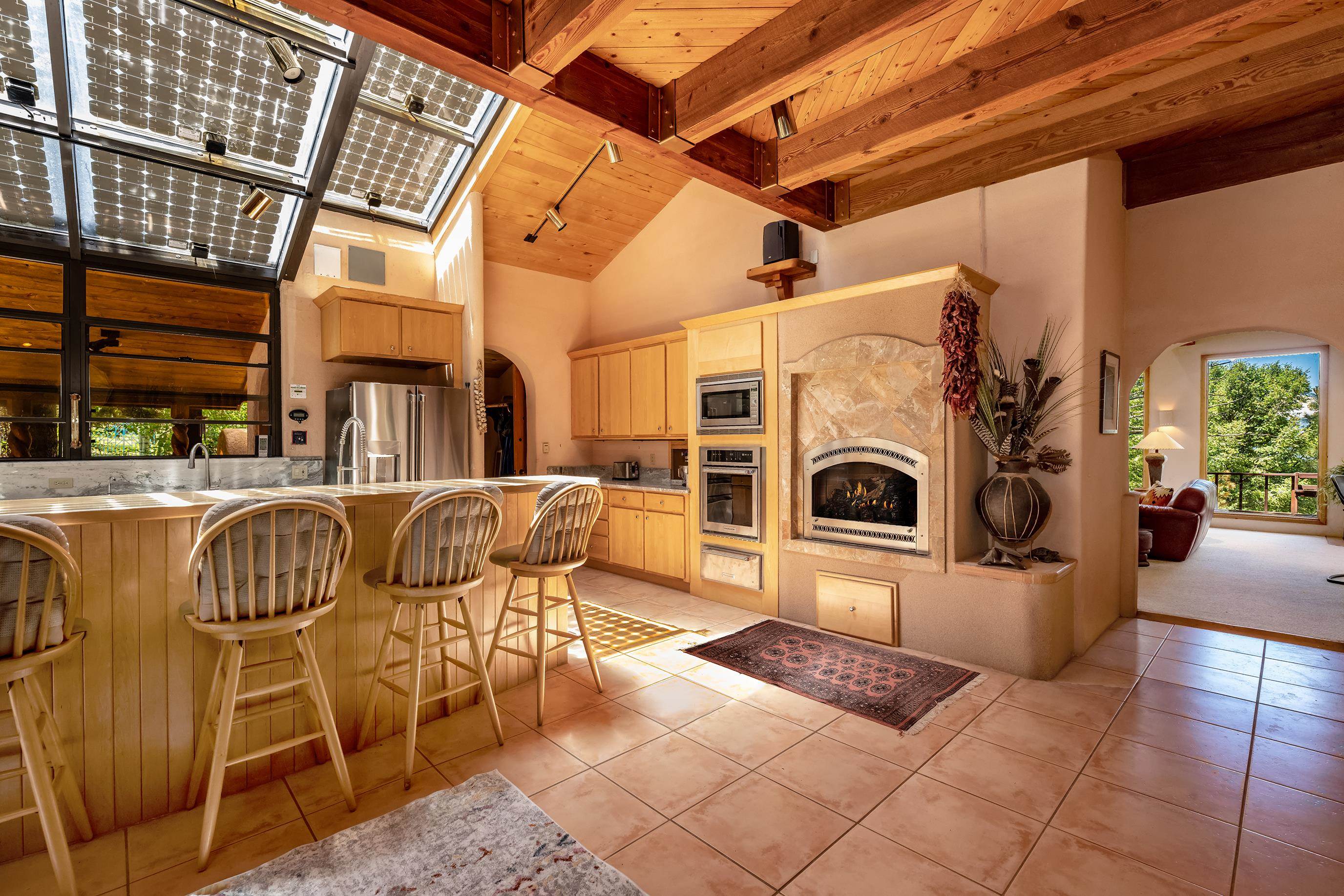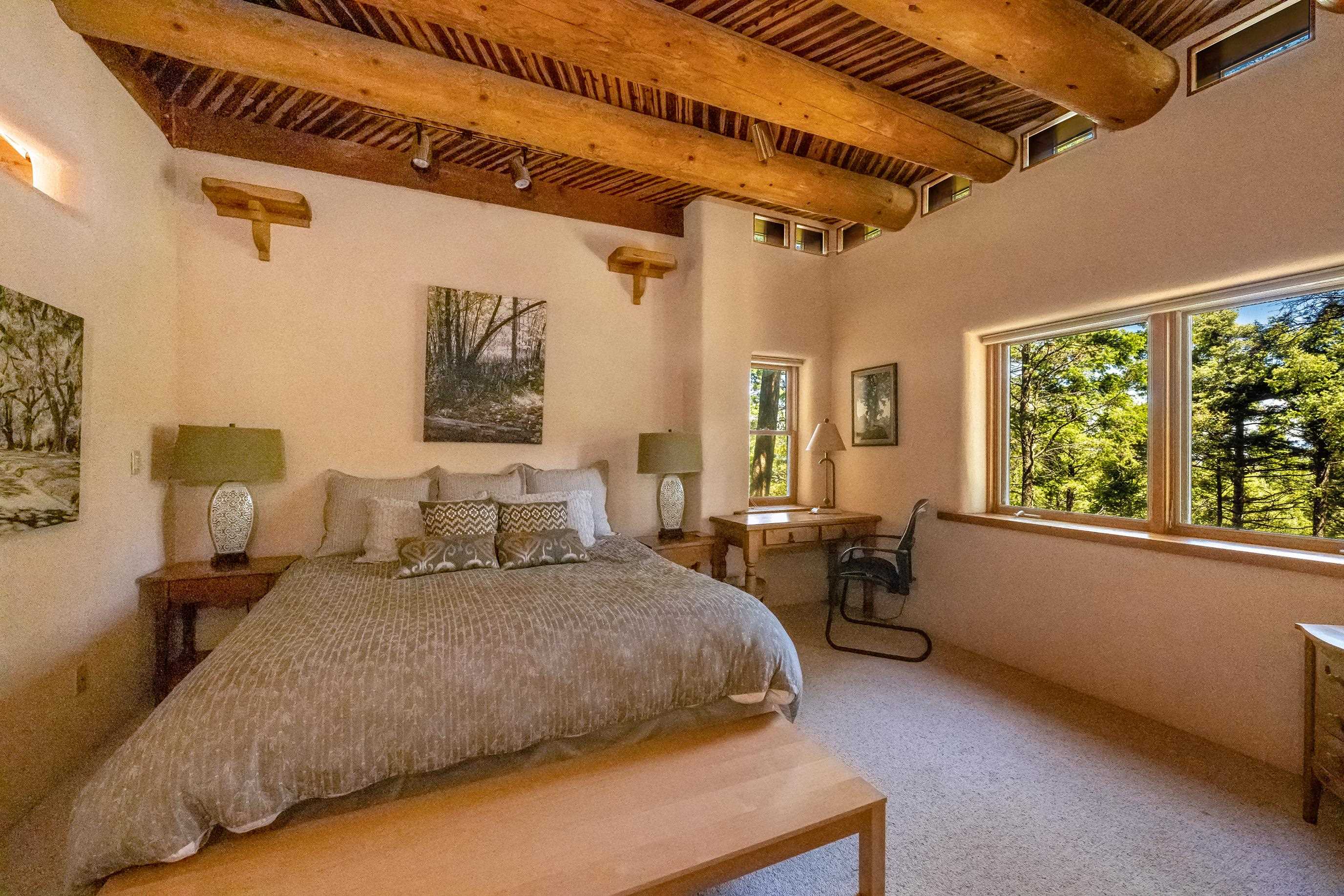 A Sustainable Estate in the southern Rocky Mountains of northern New Mexico can be yours.This Eco-Masterpiece is on 45 acres of native forest and wildlife habitat situated within Angel Fire Resort. An emerging destination, this family ski resort has 86 ski trails and mountain biking mid-May to mid-October. The Resort has an 18-hole PGA Golf Course, tennis and pickleball courts, and a country club with pool, fitness center and fine dining. Angel Fire Airport, a 10-minute drive to its jet-capable runway, serves private aircraft as well as Advance Air's 5 roundtrips a week from Albuquerque. Privacy and seclusion are secured on all sides with the north boundary being the 130,000-acre historic CS Ranch. A seasonal creek runs through a private 6-acre meadow. This legacy home is built to last with many green and sustainable features. It will continue to provide privacy, security, energy, food and enjoyment as a nurturing retreat for years to come. Beautiful - Indoors and Out, Practical, Resilient. This modern home is designed with the vision to survive the challenges of the future. With panoramic, forever views of the Wheeler range, this mighty three-story 8,074 sq ft Eco-block home, with 12 and 24-inch thick walls, is built to endure the elements and last for generations.There are 6,784 sq. ft of heated, move-in ready dramatic living space with two interior greenhouses created by carefully selected local craftsmen. The first floor features an authentic adobe Casita with its own full kitchen, custom cabinetry, furniture and a private entrance. The Casita has been in a successful short-term rental program, with numerous five-star reviews. Adjacent to the Casita on the first floor are 575 sq ft of utility and mechanical rooms, extensive working storage, and a 715 sq ft space designed as a separate apartment with its own entrance ready for you to complete to your liking. The overall floor plan is in the Photo Gallery of this listing. Outdoors there are 2,500 sq ft of tiered, organic gardens in the walled area south of the patio. In addition, two food and flower-producing greenhouses are inside - one in the Atrium hot tub room, and a larger one off the main kitchen for easy access to fresh food year-round. The spacious light-filled kitchen has been fully upgraded with high quality appliances, special granite countertops, a large working island and walk-in pantry. The modern passive solar architecture sets this solar sanctuary apart. This intelligent home has many solar and high-tech features - solar electricity and whole-house radiant floor heating, as well as passive solar features enabled by the homes’ perfect solar alignment. The whole home is a green design, built from the ground up with many sustainable, non-toxic features (see list in the Photo Gallery) that provide energy efficiency, comfort, strength, and durability. Modern solar panel tracking racks with updated batteries cut utility bills. Solar Thermal panels quietly supply the primary heat day and night. The local utility, Kit Carson Electric Coop, operates a major 6MW solar farm microgrid with 6MW/hr battery backup, providing double-back up to the home’s solar system, focused on the resilience of the home office. There is ultra high-speed fiber-optic internet/Wi-Fi throughout, enabling full-time working from home. You must see this special property to truly appreciate the craftsmanship in every room - from the vaulted ceilings, beautiful local beams and vigas, to the stunning floor-to-ceiling rock wall fireplace in the living room, leading out to the pristine forest that wraps around the home. Private, secure parking for 5 cars: 2 in garage (EV-charging ready) and 3 in parking area. Taos is 24 miles away, offering eclectic shopping, art galleries, restaurants, museums, world-class Taos Ski Valley, and a modern hospital. Historic Santa Fe is just a 2-hour drive. Make an appointment to see this Eco-Masterpiece.