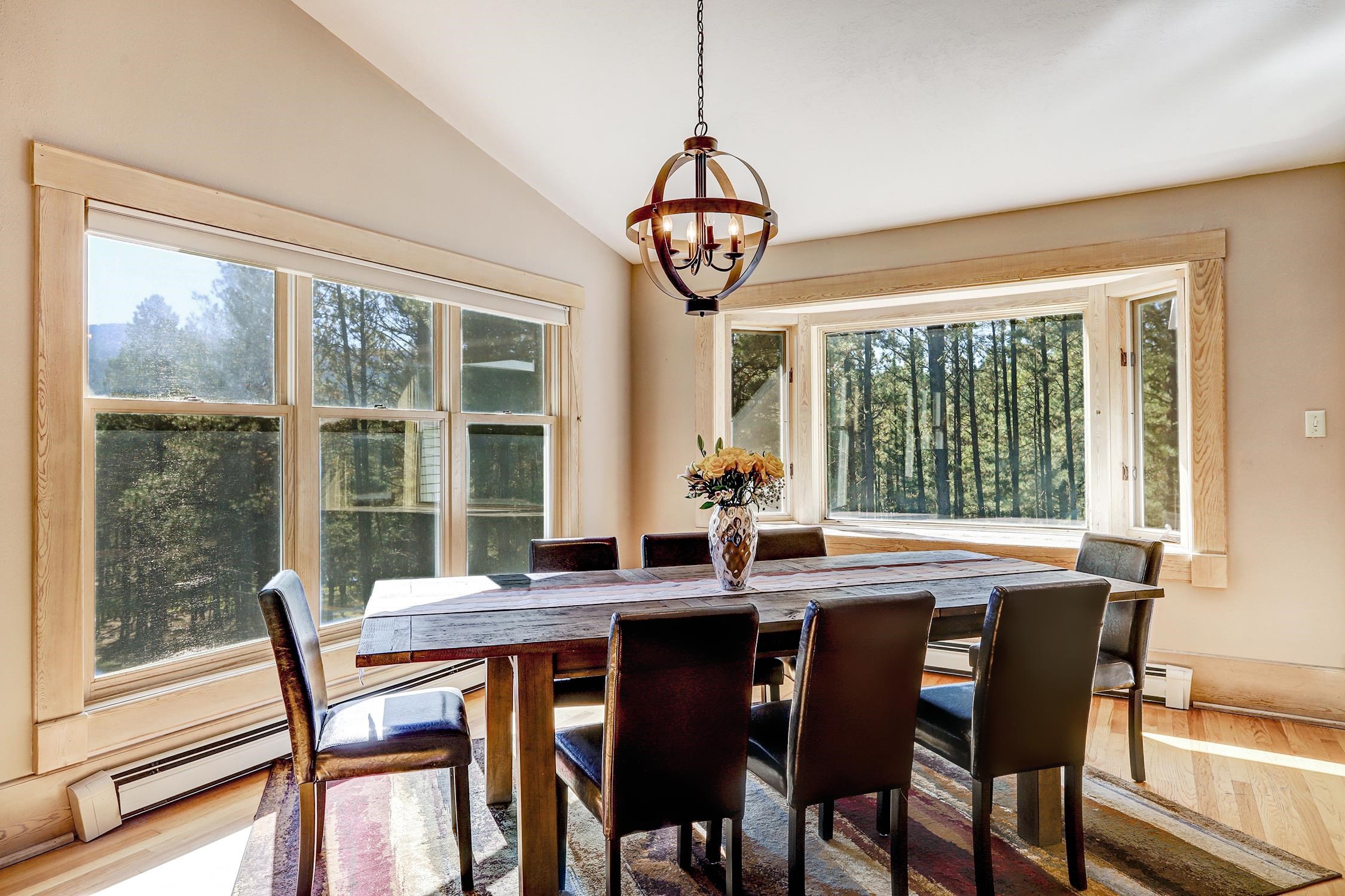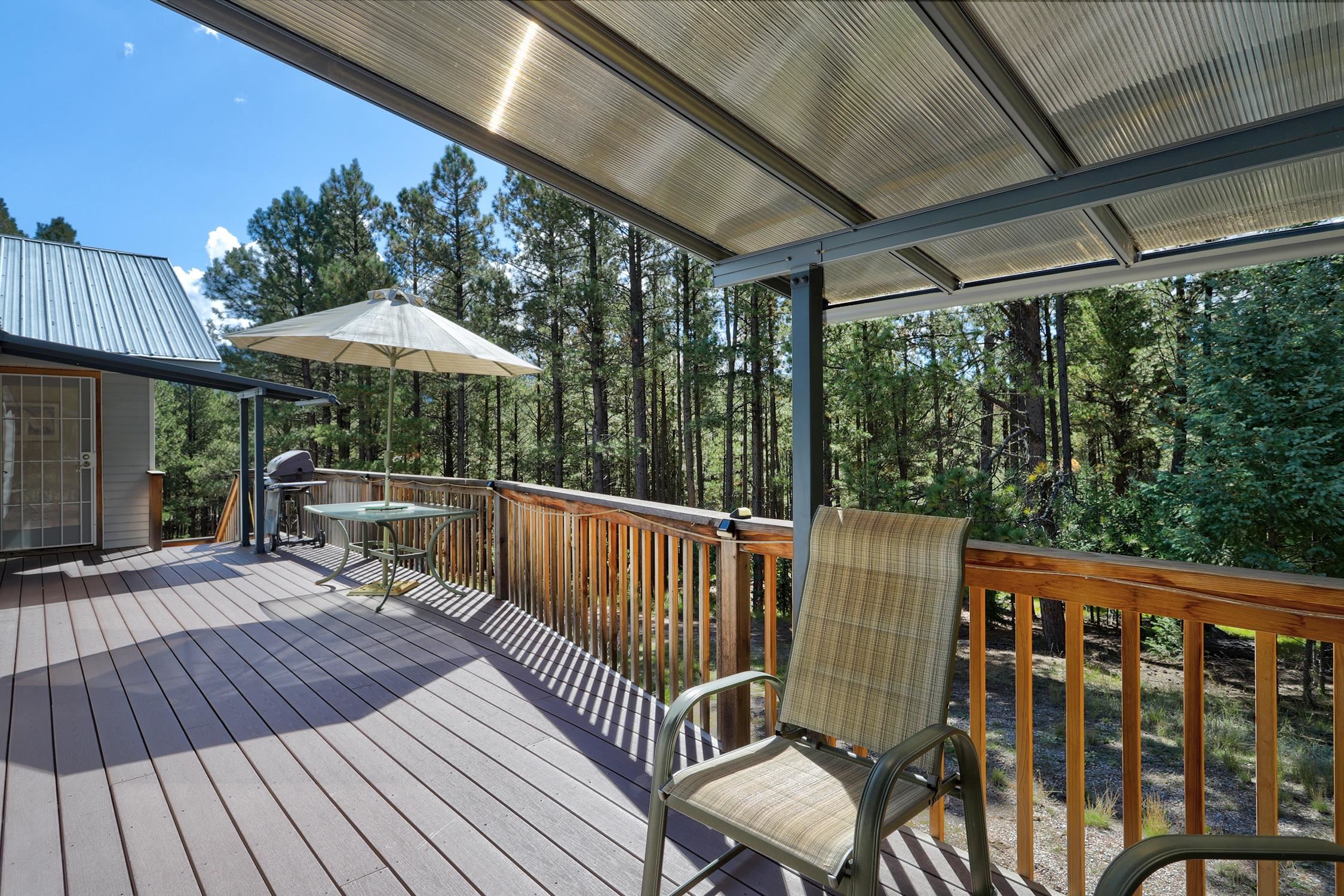 Welcome to your ultimate Angel Fire escape—where comfort, space, and style come together for unforgettable family vacations. This beautifully maintained home features three inviting living areas, a game room, and a private theater, offering endless entertainment for guests of all ages. Enjoy the ease of year-round access—just minutes from Angel Fire Resort and local conveniences. The main-level primary suite provides quiet luxury, while the open-concept kitchen impresses with granite countertops, stainless appliances, a breakfast nook, and a formal dining area. Step outside to a covered deck overlooking a tranquil greenbelt—ideal for morning coffee or evening wine. Downstairs, find even more space with a second kitchen, wet bar, wood-burning stove, and plenty of room for fun and relaxation. Extras like a second garage, greenhouse, and generous sleeping accommodations make this home as practical as it is stunning. Offered mostly furnished and rental-ready, this is the turnkey mountain retreat your guests will want to return to year after year.