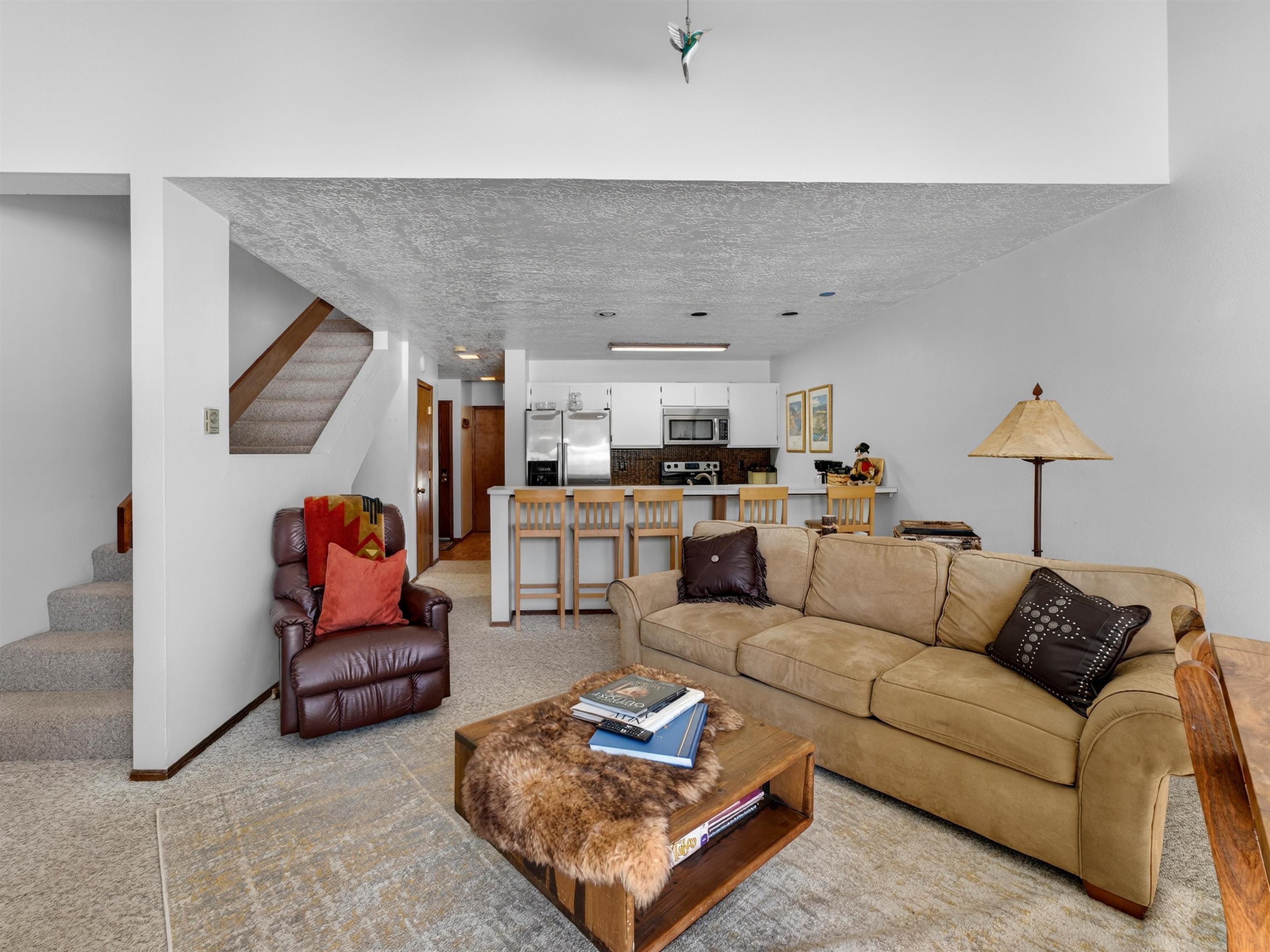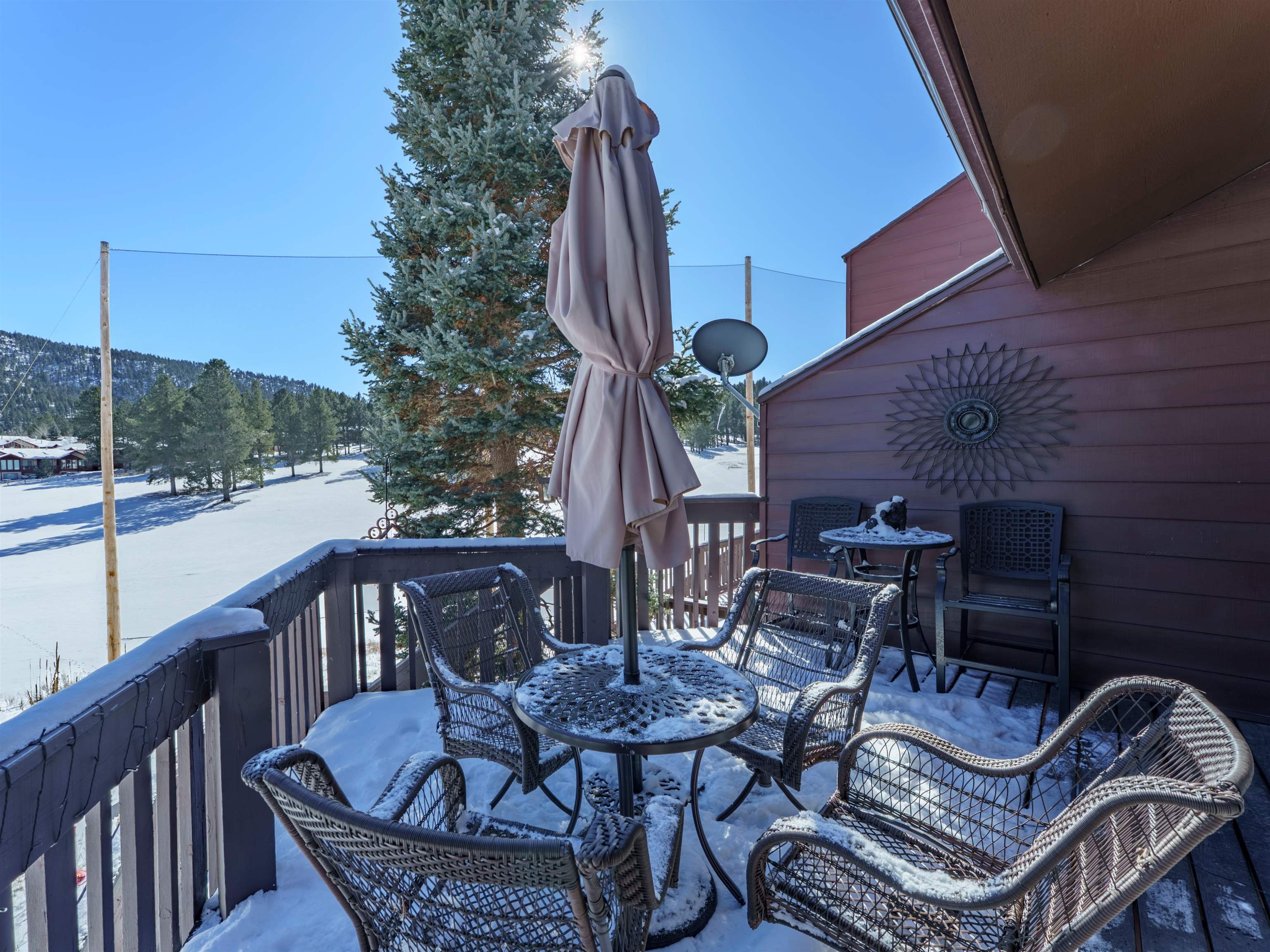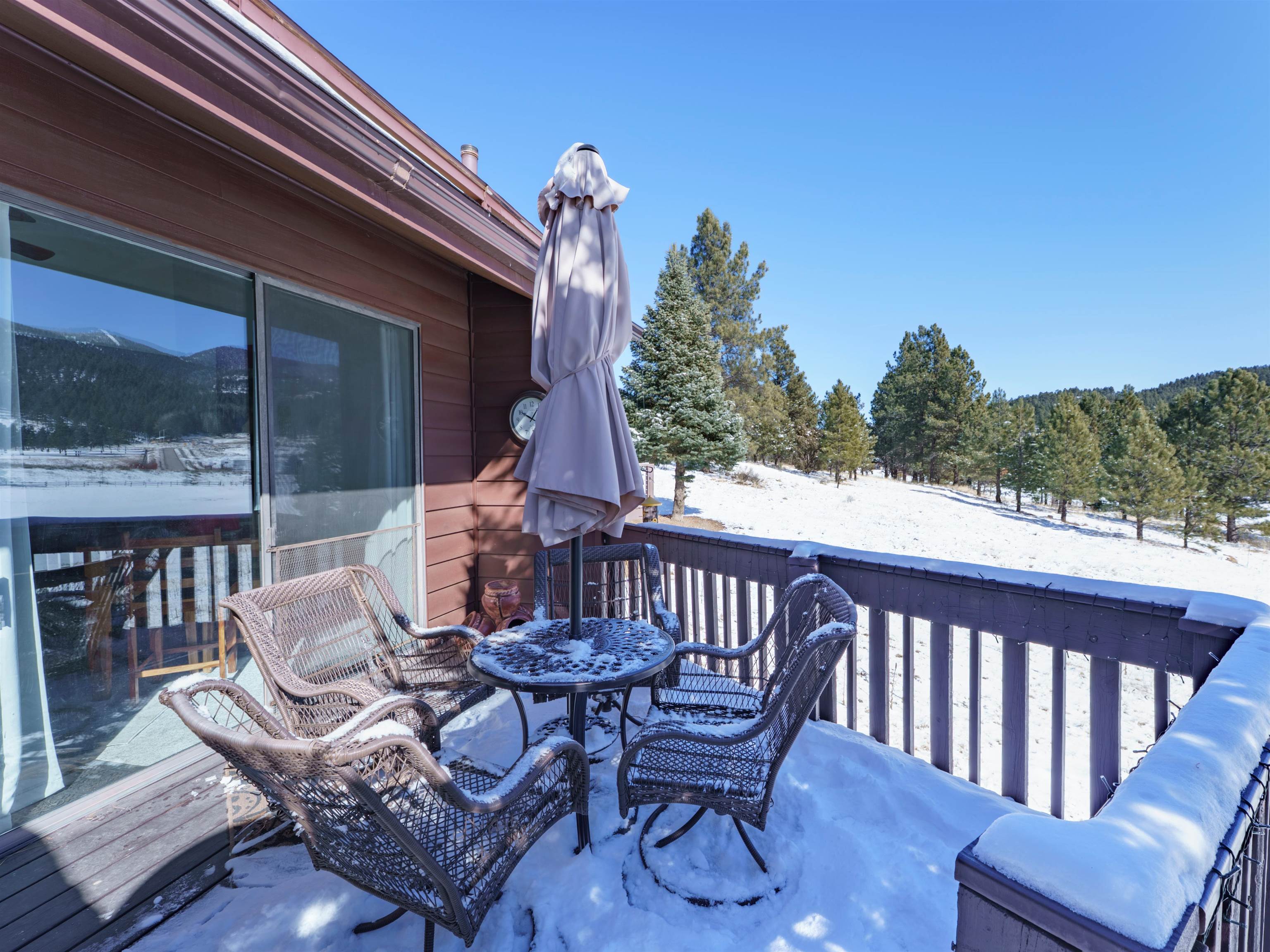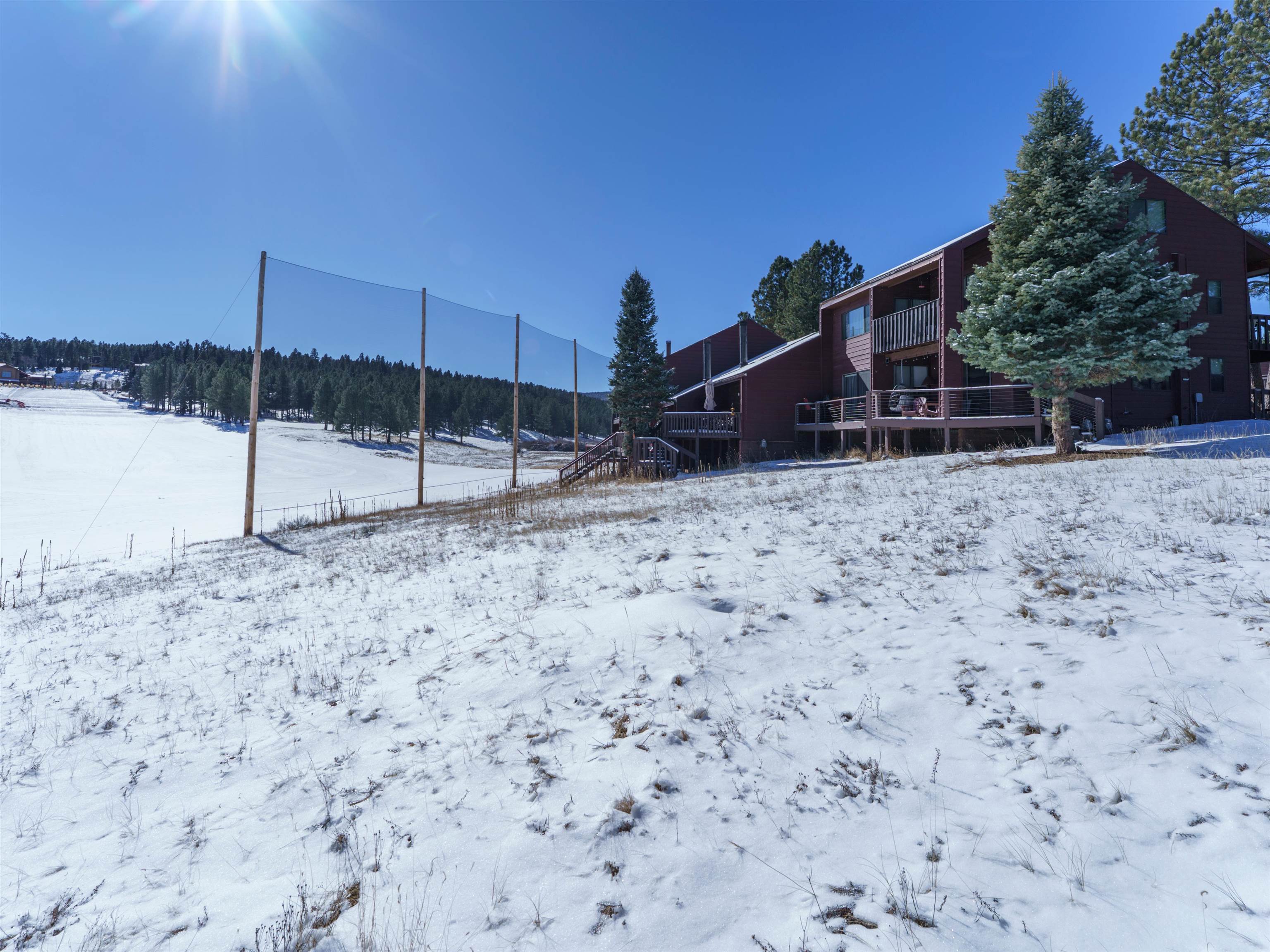 Enjoy mountain living at its finest in this fully furnished, 2-bedroom, 2-bath condo nestled between Angel Fire Resort's Hole #1 green and the driving range. This inviting residence offers a unique combination of scenic views, convenience, and year-round recreation. Step outside to the spacious patio deck, where you can relax with a morning coffee or evening cocktail while overlooking the manicured fairway and taking in the peaceful mountain setting. Inside, the thoughtfully designed floor plan features two generously sized bedrooms, each with its own ensuite bathroom, providing privacy and comfort for owners and guests alike. The living room serves as a warm and welcoming retreat, highlighted by a large wood-burning fireplace—perfect for cozy evenings after a long day on the slopes or golf course. Ideally located just 5 minutes from Angel Fire Ski Resort, this condo places world-class skiing and mountain activities within easy reach. You won't have to fight the crowd on New Years or 4th of July for the firework show, you can see them right from your patio! Outdoor enthusiasts will also appreciate being steps away from the Olympic Park playground, tennis and pickleball courts, and the popular Oeste Vista hiking trail, offering easy access to scenic walks and mountain adventures right outside your door. This property is an exceptional opportunity for full-time living, a weekend getaway, or an investment property. Don't miss out on this rare opportunity to enjoy the very best of mountain living, where recreation, relaxation, and natural beauty come together in one exceptional setting.