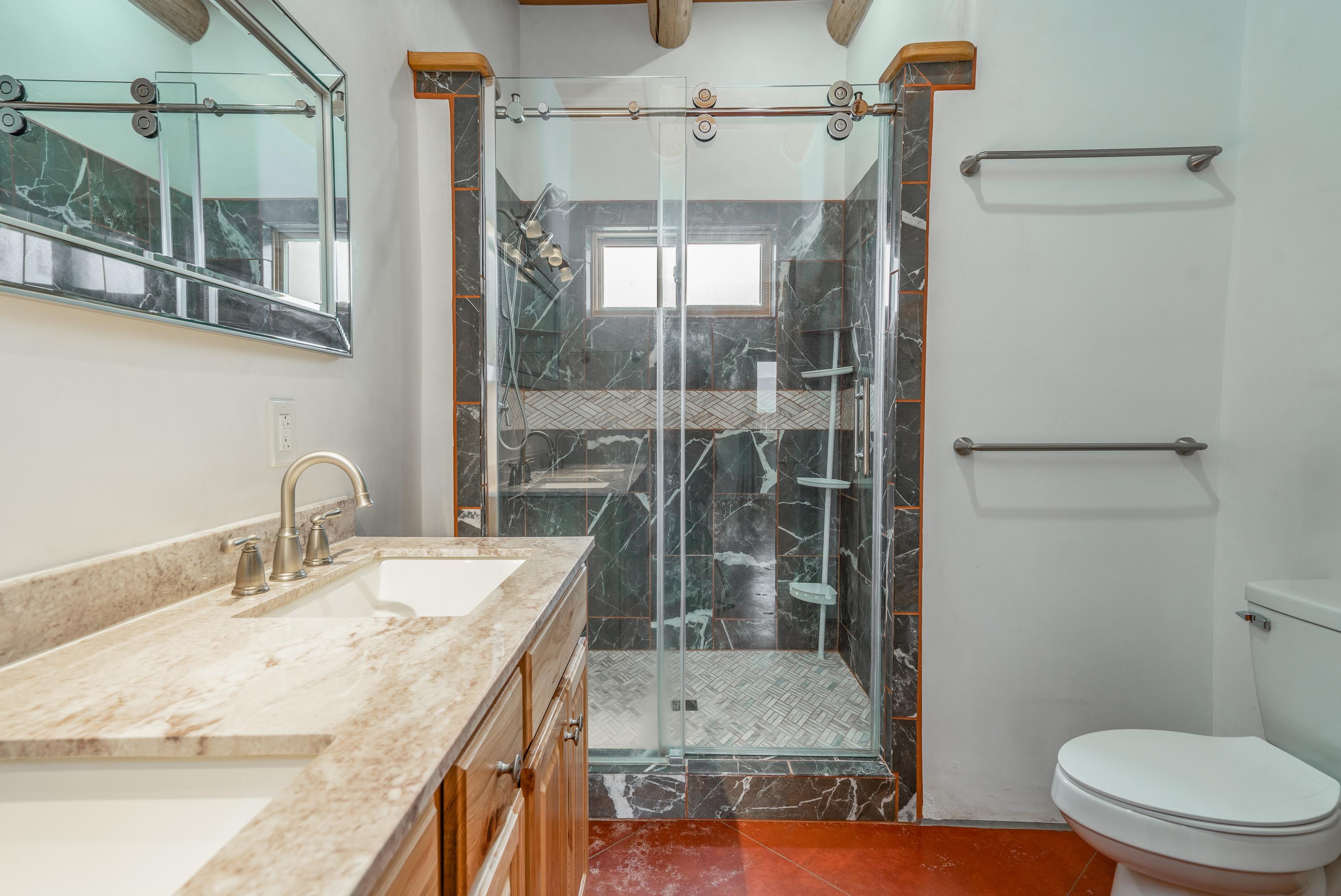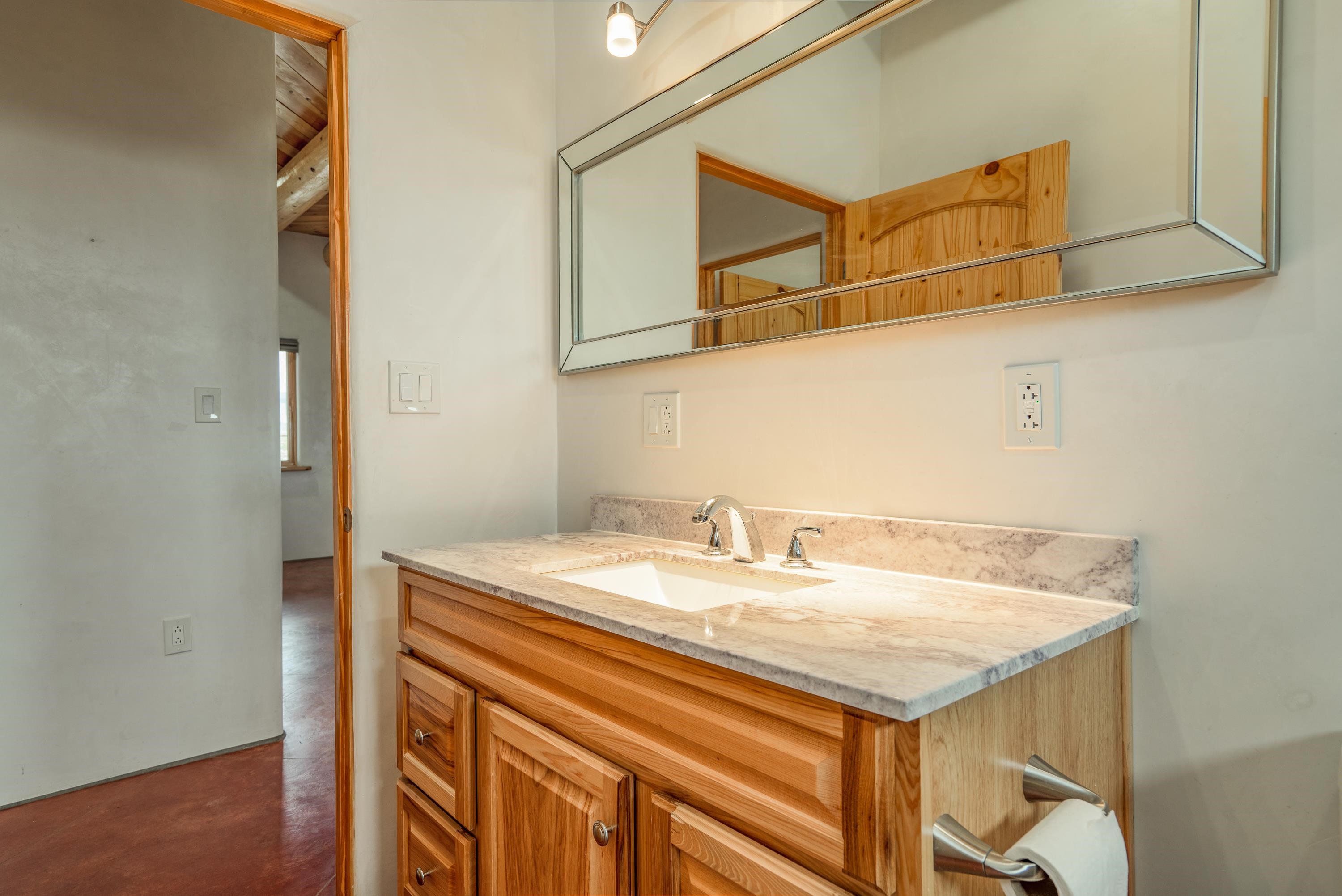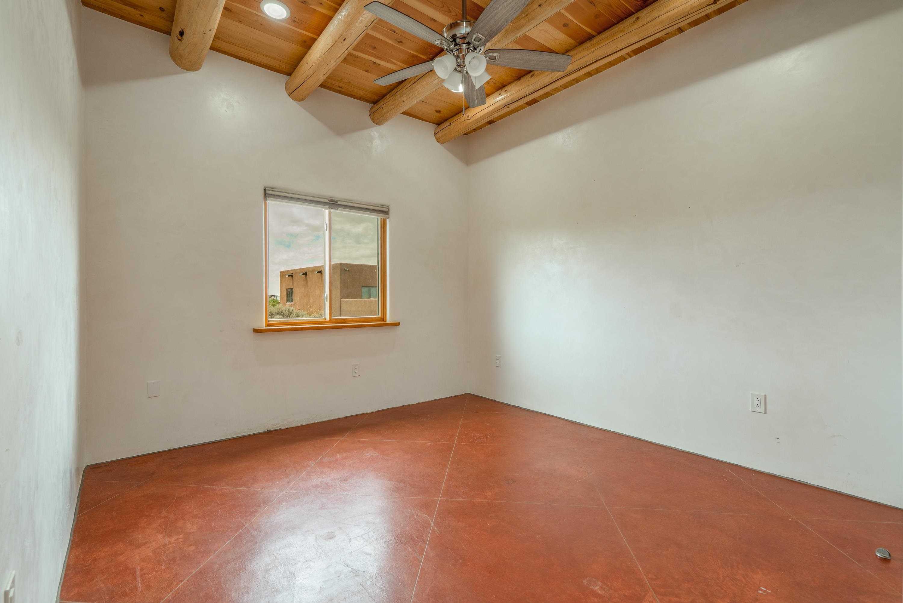 $20,000 price drop! Newer homes with this level of finish don’t come around often. Sitting on just under an acre, this home brings real bang for the buck! - diamond plaster walls, vigas with tongue-and-groove ceilings (yes, even in the closets), granite counters, etched concrete floors, and wood-clad windows. The layout makes sense: primary suite on one side, two bedrooms on the other, and a spacious living area in between. At 1,527 sq ft, there’s room for real furniture, real people, and real-life living. The kitchen lacks nothing, with stainless appliances, granite counters, a big sink, and a picture window that frames the Picuris Mountains. The primary suite has a semi walk-in closet, double vanity, walk-in shower with glass enclosure, and built-ins. The second bath has a soaking tub, because sometimes you just need one. There’s a full-length covered front portal (of course, with mountain views, and it is BIG), plus another covered patio out back. The dedicated laundry room comes with built-in cabinetry—perfect for stashing all the random stuff that somehow ends up everywhere else in the house. Radiant in-floor heating, powered by an on-demand natural gas tankless water heater, paired with solid insulation, means you’ll have time each month for more than just working and paying the utility bills. The home is on septic, connected to a private well, and includes a water softener system. Kit Carson fiber optic internet keeps everything running fast—even when multiple kids are online sucking up all the bandwidth with their latest video gameS. In addition to fiber, Xfinity cable internet and tv are also wired to the home; more choices and redundancy for the home owner! A new fence has been installed for further privacy between the home and the access road! A concrete pad in the driveway is ready for parking, projects, or pickup basketball. The 10x12 shed with extra storage out back seals the deal. Paved access all the way—no mud, no ruts, no nonsense. Just a solid, stylish, low-maintenance home with zero surprises.