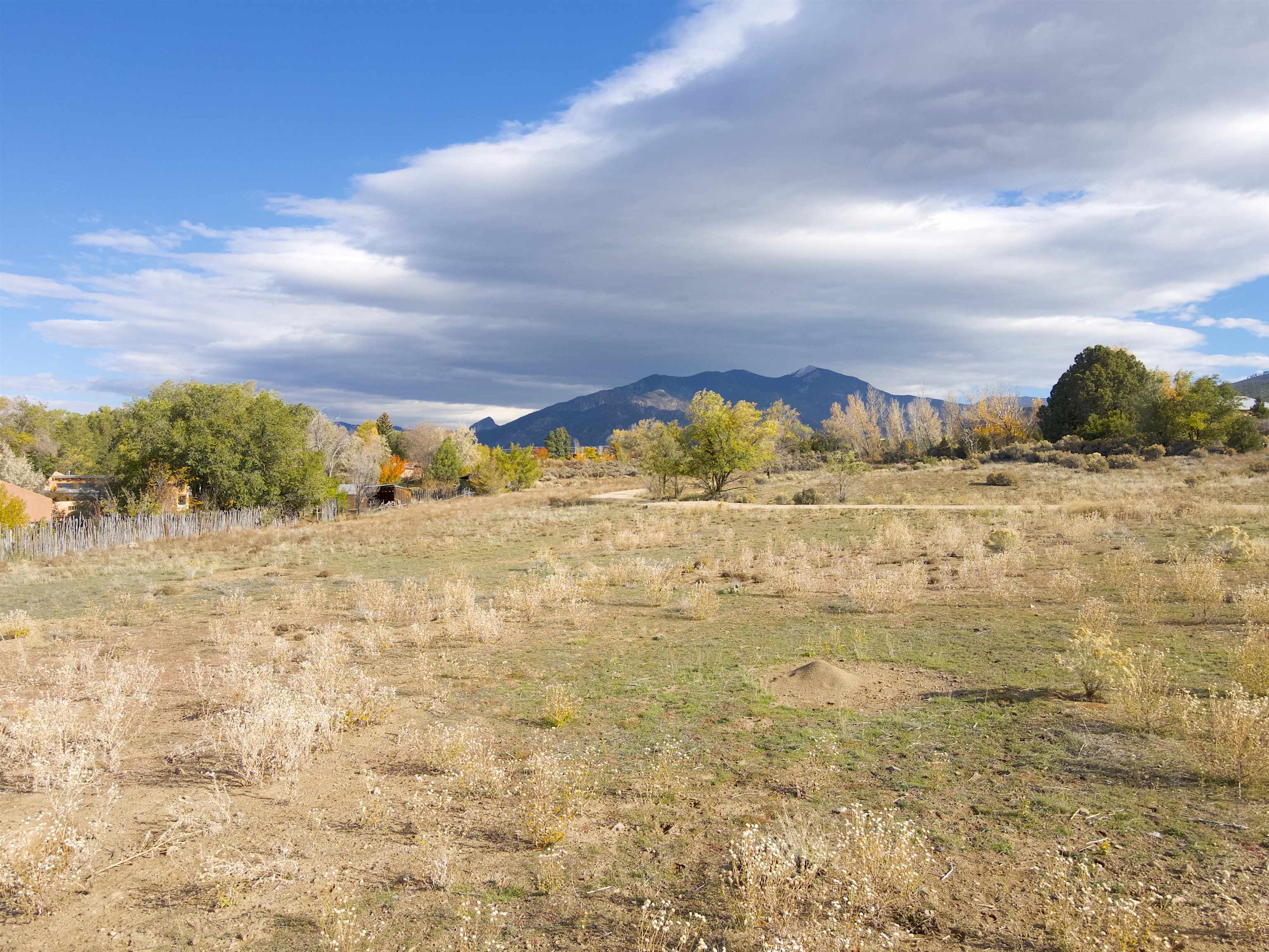 Down a winding private country road, you'll stumble upon this two acre plot site that may hold a title for the best views. The property is perfectly aligned, so that a home may capture the striking Taos Mountain to your NE or the rolling Picuris Mountains to your SW. Oh so close to town, but so far away from the bustle, the private dead end road makes sure you have almost no traffic nearby, and you are never too far from your favorite eats/shops. The lot is surrounded by tracts with multiple acres; this helps keep your surroundings open and not crowded. The property is close to natural gas, electric, and Canon water; no utility location has been verified at the writing of this description. It will be extremely hard to beat these views and location, so come take a look at this Taos dream property!