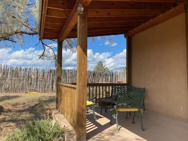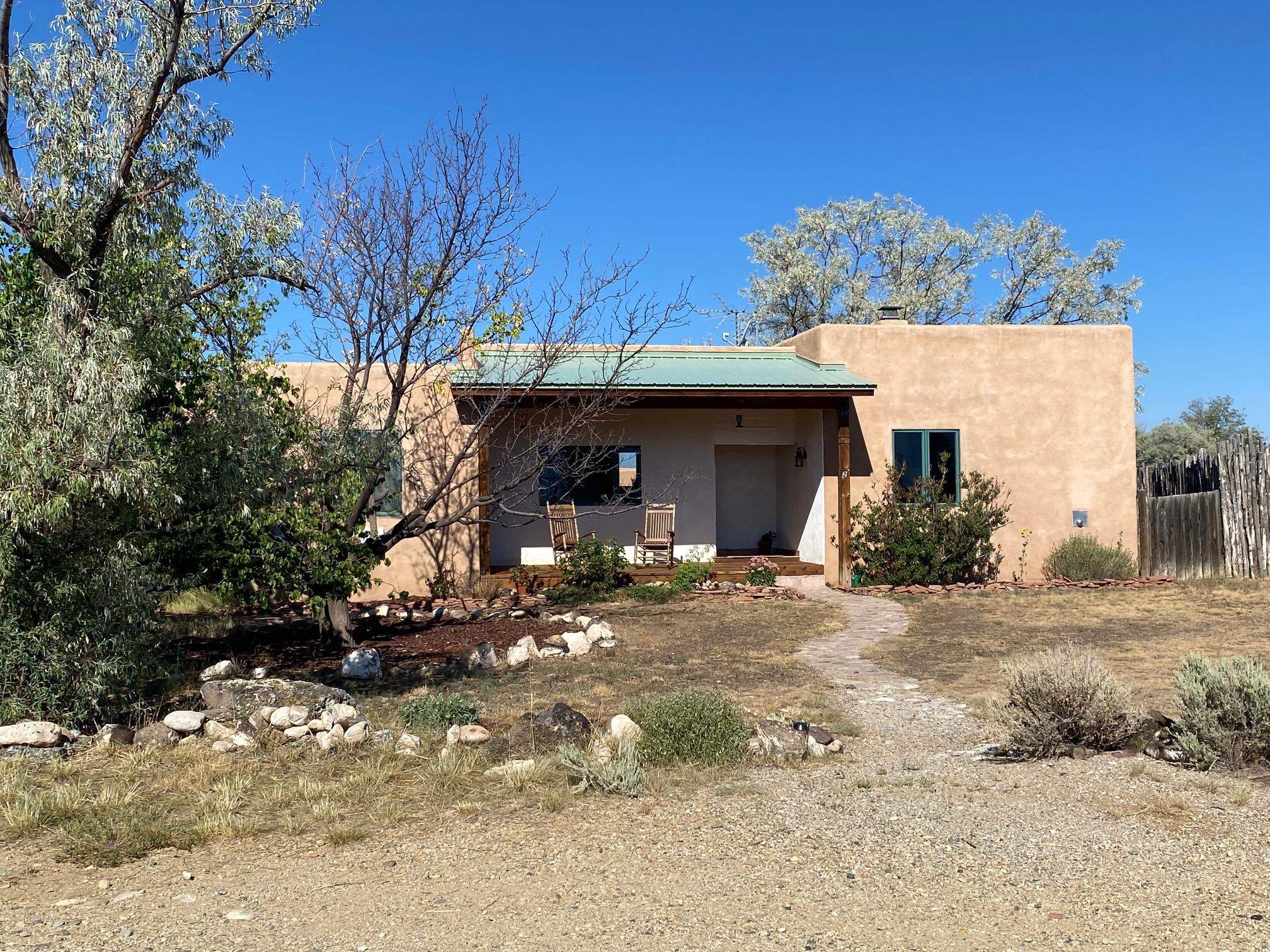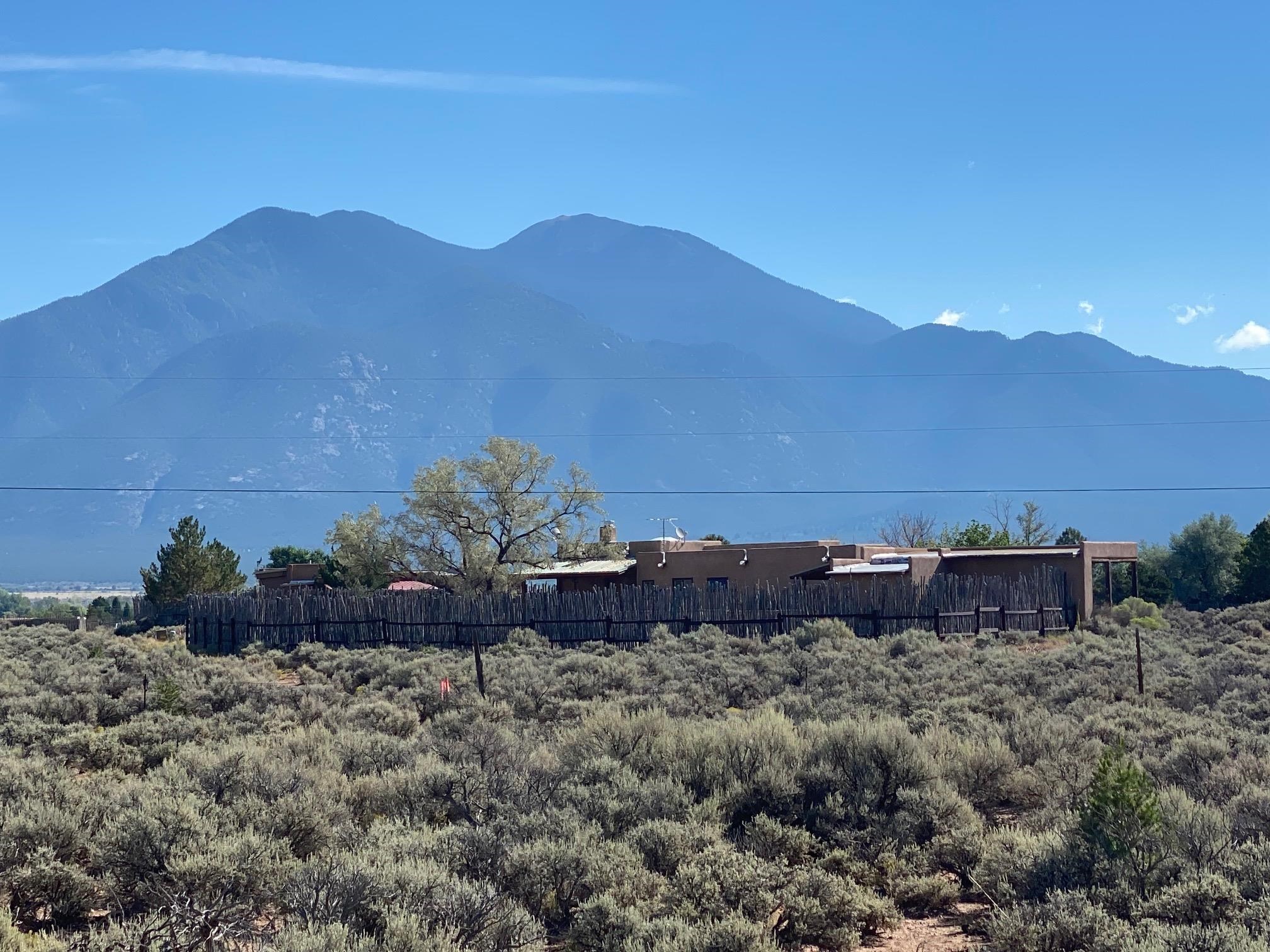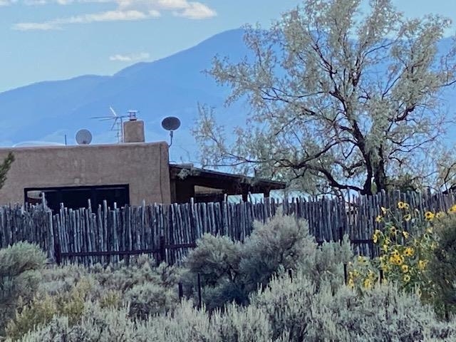 It's been said that Taos is a "State of Mind" - and this home embraces that true Taos spirit throughout. The earth-toned living room features an oversized southwestern style fireplace and banco creating a cozy environment for intimate conversations with friends and family. Natural light enhances the living room from a skylight and large north facing picture window that perfectly frames the view of Pueblo Peak beyond. Wood floors and tongue and groove beamed ceilings accentuate the Northern New Mexico feel throughout the home. The kitchen layout is efficient and features granite countertops and opens onto a spacious covered deck for sunset dining. Both bedrooms share a large updated bathroom. Modern, efficient natural gas Rinnai wall heaters supplement electric baseboard heat. A detached studio/workshop is ready for your creative endeavors. Your four-legged family members with love the large dog-fenced back yard. A two-car detached carport with storage will protect your vehicles and seasonal outdoor adventure gear year round. Located on 1.508 acres on the coveted north end of Blueberry Hill, just off of Millicent Rogers Rd for quick access to TSV and the Town of Taos. Sit on the front porch and welcome a Taos State of Mind.
