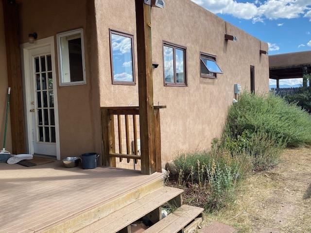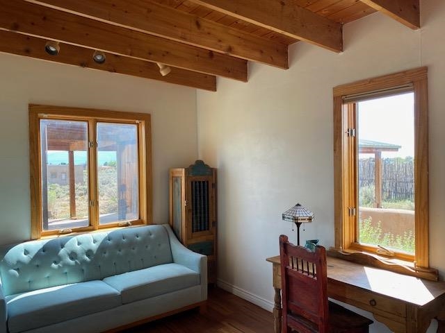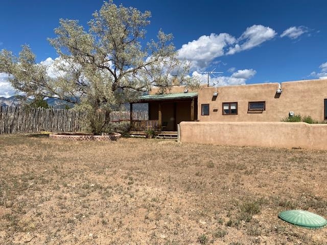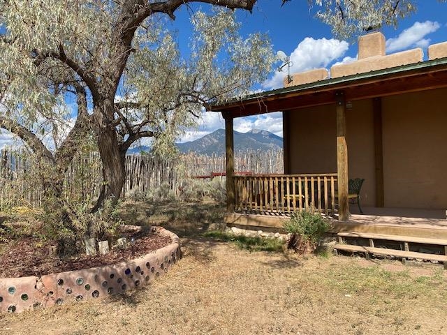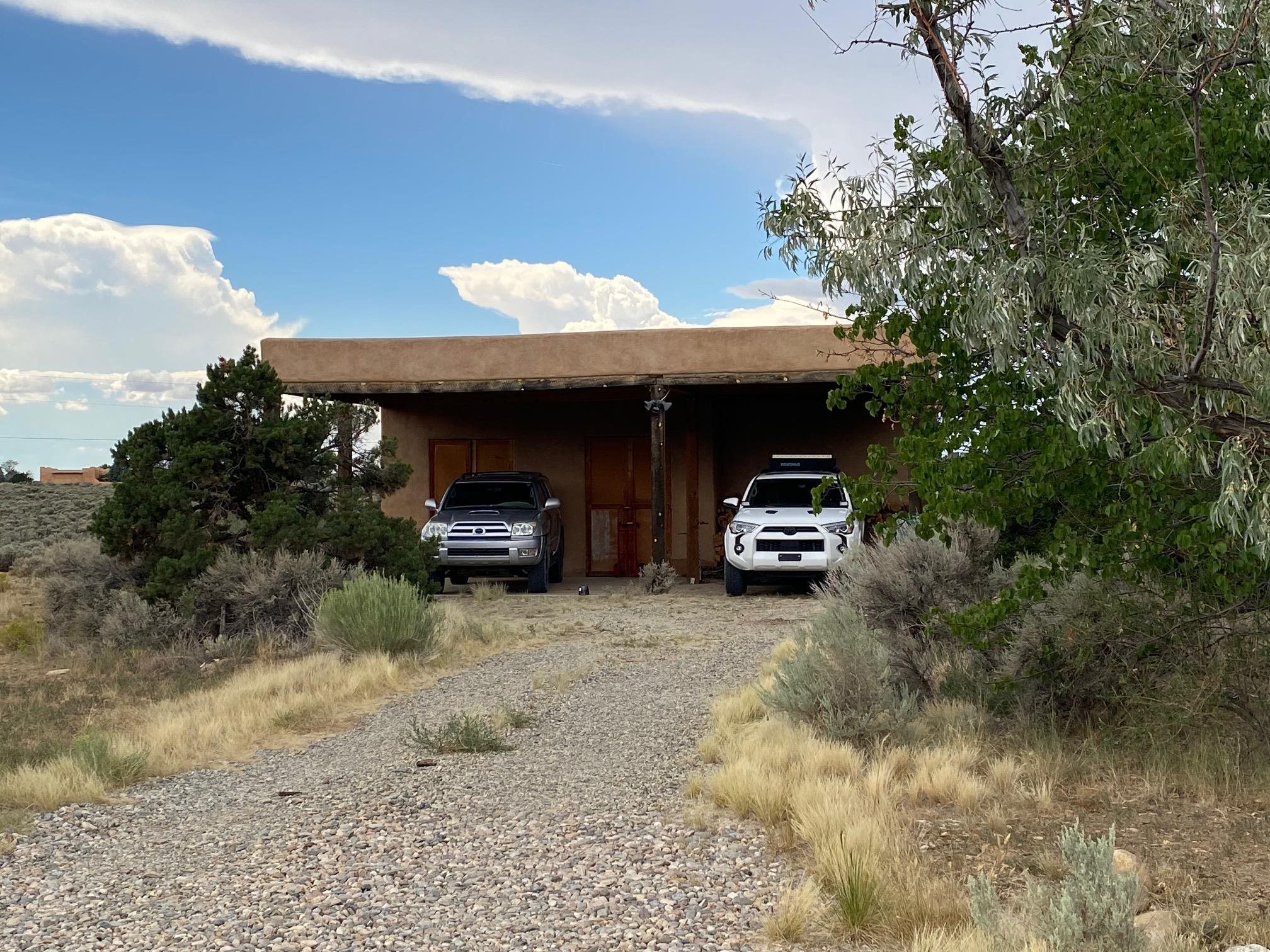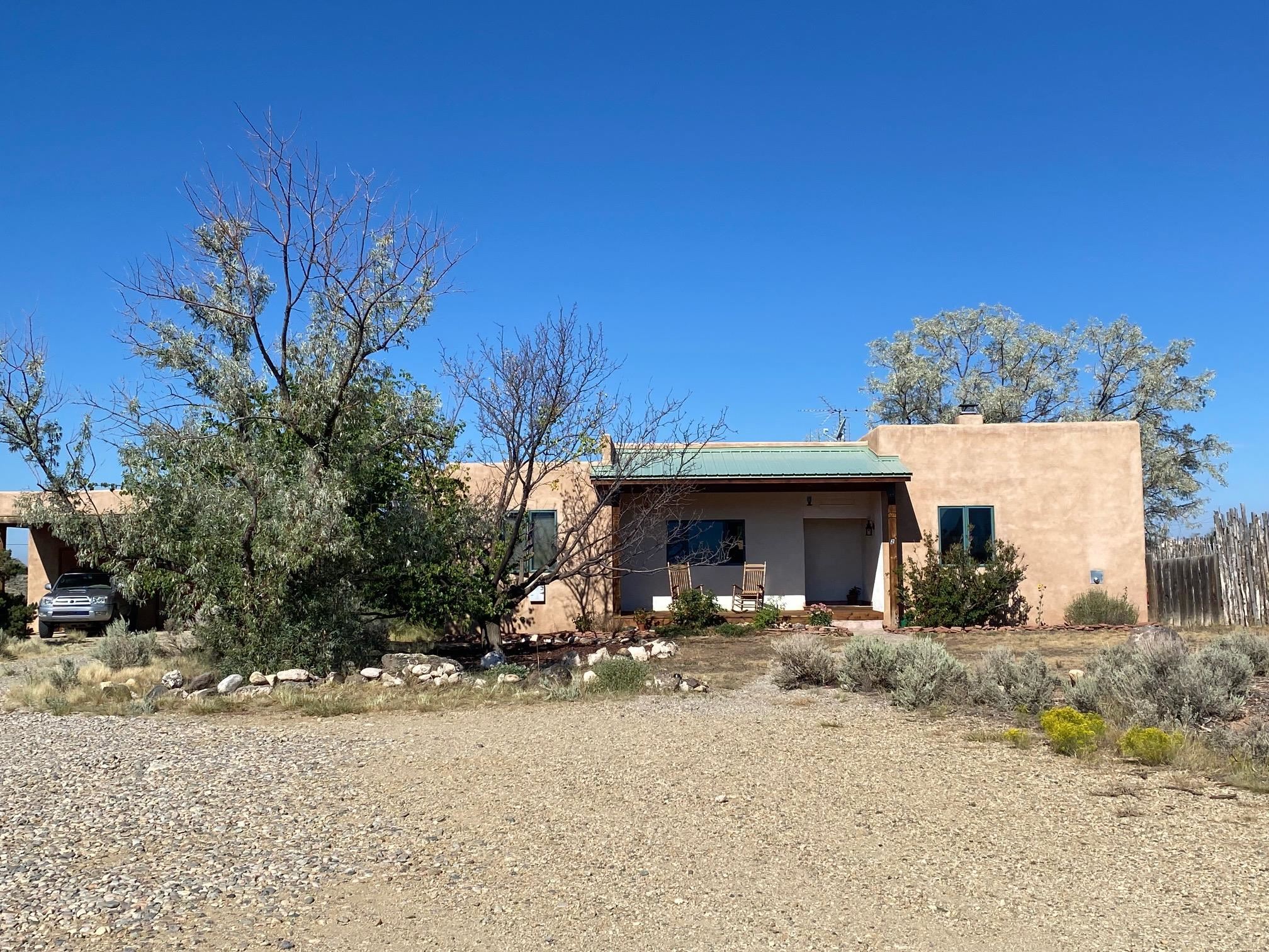 It's been said that Taos is a "State of Mind" - and this home embraces that true Taos spirit throughout. The earth-toned living room features an oversized southwestern style fireplace and banco creating a cozy environment for intimate conversations with friends and family. Natural light enhances the living room from a skylight and large north facing picture window that perfectly frames the view of Pueblo Peak beyond. Wood floors and tongue and groove beamed ceilings accentuate the Northern New Mexico feel throughout the home. The kitchen layout is efficient and features granite countertops and opens onto a spacious covered deck for sunset dining. Both bedrooms share a large updated bathroom. Modern, efficient natural gas Rinnai wall heaters supplement electric baseboard heat. A detached studio/workshop is ready for your creative endeavors. Your four-legged family members with love the large dog-fenced back yard. A two-car detached carport with storage will protect your vehicles and seasonal outdoor adventure gear year round. Located on 1.508 acres on the coveted north end of Blueberry Hill, just off of Millicent Rogers Rd for quick access to TSV and the Town of Taos. Sit on the front porch and welcome a Taos State of Mind.