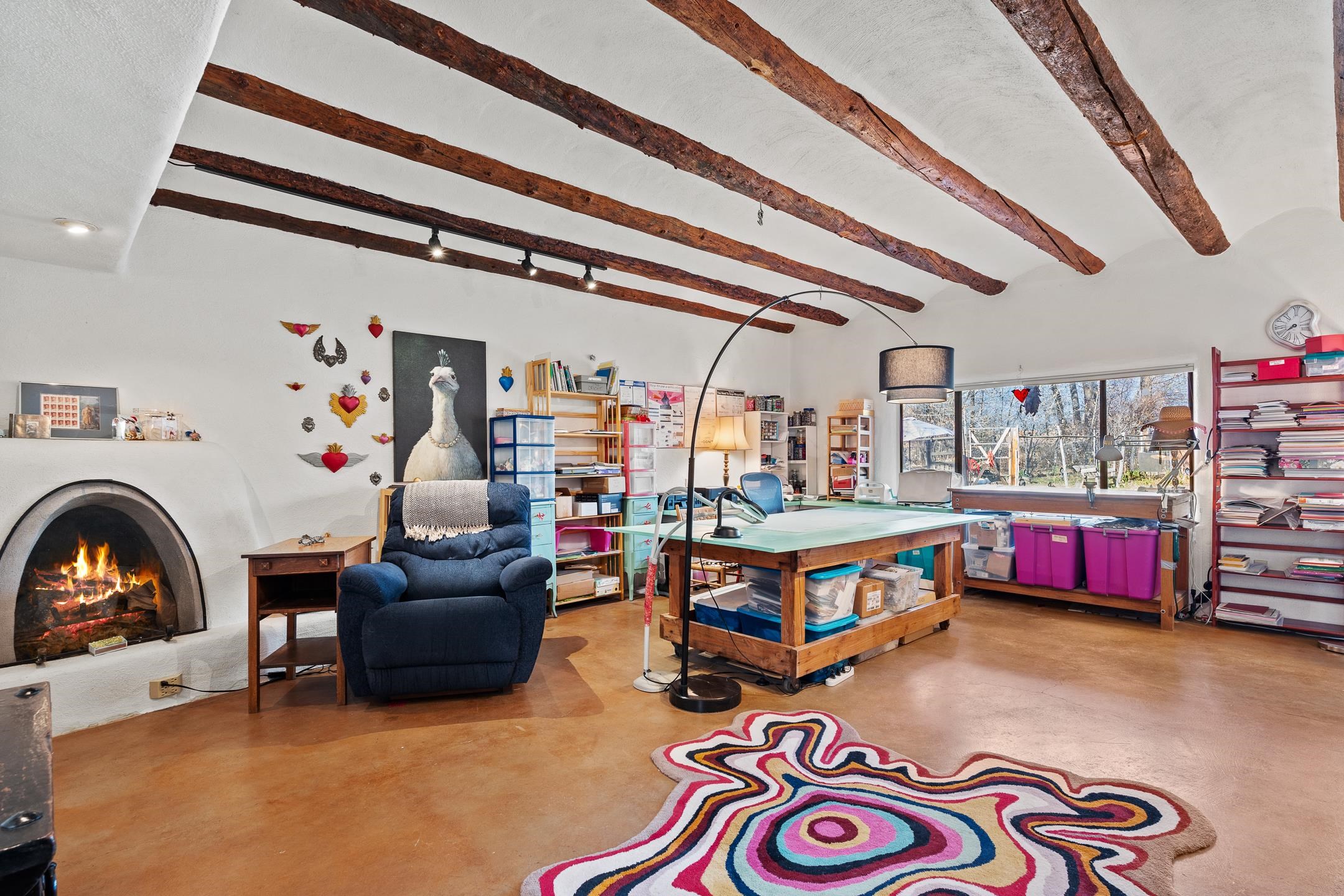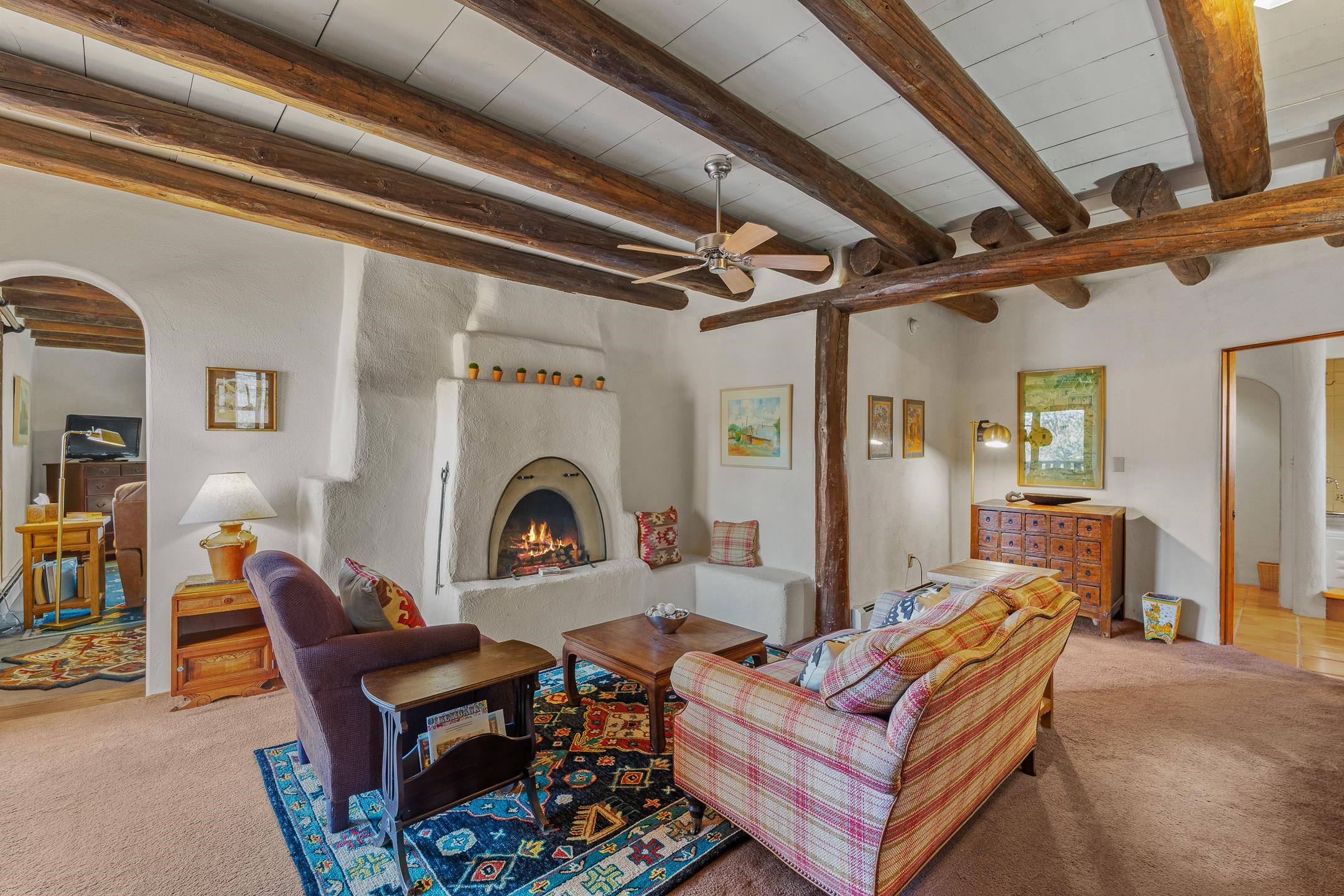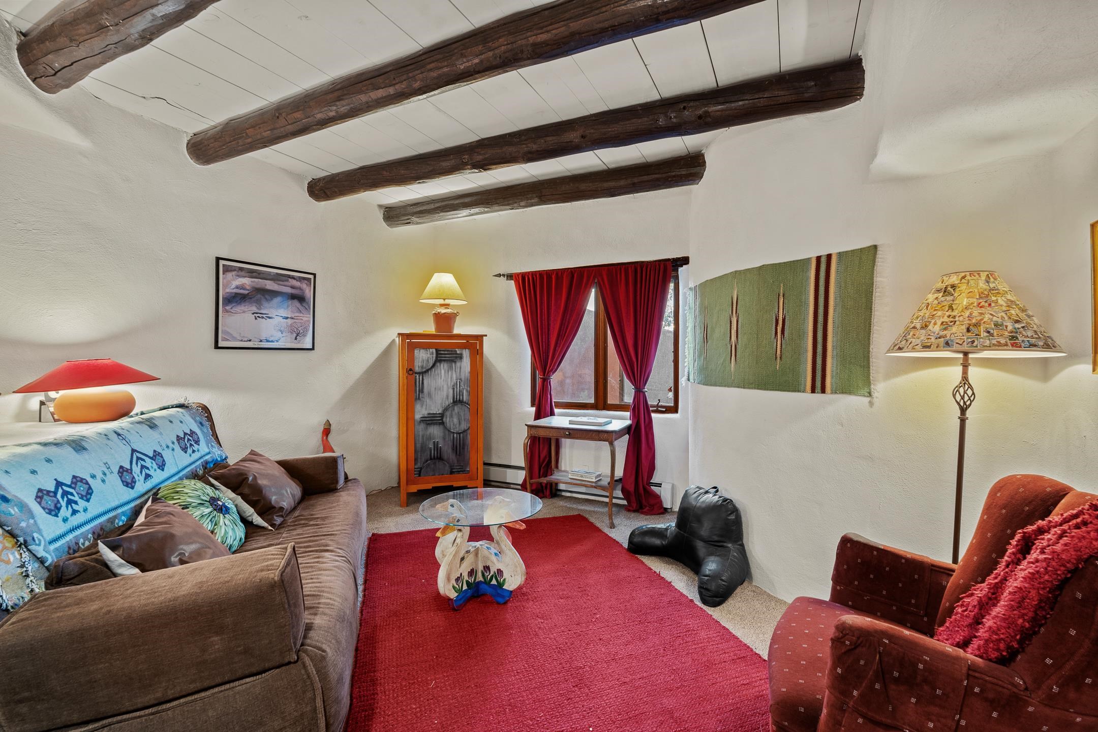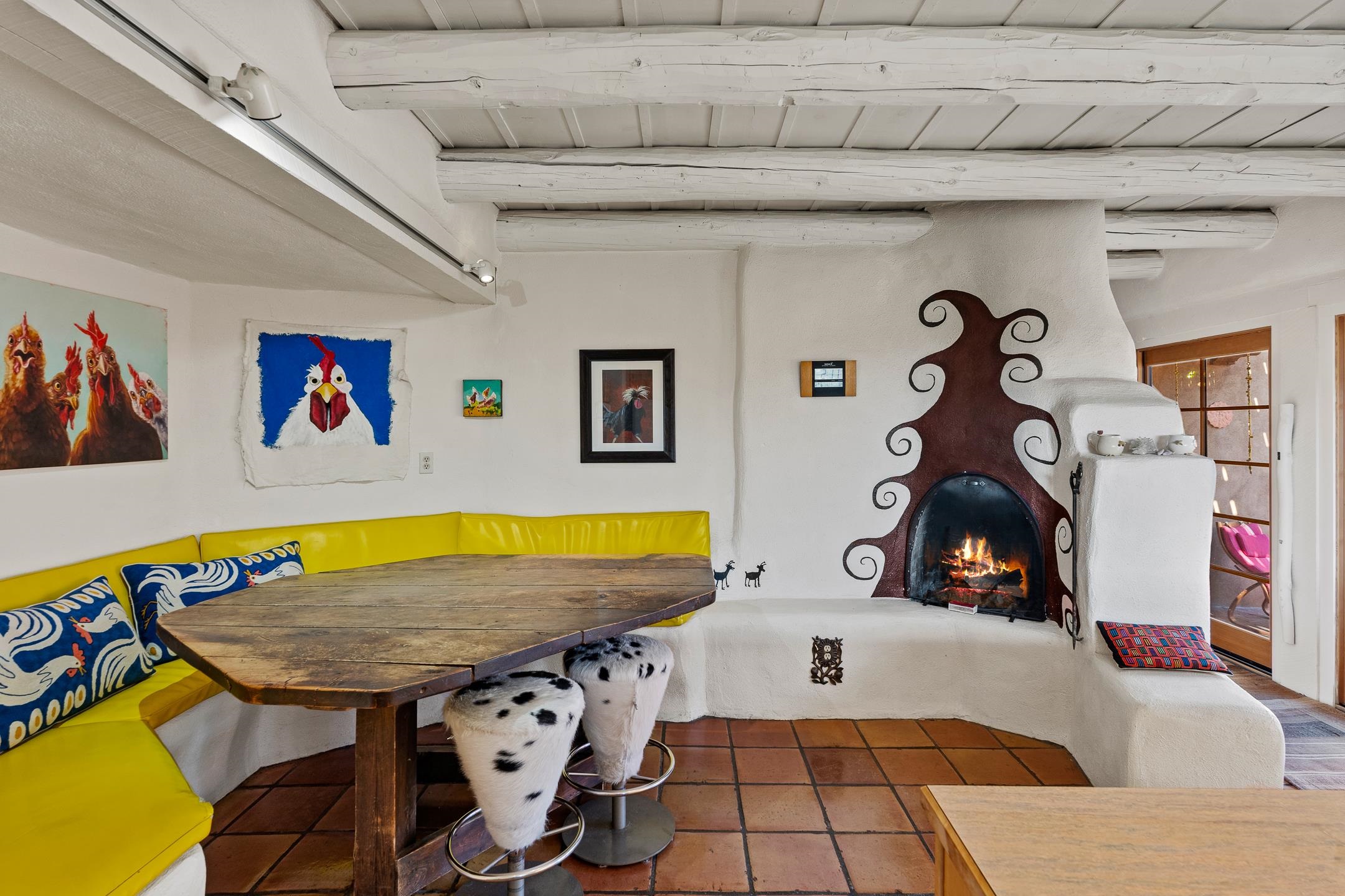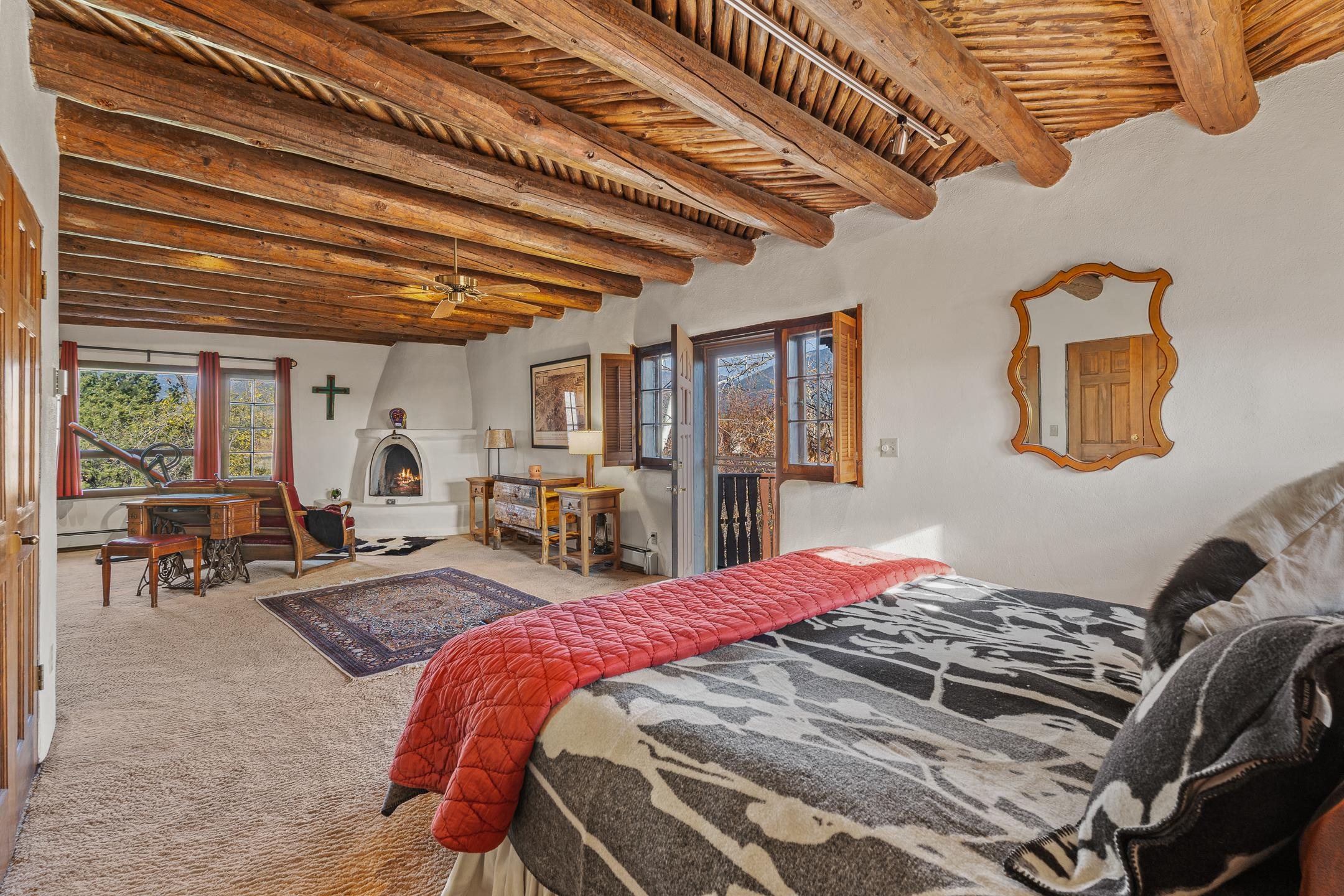A meticulously revitalized 7,500 square foot property, formerly the Cottonwood B&B and now a private residence, situated on a 1-acre walled and gated estate. Key Features and Characteristics: Historical and Architectural Significance: An unparalleled 1930s adobe home, it's a testament to Wolfgang Pogzeba, the artist involved in restoring the San Francisco de Asis church in Ranchos de Taos. Luxurious Interior: Boasts numerous artisan-crafted features, including hand-built doors, windows, two grand circular staircases, bancos, nichos, and 11 kiva fireplaces. An oversized living room offers spectacular views of Taos Mountain. Multiple dining areas: an open-plan living/dining room, a formal dining room, a cozy kitchen nook, and al fresco options. A "chef's delight" kitchen with an herb/vegetable garden, coffee bar, sizable walk-in pantry, and a butler's pantry with an additional sink, refrigerator, and prep area. Second-floor Primary Suite: Features a 300-gallon hot tub in a rotunda under a 12-foot skylight, a cozy sitting area with a fireplace, a dressing room with a southwestern-tiled kitchenette, two private decks (one with an outdoor kiva fireplace), a 30 sq ft steam shower, a separate water closet, and a second bathroom. Includes a second-floor office and a ground-floor artist's studio. Exterior and Grounds: Surrounded by mature trees and established landscaping, offering various outdoor spaces, raised garden beds, and a chicken coop. VERSATILE USAGE OPTIONS: The property offers significant flexibility for various uses: FAMILY RESIDENCE: Currently configured as a single-family home, ideal for a family compound. VACATION / RETREAT RENTAL: Can be rented entirely as one large vacation rental. LONG-TERM HOUSING UNITS: Divisible into 5 (with potential for 6) self-contained apartments, each with private entrances and private decks or patios. The property has nine bedrooms, all with en-suite bathrooms, and five kitchens, making it highly adaptable for hospitality or multi-unit residential purposes. MATTERPORT VIDEO LINK: https://my.matterport.com/show/?m=NLx3ovhtw1U NOTE: Fires in fireplaces are virtually staged.