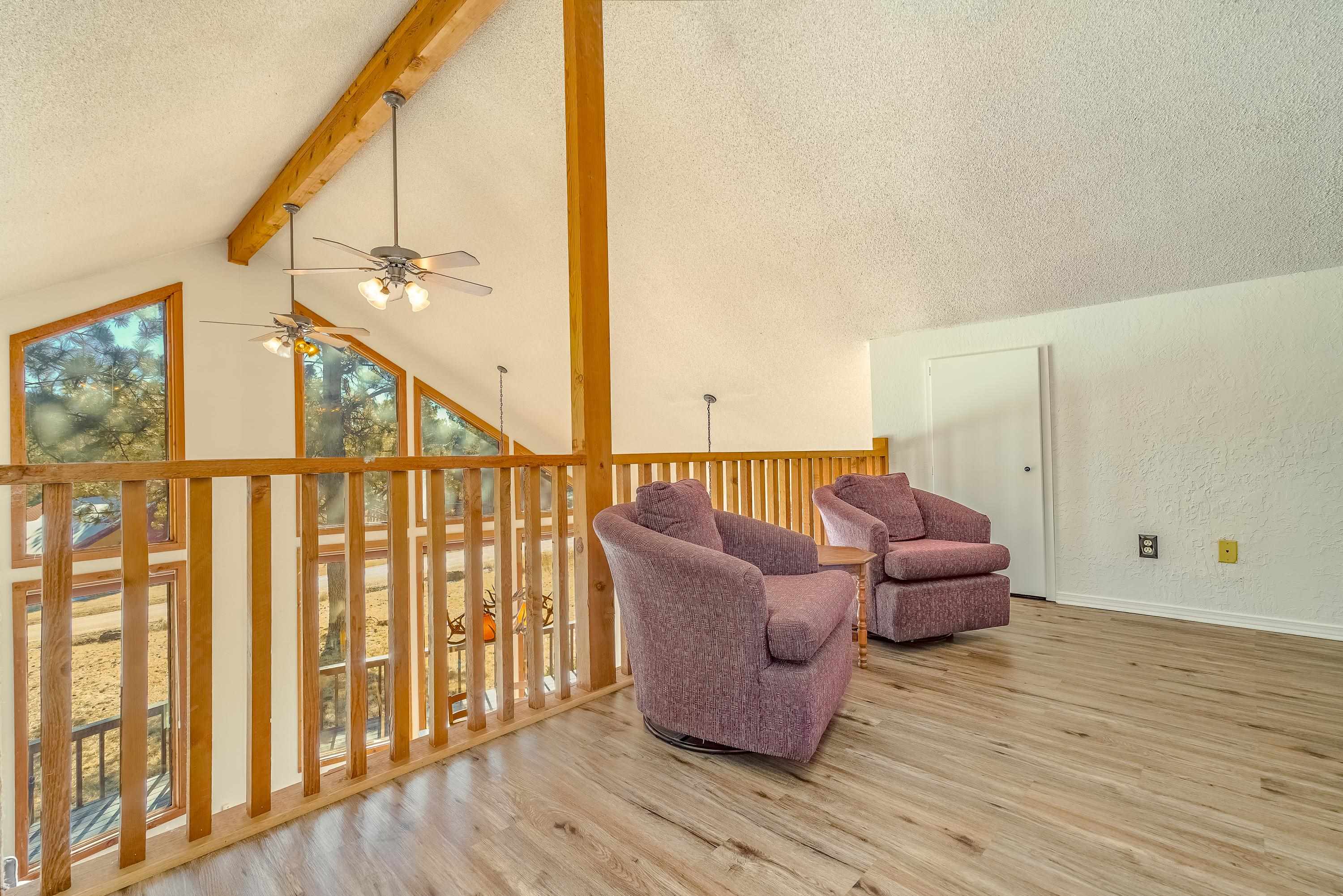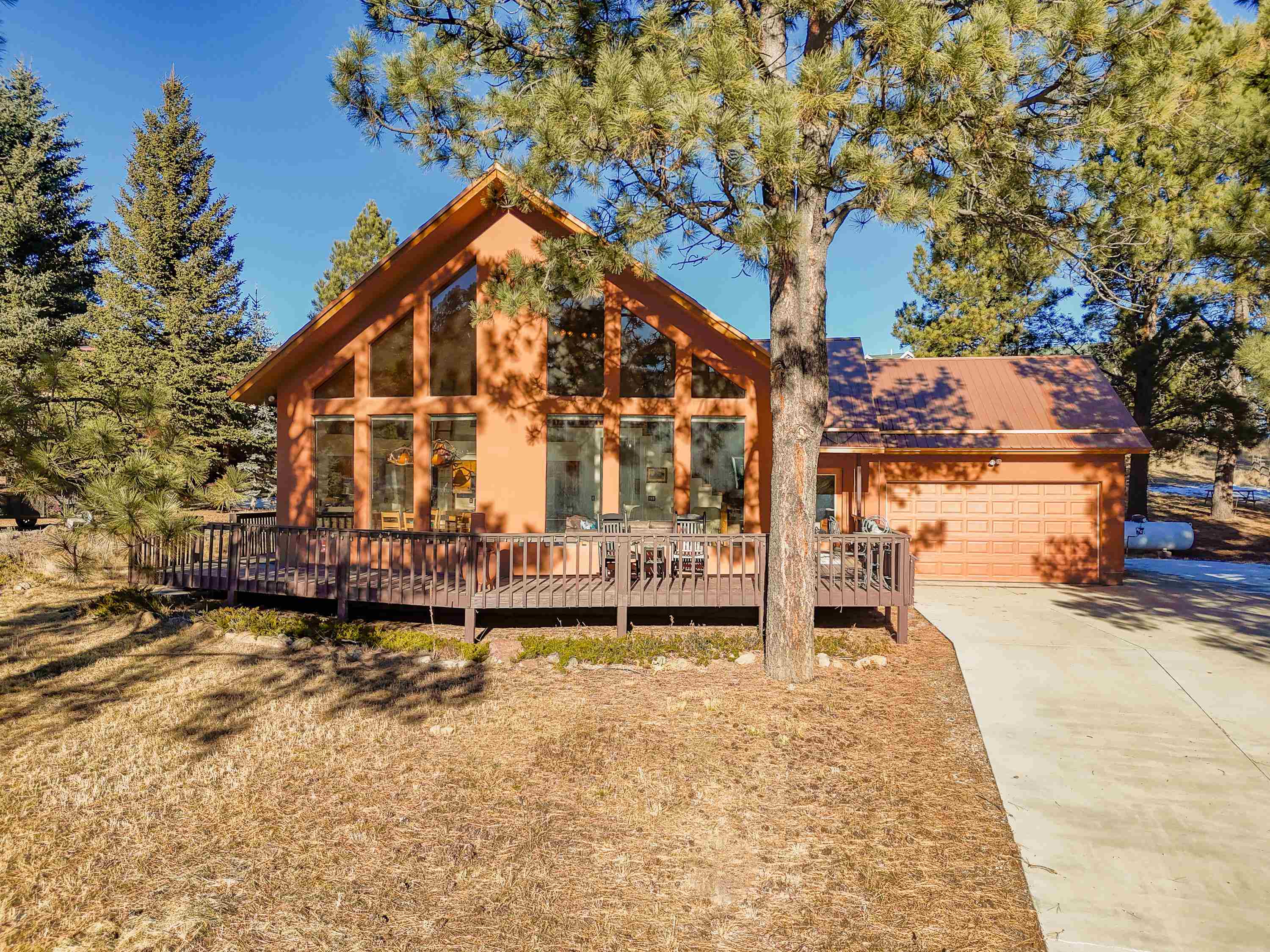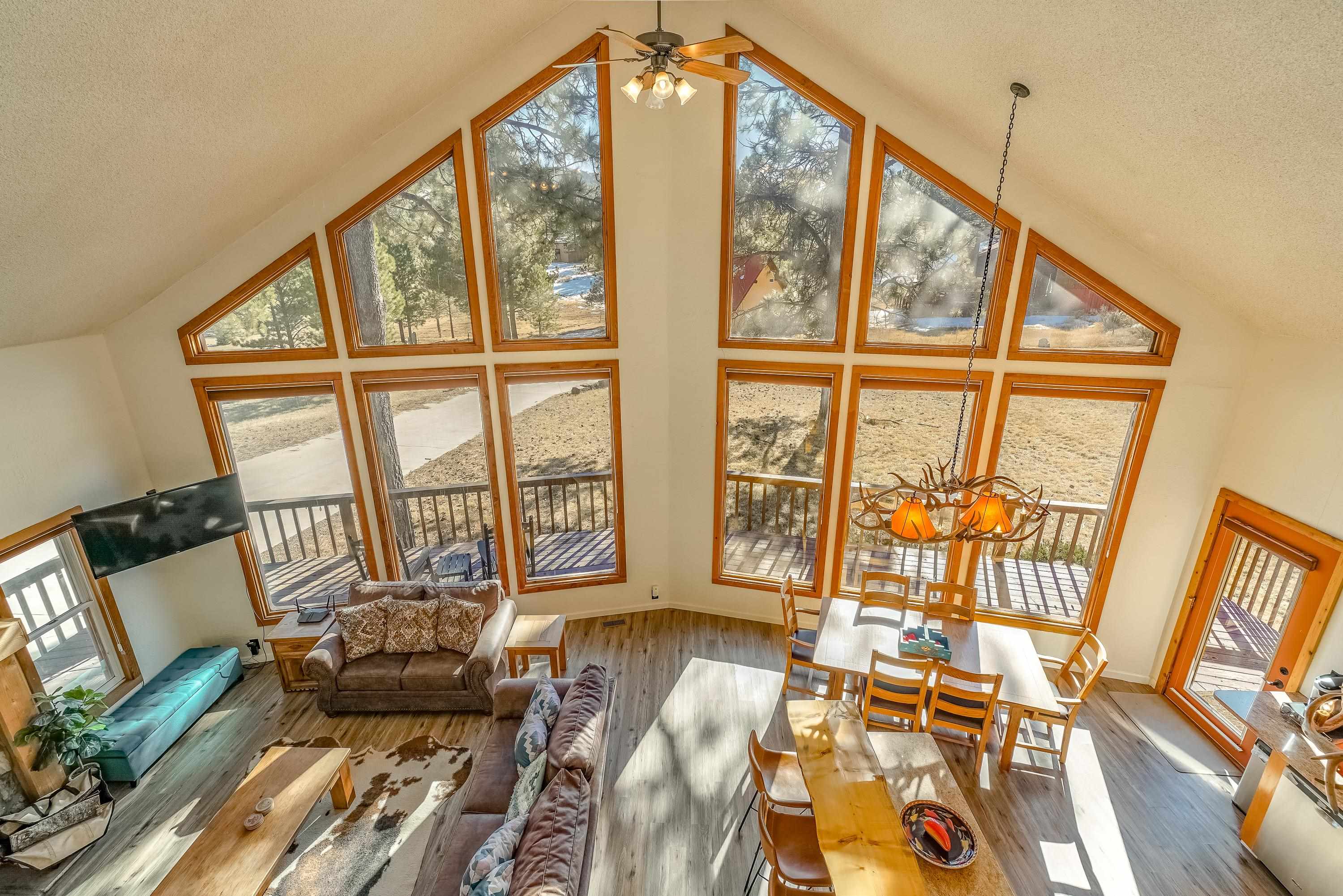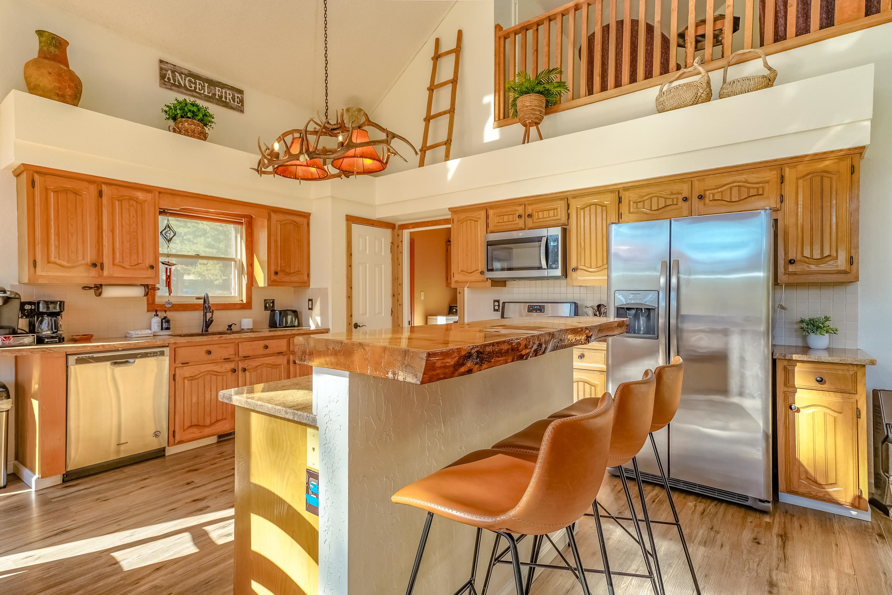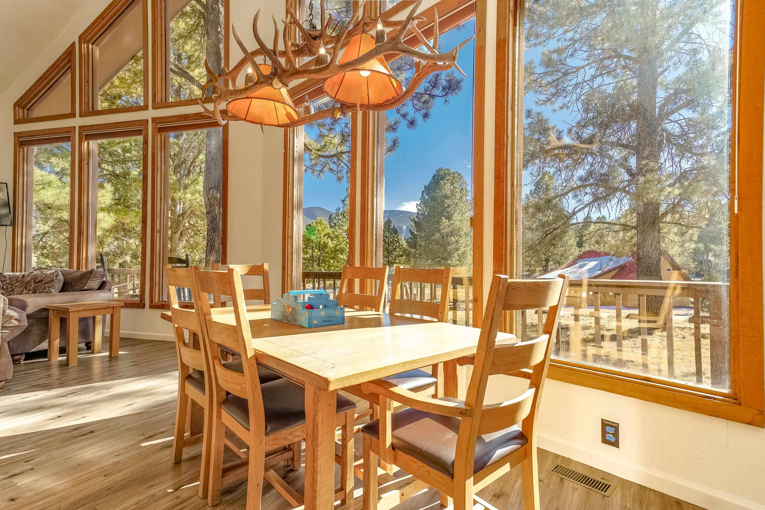 Welcome to 20 Armijo Drive, an Angel Fire chalet in an unbeatable location, just minutes from the grocery store, coffee shop, and local hiking trails. Set on a lovely 0.55-acre lot, this inviting mountain home offers ski area views, a functional layout, and plenty of space for family and friends to spread out comfortably. Step inside to a large mudroom entry, perfect for dropping coats and gear after a day on the slopes. The main living area features vaulted ceilings and oversized windows that bring in beautiful natural light, flowing into an open kitchen and dining space ideal for gatherings. Expansive deck space gives you plenty of space to relax outside - whether you’re chasing sunshine or cooling off in the shade, there’s a spot for every mood. The main-level primary suite makes for easy living, along with an additional guest bedroom, full guest bath, and laundry on the same floor. Upstairs, you’ll find a spacious loft (great for extra sleeping space or a cozy hangout area), plus another bedroom and bath. A private back deck adds the perfect place for quiet morning coffee or winding down after a day of adventure. With an attached 2-car garage, concrete driveway, and easy year-round access, this home is a fantastic fit as a full-time residence, vacation getaway, or potential rental in the heart of Angel Fire.