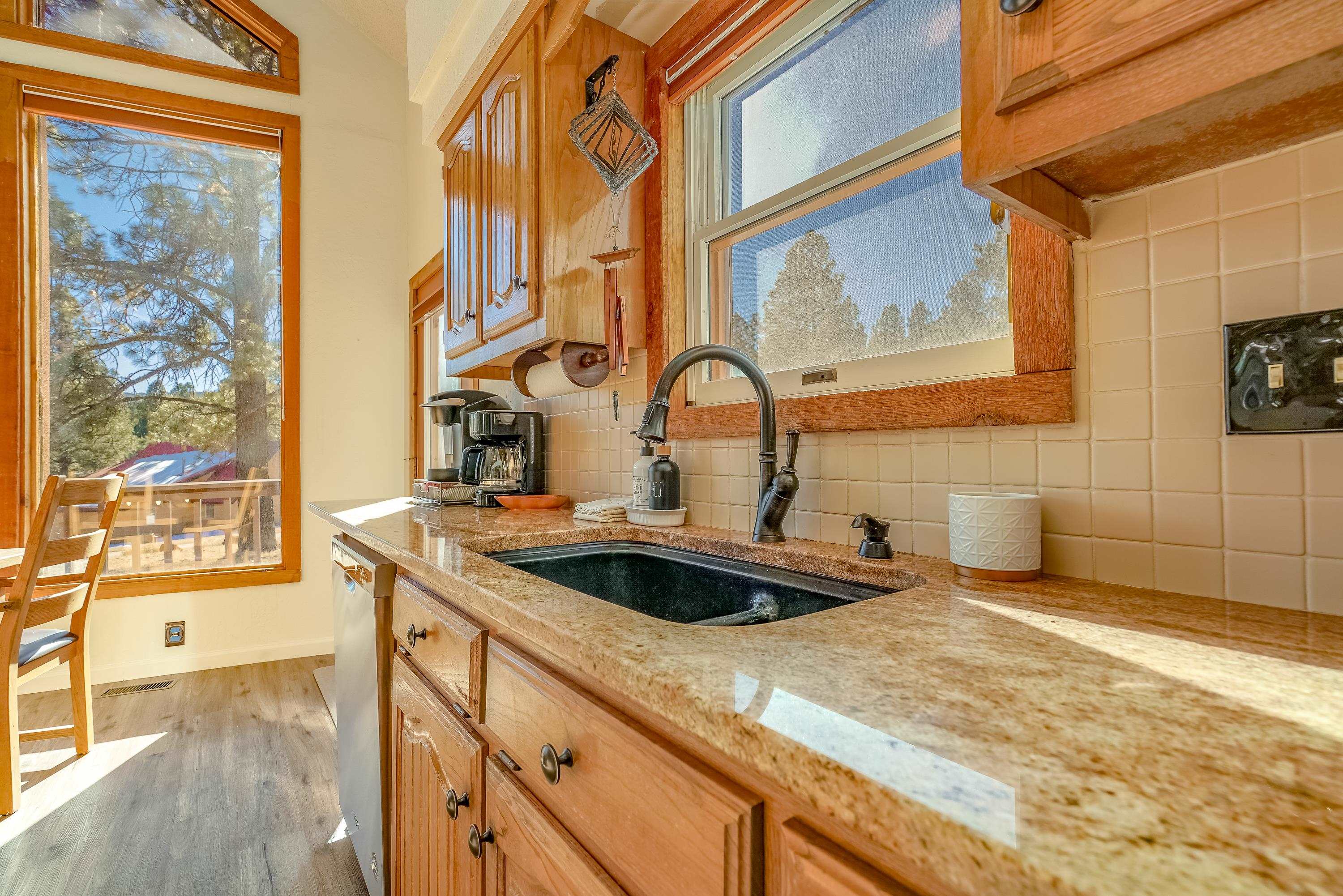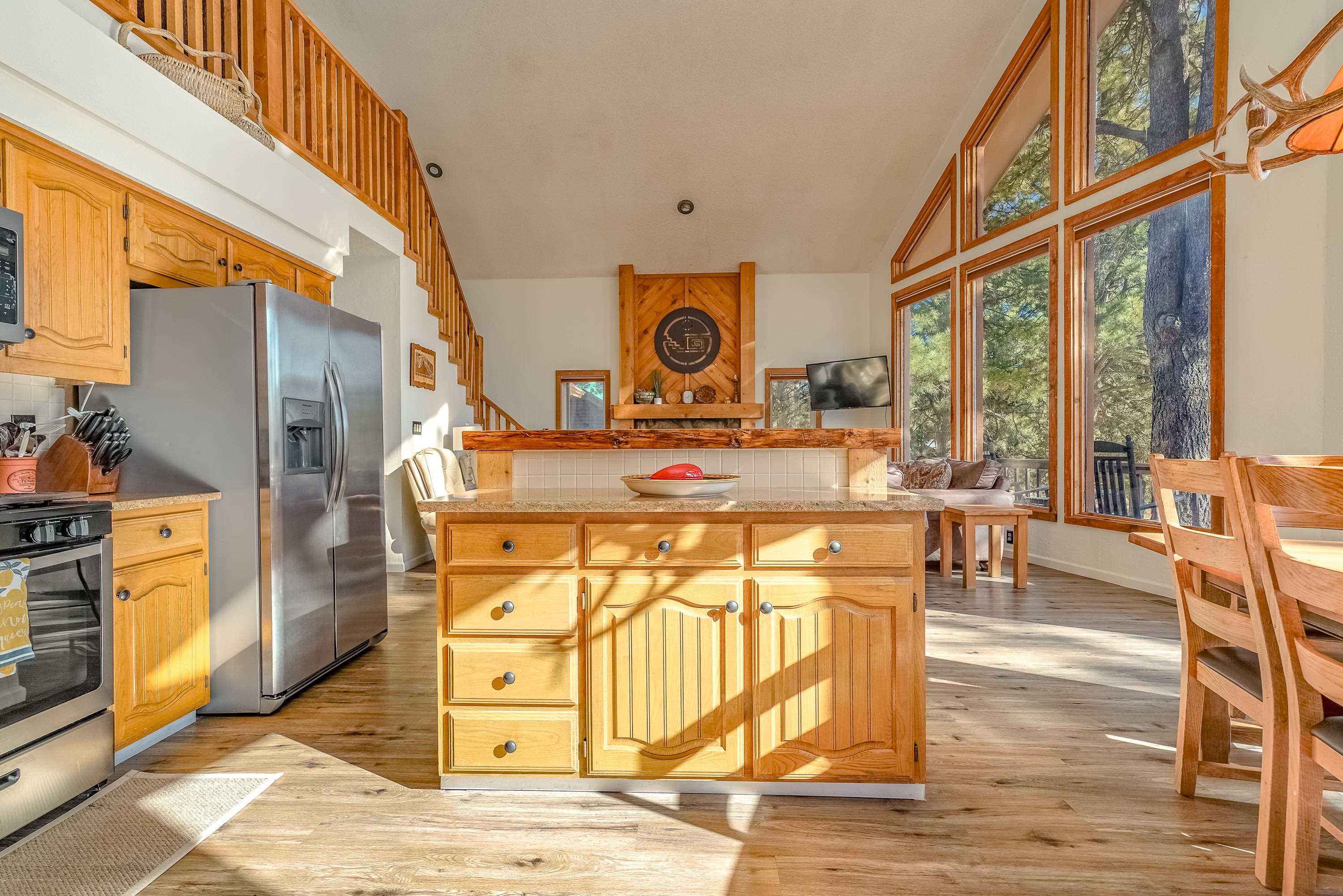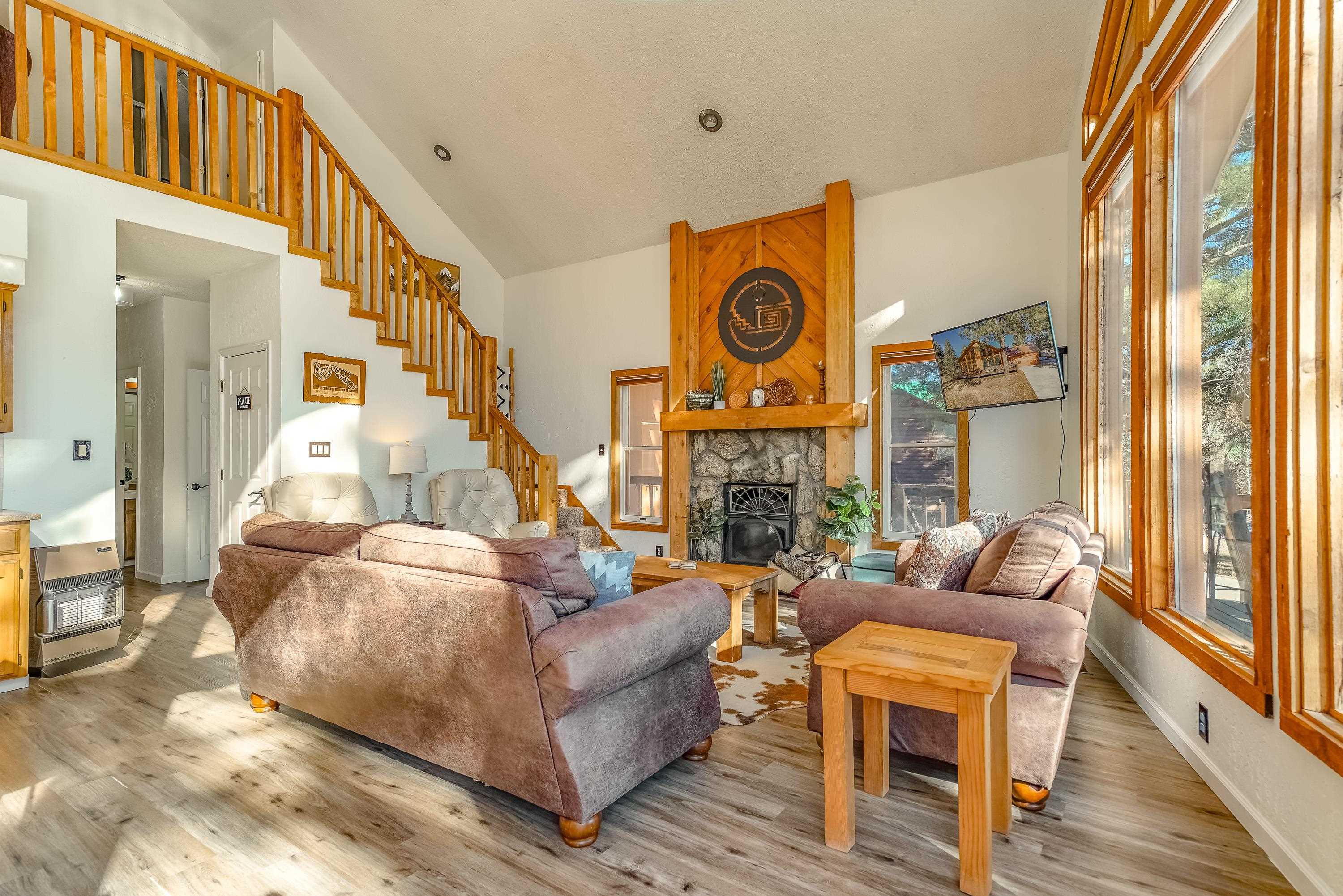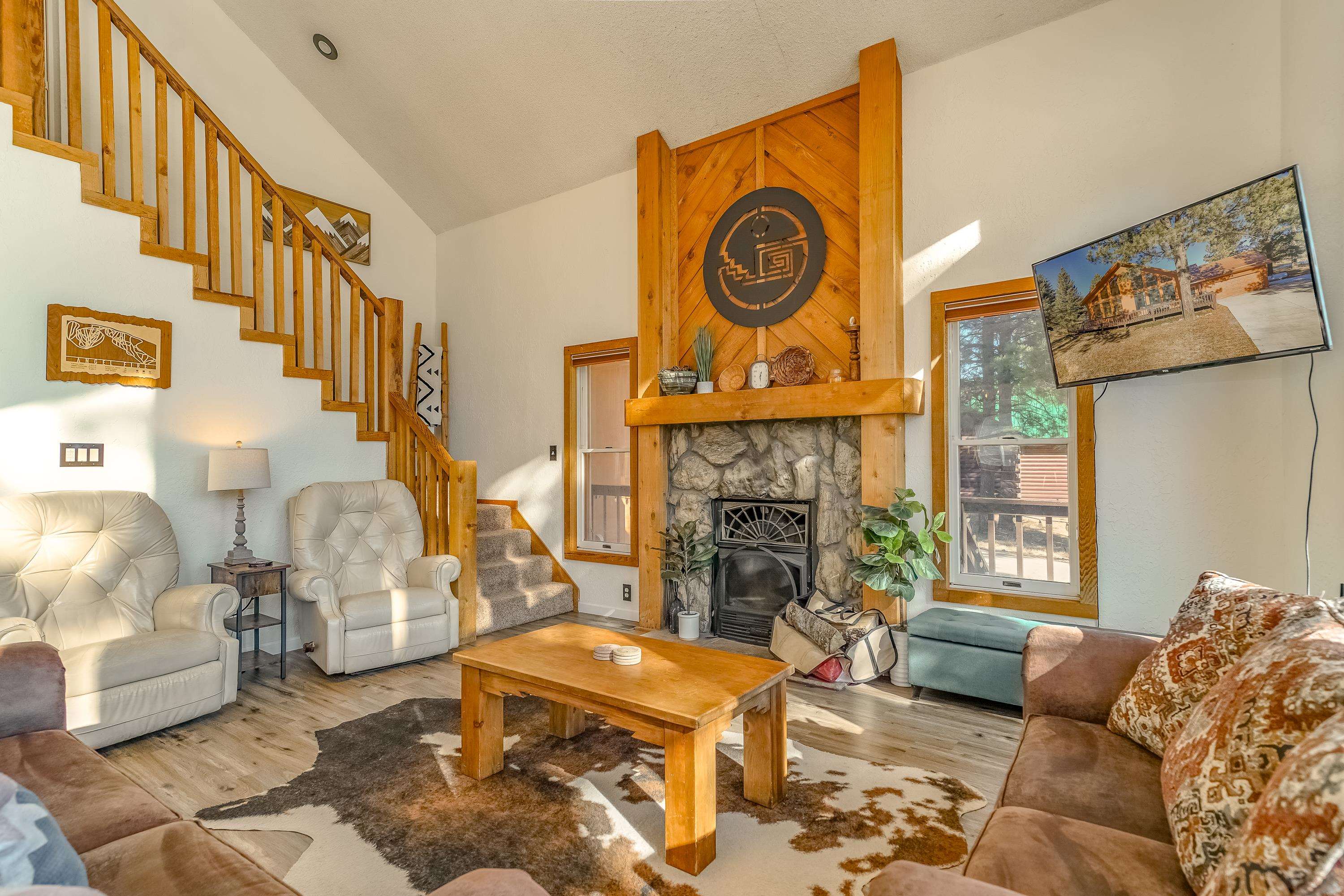 Welcome to 20 Armijo Drive, an Angel Fire chalet in an unbeatable location, just minutes from the grocery store, coffee shop, and local hiking trails. Set on a lovely 0.55-acre lot, this inviting mountain home offers ski area views, a functional layout, and plenty of space for family and friends to spread out comfortably. Step inside to a large mudroom entry, perfect for dropping coats and gear after a day on the slopes. The main living area features vaulted ceilings and oversized windows that bring in beautiful natural light, flowing into an open kitchen and dining space ideal for gatherings. Expansive deck space gives you plenty of space to relax outside - whether you’re chasing sunshine or cooling off in the shade, there’s a spot for every mood. The main-level primary suite makes for easy living, along with an additional guest bedroom, full guest bath, and laundry on the same floor. Upstairs, you’ll find a spacious loft (great for extra sleeping space or a cozy hangout area), plus another bedroom and bath. A private back deck adds the perfect place for quiet morning coffee or winding down after a day of adventure. With an attached 2-car garage, concrete driveway, and easy year-round access, this home is a fantastic fit as a full-time residence, vacation getaway, or potential rental in the heart of Angel Fire.