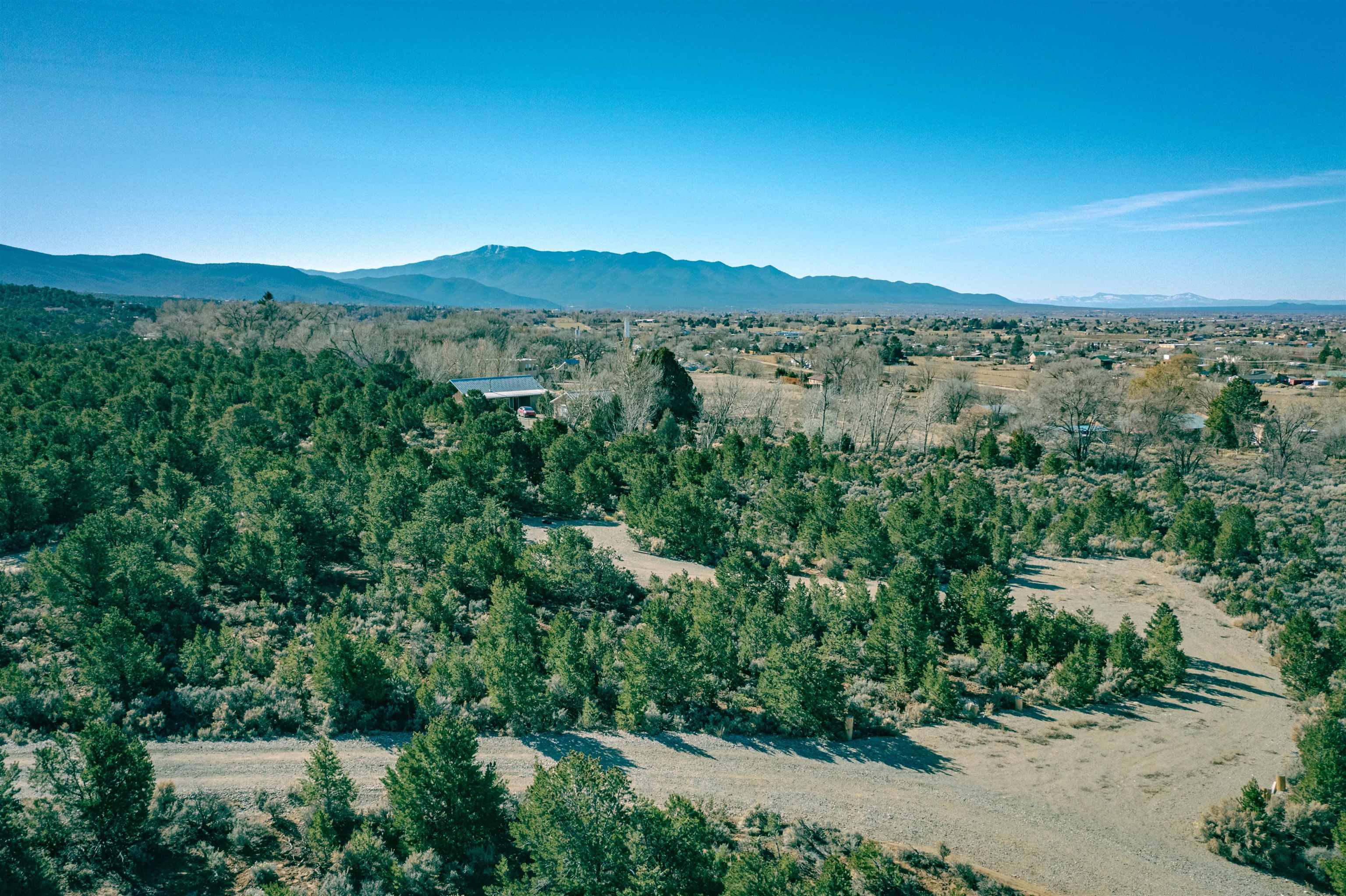 Come see this rare and gorgeous 2.6 acre property with a well and surface water rights in the coveted Canon Foothills neighborhood. With majestic views of Taos Mountain to the north, spectacular sunsets to west and a spectrum of landscapes, this parcel feels peaceful and private. The mother Acequia runs across the property banked by tall trees and a riparian meadow speckled with wild flowers. It is partially forested by mature piñon and juniper trees. Possessing both privacy and convenience, it sits just a few steps away from the Carson National Forest while 2.8 miles to the Historic Taos Plaza. Improvements include a driveway and meandering walking paths and a new well. The adjacent 2 acre lot is also available MLS 112679