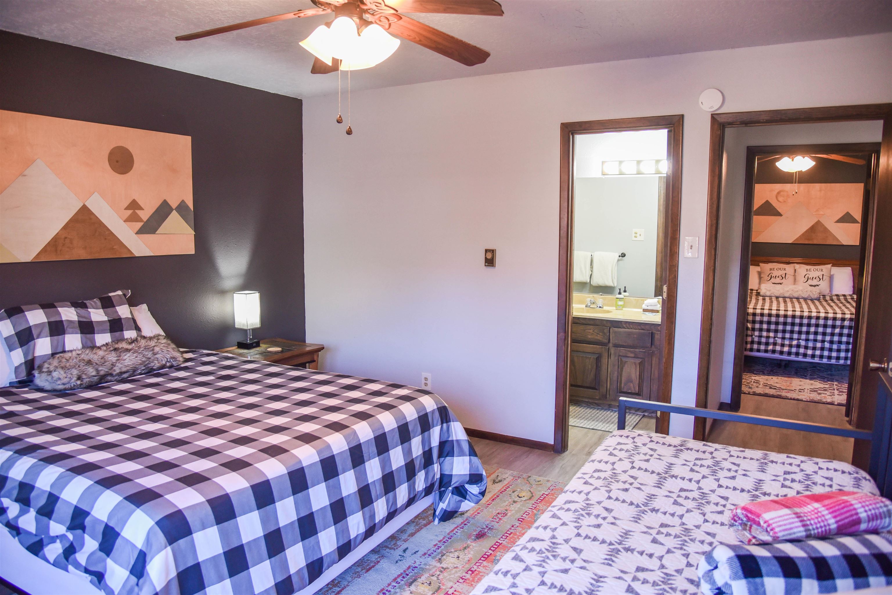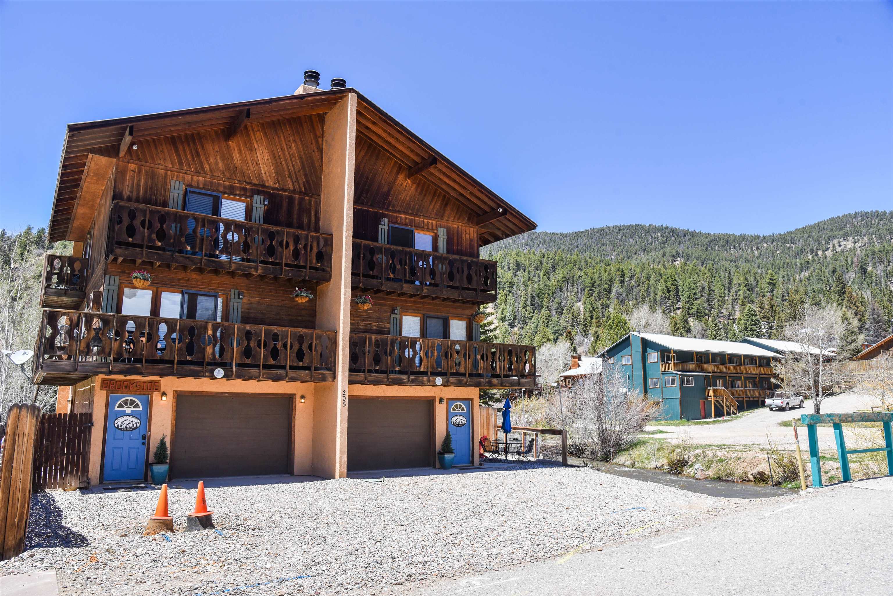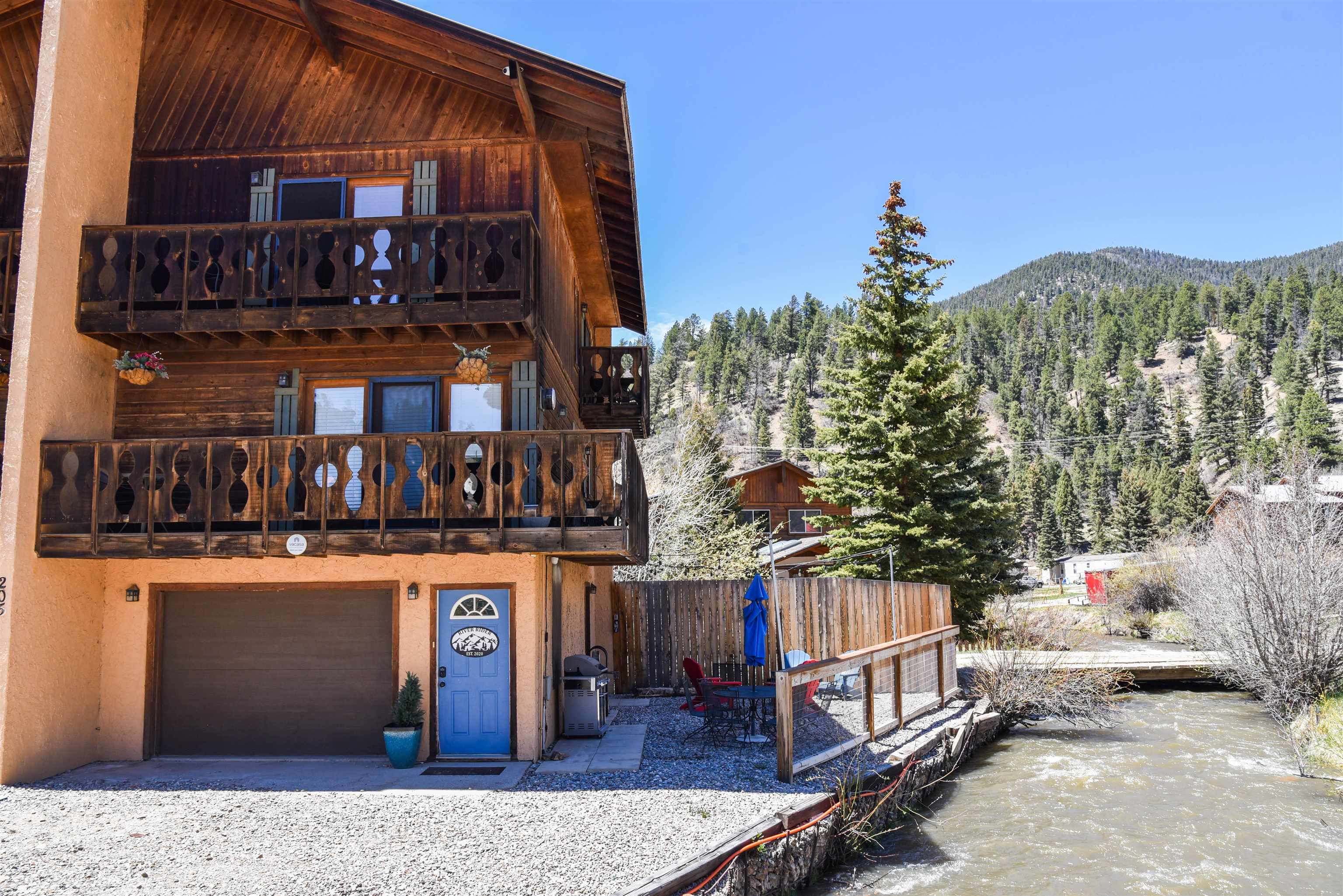 Investment at it's finest! We welcome to view the 'River & Mountain Riders of Brookside,' a unique duplex nicely situated on the river in downtown Red River, New Mexico with 4 bedrooms & 4.5 bathrooms! Description Upon viewing this charming property decide which side YOU want to start in! Should you choose the River Rider to your right or the Mountain Rider to your left?!! Both mirror each other identically and connect via adjoining doors located on the middle floor between the two living areas... River Rider Description: Walk into our foyer. Leading to your left is the door to the single car garage, semi fenced yard which offers a great gathering place around the wood burning fire pit overlooking the Red River. Also on this ground level access is the laundry area complete with a full sized washer/dryer. Continue up the stairs to the middle story and be welcomed into the newly updated open concept living room with private North facing balcony doors, foldout sofa, wood burning fireplace, flat screen TV, spacious dining area, half bath and the completely updated kitchen housing new stainless steel appliances and sleek Formica style counter tops. The larger bedroom ensuite houses a Queen sized bed and a twin daybed with a trundle, flat screen TV, private bathroom with a tub/shower combo and a private East facing balcony looking towards the Red River Ski Area, river, and the Carson National Forest. The Primary bedroom features it's own bathroom with a tub/shower combo, a king sized bed, and it's own private North facing balcony towards Main Street and the river... Mountain Rider Description: Upon entry into this charming property you will walk into our foyer. Leading to your right is the door to the single car garage housing the ping pong table, small fenced run access. Also on this ground level is the laundry area complete with a full sized washer/dryer. Continue up the stairs to the middle story and be welcomed into the newly updated open concept living room with private South facing balcony doors, foldout sofa, wood burning fireplace, flat screen TV, spacious dining area, half bath and the completely updated kitchen housing new stainless steel appliances and sleek Formica style counter tops. The larger bedroom ensuite houses a Queen sized bed and a twin daybed with a trundle, private bathroom with a tub/shower combo and a private East facing balcony looking towards the Red River Ski Area, river, and the Carson National Forest. The Primary bedroom features it's own bathroom with a tub/shower combo, a king sized bed, flat screen TV and it's own private South facing balcony towards Caribel Condominiums... Entire Property: This home is complete with Fiber Optic Wi-Fi and smart TV's so when you or your guests want to kick back and enjoy your evenings after a fun filled day then you have the amenities to do so, just sign in to your favorite apps! This home has gorgeous views from all the decks/balconies and is located on the Red River and just a hop, skip and a jump from the Red River Ski Area and downtown where there is so much to do from dining in the local eateries to shopping to exploring our great outdoors with many activities such as skiing, snowmobiling, ziplining, nature trails, hikes, off-road trails, fishing, hunting, horseback riding, jeep tours, festivals and so much more! This modern mountainous retreat is great as a romantic vacation or a family destination generation after generation. Sells Furnished minus exclusion list/personal items. Rental history available upon request!